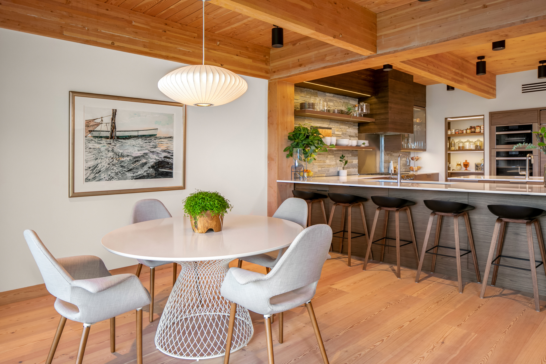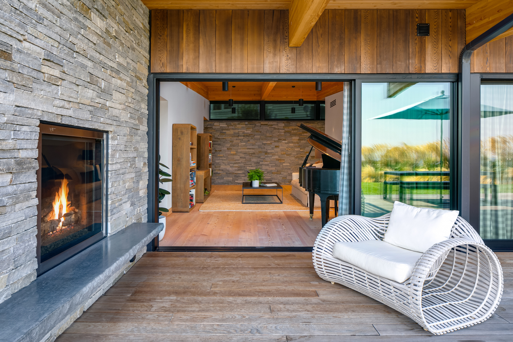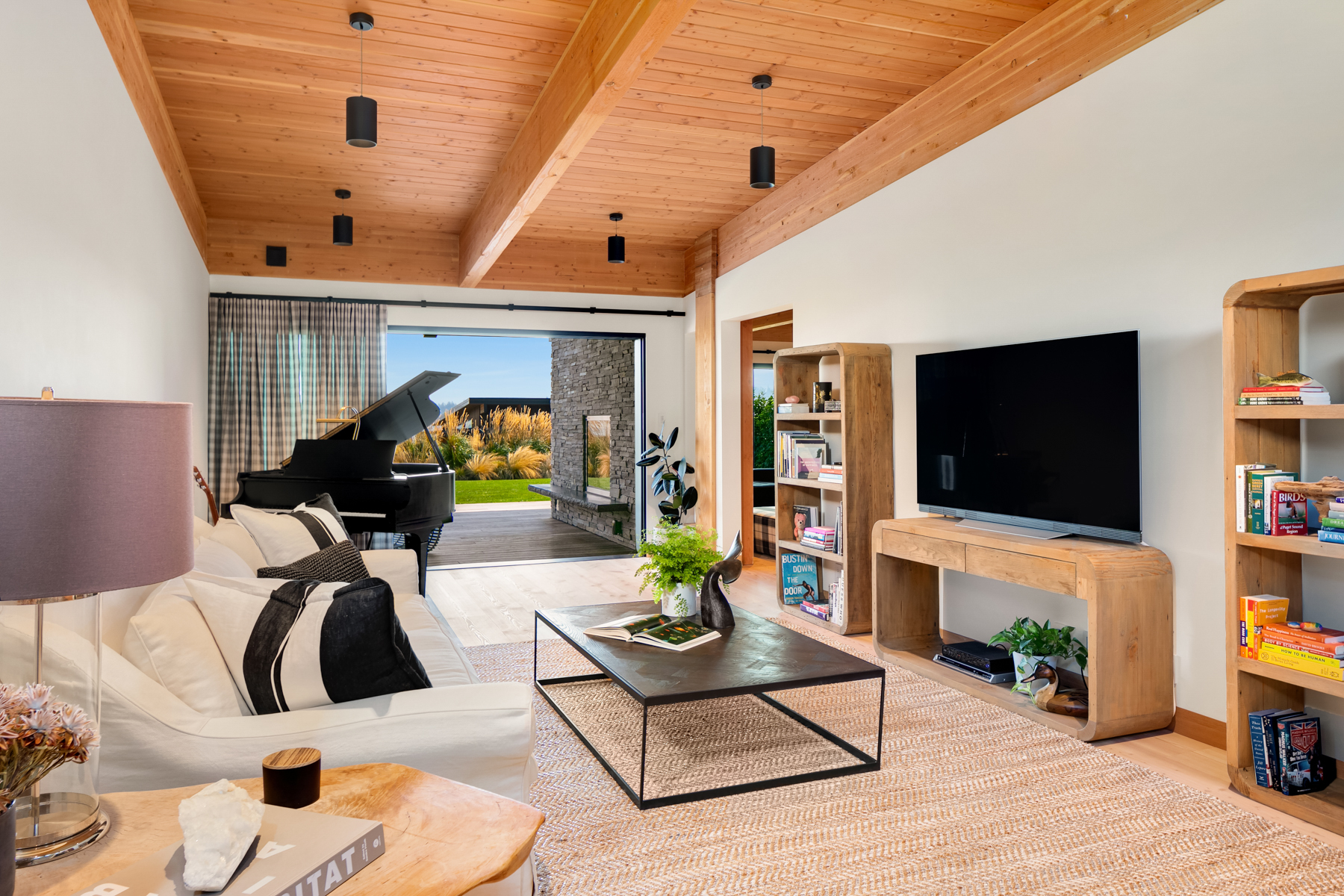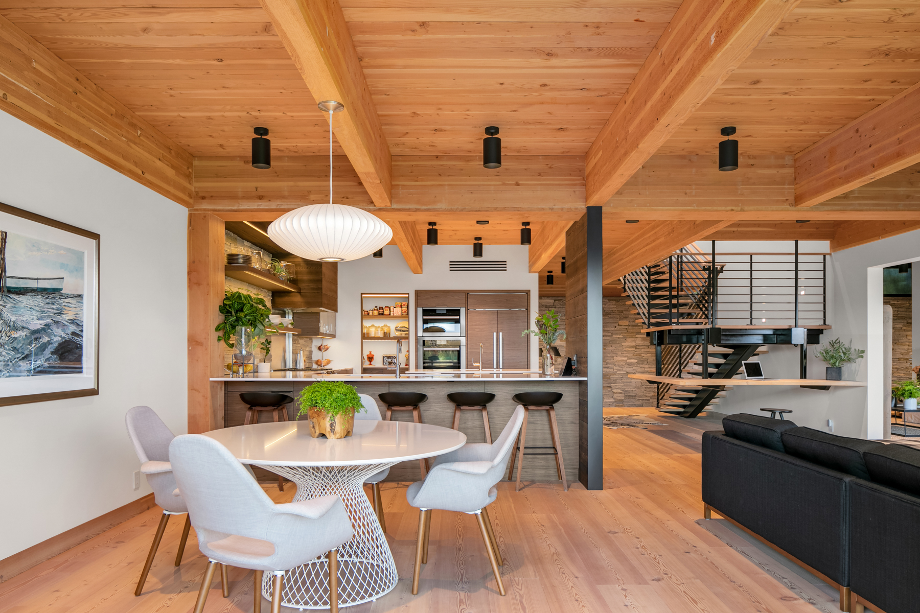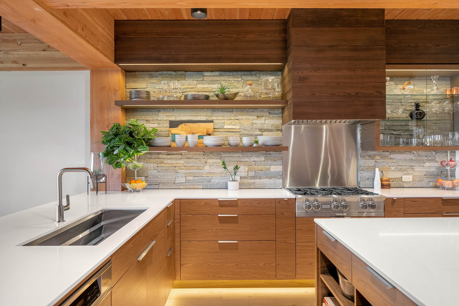 Welcome home to this stunning custom designed contemporary retreat and the peaceful water, island and city outlook. Thoughtfully built with exquisite attention to detail, filled with coveted south facing sunlight, the house features 3 en suite bedrooms and a chef's kitchen. Walls of glass open to an expansive wood deck with a heated saltwater plunge pool, a double sided gas fireplace and a built-in grill. Nestled in a small enclave of luxury homes with private deeded beach access, close to the shops in vibrant Rolling Bay, settle in and enjoy views of the serene gardens, the boating activity in Puget Sound, Mt. Rainier and the sparkling lights of the Seattle skyline.