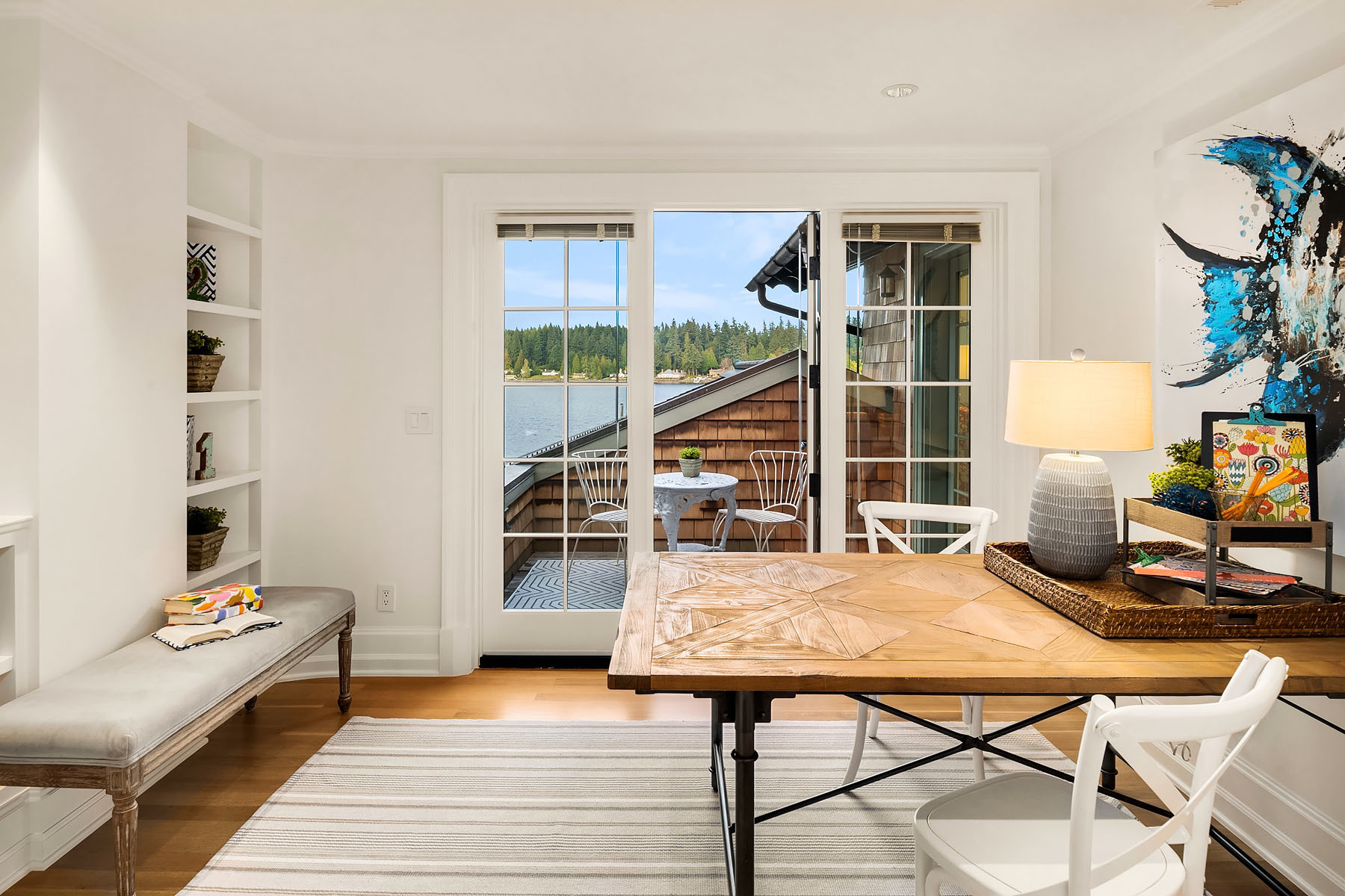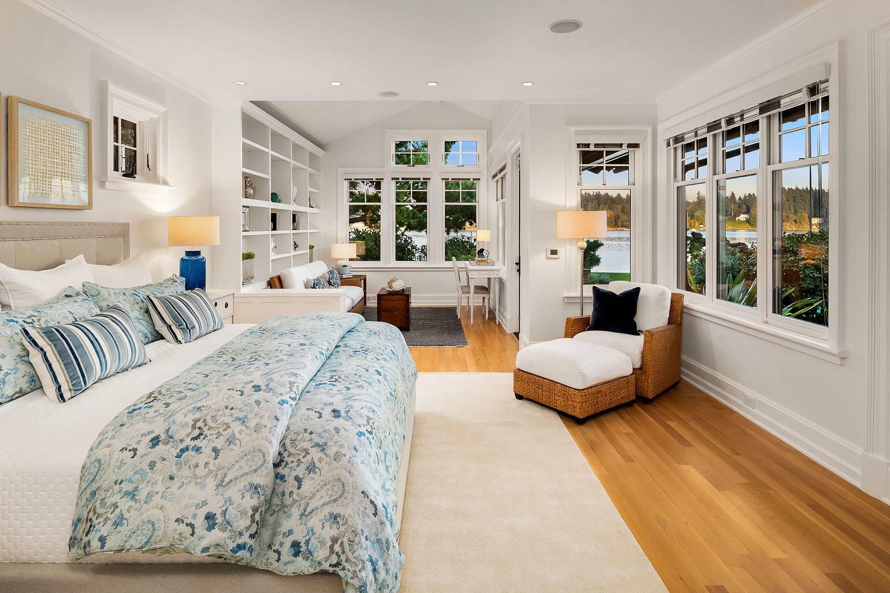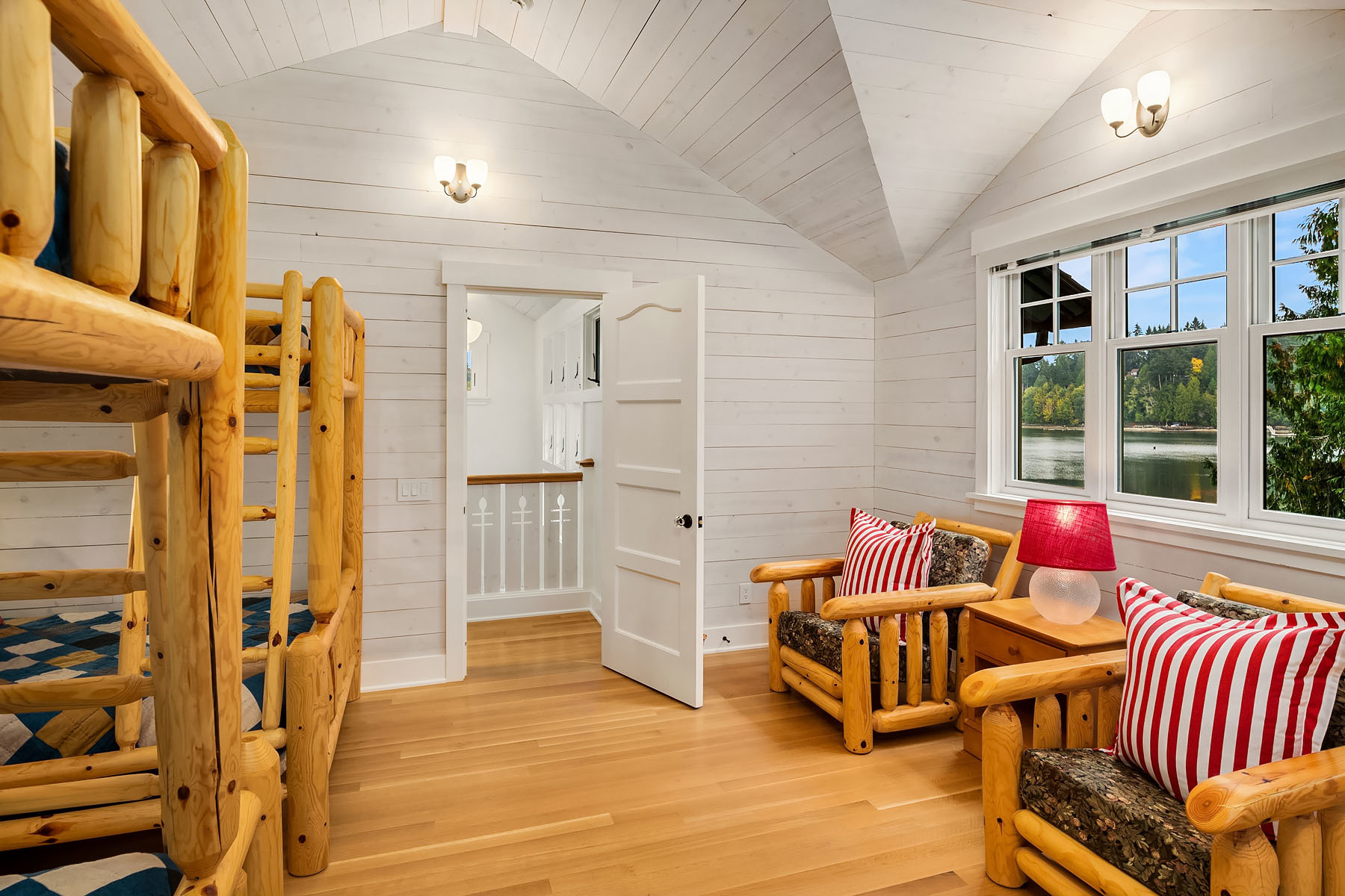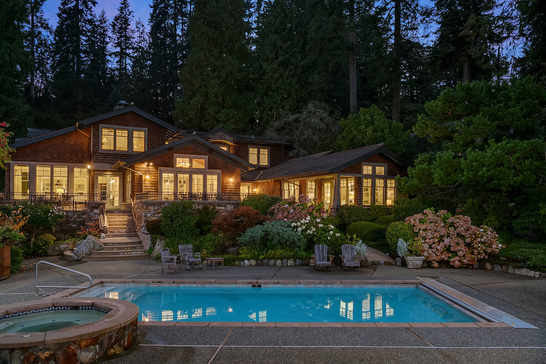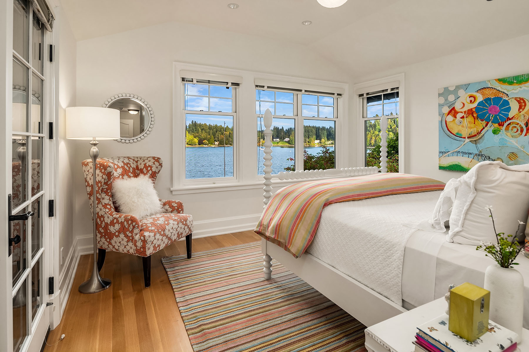 This magnificent, custom-designed home sits on the shores of Manzanita Bay with hundreds of feet of no-bank waterfront and a deep water dock. A private drive meanders past the caretakers house to the main home surrounded by stunning landscaping. Attached to the main home is a carriage house for guests. Multiple sets of French doors lead to the pool, fire pit, and white sandy beach. Its simply magical. Classically inviting...and a perfect place to get away from it all. Island living