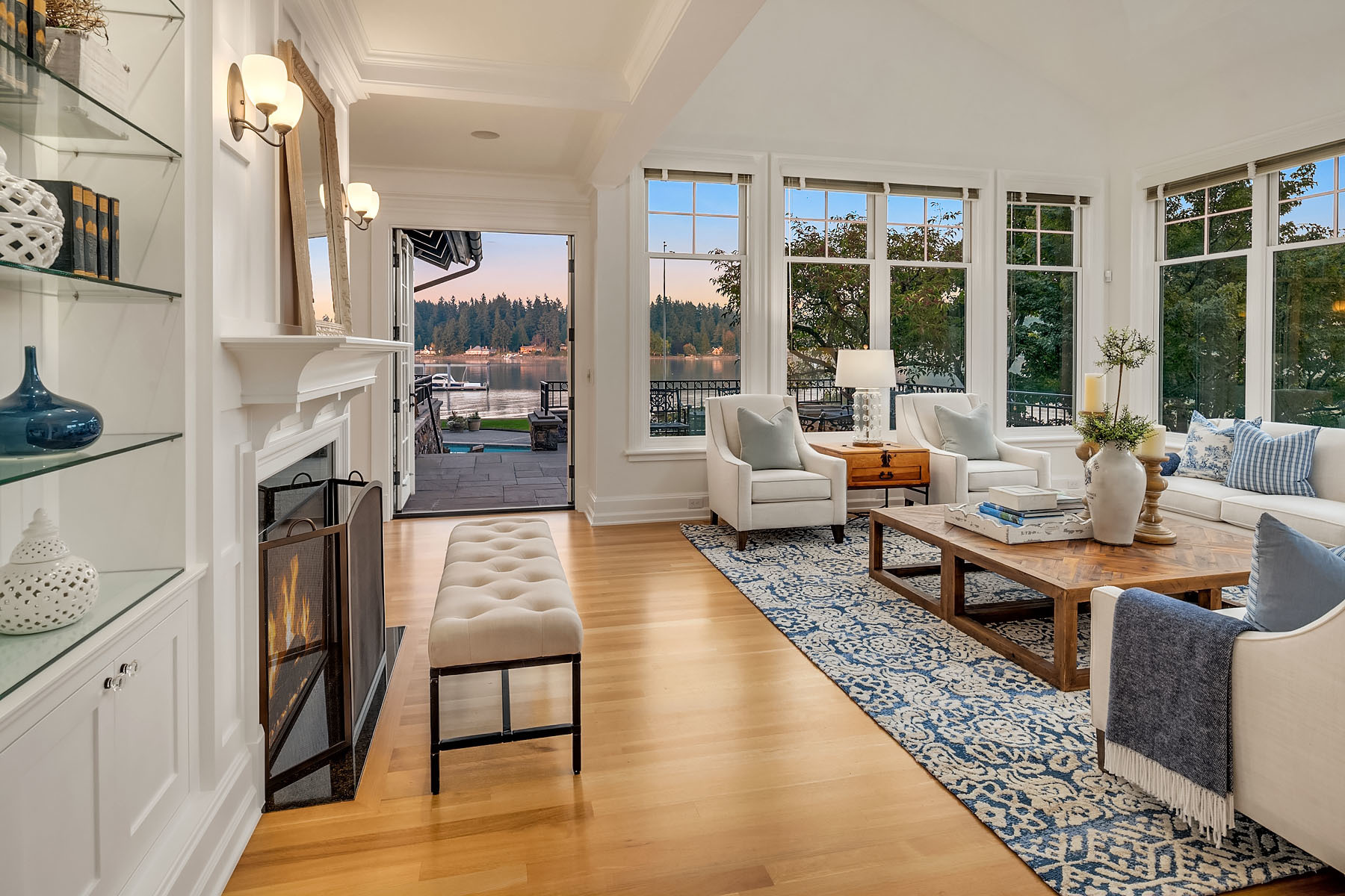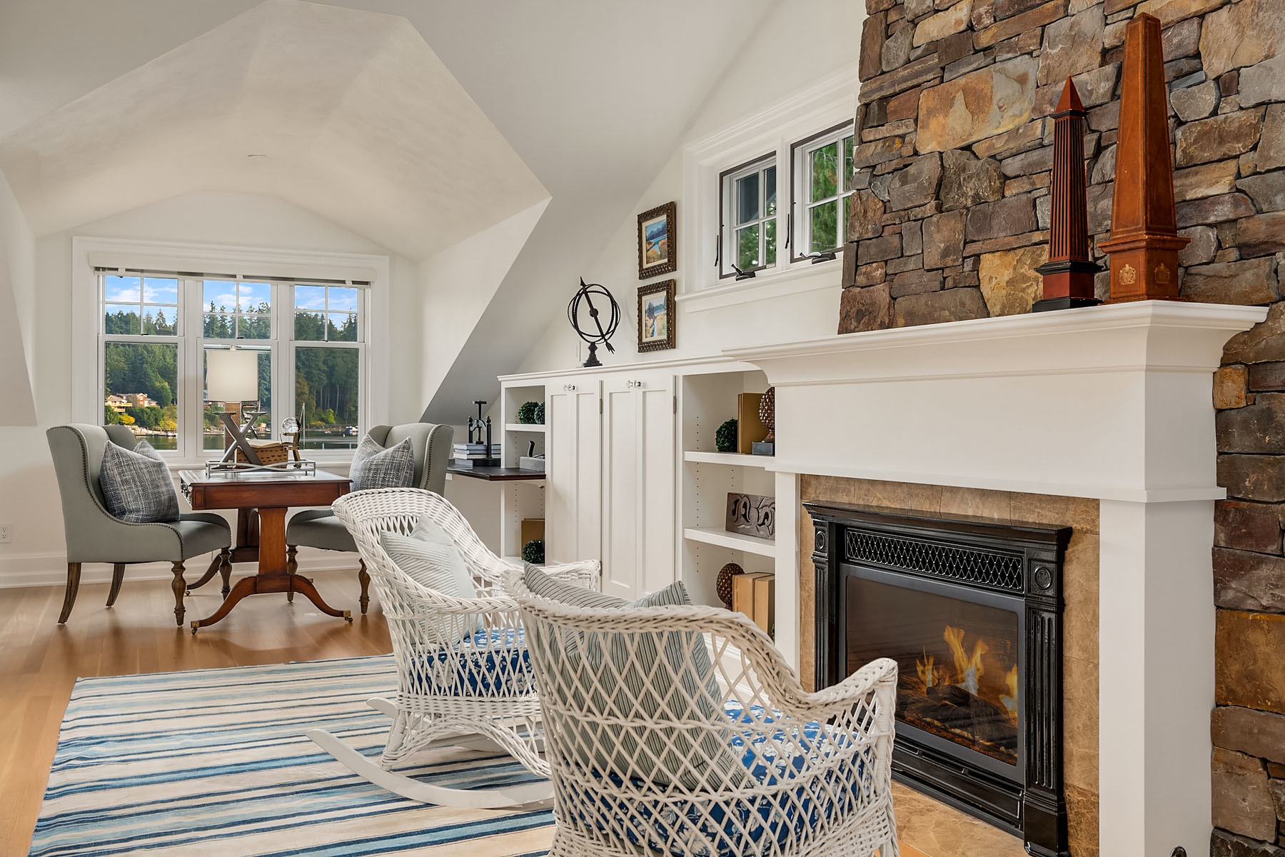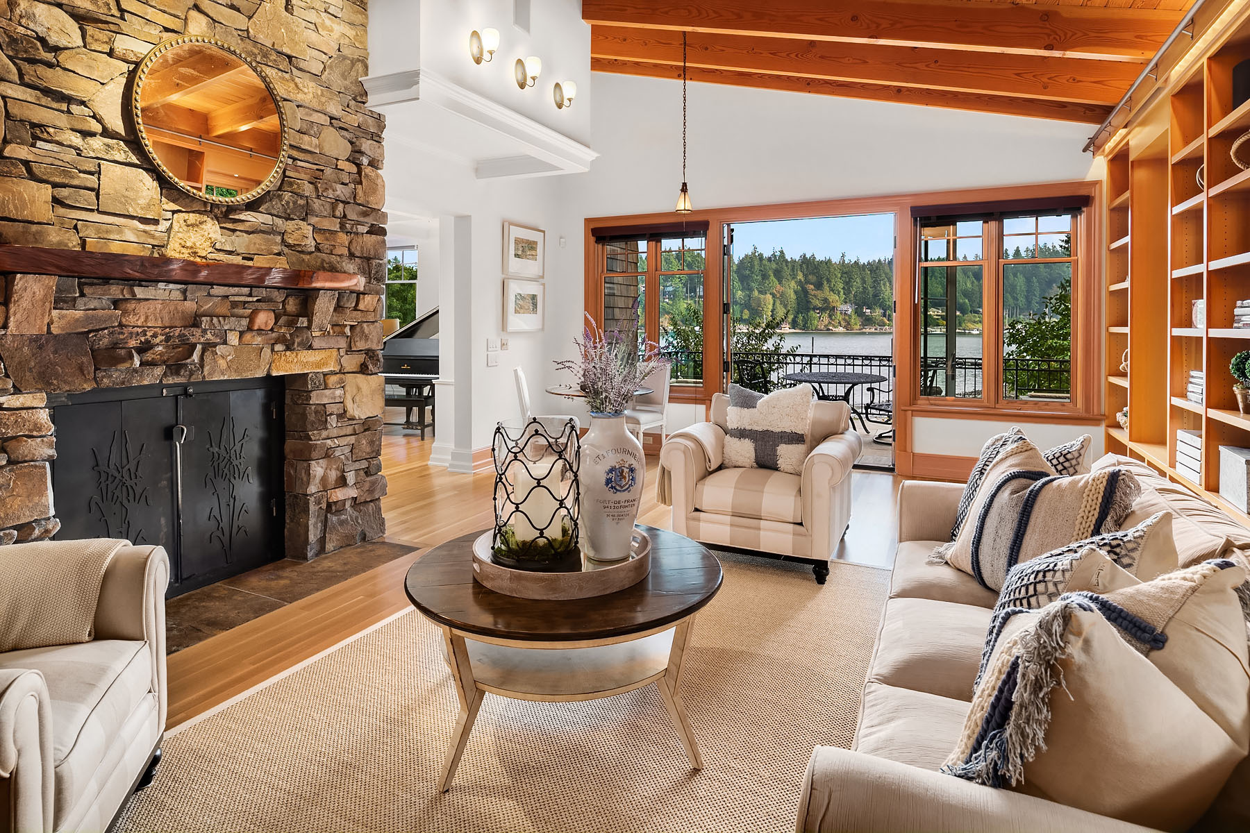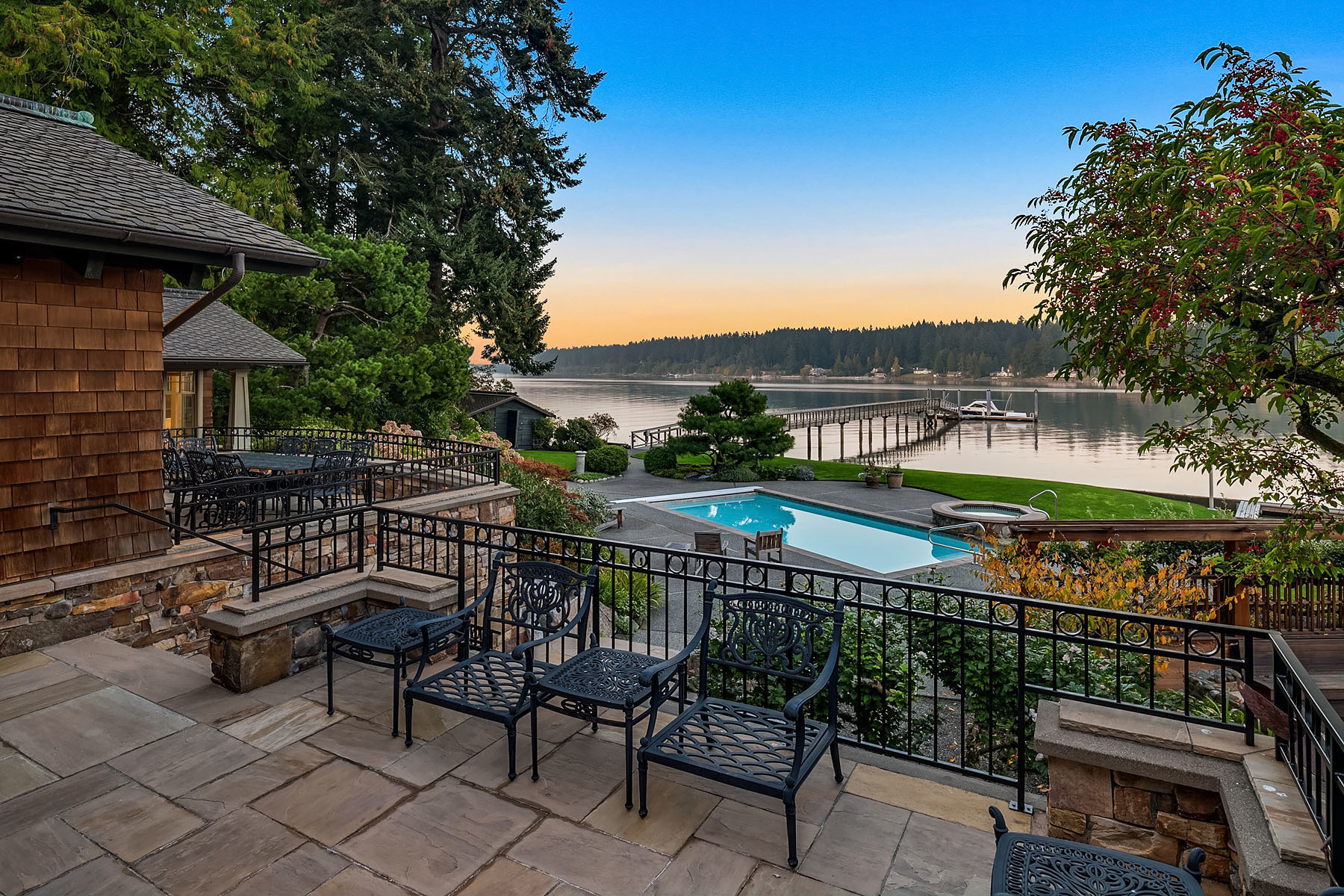 This magnificent, custom-designed home sits on the shores of Manzanita Bay with hundreds of feet of no-bank waterfront and a deep water dock. A private drive meanders past the caretakers house to the main home surrounded by stunning landscaping. Attached to the main home is a carriage house for guests. Multiple sets of French doors lead to the pool, fire pit, and white sandy beach. Its simply magical. Classically inviting...and a perfect place to get away from it all. Island living