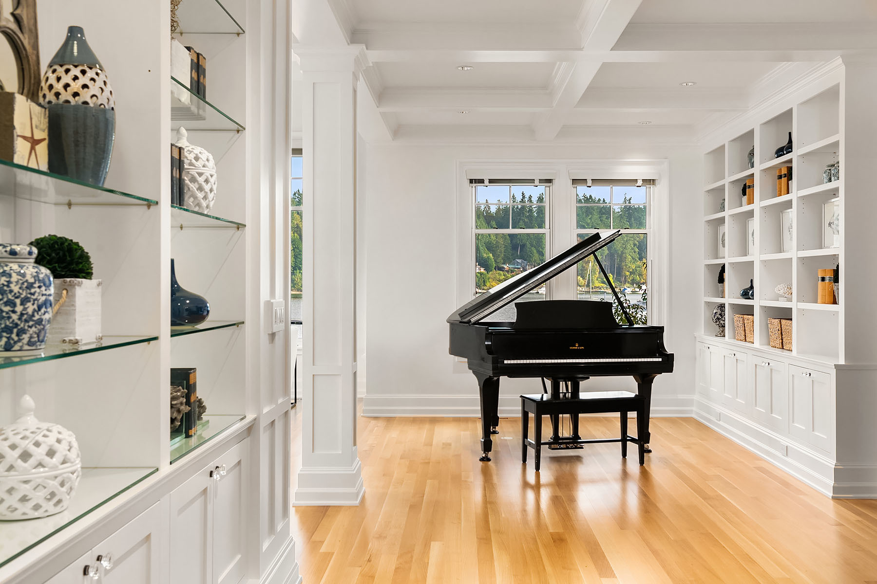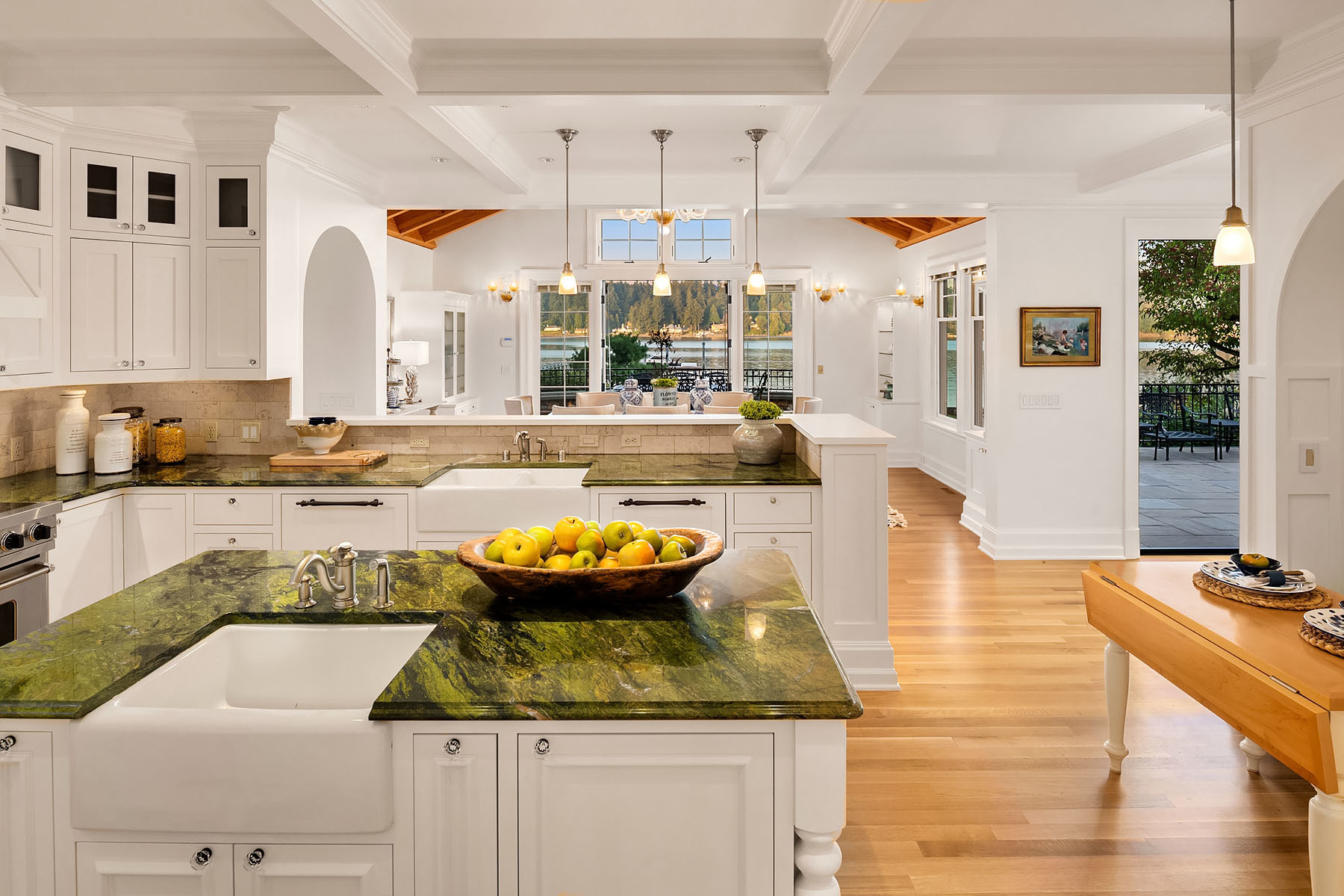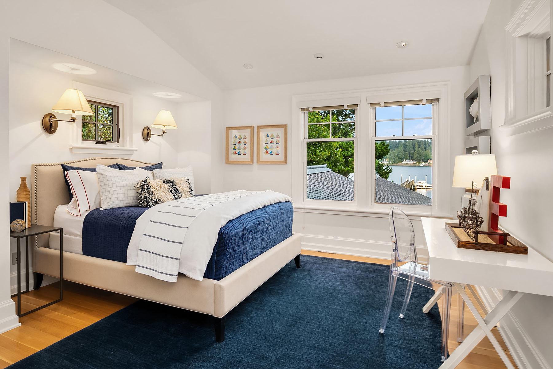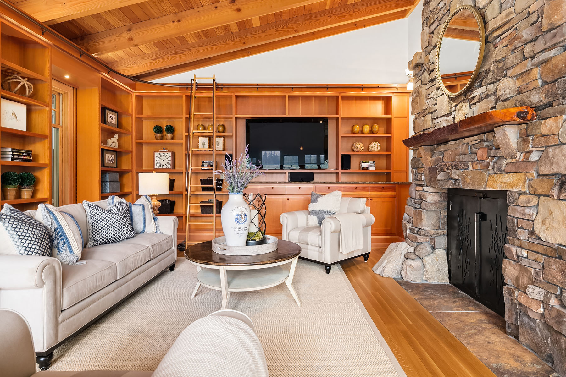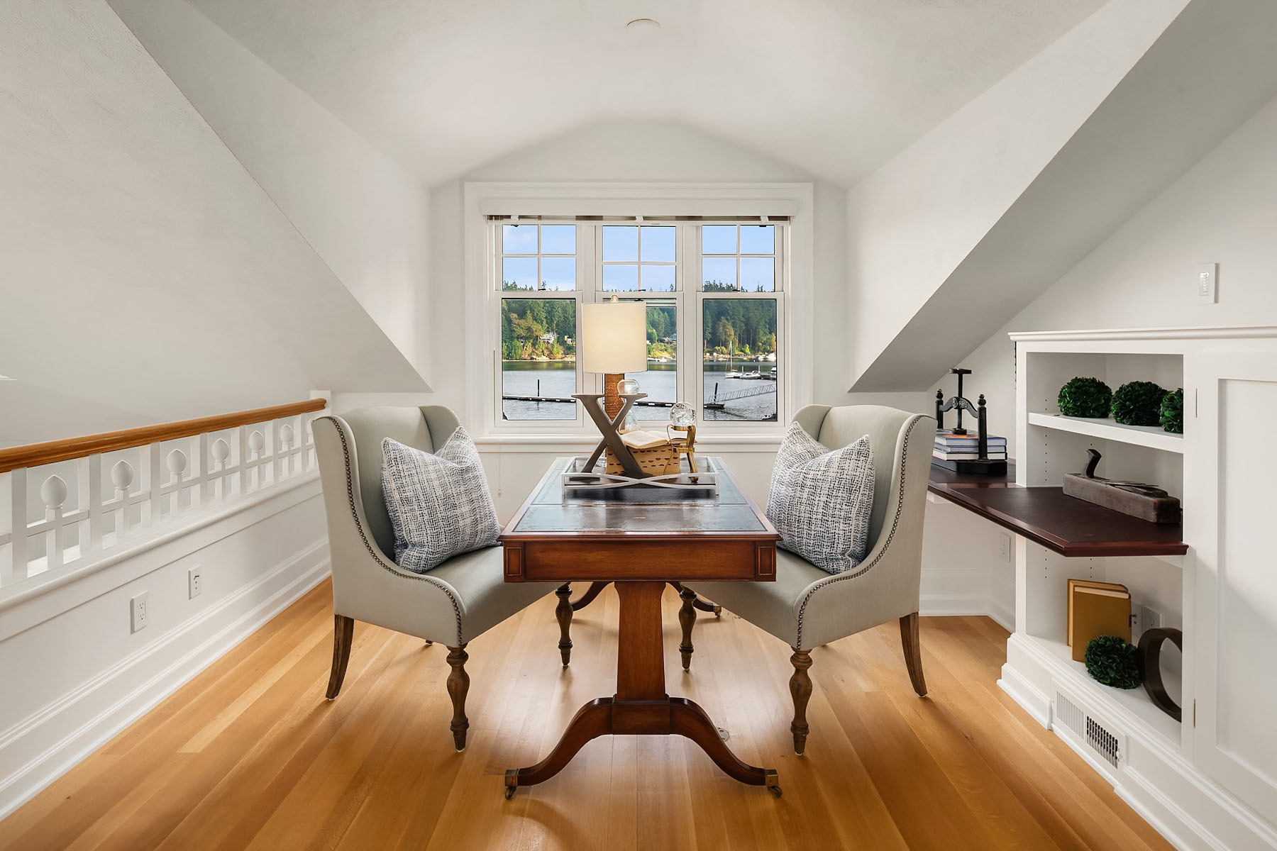 This magnificent, custom-designed home sits on the shores of Manzanita Bay with hundreds of feet of no-bank waterfront and a deep water dock. A private drive meanders past the caretakers house to the main home surrounded by stunning landscaping. Attached to the main home is a carriage house for guests. Multiple sets of French doors lead to the pool, fire pit, and white sandy beach. Its simply magical. Classically inviting...and a perfect place to get away from it all. Island living