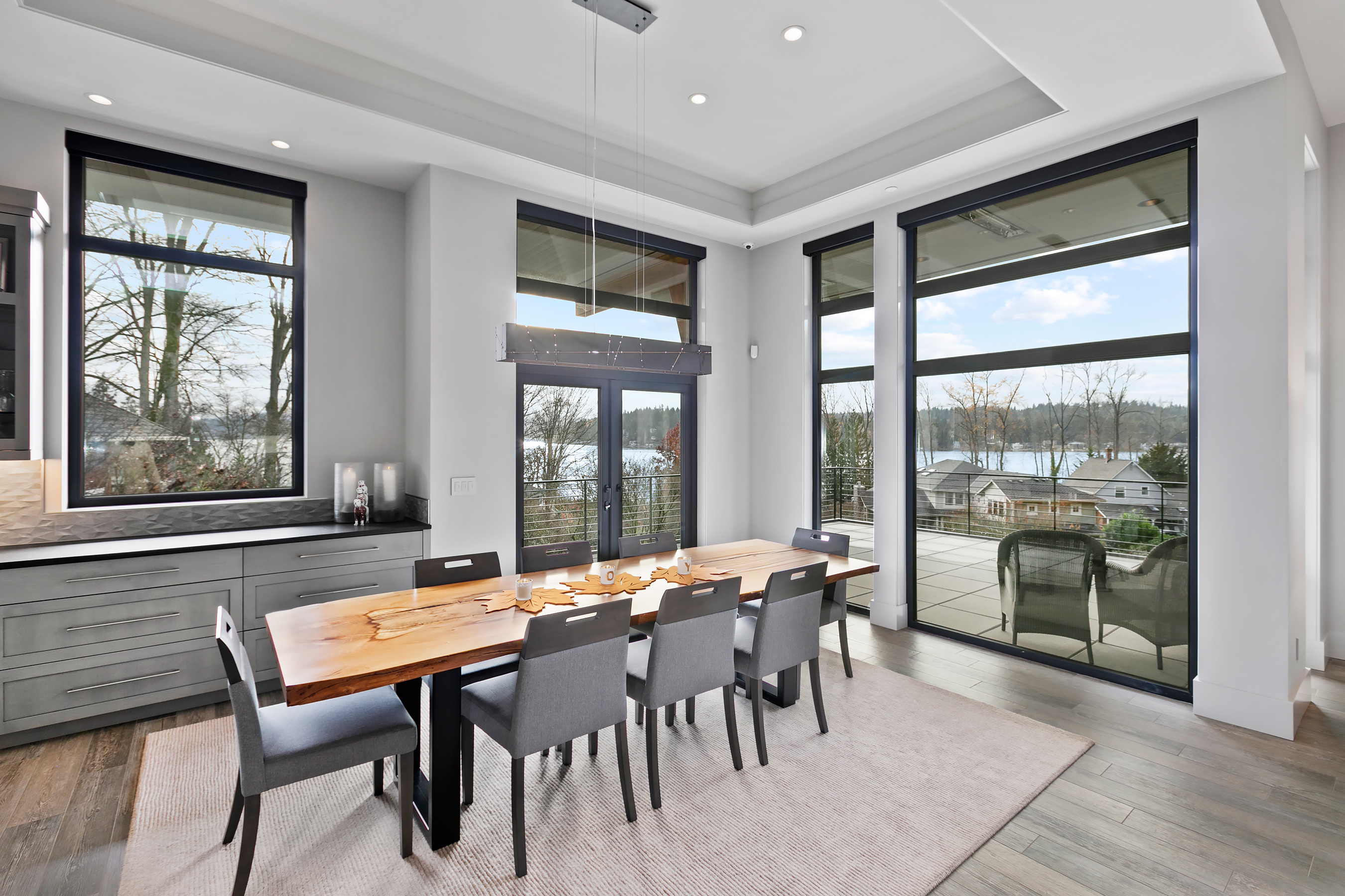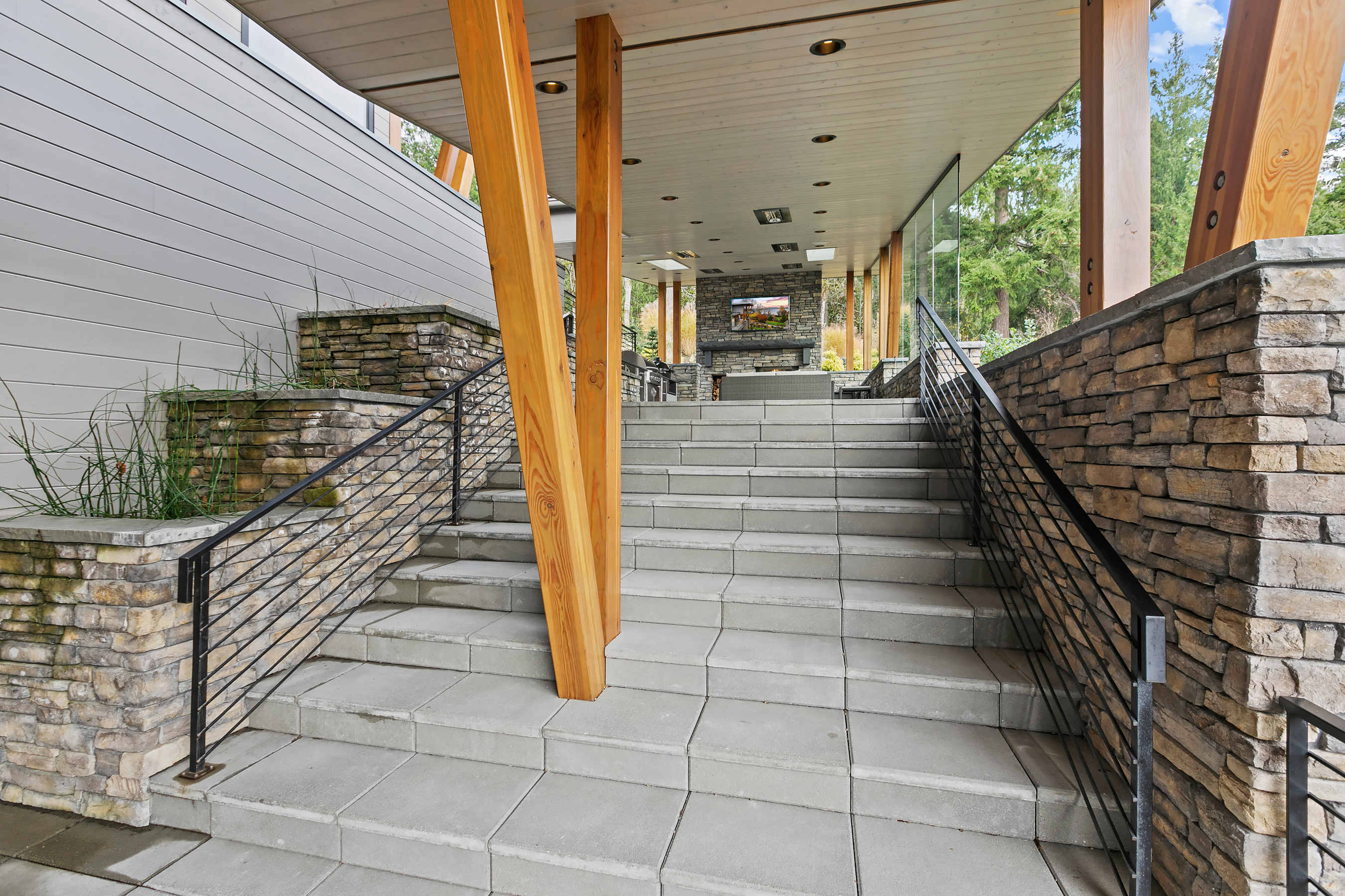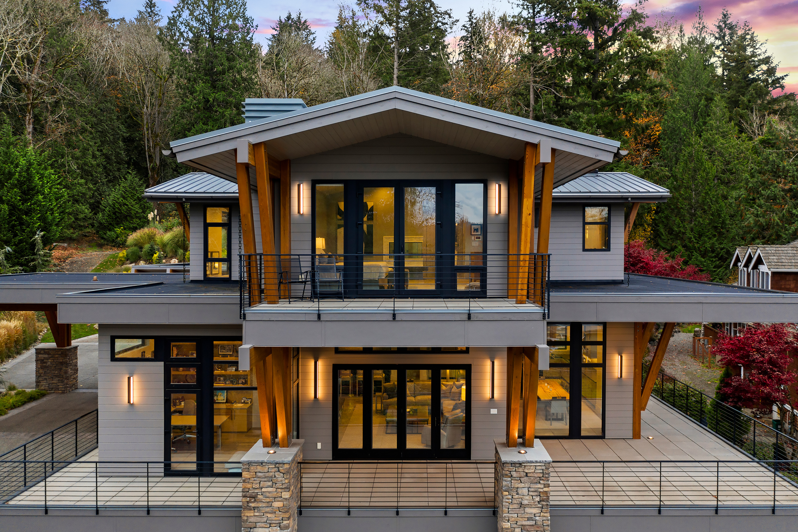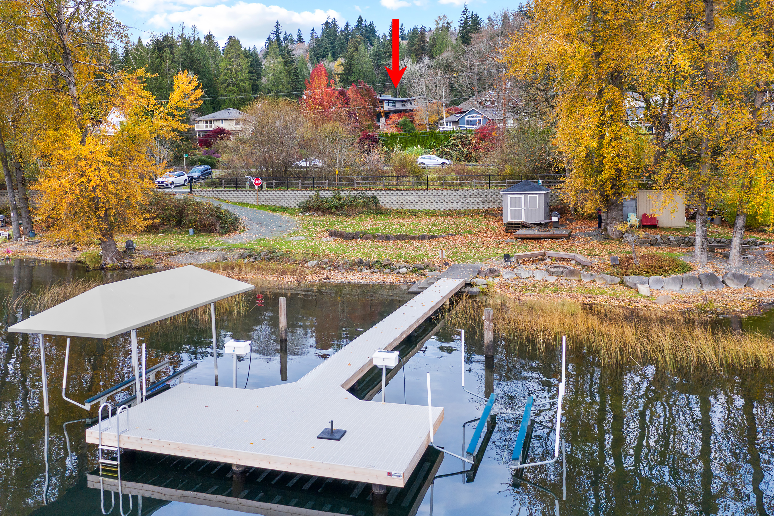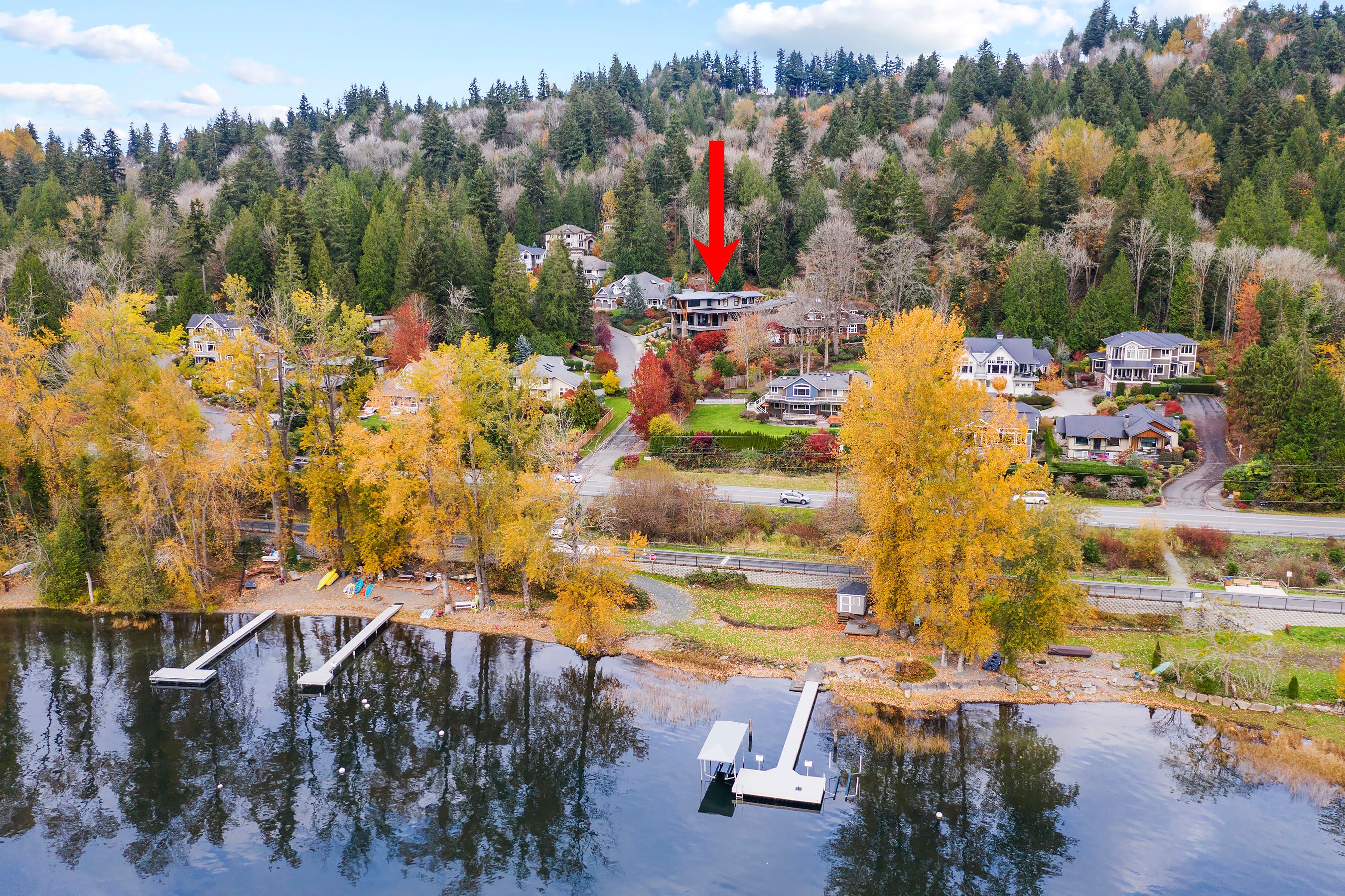 A stunning example of NW Contemporary architecture and design, this custom home with stately exterior features and lovingly crafted finishes, seamlessly incorporates interior and exterior spaces. Showcasing the finest materials within a dramatic open plan showcasing floor to ceiling glass, the residence is infused with natural light. Interior living spaces and patio's face west to provide wide swaths of brilliant lake views and sunsets. Elevated amenities include luxe Kitchen with Butlers pantry, cocktail lounge, outdoor Kitchen w/built-in BBQ, wet bar, outdoor fireplace and 6 car garage. 60-foot waterfront lot with dock and private boat lift is shared with two other homes.