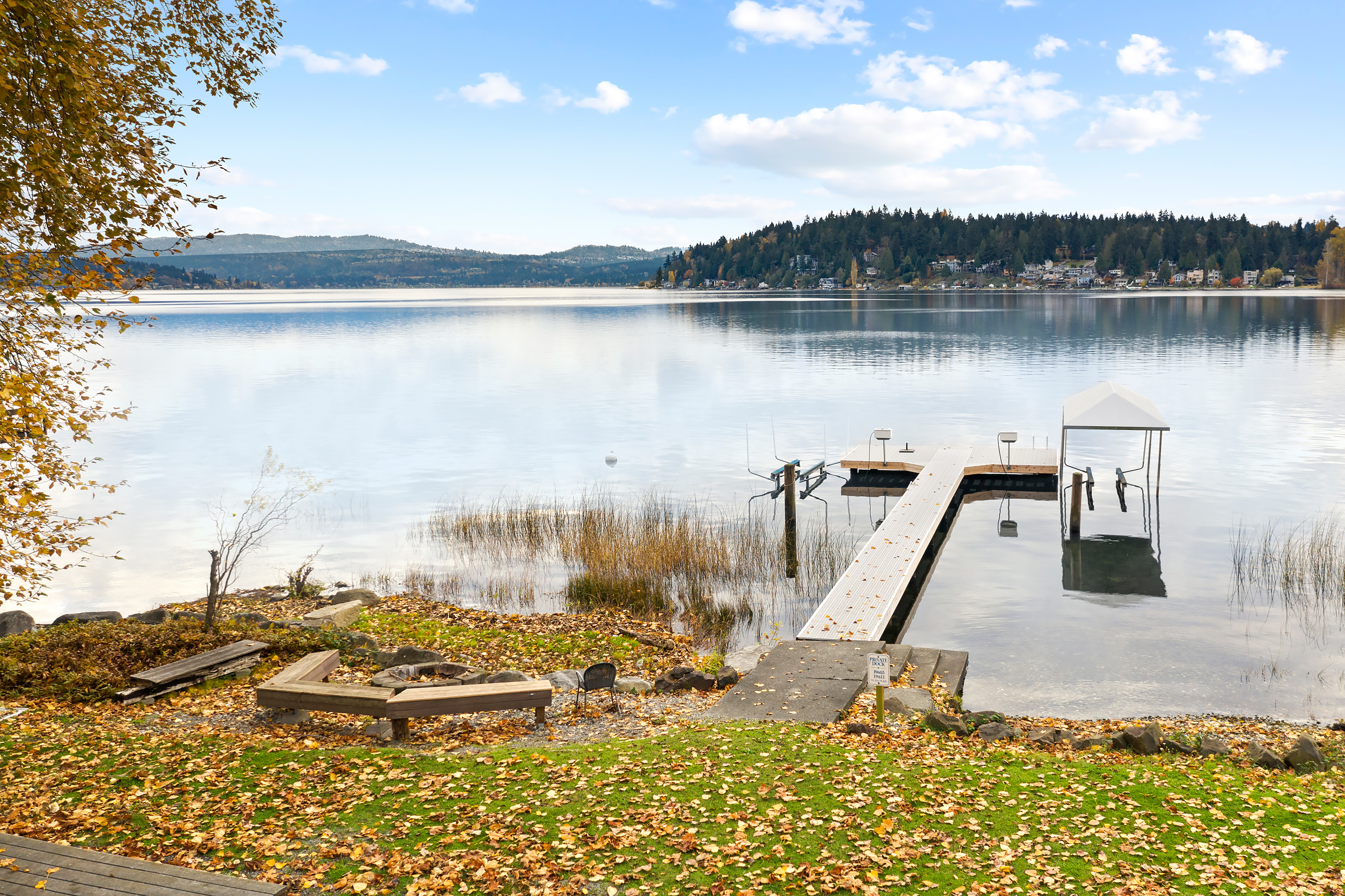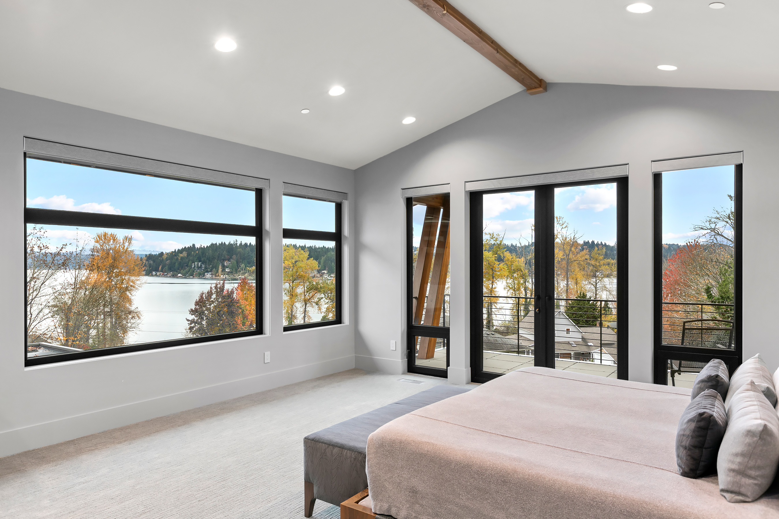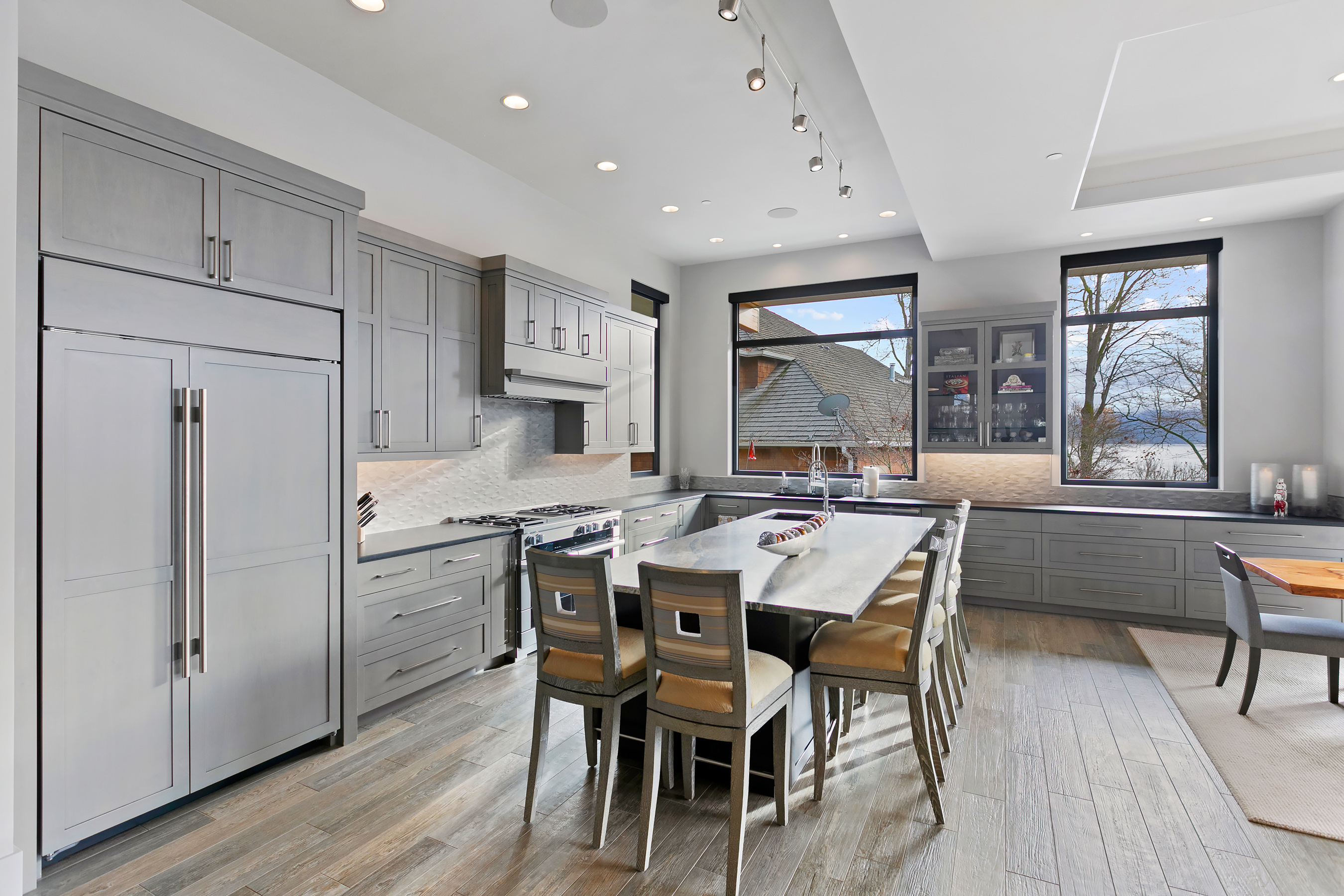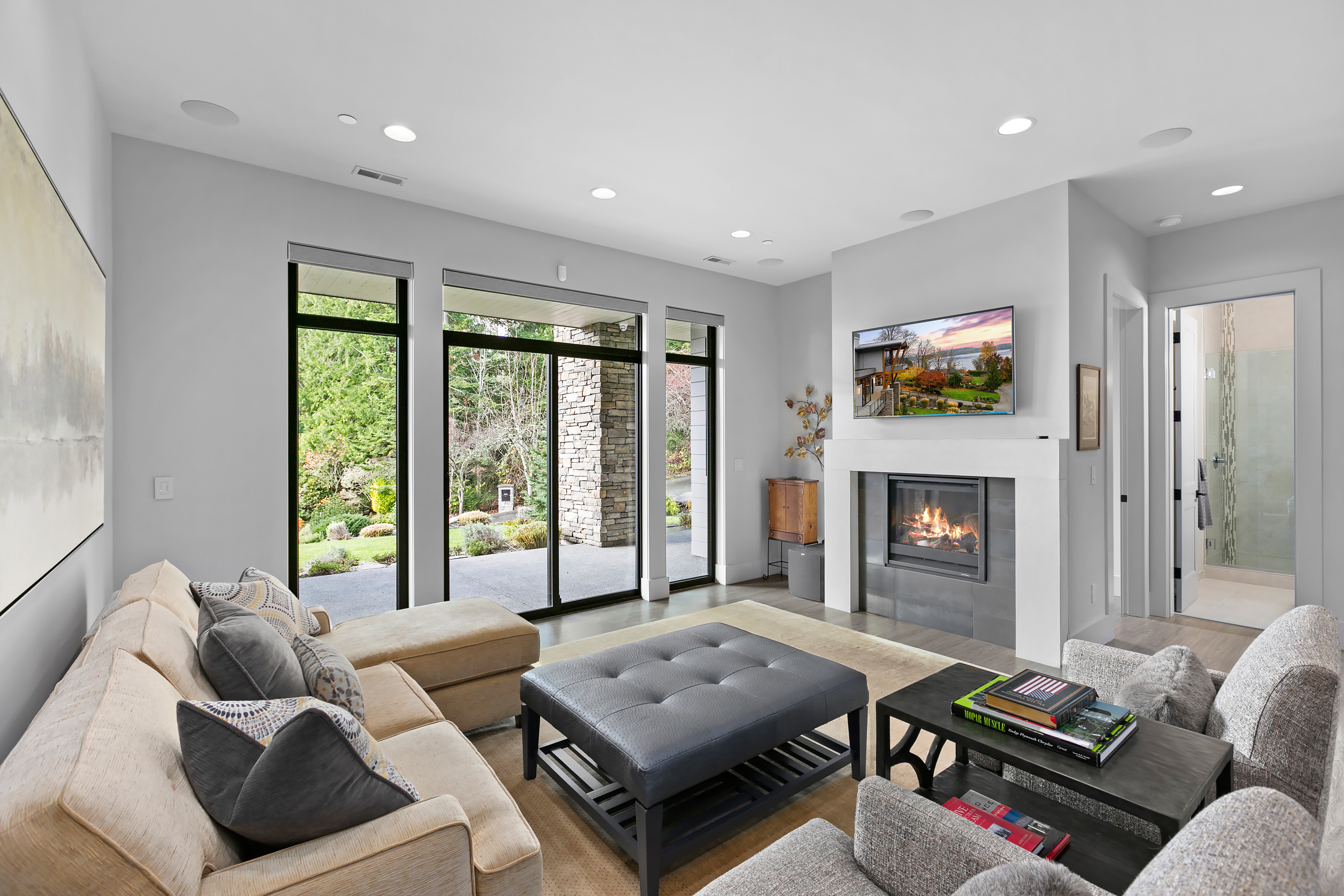 A stunning example of NW Contemporary architecture and design, this custom home with stately exterior features and lovingly crafted finishes, seamlessly incorporates interior and exterior spaces. Showcasing the finest materials within a dramatic open plan showcasing floor to ceiling glass, the residence is infused with natural light. Interior living spaces and patio's face west to provide wide swaths of brilliant lake views and sunsets. Elevated amenities include luxe Kitchen with Butlers pantry, cocktail lounge, outdoor Kitchen w/built-in BBQ, wet bar, outdoor fireplace and 6 car garage. 60-foot waterfront lot with dock and private boat lift is shared with two other homes.