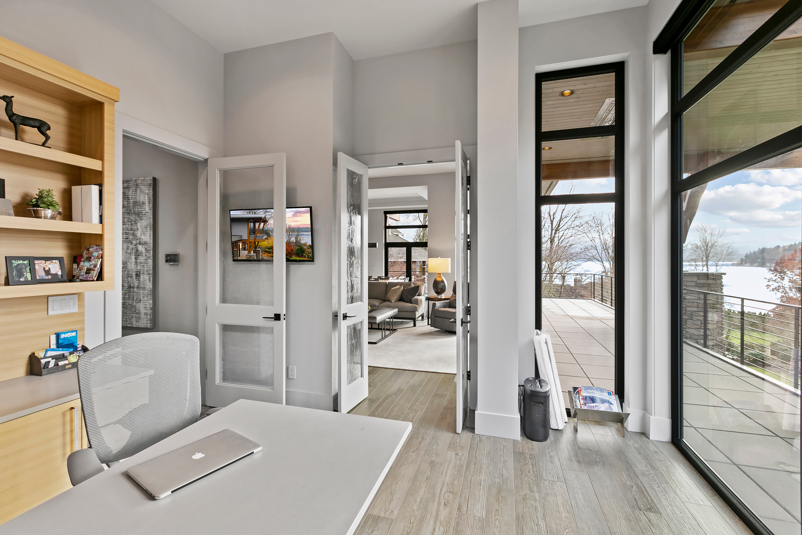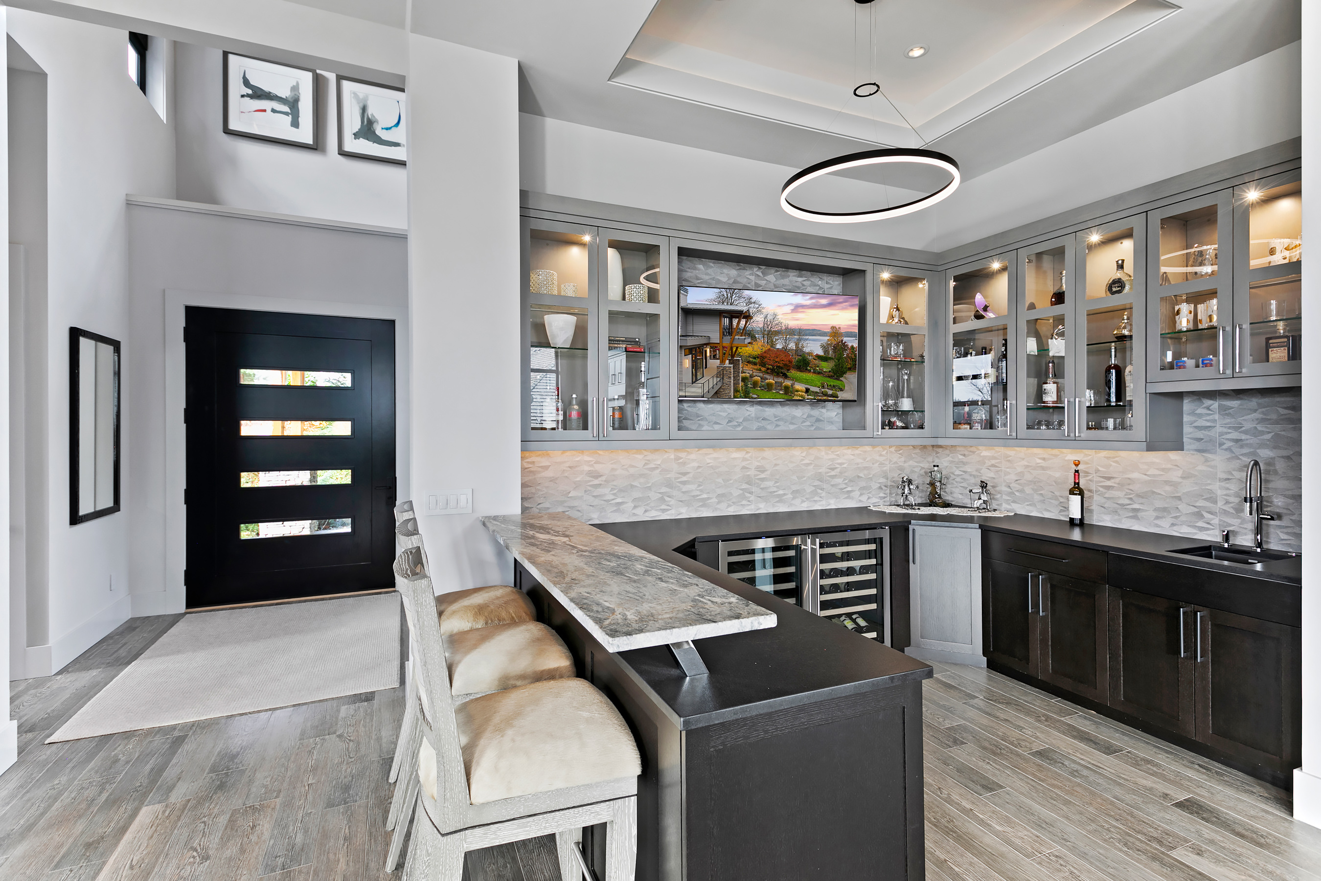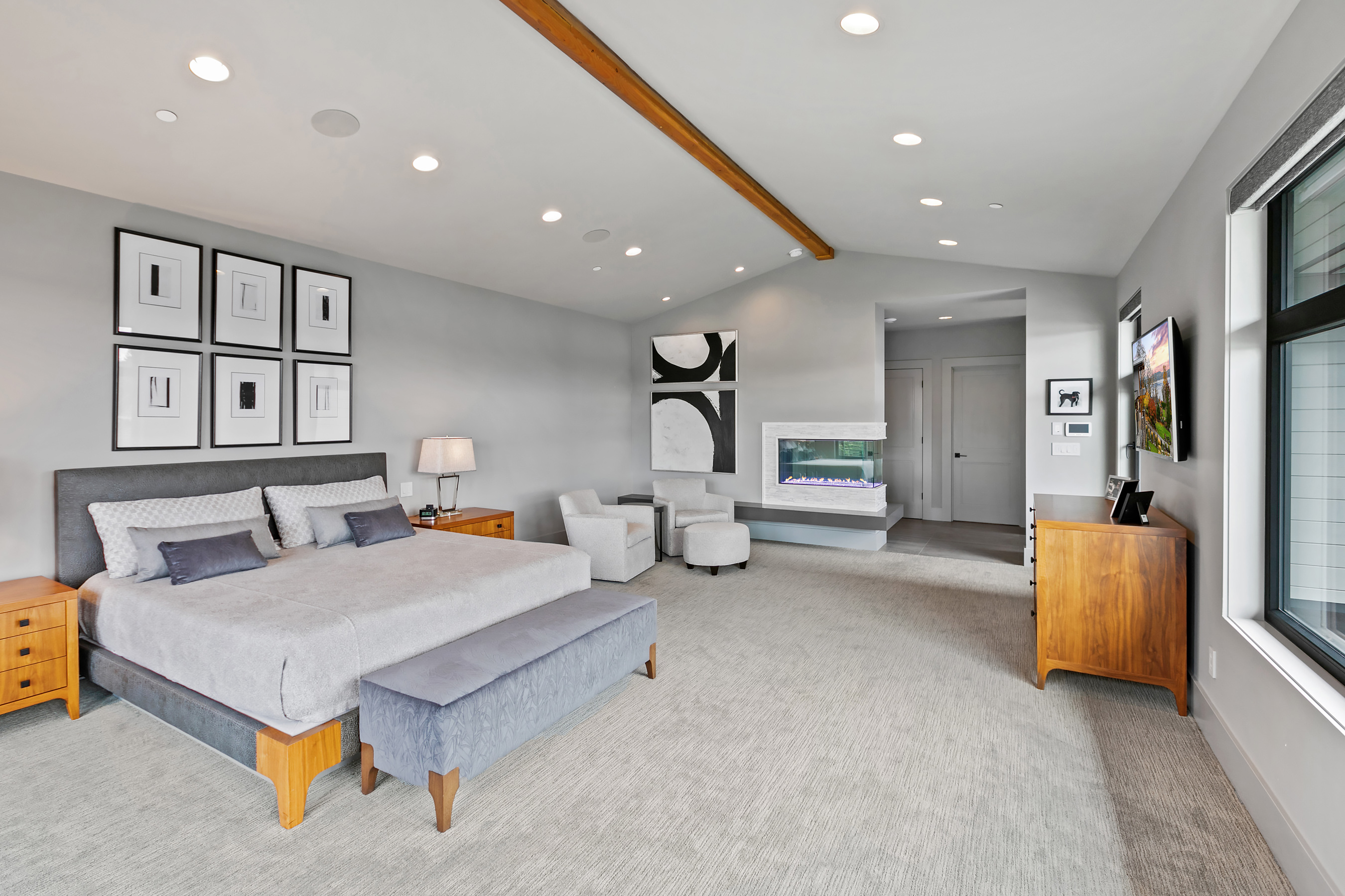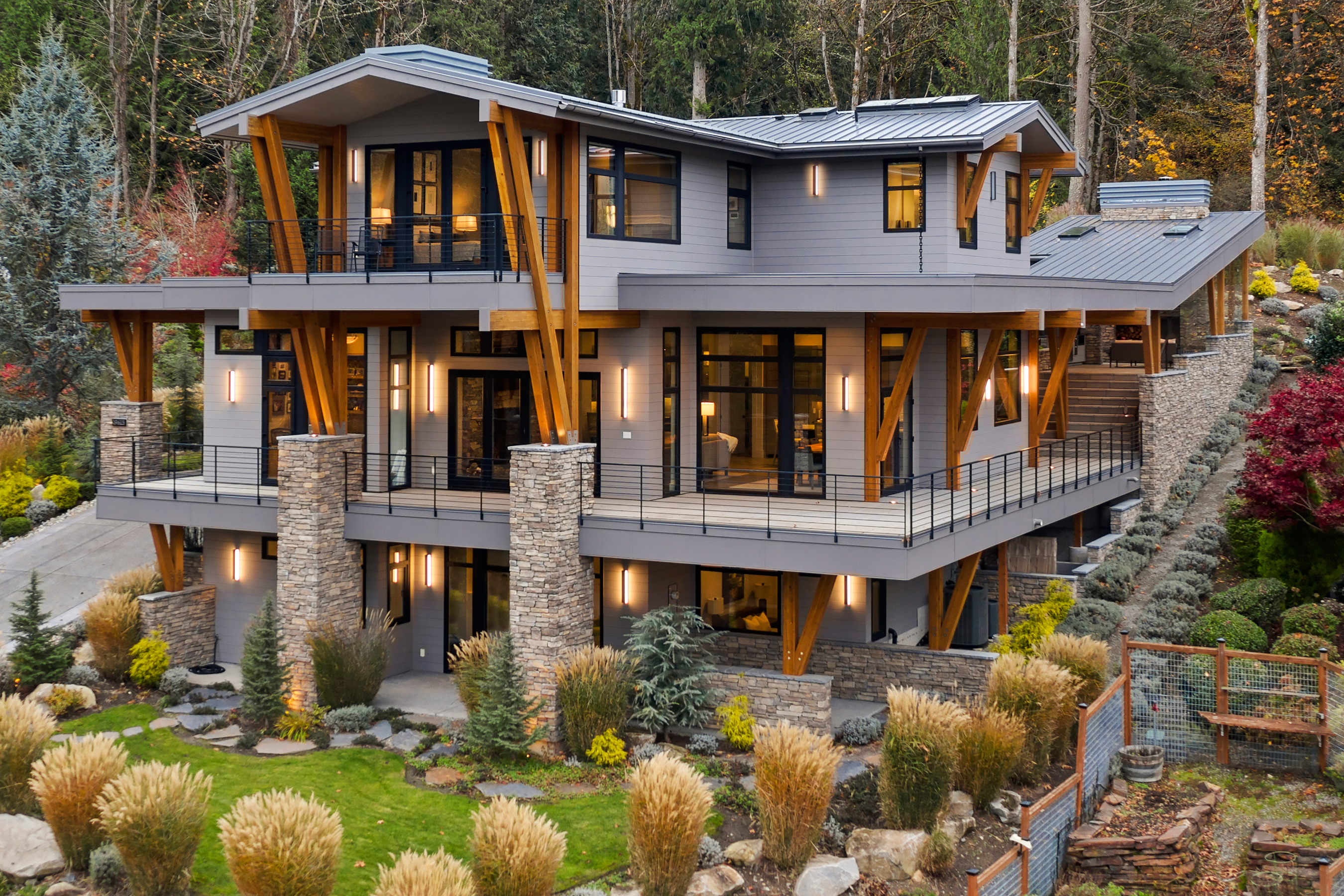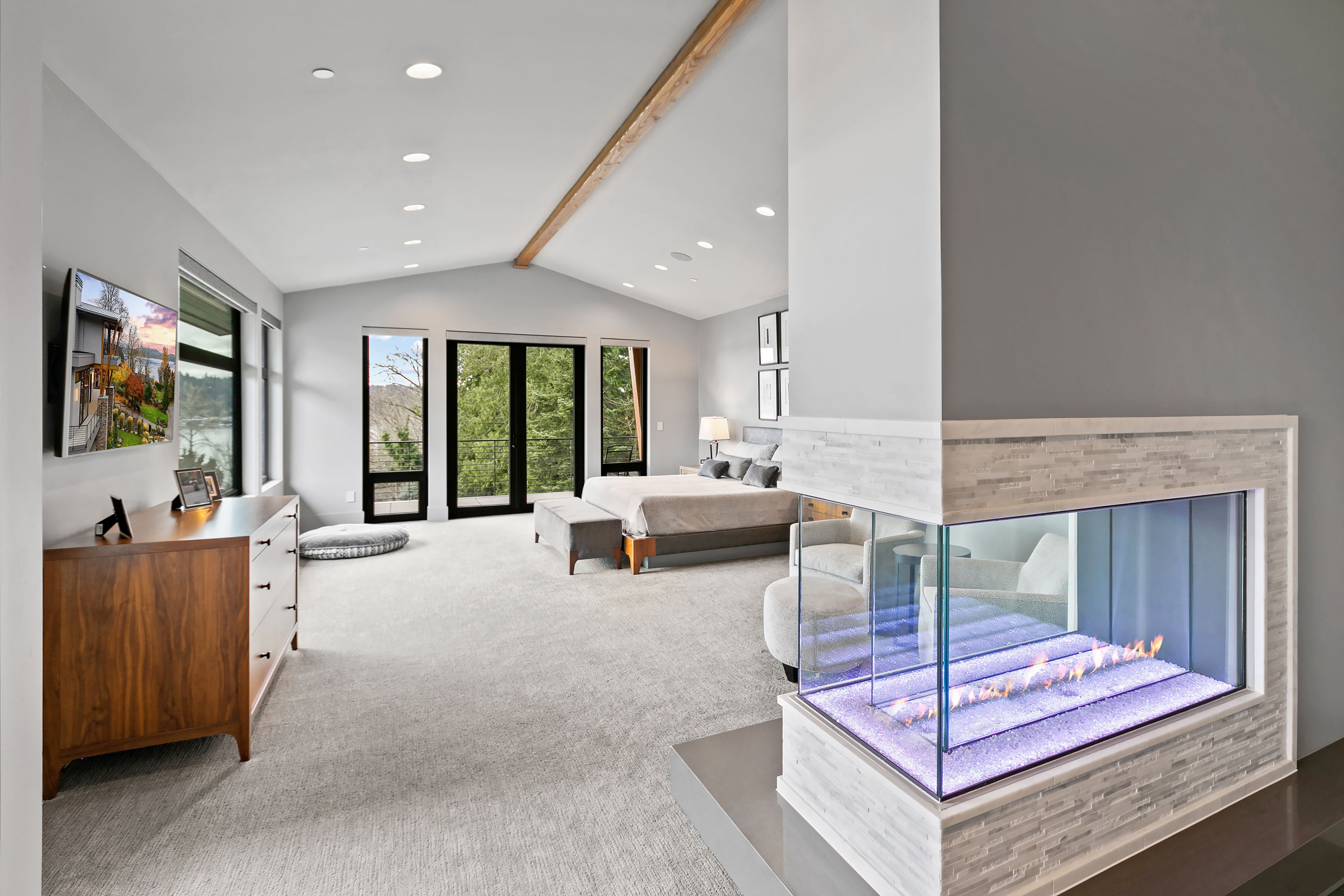 A stunning example of NW Contemporary architecture and design, this custom home with stately exterior features and lovingly crafted finishes, seamlessly incorporates interior and exterior spaces. Showcasing the finest materials within a dramatic open plan showcasing floor to ceiling glass, the residence is infused with natural light. Interior living spaces and patio's face west to provide wide swaths of brilliant lake views and sunsets. Elevated amenities include luxe Kitchen with Butlers pantry, cocktail lounge, outdoor Kitchen w/built-in BBQ, wet bar, outdoor fireplace and 6 car garage. 60-foot waterfront lot with dock and private boat lift is shared with two other homes.