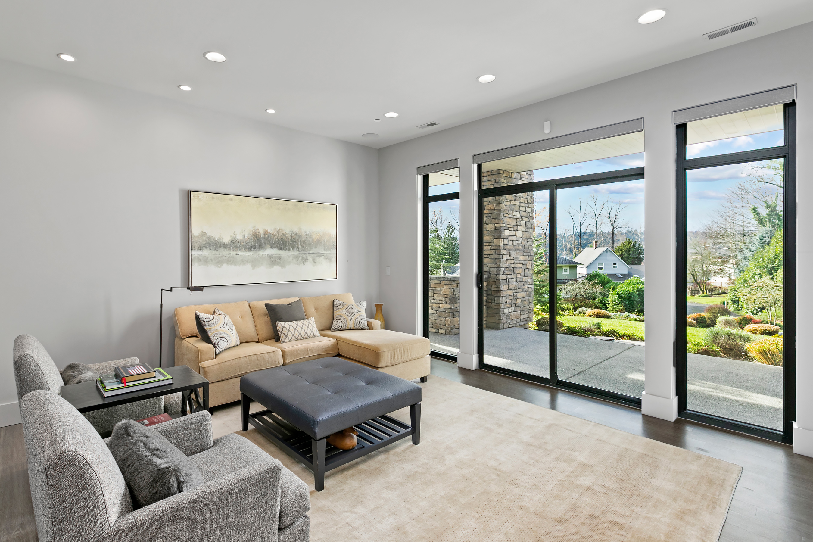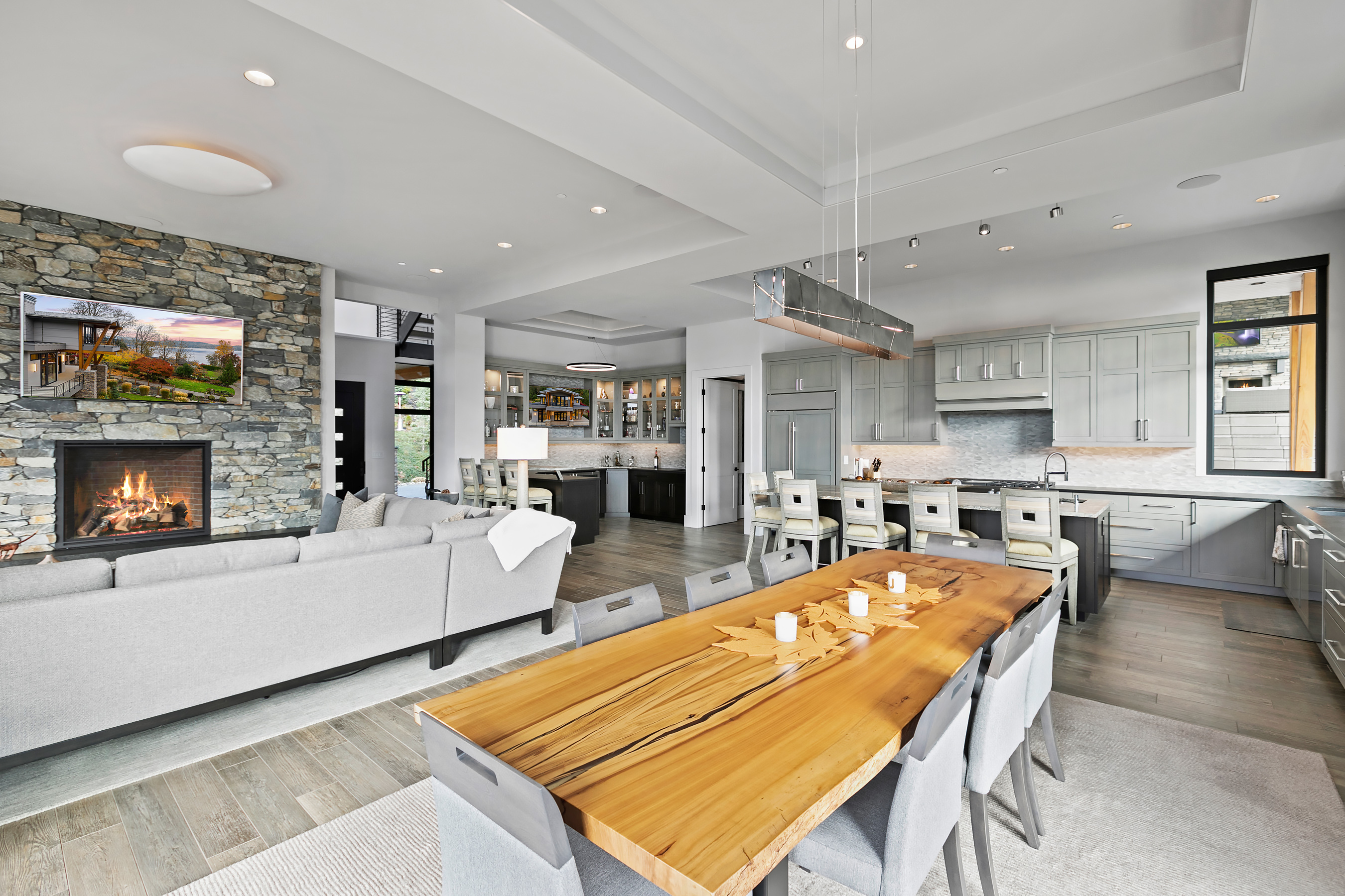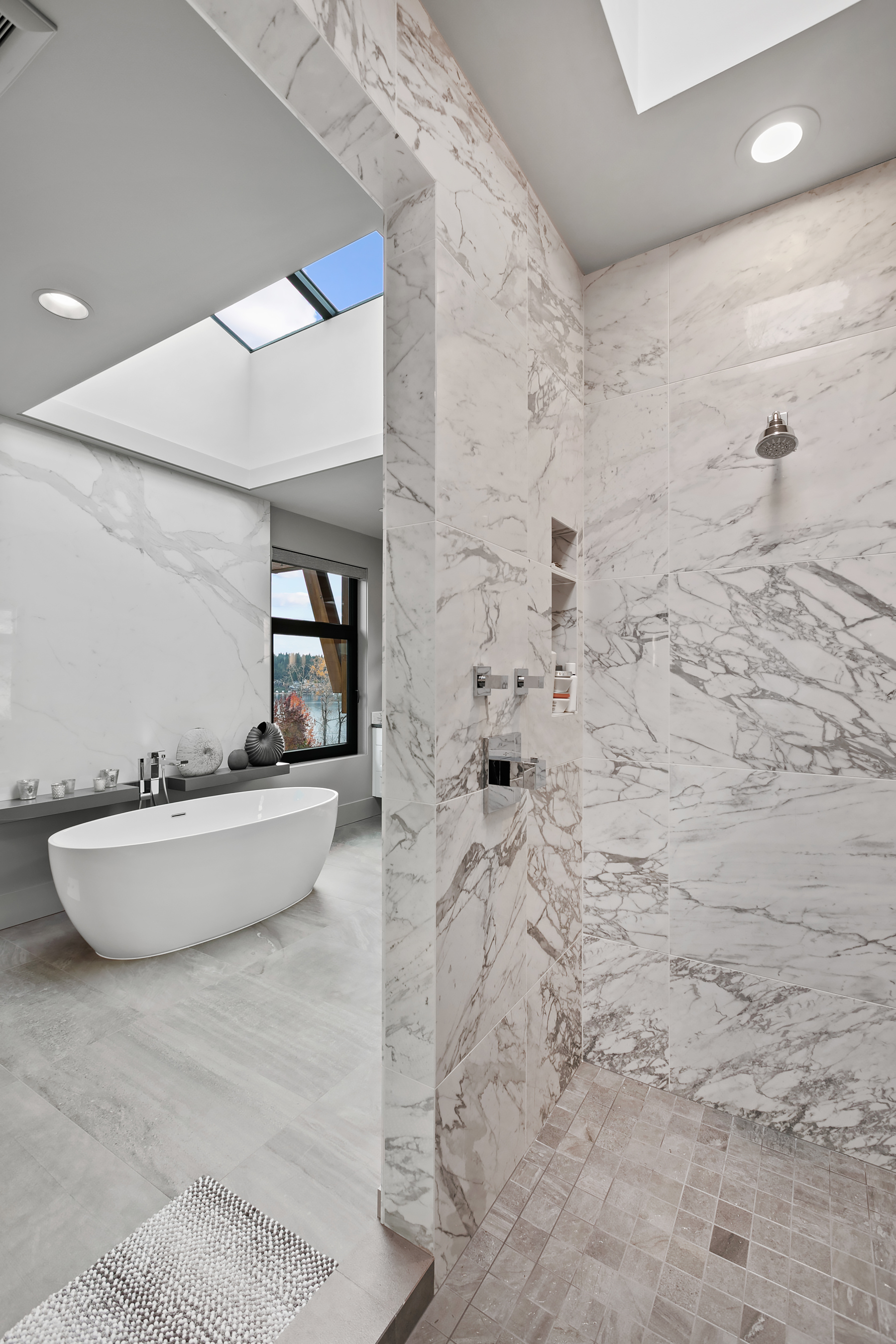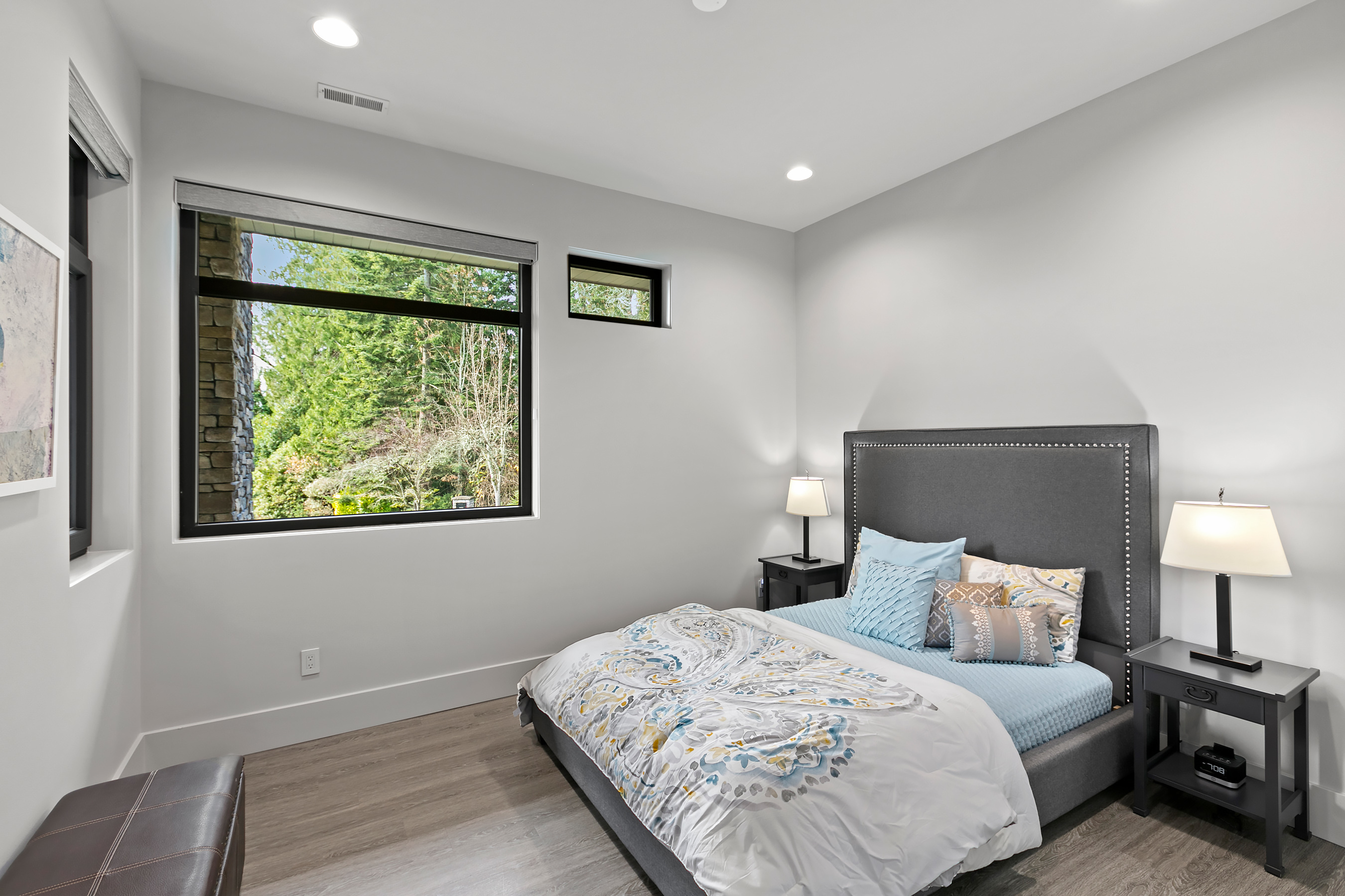 A stunning example of NW Contemporary architecture and design, this custom home with stately exterior features and lovingly crafted finishes, seamlessly incorporates interior and exterior spaces. Showcasing the finest materials within a dramatic open plan showcasing floor to ceiling glass, the residence is infused with natural light. Interior living spaces and patio's face west to provide wide swaths of brilliant lake views and sunsets. Elevated amenities include luxe Kitchen with Butlers pantry, cocktail lounge, outdoor Kitchen w/built-in BBQ, wet bar, outdoor fireplace and 6 car garage. 60-foot waterfront lot with dock and private boat lift is shared with two other homes.