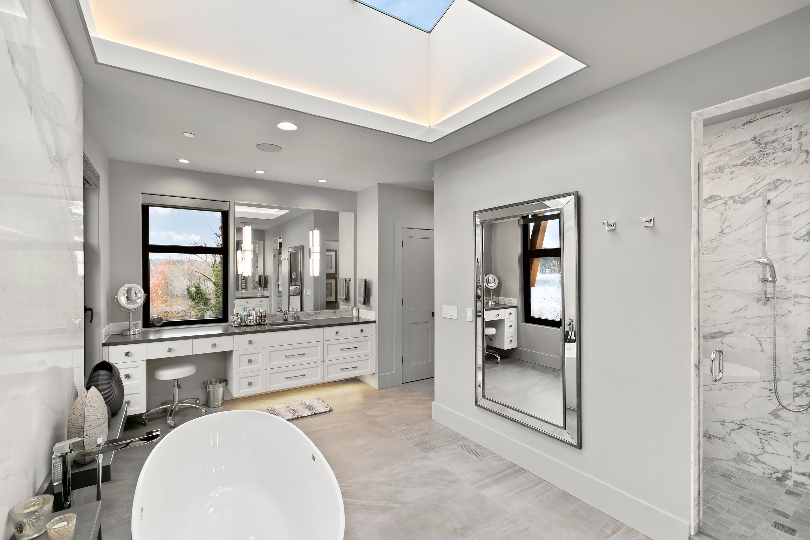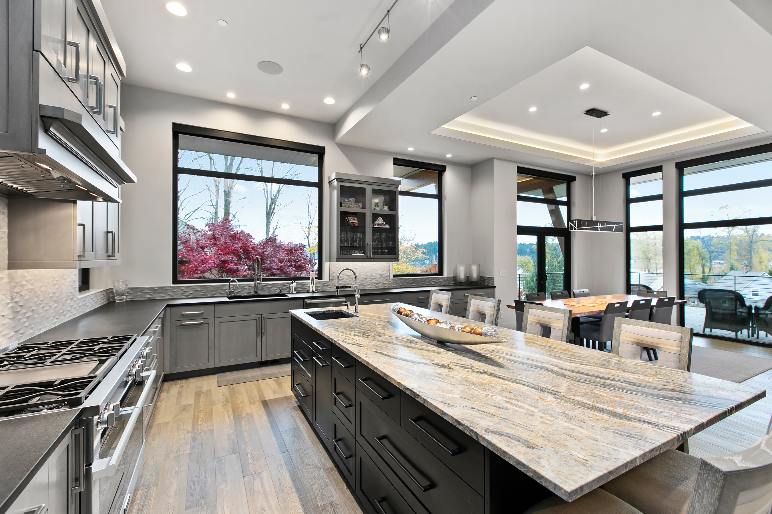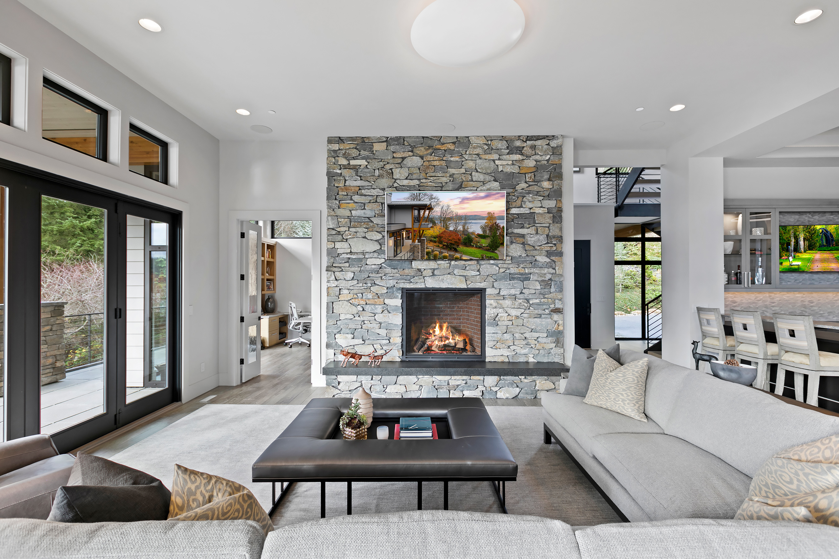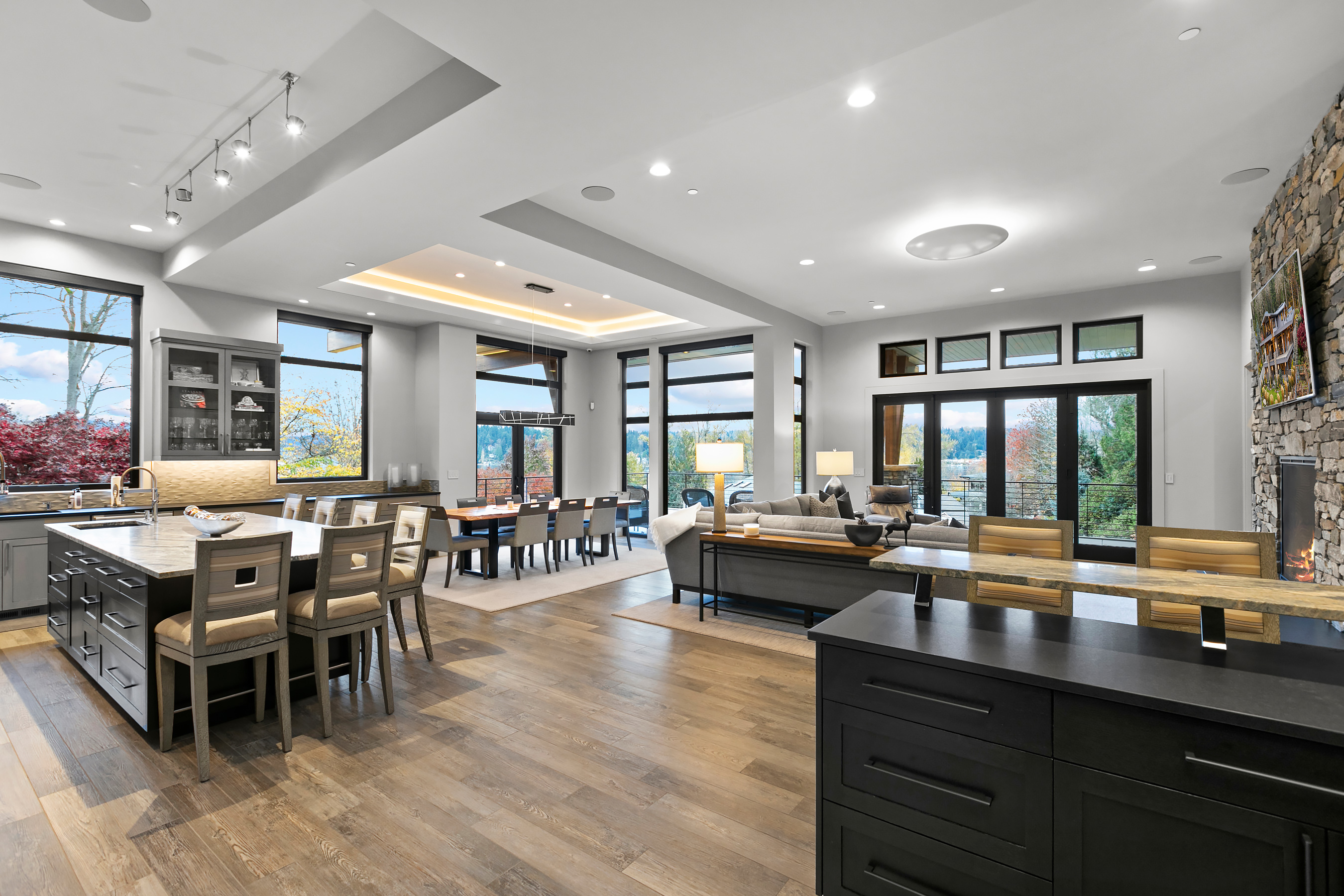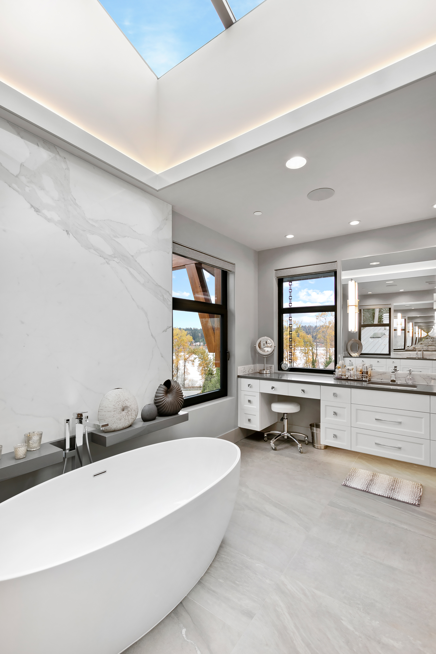 A stunning example of NW Contemporary architecture and design, this custom home with stately exterior features and lovingly crafted finishes, seamlessly incorporates interior and exterior spaces. Showcasing the finest materials within a dramatic open plan showcasing floor to ceiling glass, the residence is infused with natural light. Interior living spaces and patio's face west to provide wide swaths of brilliant lake views and sunsets. Elevated amenities include luxe Kitchen with Butlers pantry, cocktail lounge, outdoor Kitchen w/built-in BBQ, wet bar, outdoor fireplace and 6 car garage. 60-foot waterfront lot with dock and private boat lift is shared with two other homes.