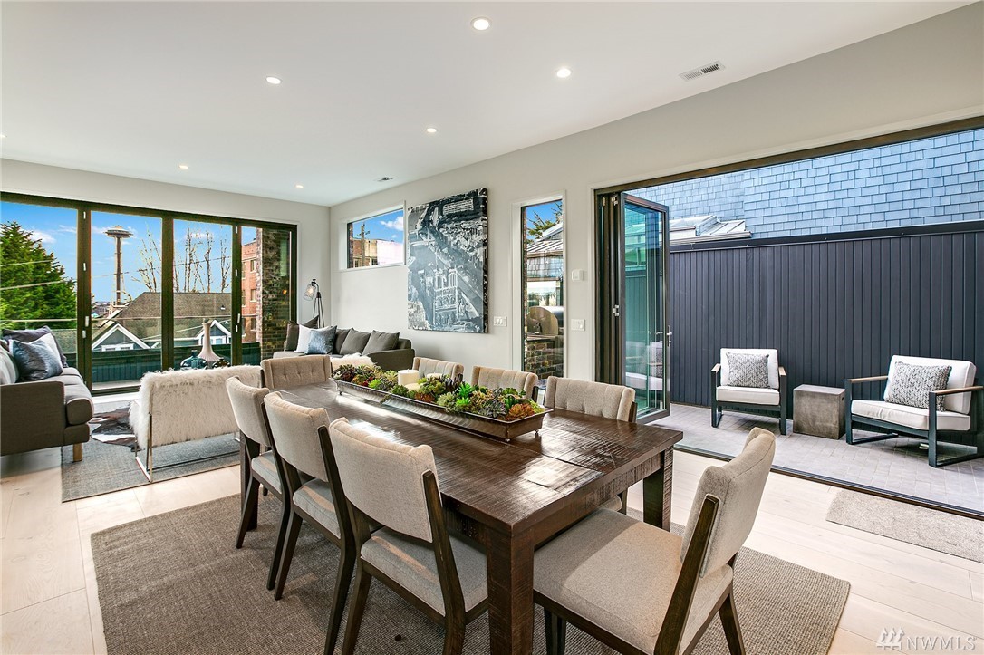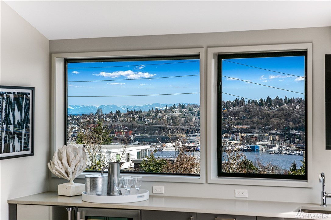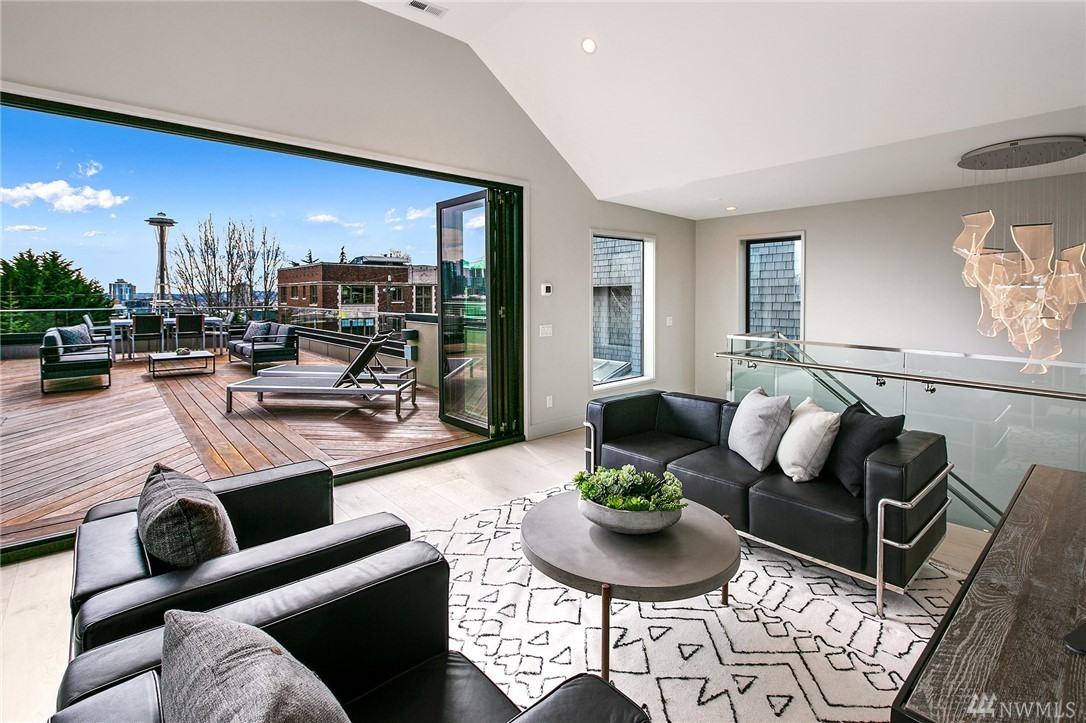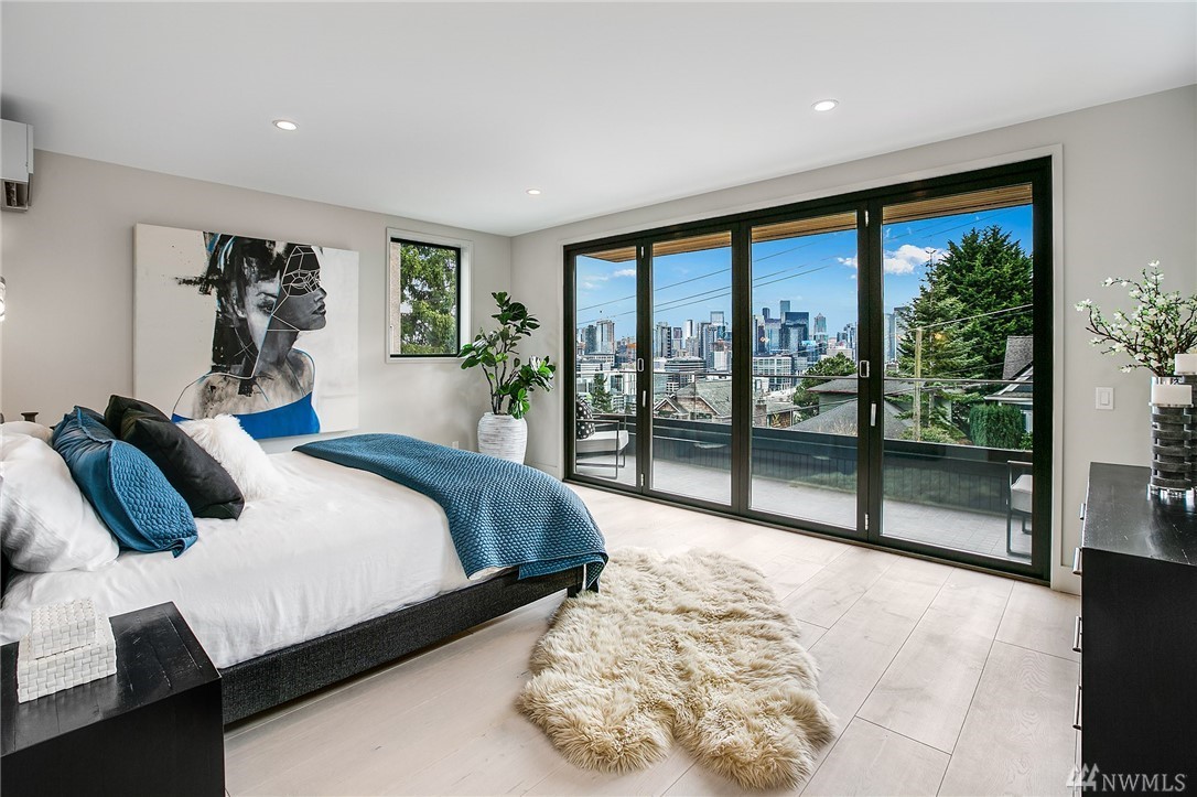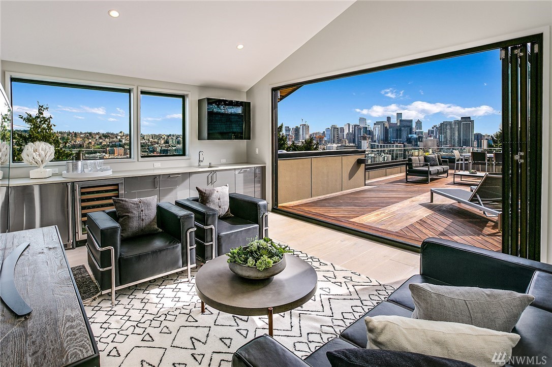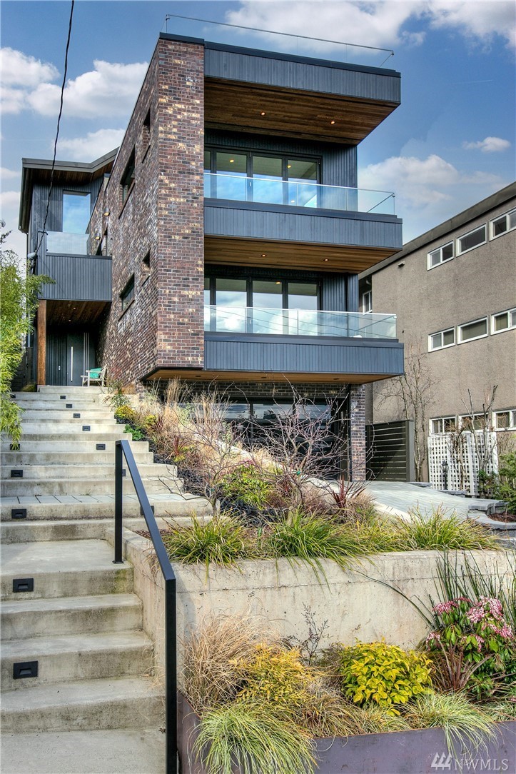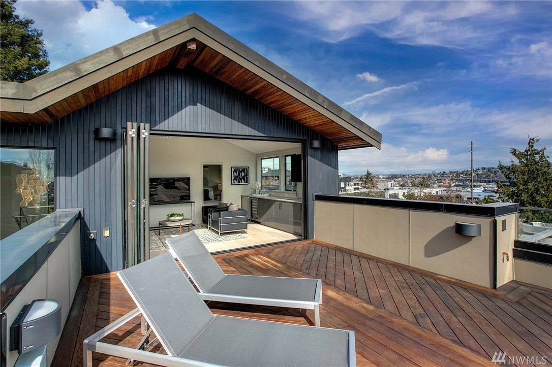 Superb finishes and design are showcased in this modern Queen Anne luxury home by Eugene Sherman. High ceilings, sweeping open La Cantina nanowalls of windows to multiple outdoor decks, and floating stairs allow light through every space. Views of iconic Seattle are from 3 levels; Space Needle, lake, Sound & mountains. Modern Pedini kitchen with visible wine cellar and open living space empower you to entertain or relax your eyes over the city. Top floor penthouses style gathering space includes roof deck with herringbone IPE floors, wet bar & 3rd bedroom suite. Master on the entry level is livable and convenient. Gen Suite/ADU in lower level. 2 car garage plus driveway parking. South Slope has always been the dream; make it your reality.