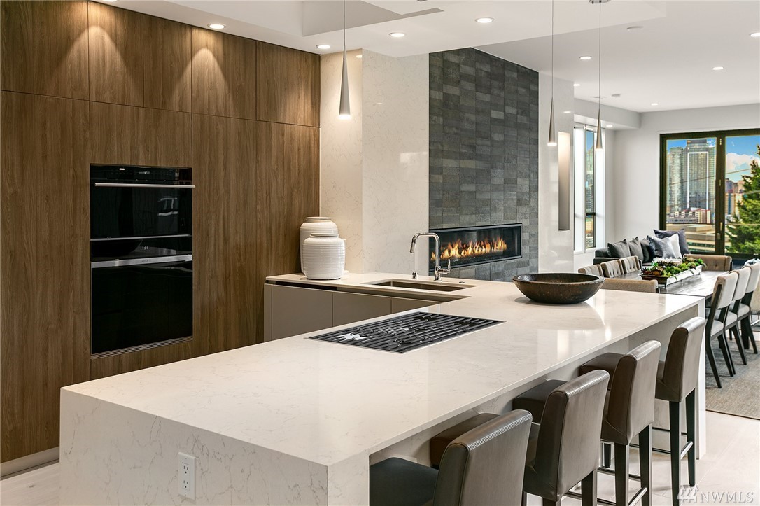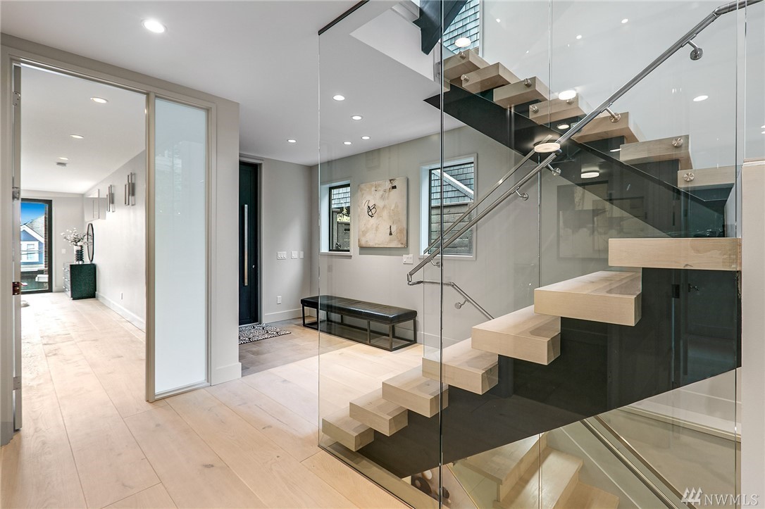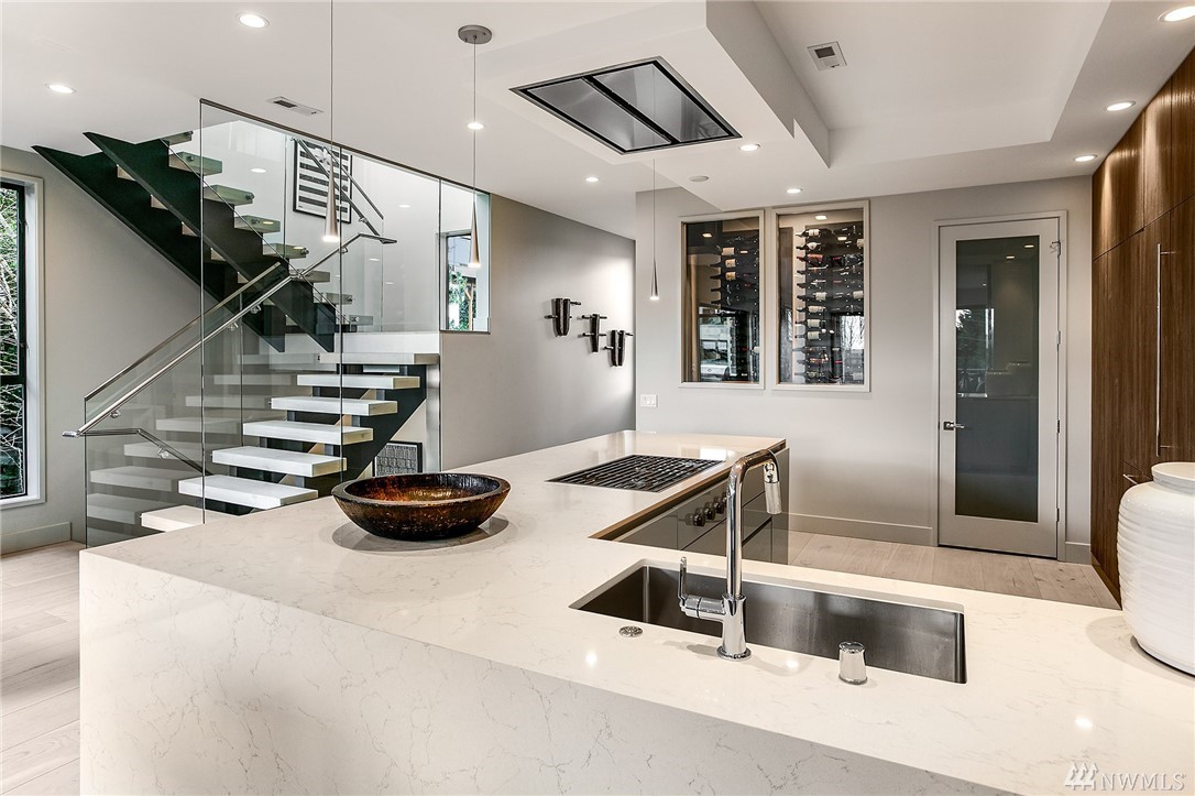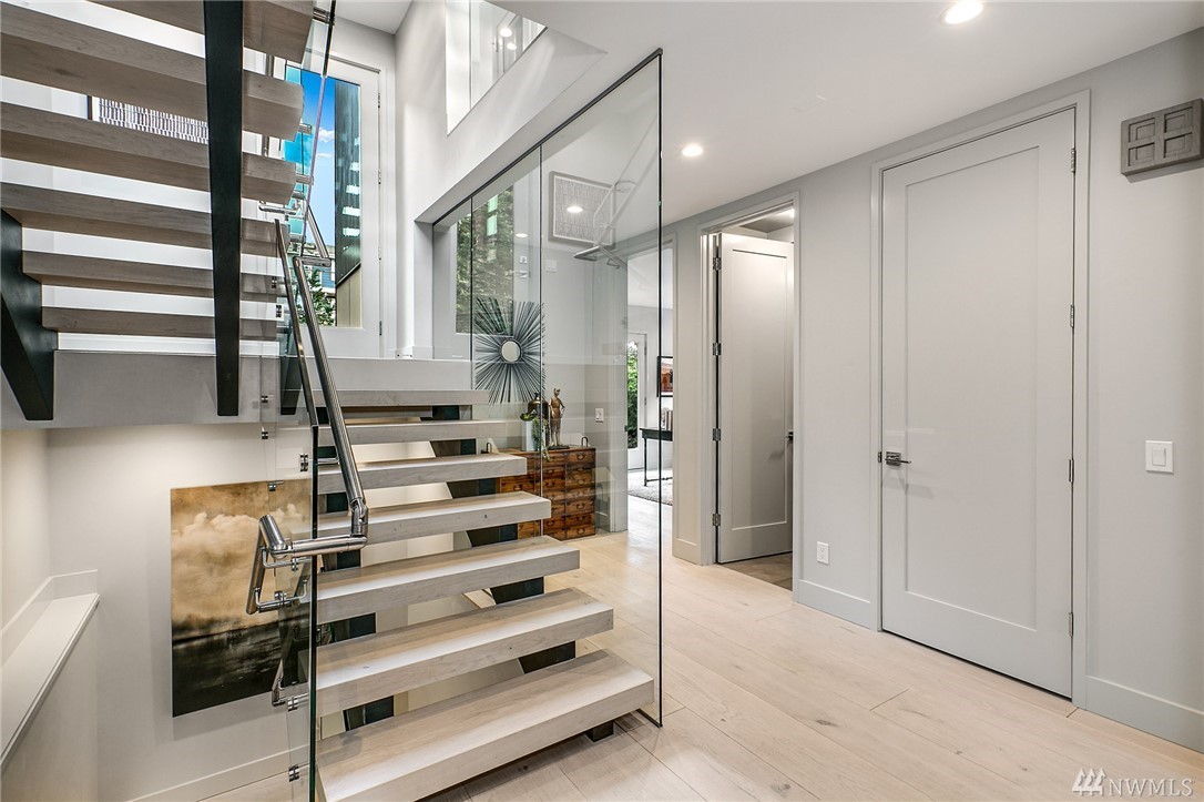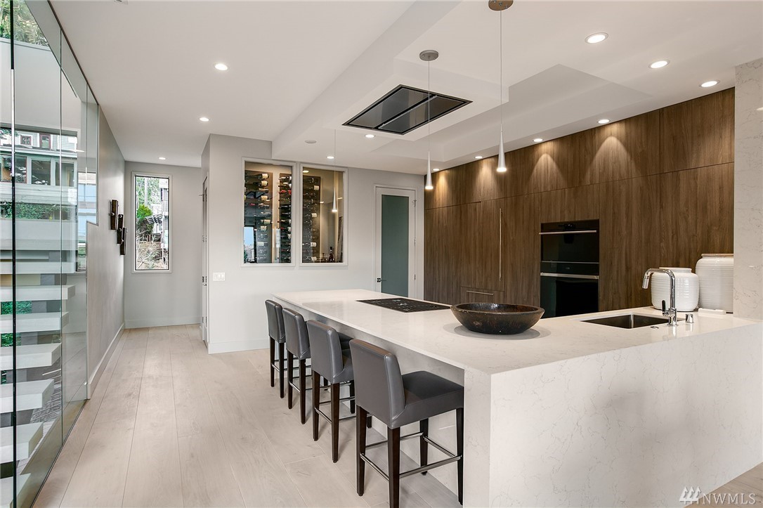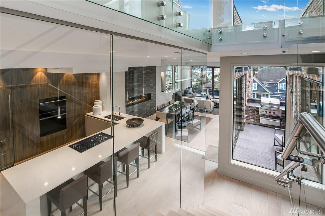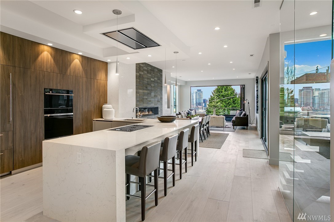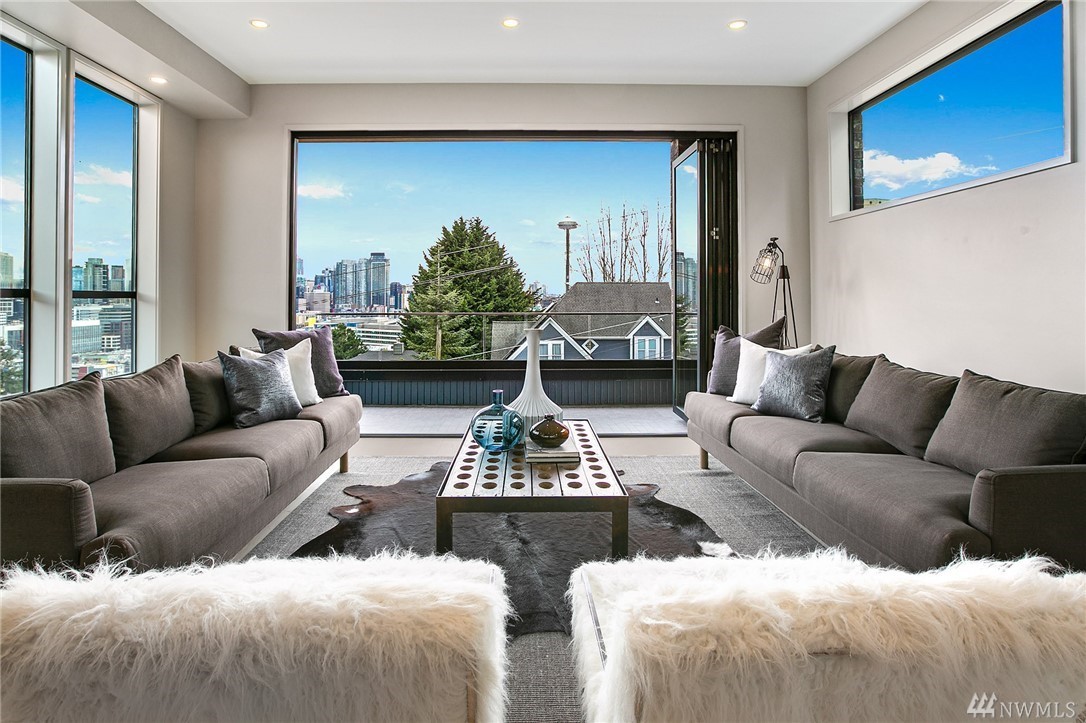 Superb finishes and design are showcased in this modern Queen Anne luxury home by Eugene Sherman. High ceilings, sweeping open La Cantina nanowalls of windows to multiple outdoor decks, and floating stairs allow light through every space. Views of iconic Seattle are from 3 levels; Space Needle, lake, Sound & mountains. Modern Pedini kitchen with visible wine cellar and open living space empower you to entertain or relax your eyes over the city. Top floor penthouses style gathering space includes roof deck with herringbone IPE floors, wet bar & 3rd bedroom suite. Master on the entry level is livable and convenient. Gen Suite/ADU in lower level. 2 car garage plus driveway parking. South Slope has always been the dream; make it your reality.