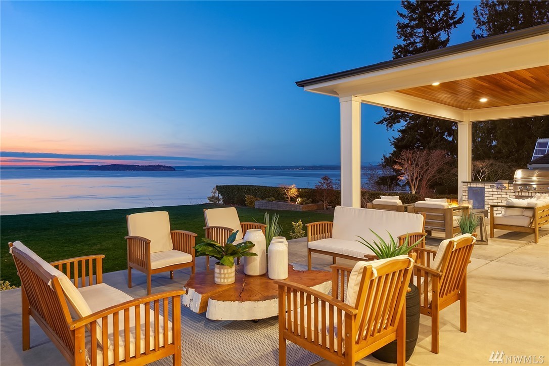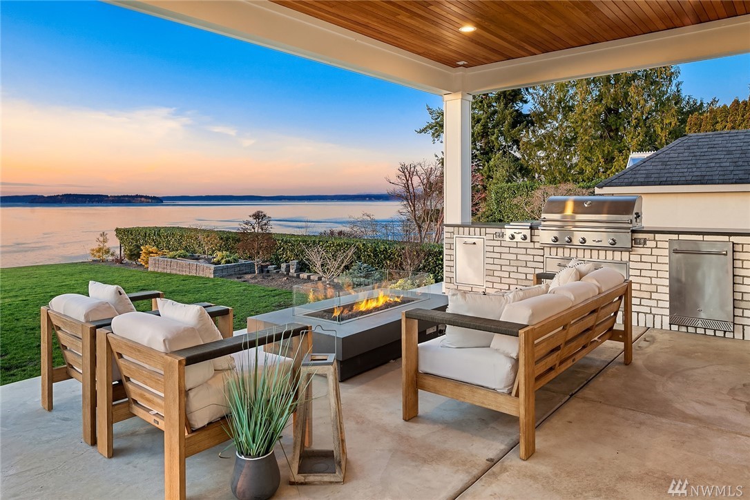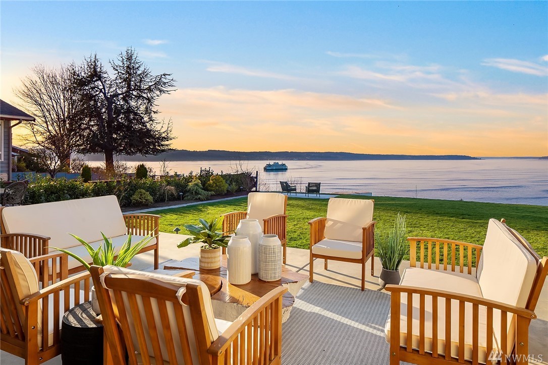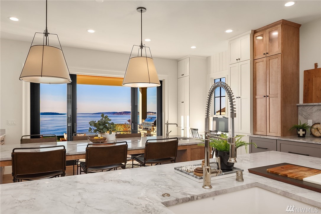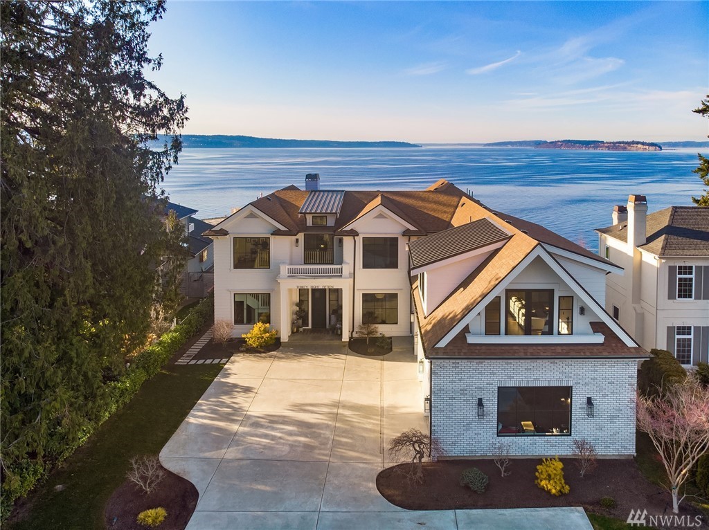 High style combined with brilliant views throughout this custom-built home! Maximize entertaining with the waterside terrace which extends from the magazine quality open concept main. Ultimate kitchen: quartzite double islands, massive Subzero, 8 gas range! Walls of windows; Sound, Mountains, Whidbey, and the Mukilteo ferry. The colors of sunset stream into the generous spaces of every room. Impressive architectural nuances and built-ins throughout. Navy accents add drama. Showcase Master suite with an epic closet and spa-bath. Unmatched private setting. Living here is an inspiration.