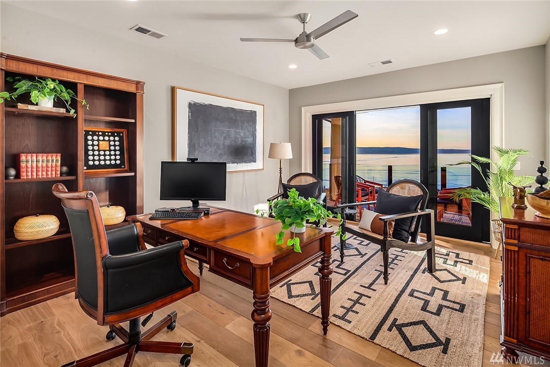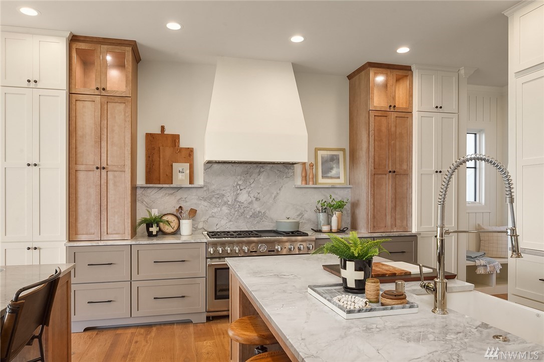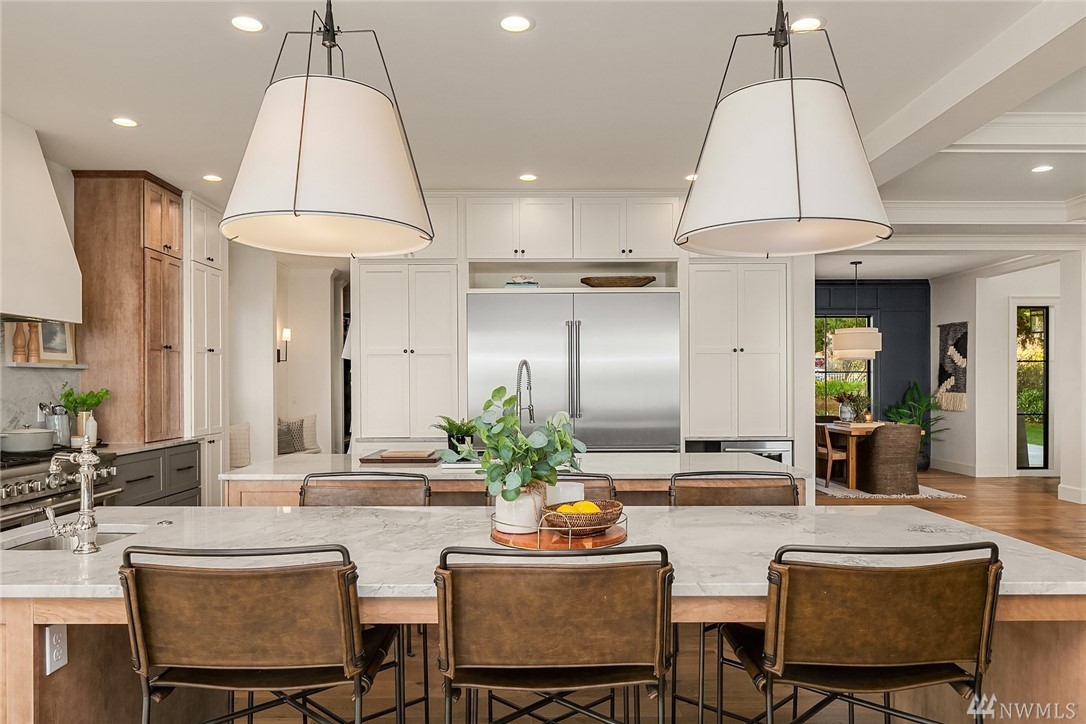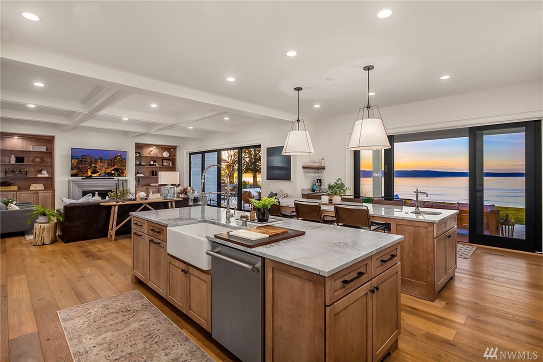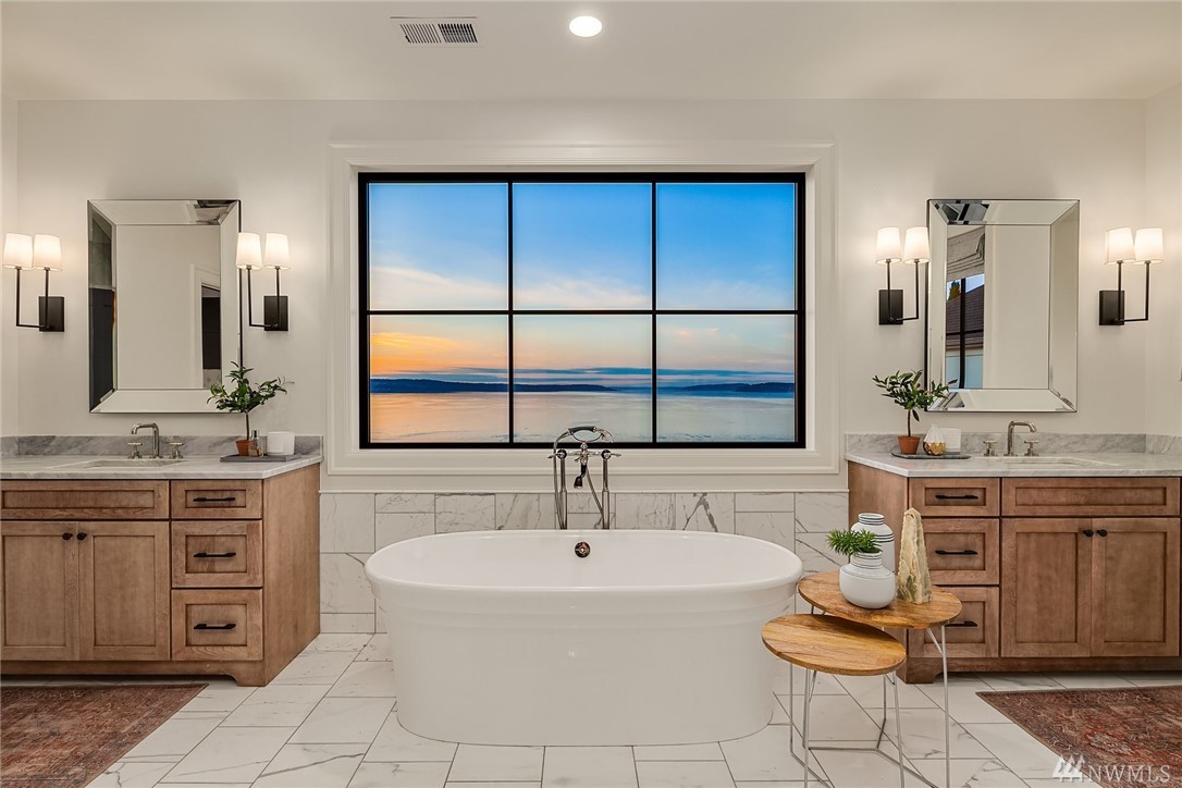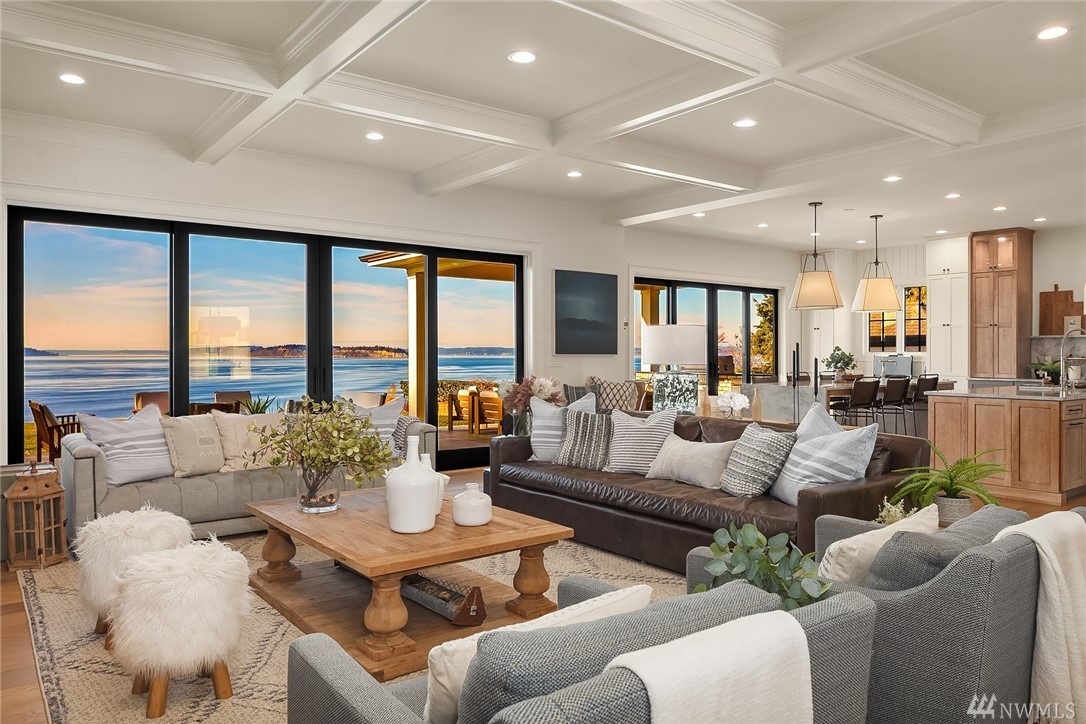 High style combined with brilliant views throughout this custom-built home! Maximize entertaining with the waterside terrace which extends from the magazine quality open concept main. Ultimate kitchen: quartzite double islands, massive Subzero, 8 gas range! Walls of windows; Sound, Mountains, Whidbey, and the Mukilteo ferry. The colors of sunset stream into the generous spaces of every room. Impressive architectural nuances and built-ins throughout. Navy accents add drama. Showcase Master suite with an epic closet and spa-bath. Unmatched private setting. Living here is an inspiration.
