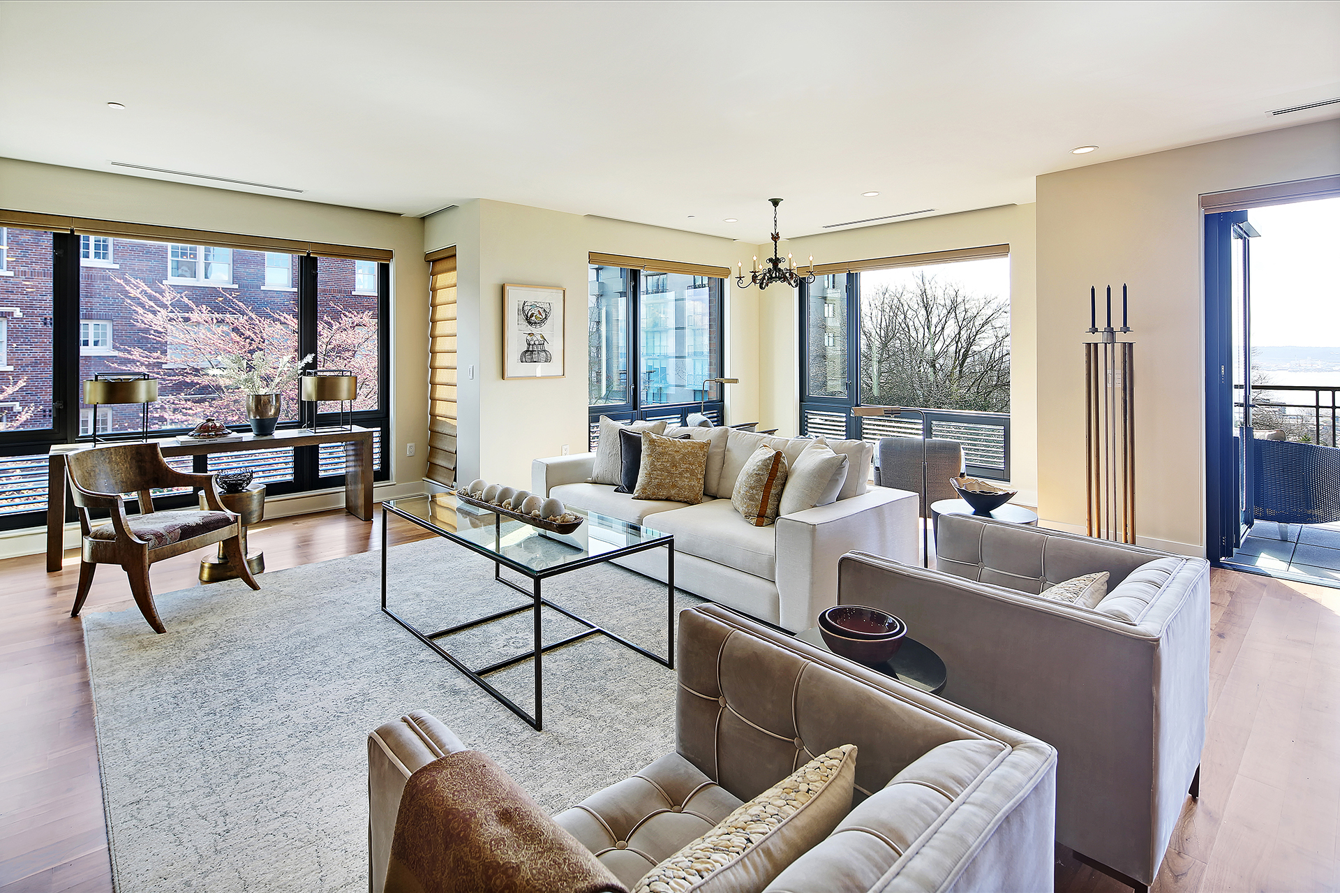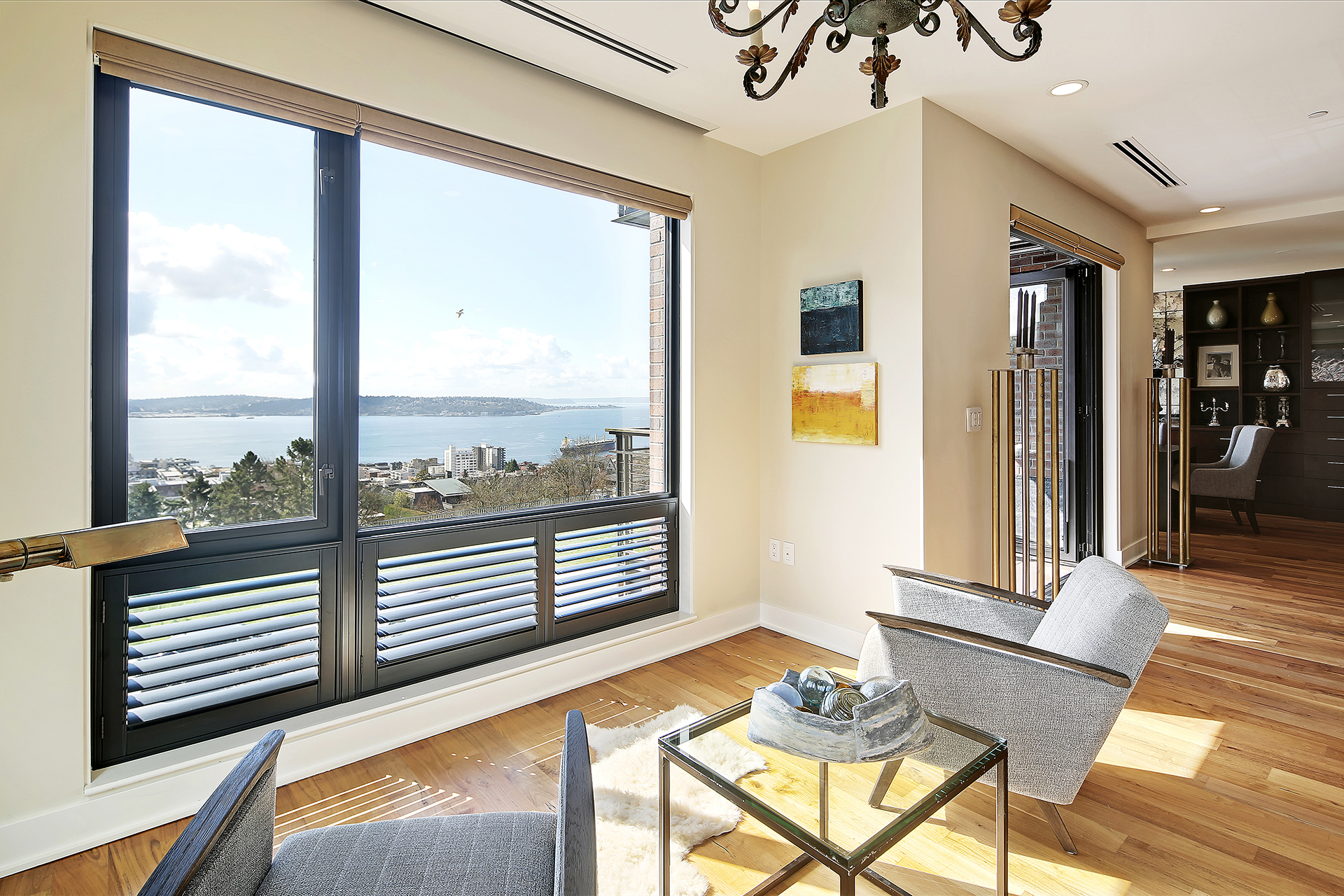 Extremely rare 3 bed, 3 bath condominium located in arguably the best, most private and prestigious bldg in Seattle. This luxurious concrete-and-steel building is the grande dame of in-city residences. With views overlooking historic Kerry Park, Puget Sound, Alki & the Olympics, the most photographed viewpoint of the Seattle skyline is front and center. This expansive home has been beautifully updated with Wolf, Miele and SubZero appliances, custom cabinetry & shutters, and desirable smart home features. Highly walkable, close to celebrated QA restaurants, shops, and cultural events at Seattle Center; all this vibrant city has to offer is minutes away. Pet friendly, A/C, 2 side-by-side pkg spots, XL storage space, gym, onsite concierge.