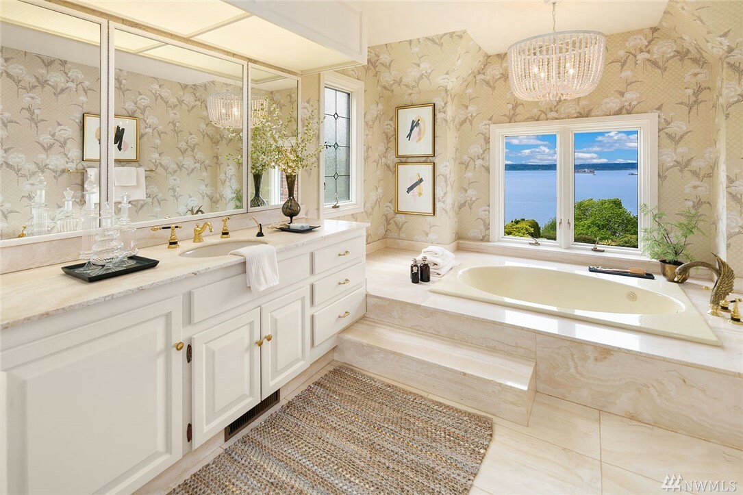 The “Edgecliff” estate, as named by the original owners, is guaranteed to take your breath away. The elegance and quality of a 1920’s legacy home seamlessly blends with approachable modern living and privacy on this massive 1-acre lot. Arrive in your stately circular drive and step inside to jaw-dropping views from almost every room. The gracious main floor celebrates indoor-to-outdoor living, drawing you to the luxuriously landscaped grounds framing dramatic sunsets over Puget Sound, flying bald eagles & iconic ferries. Inside, charm of period details mixes with an ideal layout: main floor living spaces with 4 bedrooms, 4 baths upstairs plus a MIL apt above the 3-car garage. Downstairs is a spacious media room & “speakeasy” wine room.