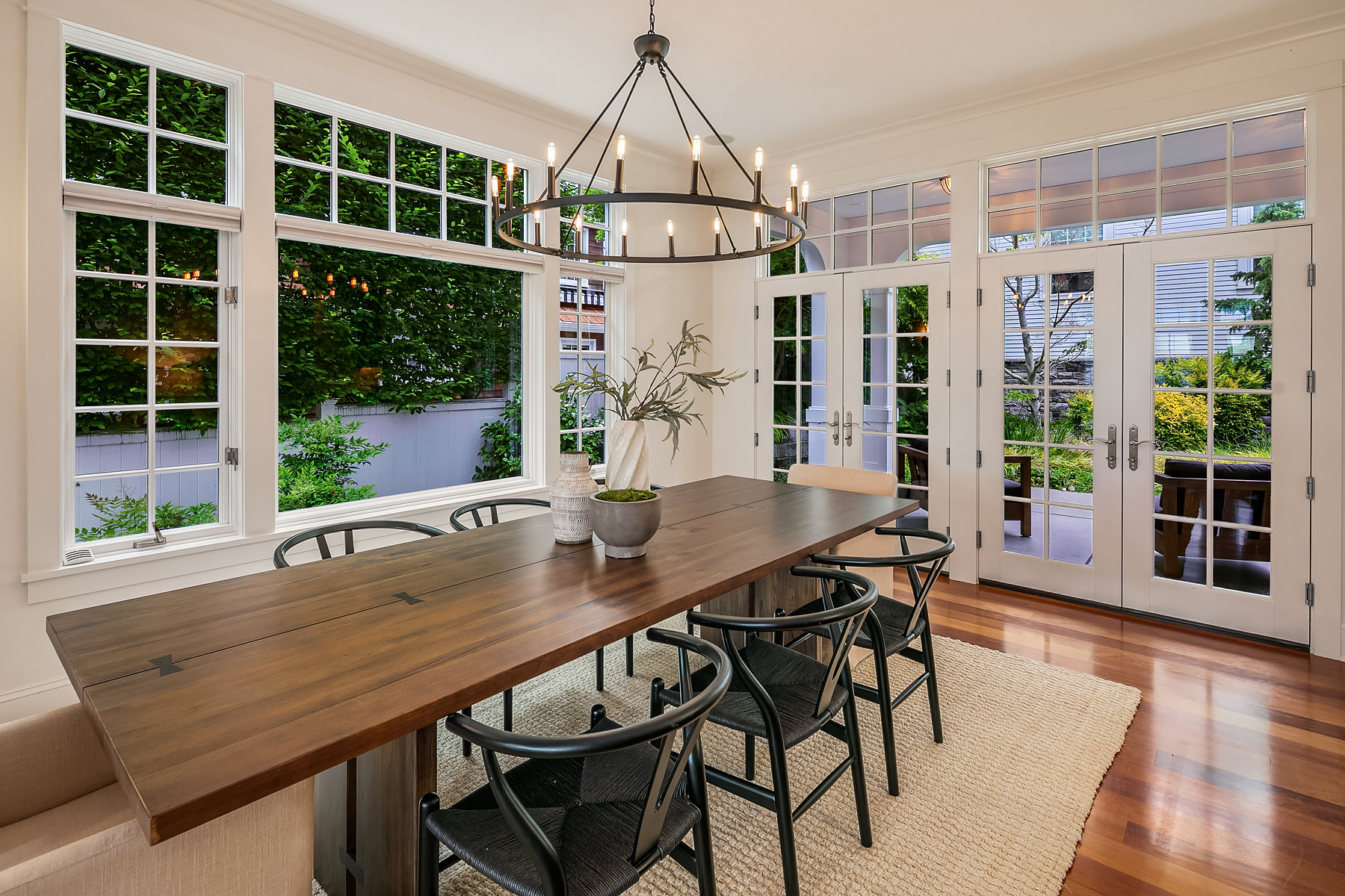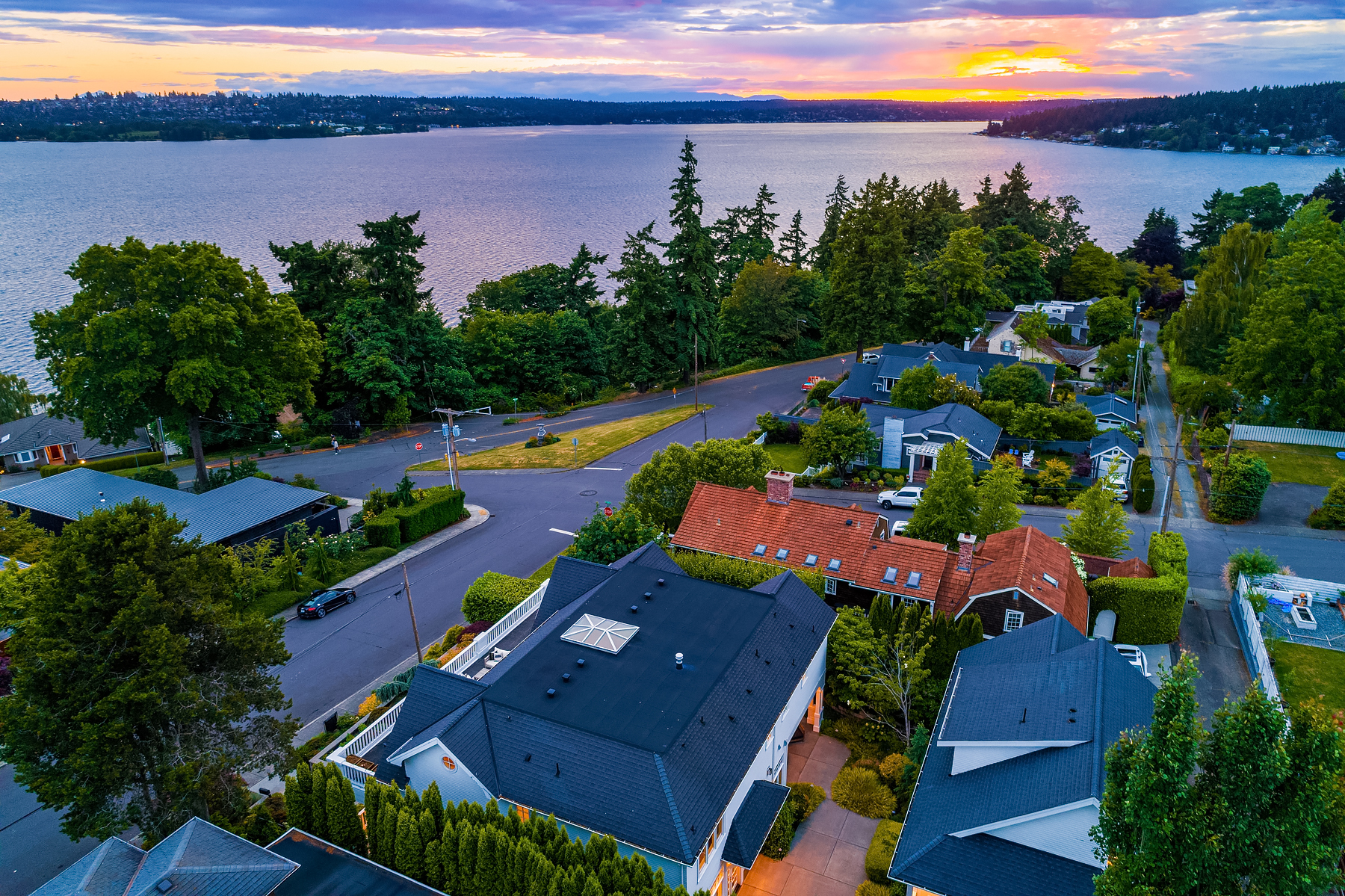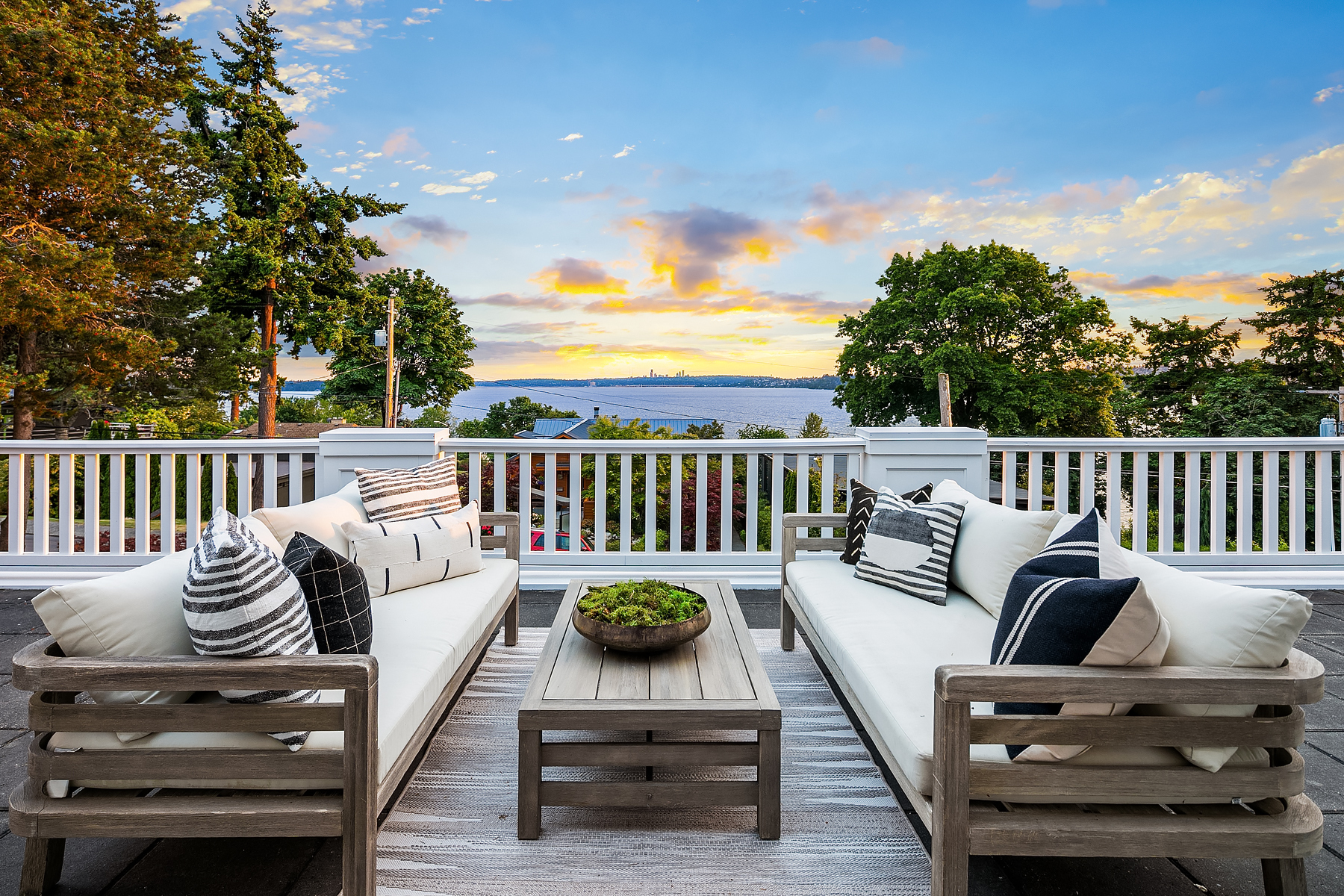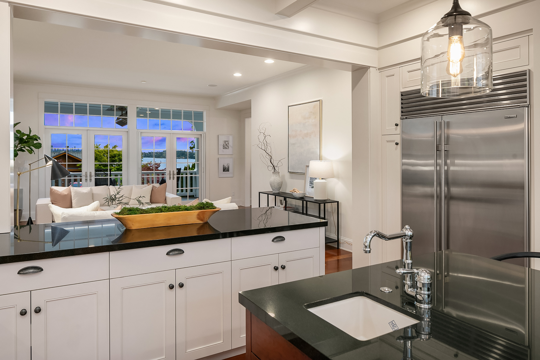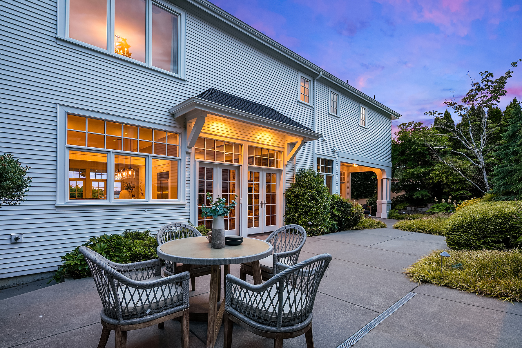 Exceptional Hamptons-inspired view residence located in the heart of West of Market. This exquisite home boasts over 5300sf of luxurious living with a rare-to-find side-by-side 4-car garage + ADU above--perfect for an office/guest quarters. The main home offers expansive entertaining spaces with magnificent west-facing view decks on both floors of the home. A classic white kitchen featuring top-of-the-line appliances including an impressive 72 range. Upstairs you'll discover three bedrooms, including the luxurious primary suite with a well-appointed spa bath wrapped in Carrara Marble, a view deck, and so much more. Lower-level includes 2 bedrooms, 3/4 bath, and a well-equipped media room. Easy stroll to lively DT, waterfront, parks + more.