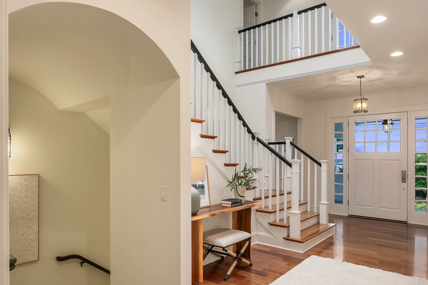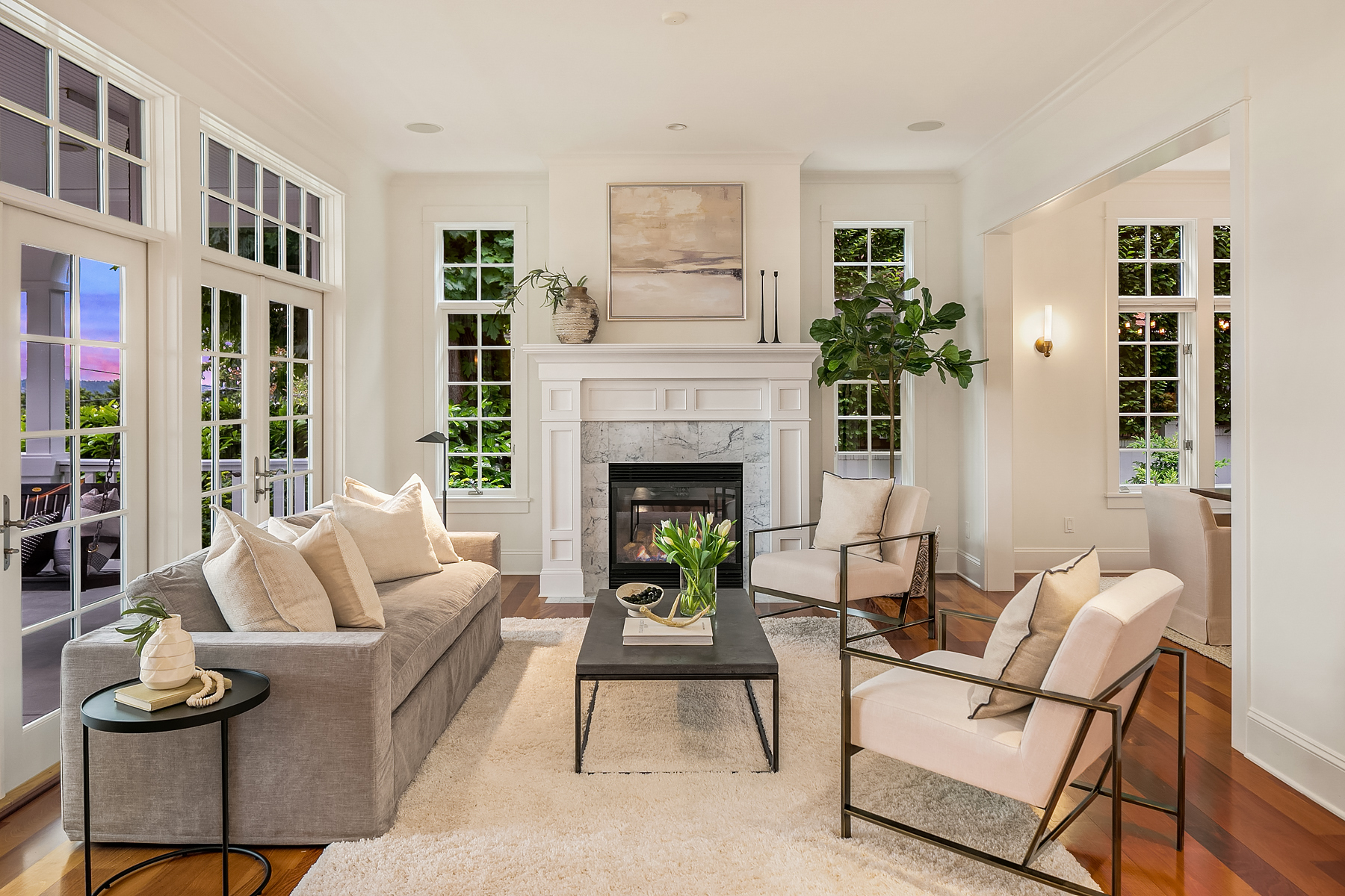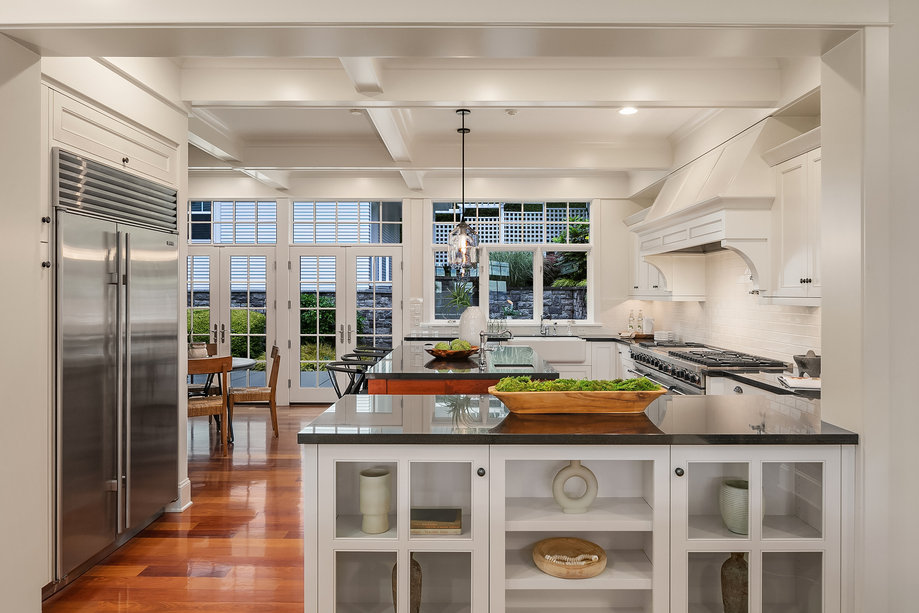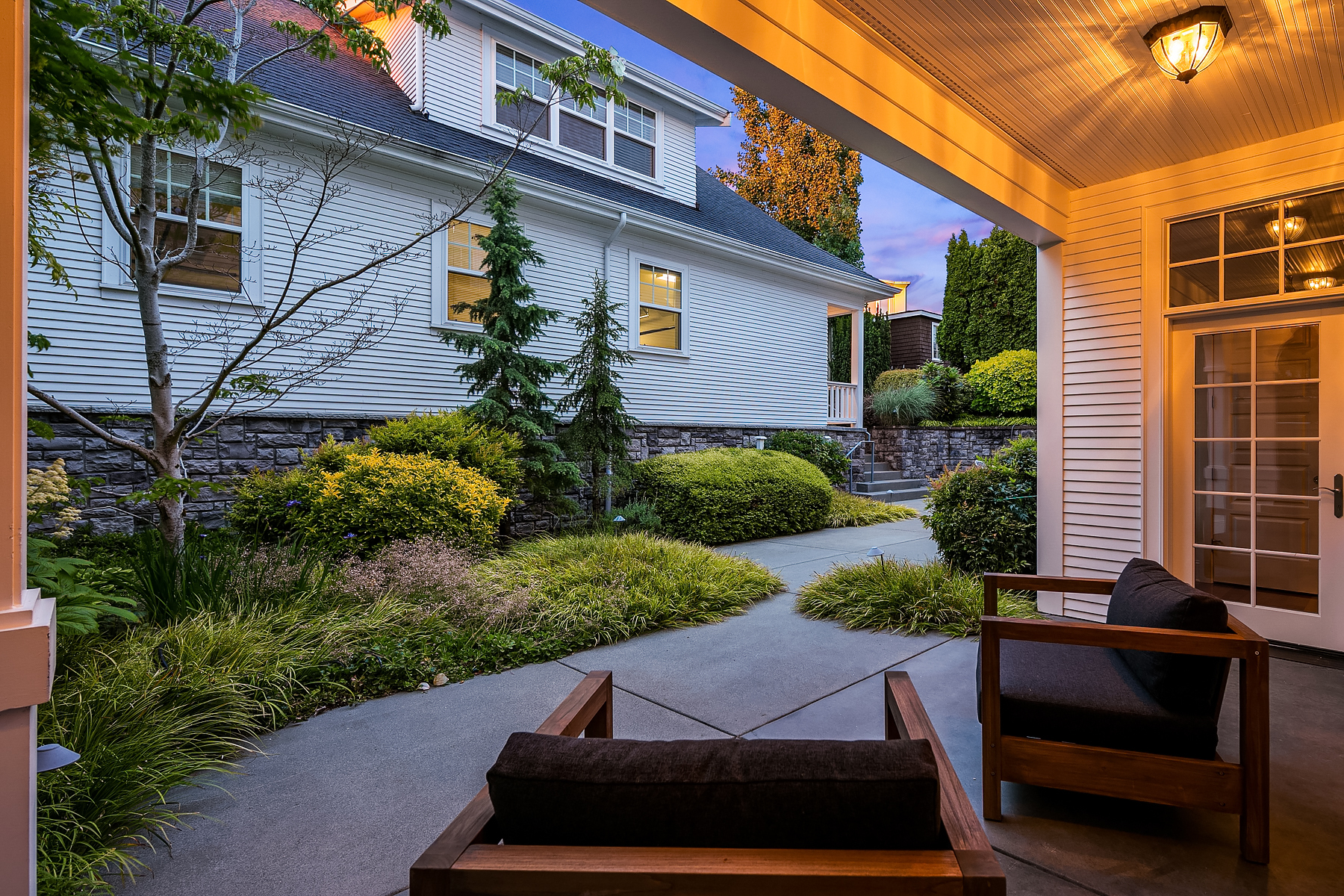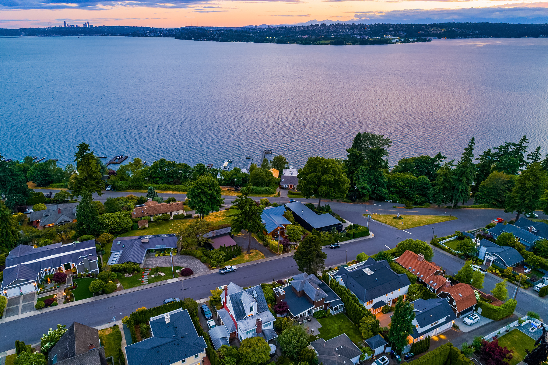 Exceptional Hamptons-inspired view residence located in the heart of West of Market. This exquisite home boasts over 5300sf of luxurious living with a rare-to-find side-by-side 4-car garage + ADU above--perfect for an office/guest quarters. The main home offers expansive entertaining spaces with magnificent west-facing view decks on both floors of the home. A classic white kitchen featuring top-of-the-line appliances including an impressive 72 range. Upstairs you'll discover three bedrooms, including the luxurious primary suite with a well-appointed spa bath wrapped in Carrara Marble, a view deck, and so much more. Lower-level includes 2 bedrooms, 3/4 bath, and a well-equipped media room. Easy stroll to lively DT, waterfront, parks + more.