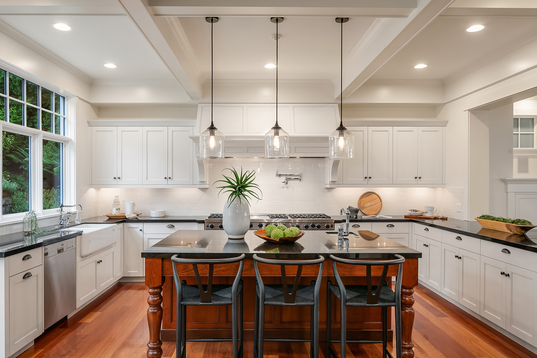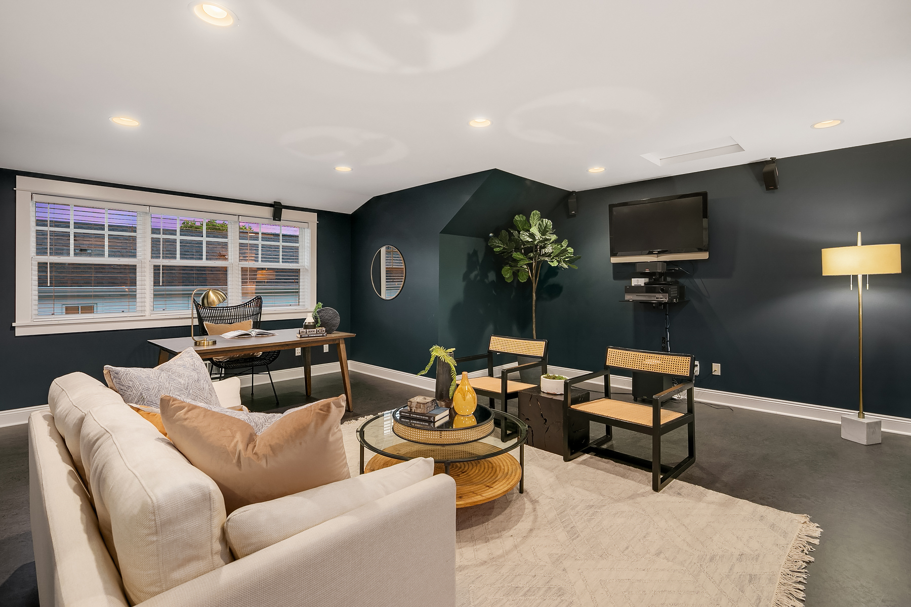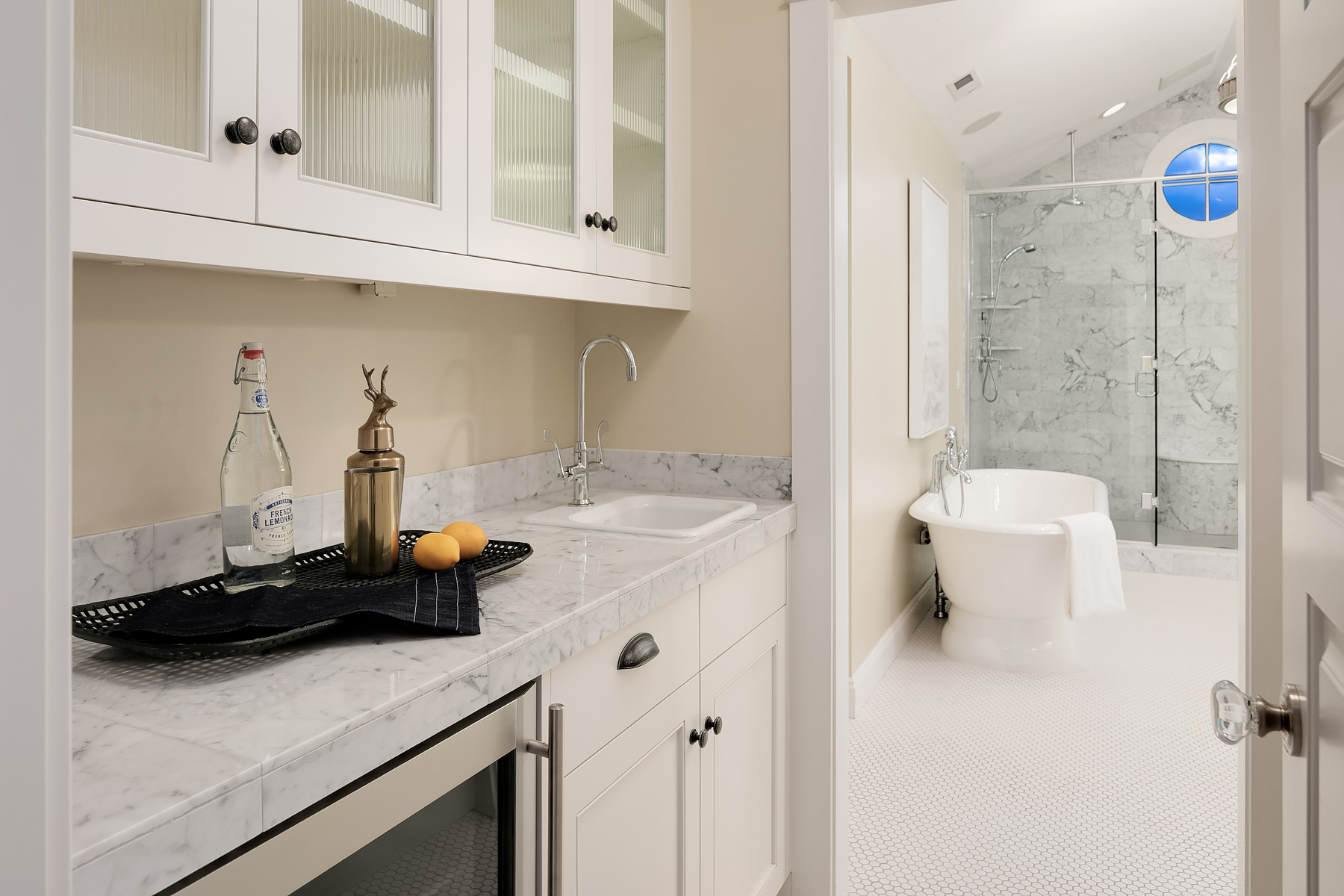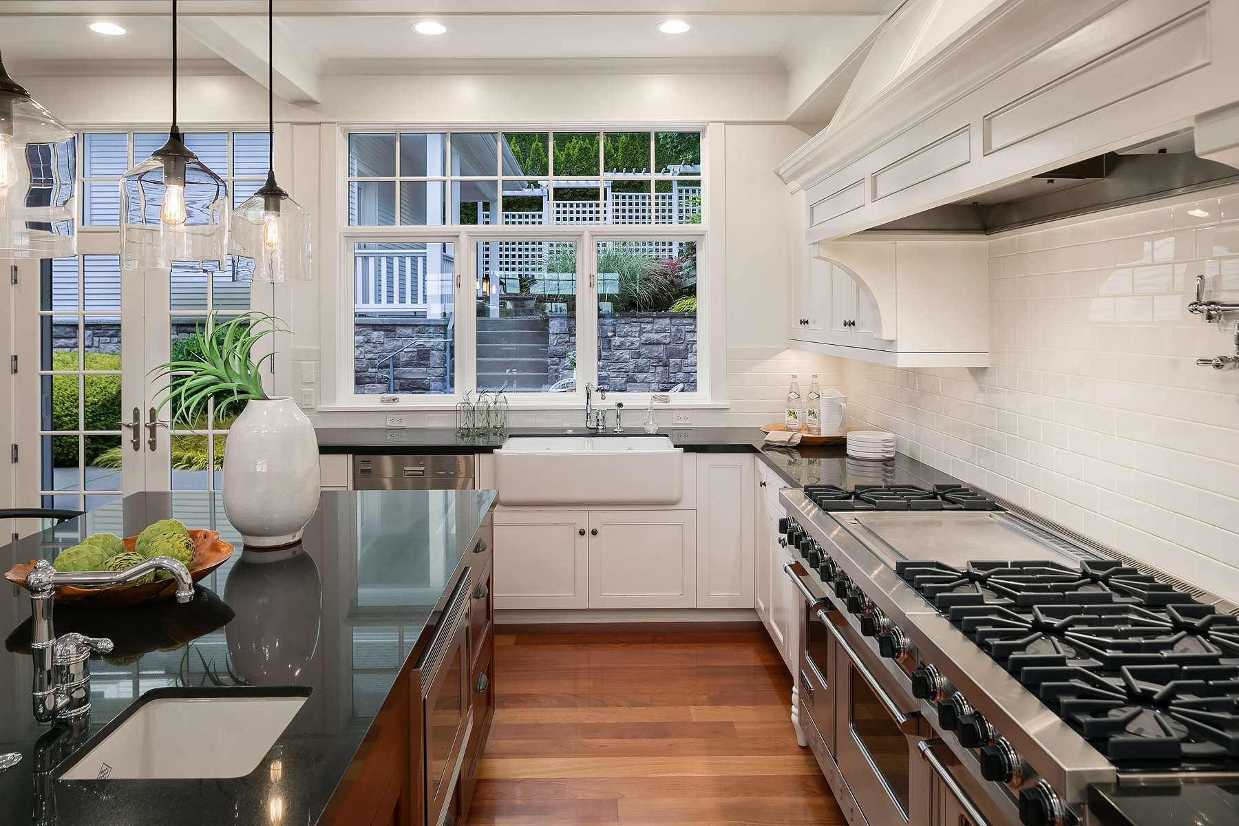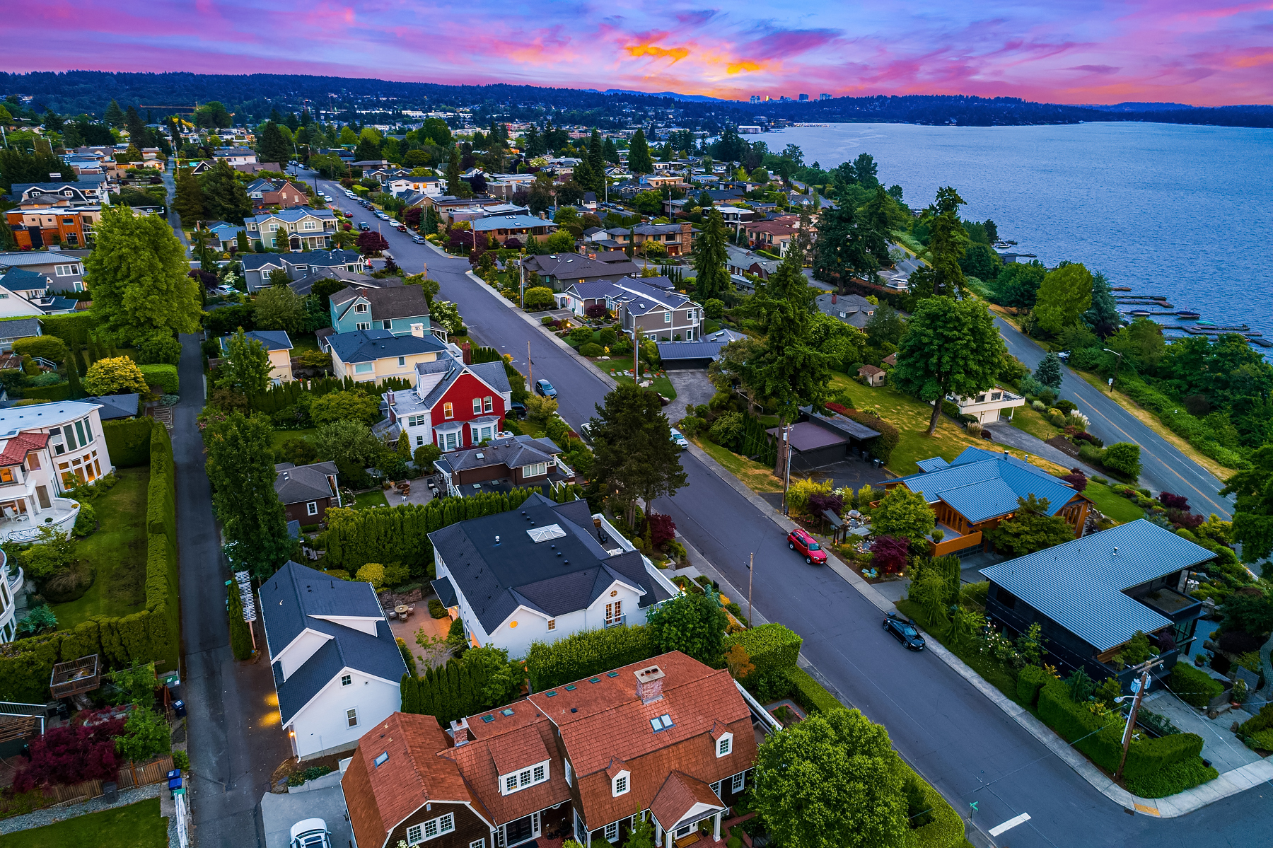 Exceptional Hamptons-inspired view residence located in the heart of West of Market. This exquisite home boasts over 5300sf of luxurious living with a rare-to-find side-by-side 4-car garage + ADU above--perfect for an office/guest quarters. The main home offers expansive entertaining spaces with magnificent west-facing view decks on both floors of the home. A classic white kitchen featuring top-of-the-line appliances including an impressive 72 range. Upstairs you'll discover three bedrooms, including the luxurious primary suite with a well-appointed spa bath wrapped in Carrara Marble, a view deck, and so much more. Lower-level includes 2 bedrooms, 3/4 bath, and a well-equipped media room. Easy stroll to lively DT, waterfront, parks + more.