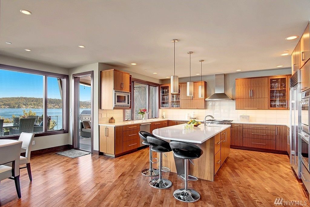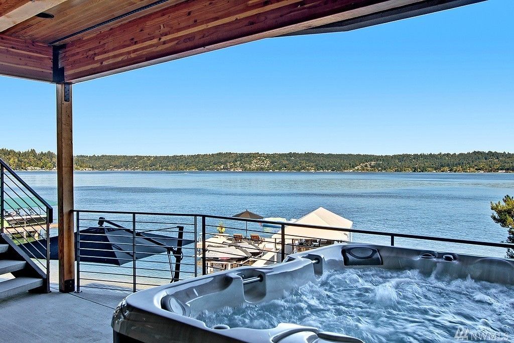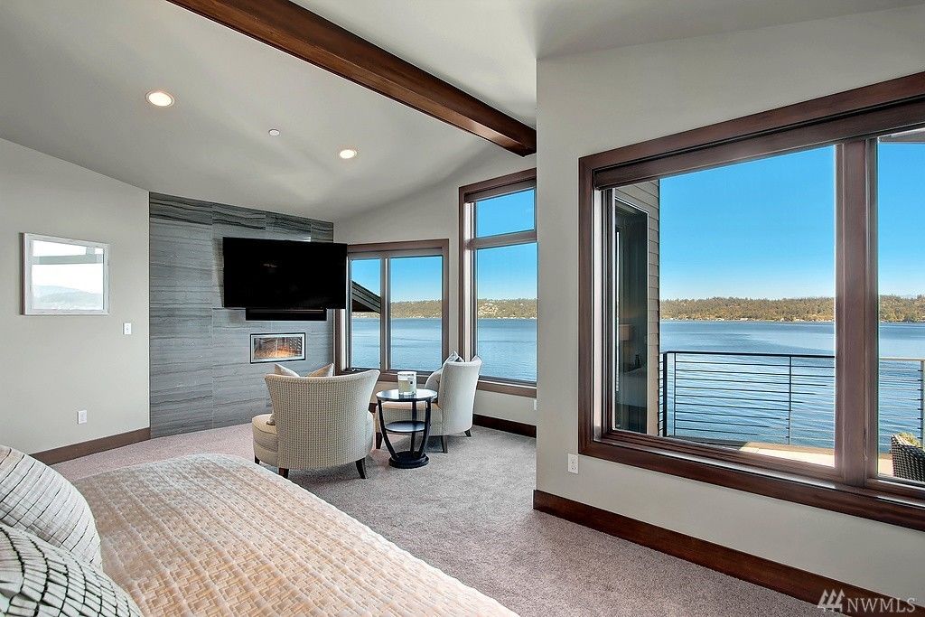 Welcome home to life on the lake! Drink in the beauty of Lake Sammamish with panoramic views from every living space. This immaculate residence has been expertly designed with dramatic indoor spaces and the finest craftsmanship. Crisp, bold modern lines and an open floor plan deliver a sophisticated yet ultimately welcoming and comfortable ambiance. Incredible outdoor living spaces; 3 lakefront decks, outdoor living room w/ gas f/p, lush lawn, hot tub and a stunning 100' of no bank waterfront.