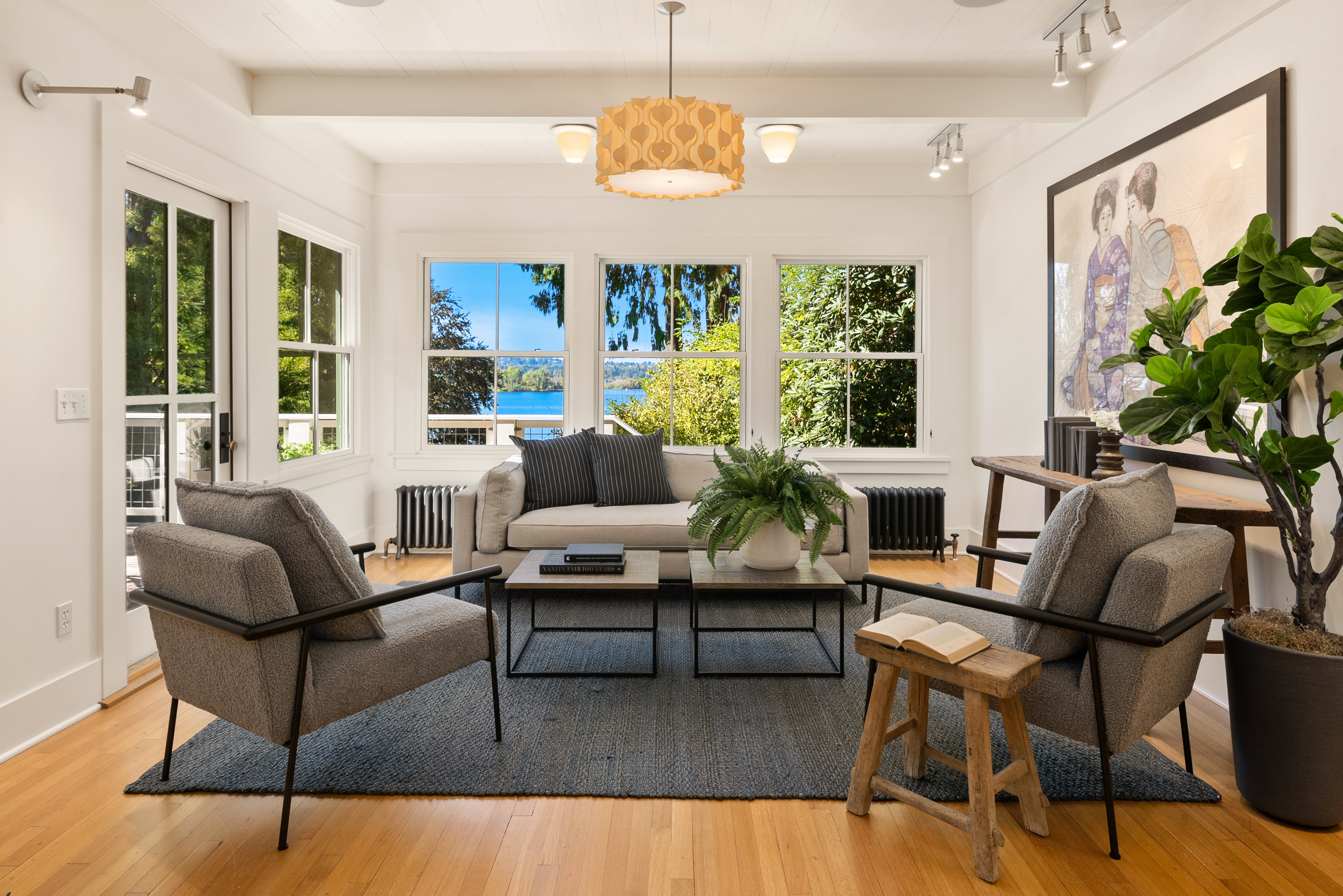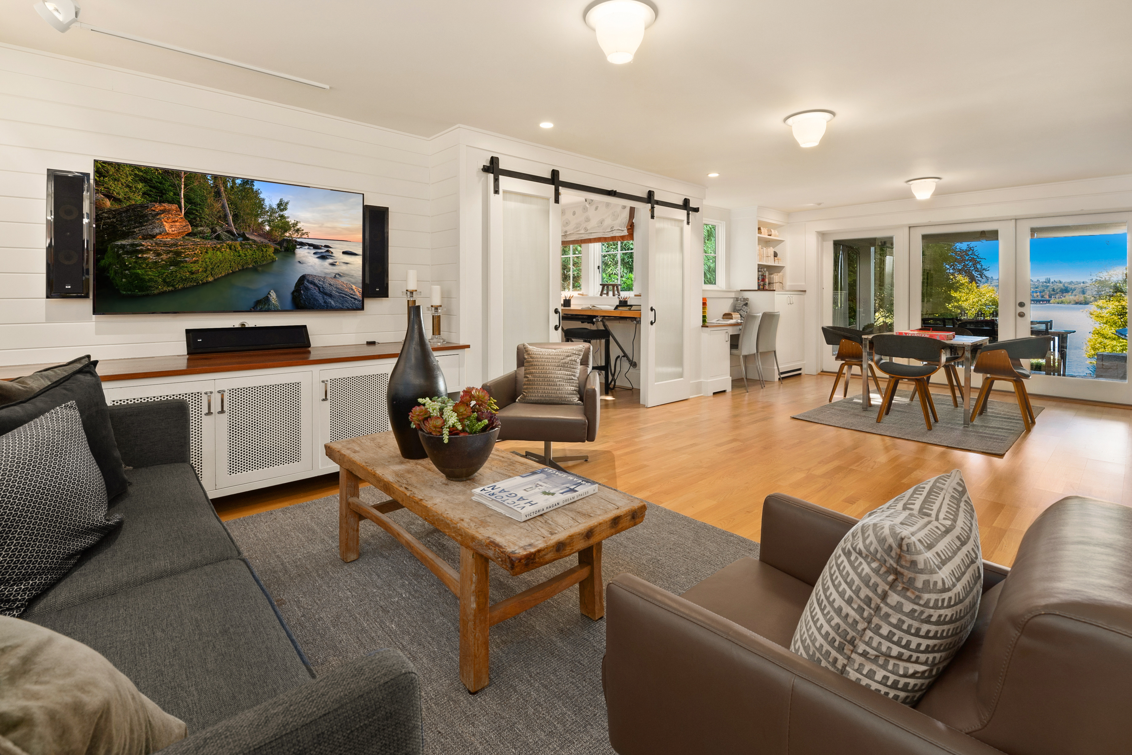 Friendly and Inviting, an idyllic Danish Farmhouse recreated on the Shores of Lake Washington. The coveted neighborhood of Laurelhurst is the perfect location for this intimate, bright and casual home where space matters and modern farmhouse design prevails. Completely renovated and remodeled, it’s an exercise in subdued luxury with comfort around every corner. Walls of Windows, sprawling decks and patios harmoniously marry the indoor and outdoor spaces. The boat house hideaway on the way to 60’ of waterfront with newer dock is utterly charming. A looking glass to dramatic views gazing across swatches of lawn and grasses, native shrubs and trees, to glistening Lake Washington with a theater of maritime activities and artistic sunsets. Joy!