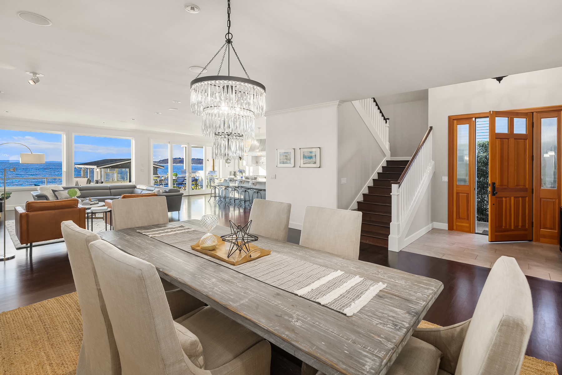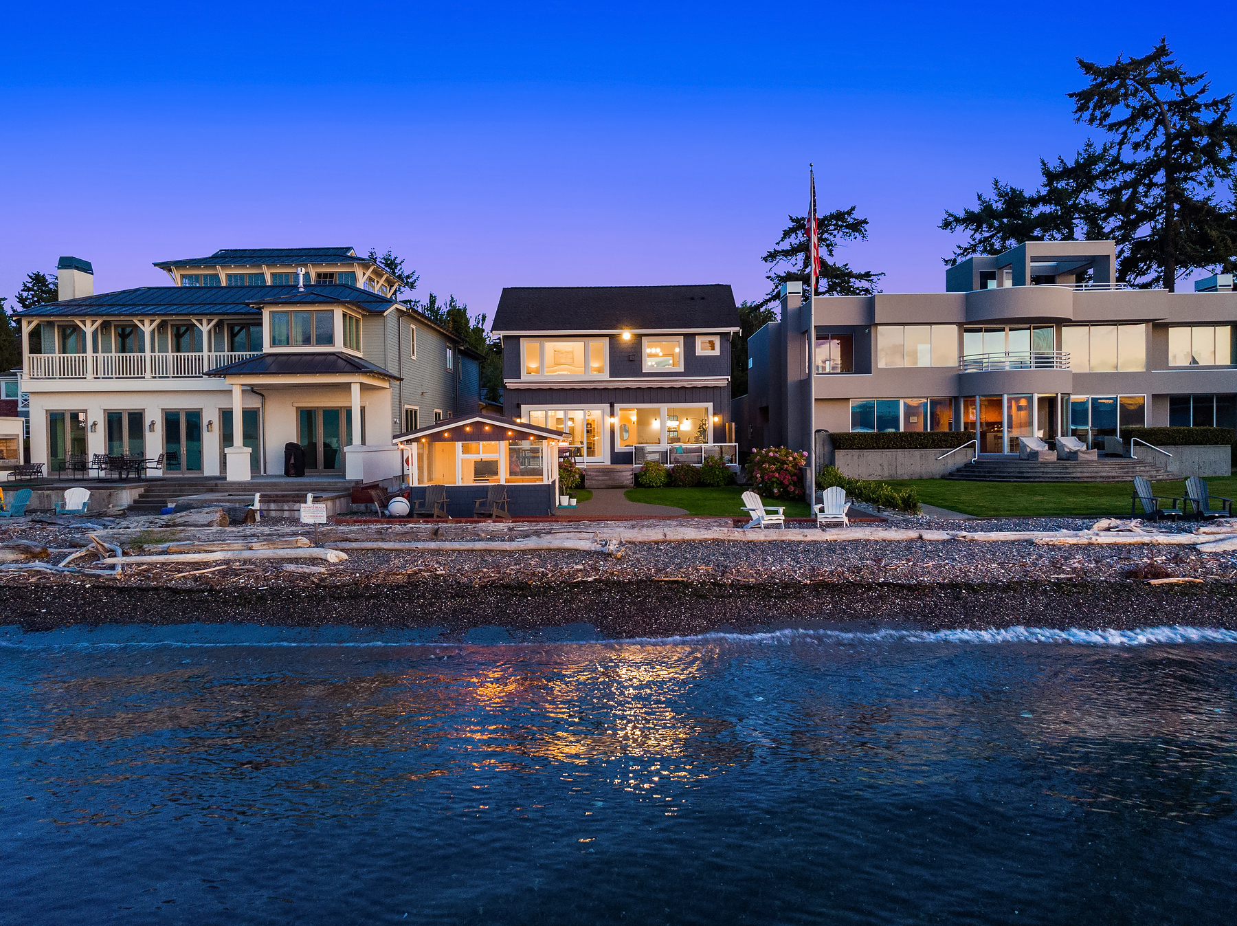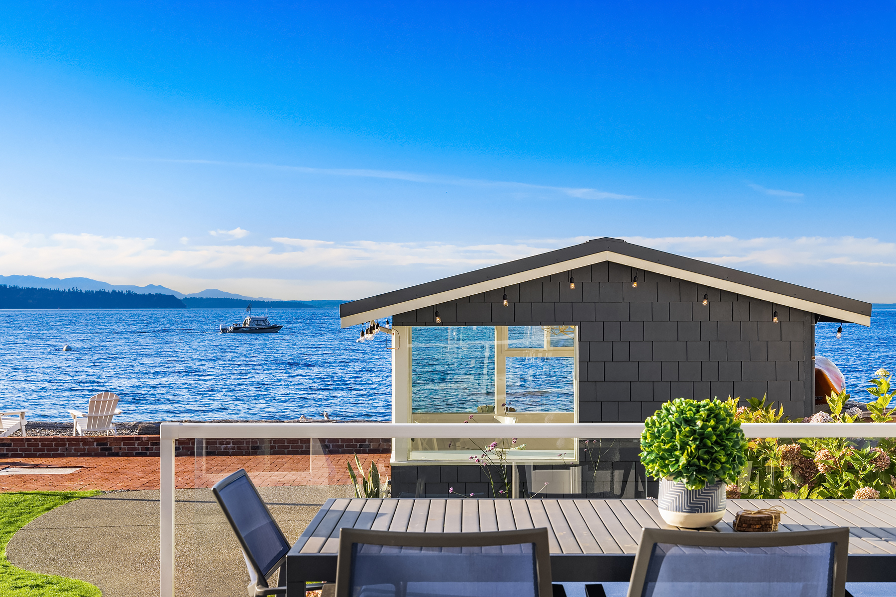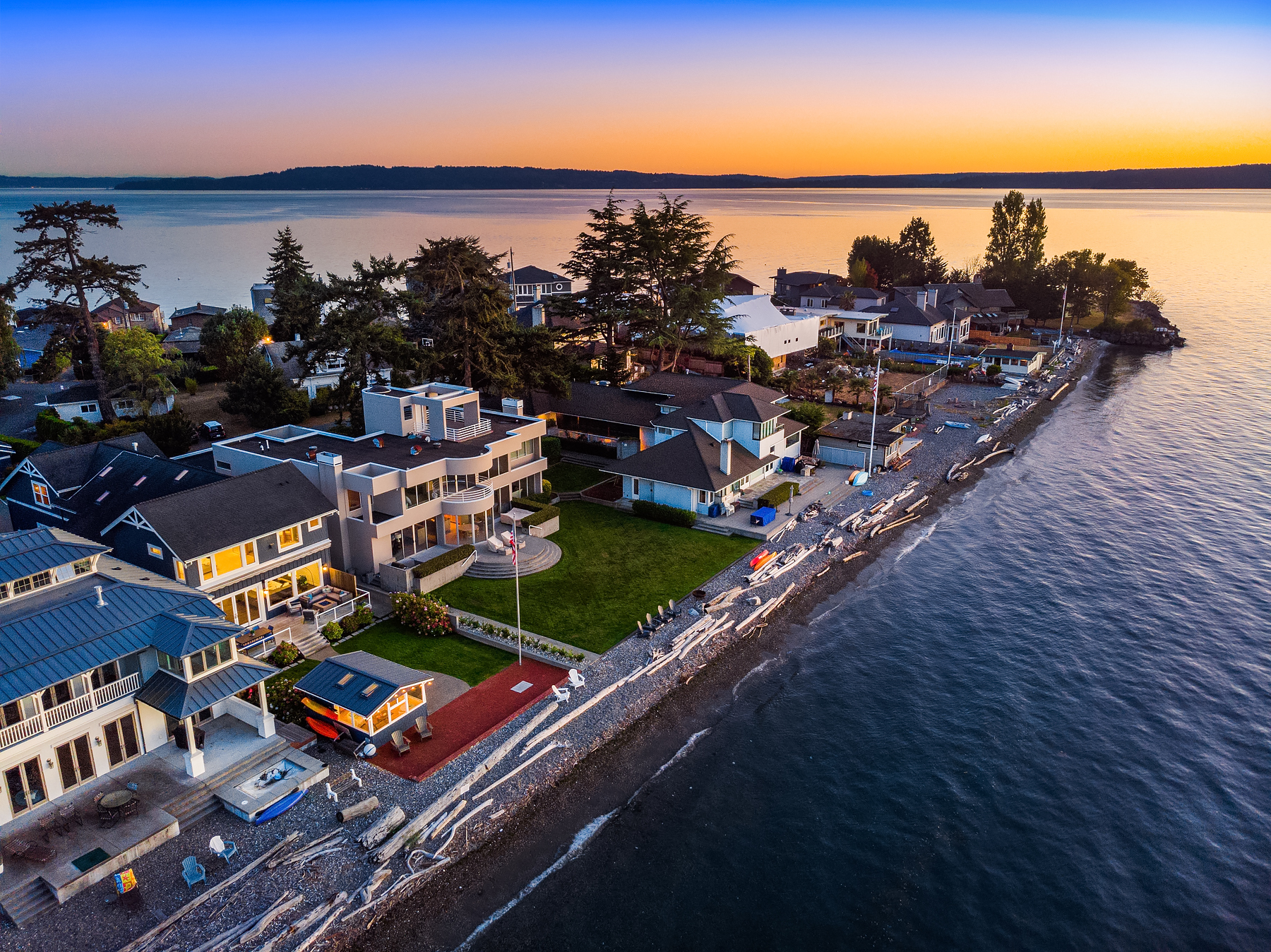 A gentle salty breeze floats in the air. Here, the horizon meets the dark blue water in endless captivating views. Welcome to 9 SW Three Tree Point Lane: a home where fresh sophistication & warm comforts blend in a beautiful cocktail. Resting on level grounds, the property offers total privacy from the street. Meticulous landscape greets guests along a paved walkway & lush vegetation. Open the front door to a refined & inviting interior flowing into the expanse of Puget Sound & the striking lines of the Olympics. Inside white tones, richly-colored hardwoods & plush carpets. The kitchen, w/its coastal vibrancy, acts as the true core of the house. Step onto the deck for morning coffee or retreat into the charming cabana along the sandy shore.