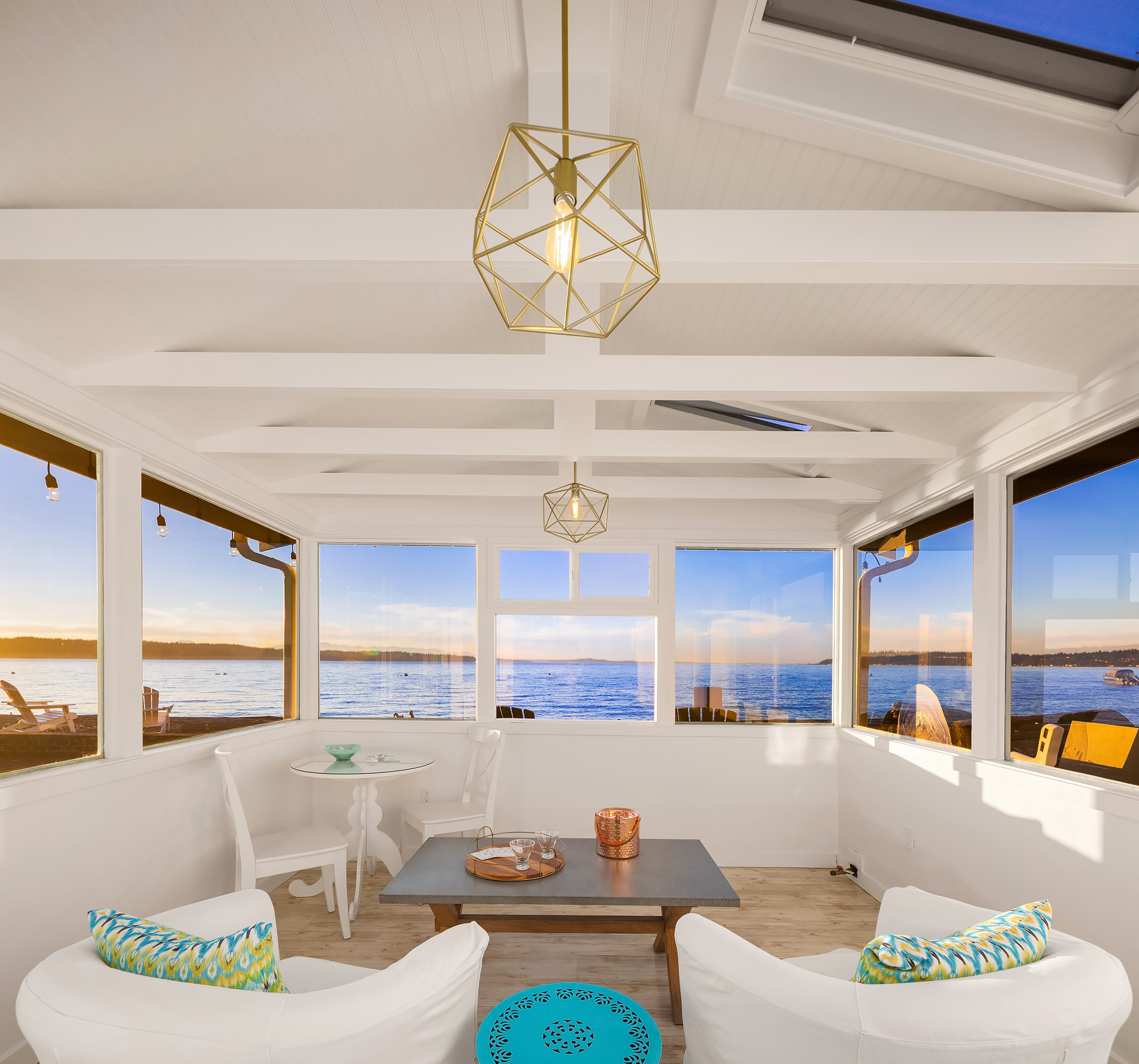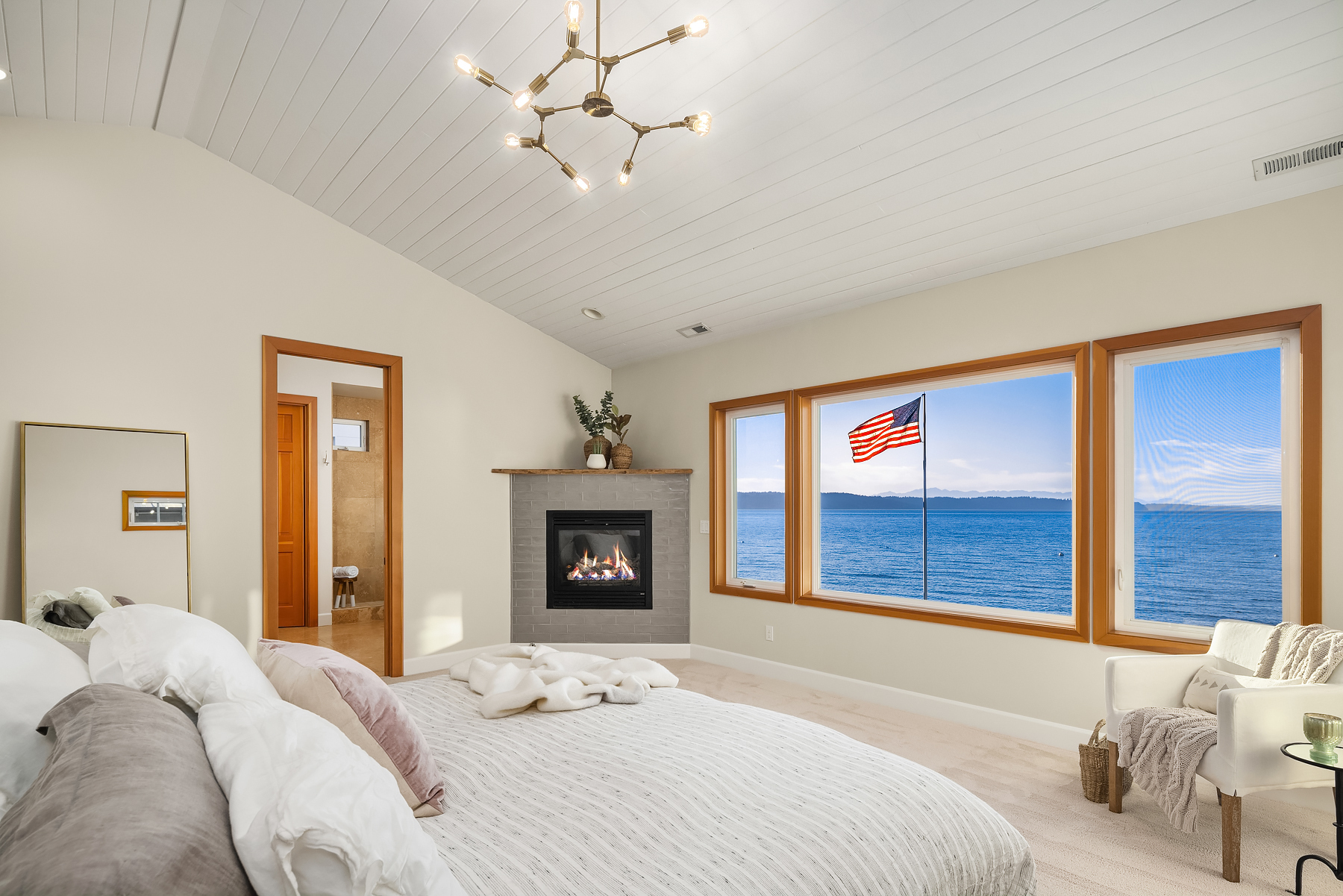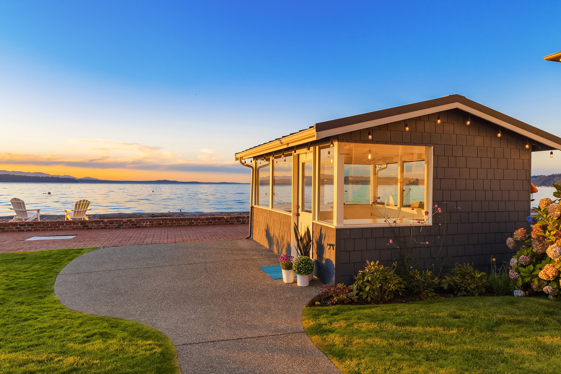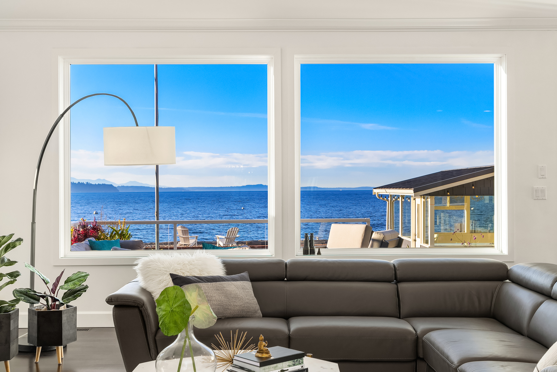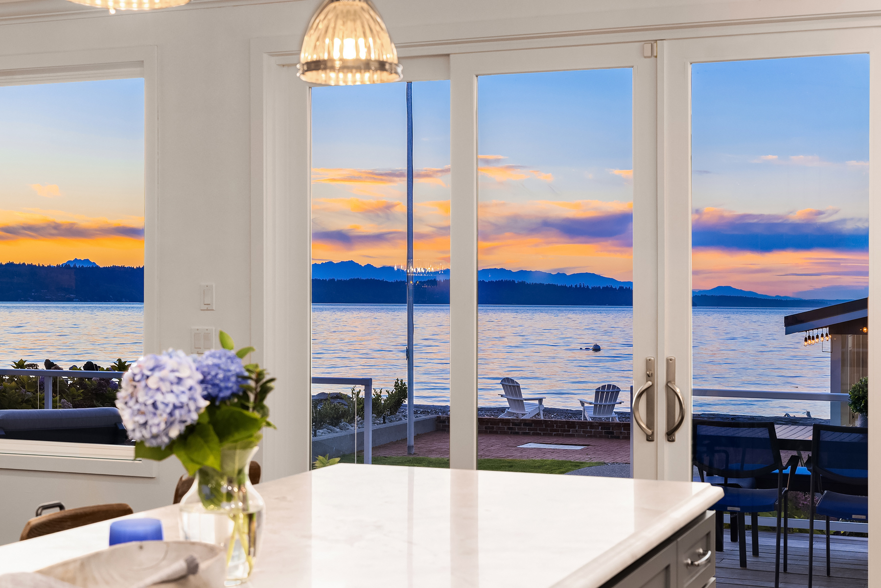 A gentle salty breeze floats in the air. Here, the horizon meets the dark blue water in endless captivating views. Welcome to 9 SW Three Tree Point Lane: a home where fresh sophistication & warm comforts blend in a beautiful cocktail. Resting on level grounds, the property offers total privacy from the street. Meticulous landscape greets guests along a paved walkway & lush vegetation. Open the front door to a refined & inviting interior flowing into the expanse of Puget Sound & the striking lines of the Olympics. Inside white tones, richly-colored hardwoods & plush carpets. The kitchen, w/its coastal vibrancy, acts as the true core of the house. Step onto the deck for morning coffee or retreat into the charming cabana along the sandy shore.