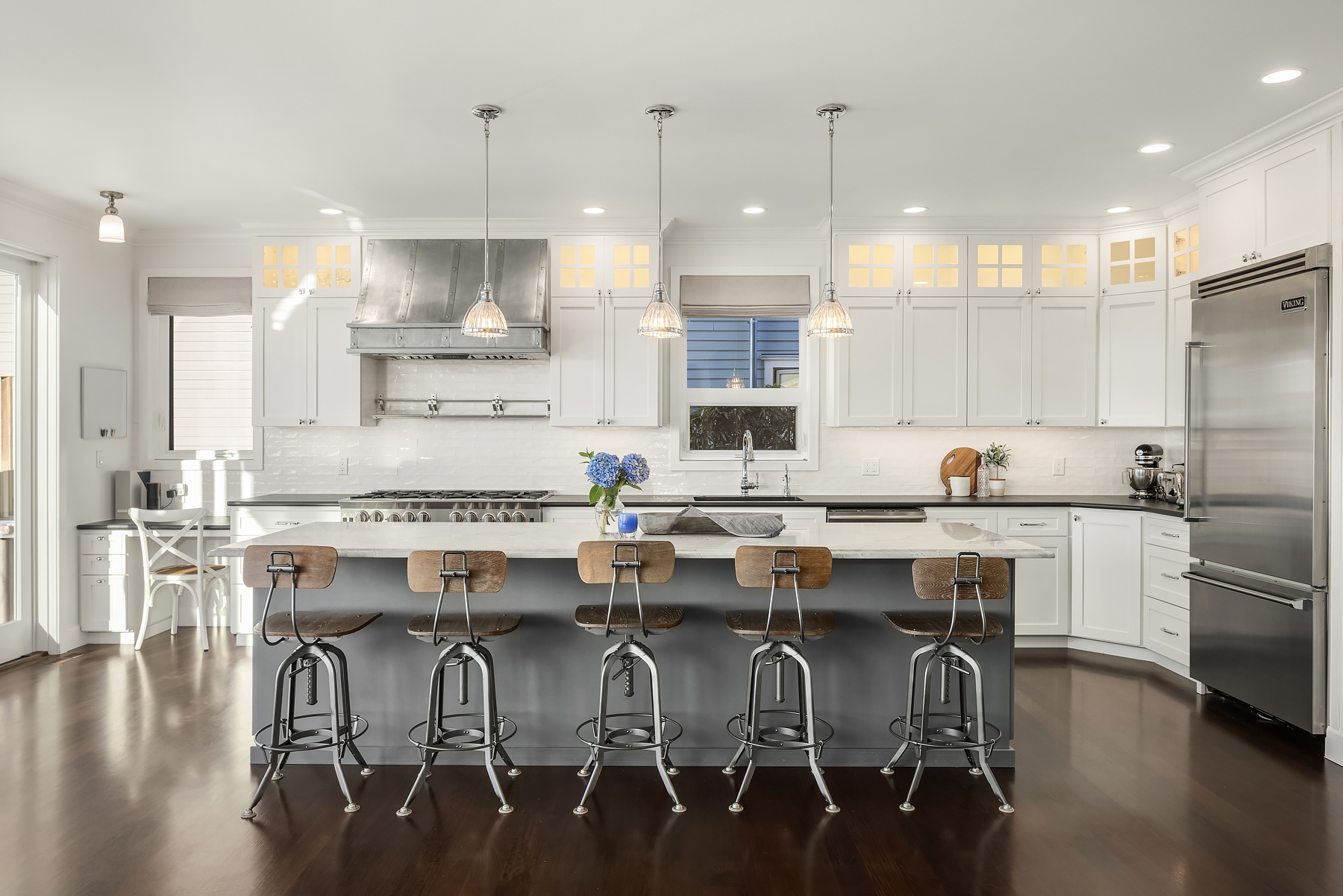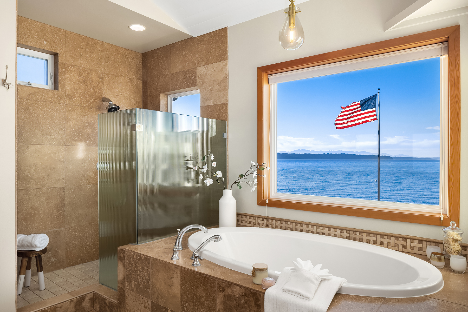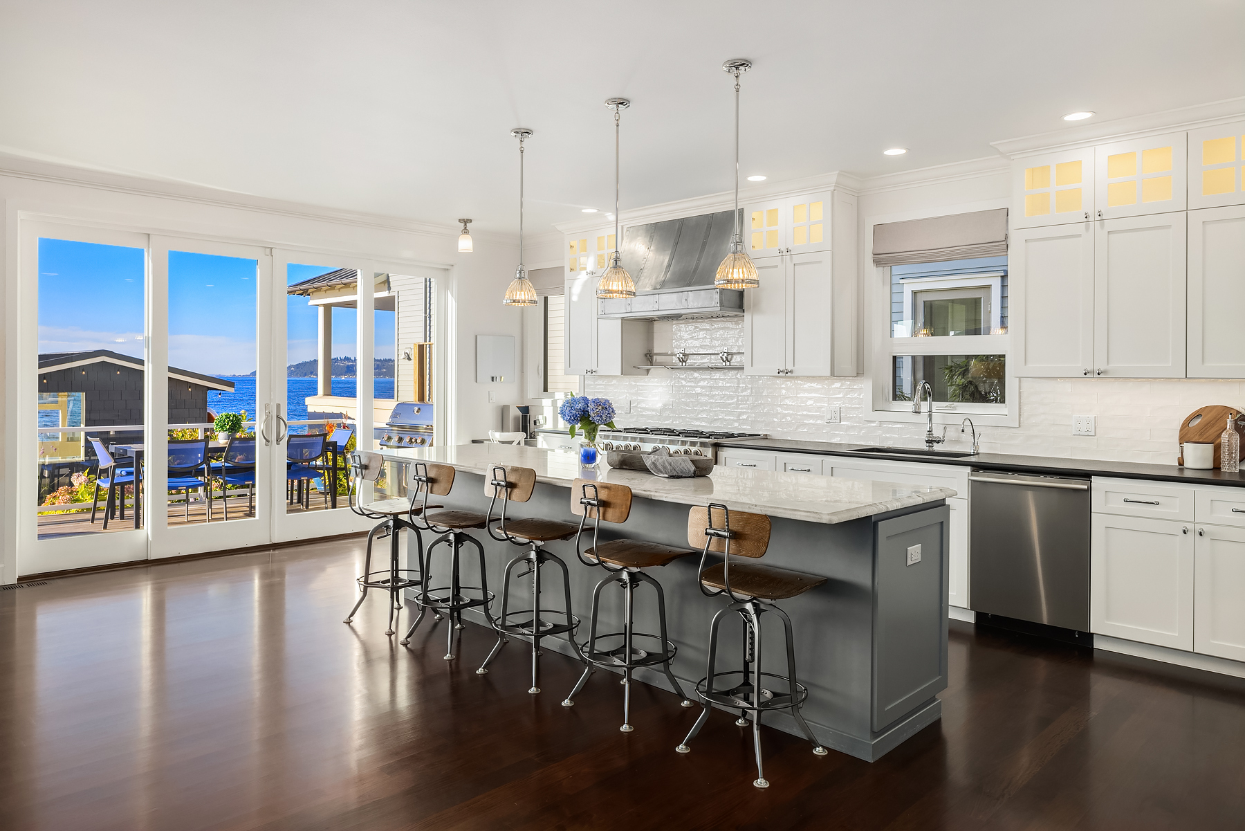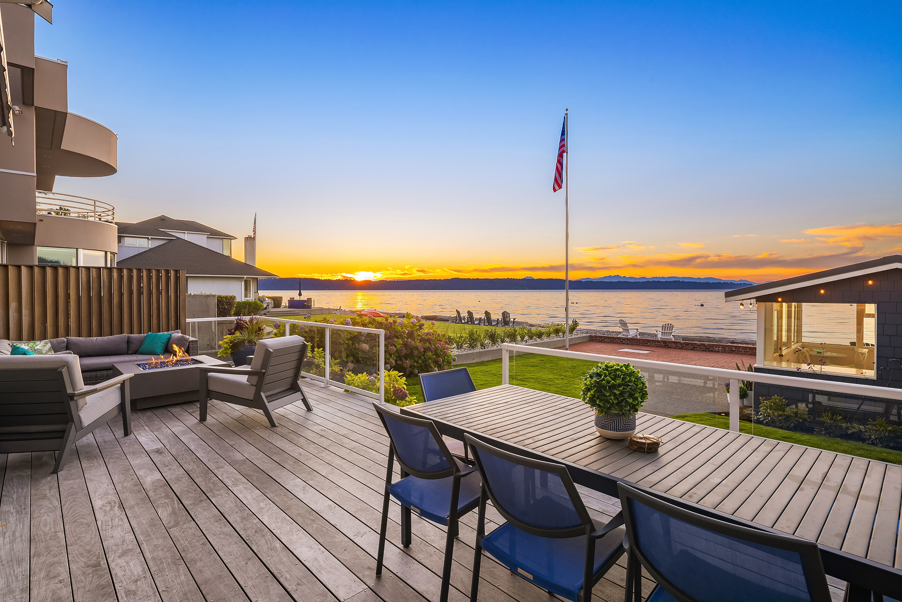 A gentle salty breeze floats in the air. Here, the horizon meets the dark blue water in endless captivating views. Welcome to 9 SW Three Tree Point Lane: a home where fresh sophistication & warm comforts blend in a beautiful cocktail. Resting on level grounds, the property offers total privacy from the street. Meticulous landscape greets guests along a paved walkway & lush vegetation. Open the front door to a refined & inviting interior flowing into the expanse of Puget Sound & the striking lines of the Olympics. Inside white tones, richly-colored hardwoods & plush carpets. The kitchen, w/its coastal vibrancy, acts as the true core of the house. Step onto the deck for morning coffee or retreat into the charming cabana along the sandy shore.