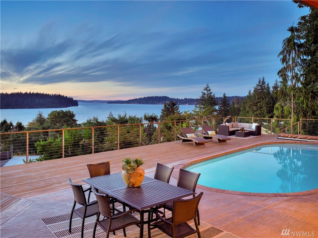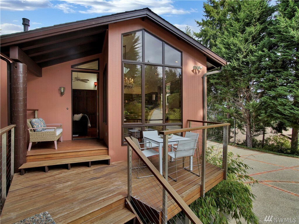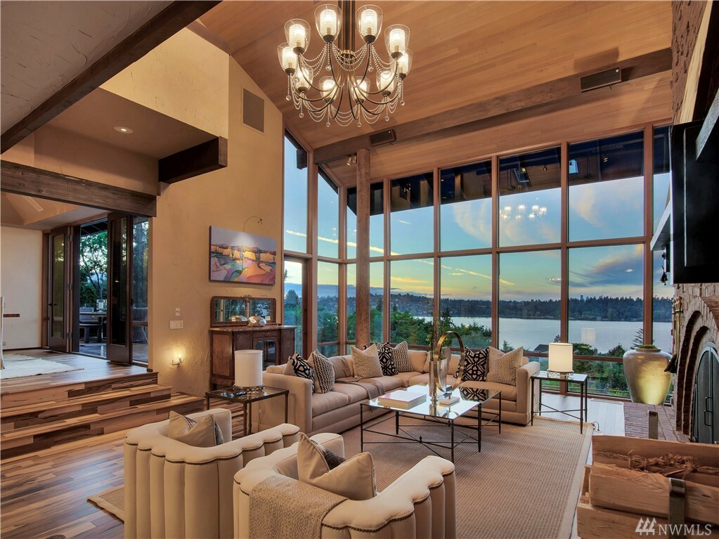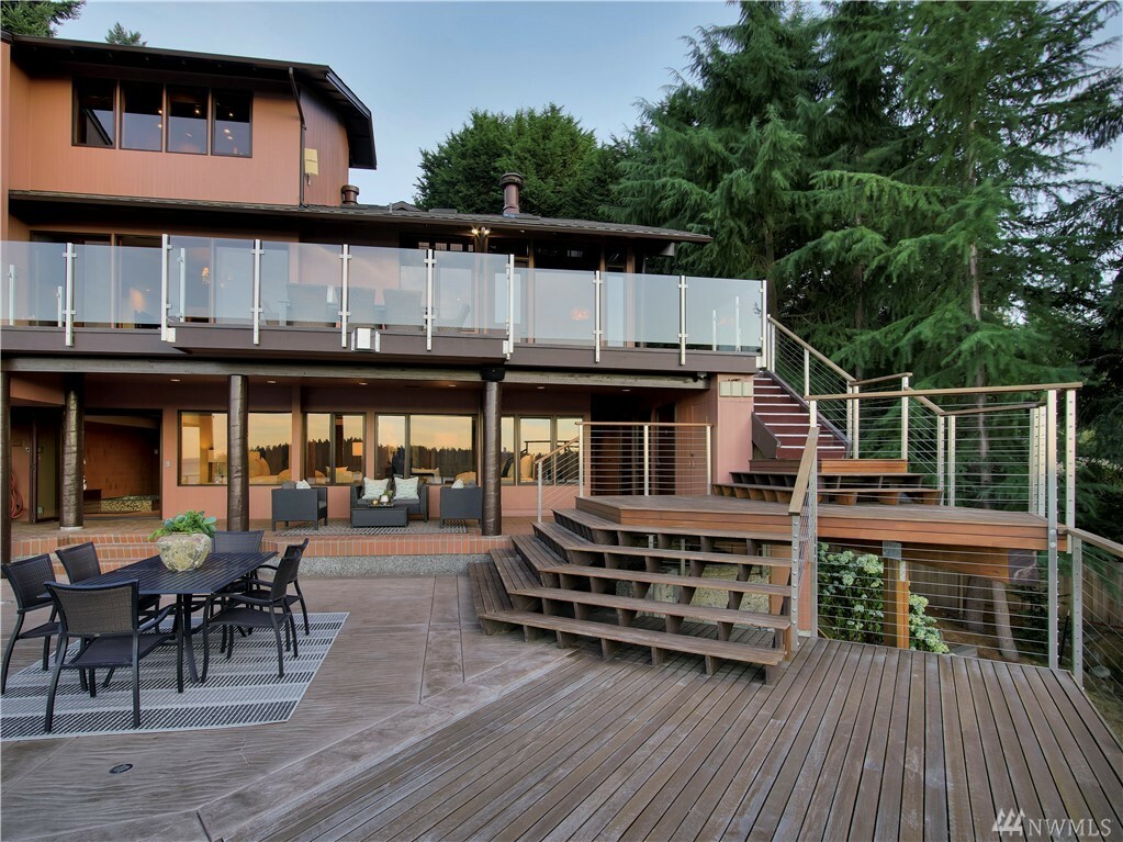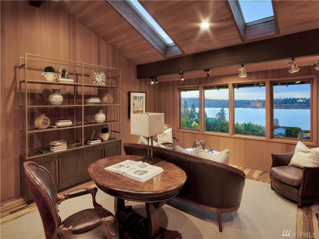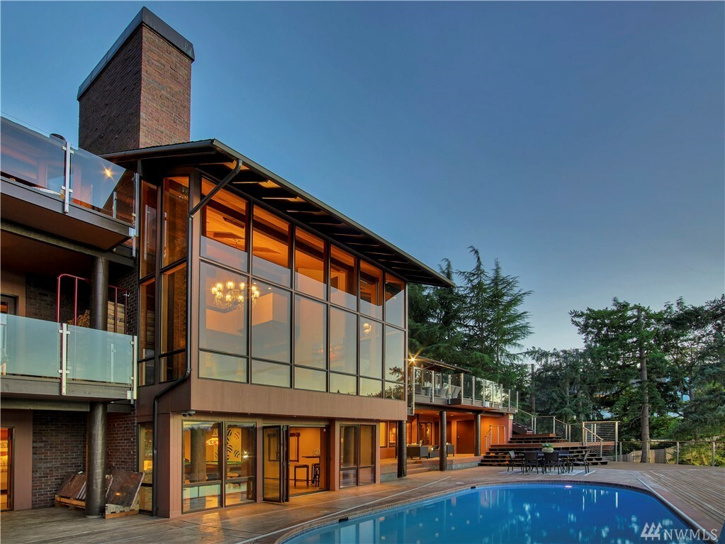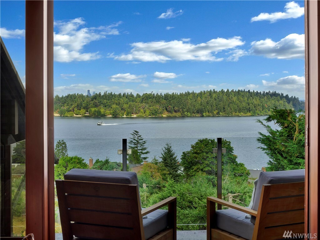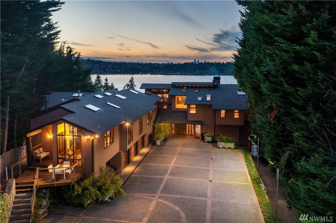 With vast views of Lake Washington, the sunlight through the evergreens and Seattle's twinkling city lights, this contemporary sanctuary honors nature and the dynamic beauty of the Northwest. Crisp architectural lines and floor to ceiling windows yield grand entertaining spaces with seamless flow indoors and out to layered decks and swimming pool. Designed to engage the senses, relax the mind and nourish the soul with cozy treehouse nooks, curated finishes and inspiring views at every turn. Delight in the eagles playing in the treetops, a soak in the claw-foot tub, the warmth of the sauna and roaring hearths. A rare estate poised on over an acre on a peaceful private lane with sport court, legal self-contained ADU and parking for a crowd.