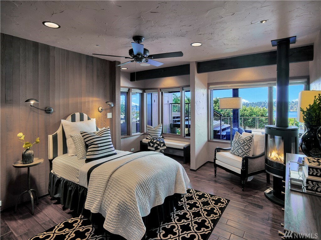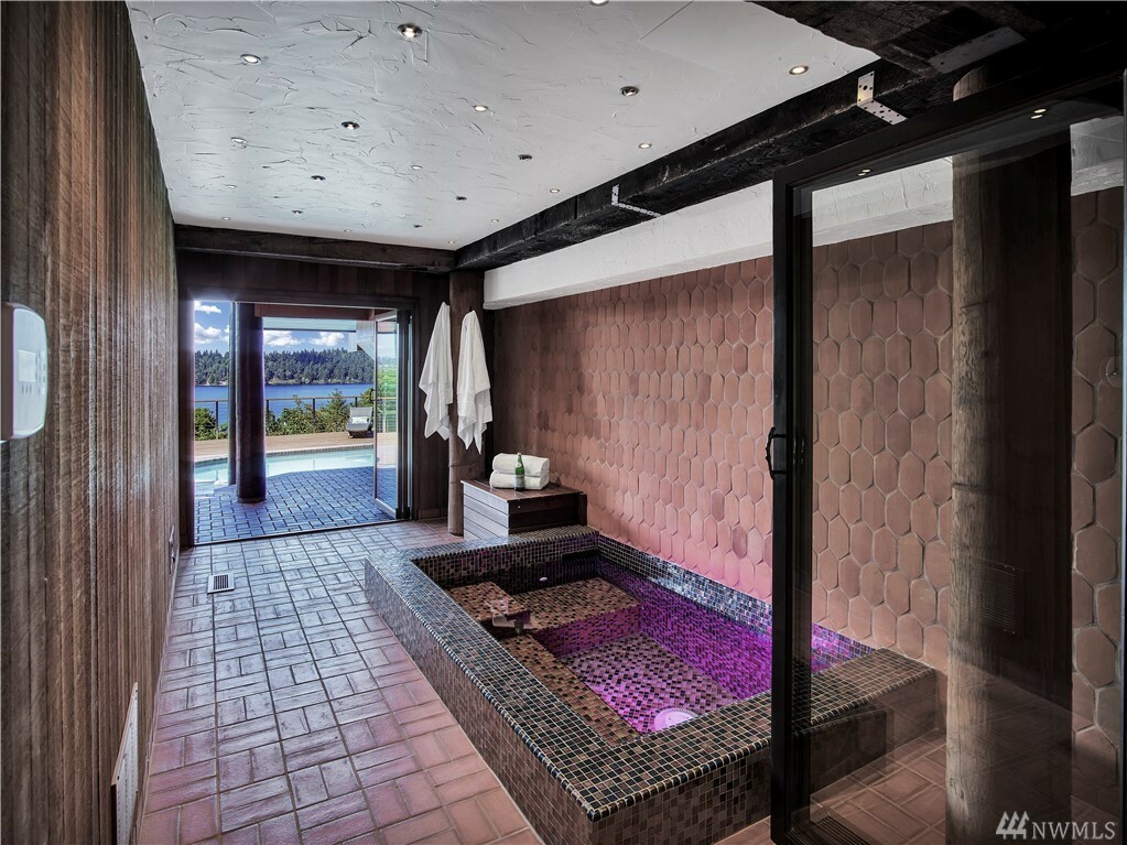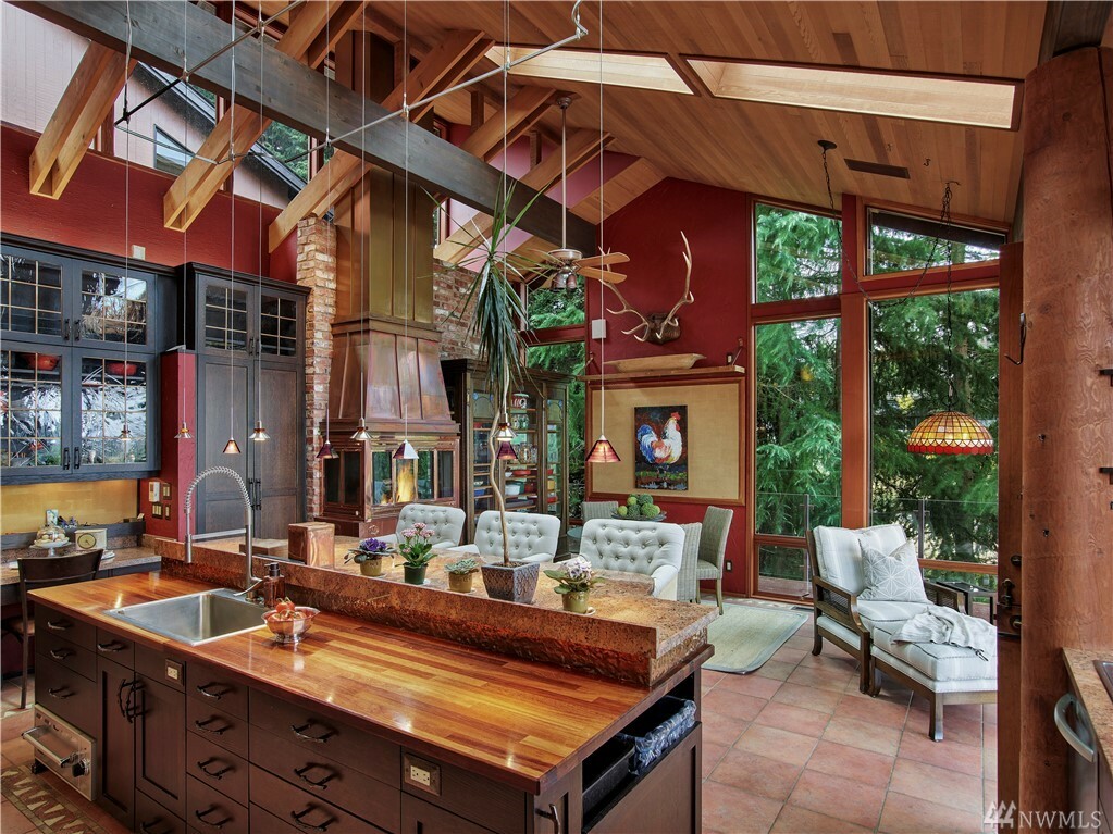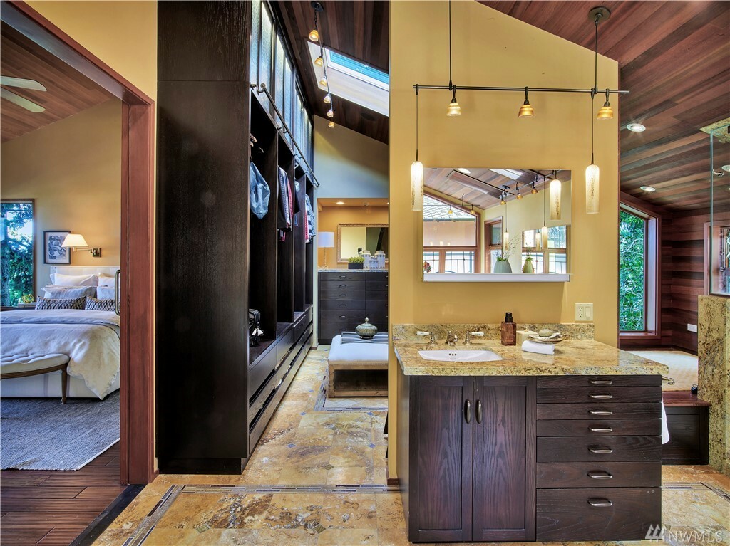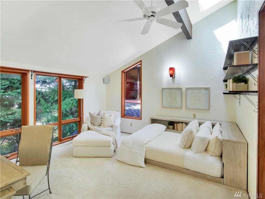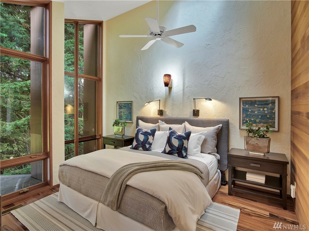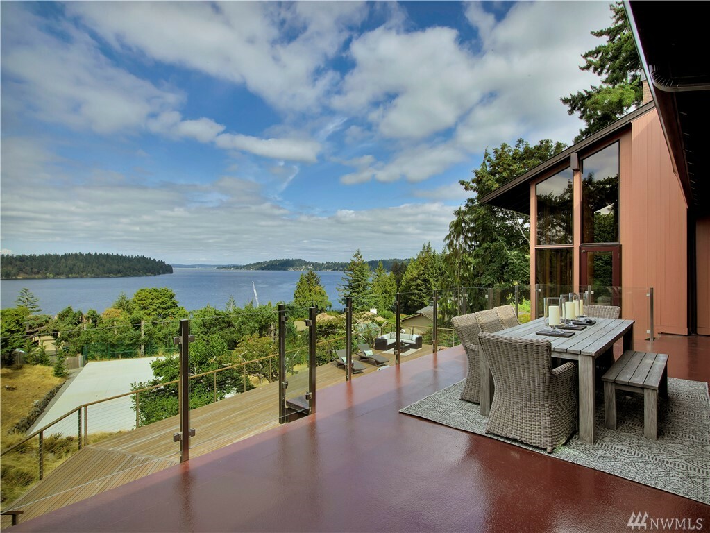 With vast views of Lake Washington, the sunlight through the evergreens and Seattle's twinkling city lights, this contemporary sanctuary honors nature and the dynamic beauty of the Northwest. Crisp architectural lines and floor to ceiling windows yield grand entertaining spaces with seamless flow indoors and out to layered decks and swimming pool. Designed to engage the senses, relax the mind and nourish the soul with cozy treehouse nooks, curated finishes and inspiring views at every turn. Delight in the eagles playing in the treetops, a soak in the claw-foot tub, the warmth of the sauna and roaring hearths. A rare estate poised on over an acre on a peaceful private lane with sport court, legal self-contained ADU and parking for a crowd.