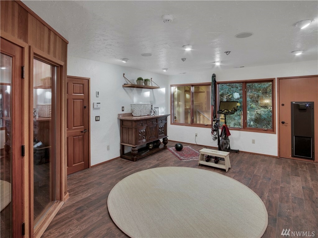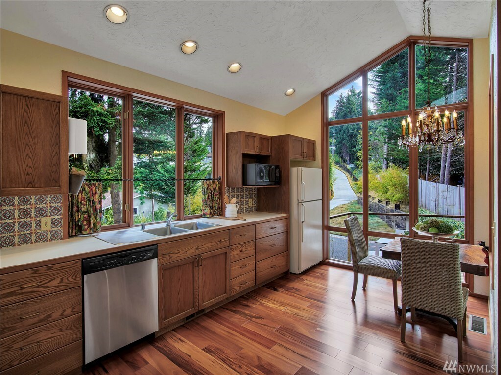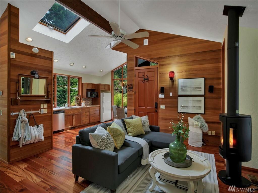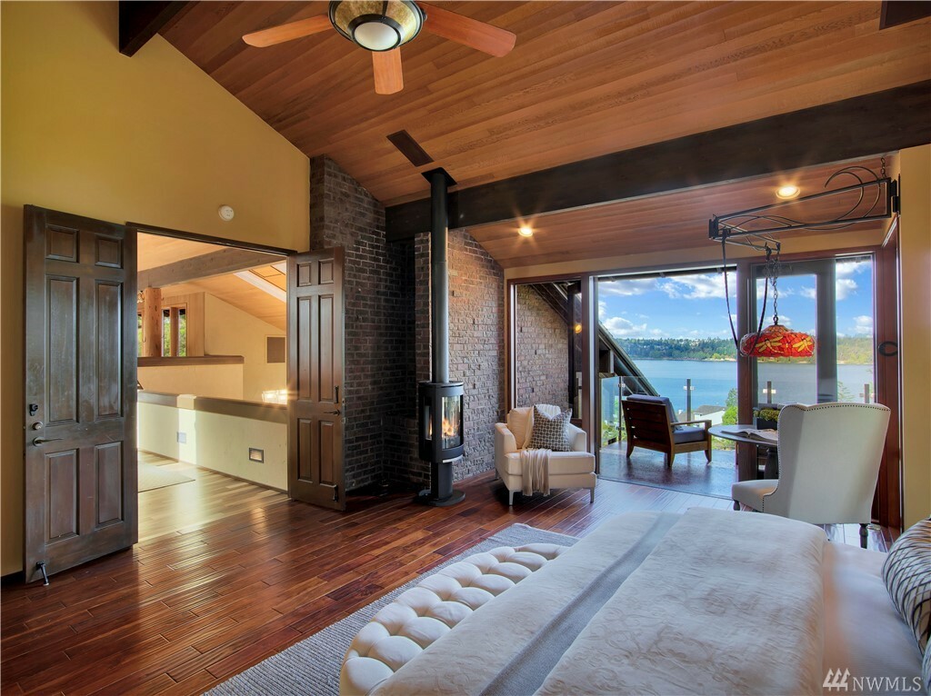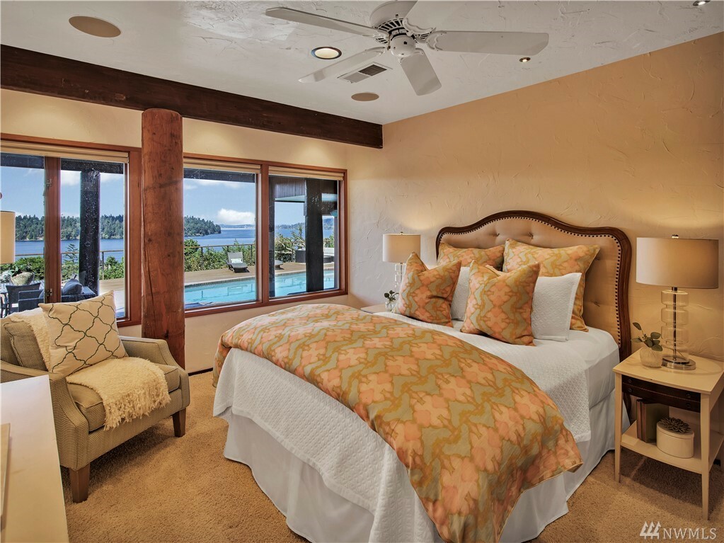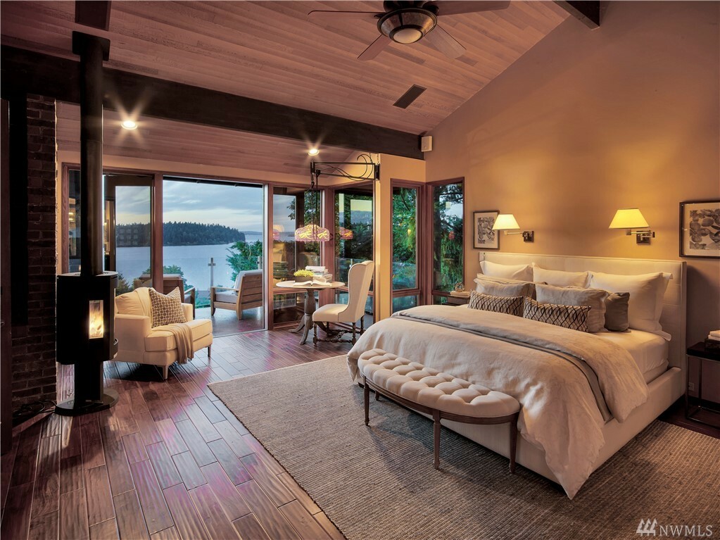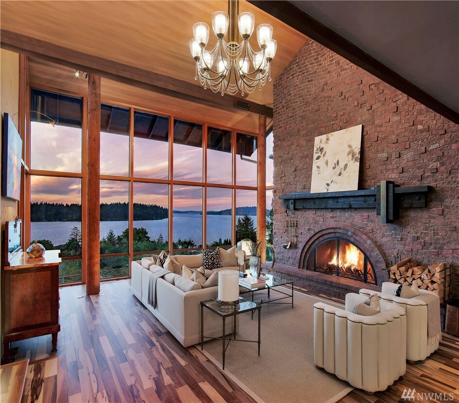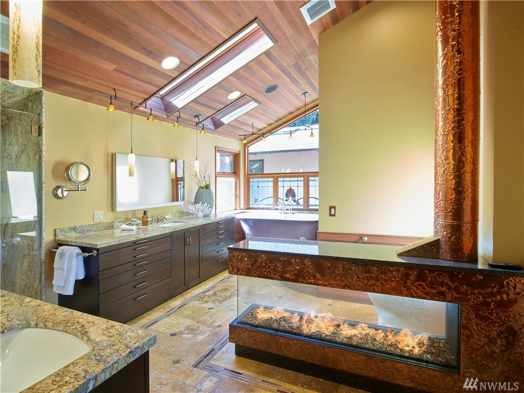 With vast views of Lake Washington, the sunlight through the evergreens and Seattle's twinkling city lights, this contemporary sanctuary honors nature and the dynamic beauty of the Northwest. Crisp architectural lines and floor to ceiling windows yield grand entertaining spaces with seamless flow indoors and out to layered decks and swimming pool. Designed to engage the senses, relax the mind and nourish the soul with cozy treehouse nooks, curated finishes and inspiring views at every turn. Delight in the eagles playing in the treetops, a soak in the claw-foot tub, the warmth of the sauna and roaring hearths. A rare estate poised on over an acre on a peaceful private lane with sport court, legal self-contained ADU and parking for a crowd.