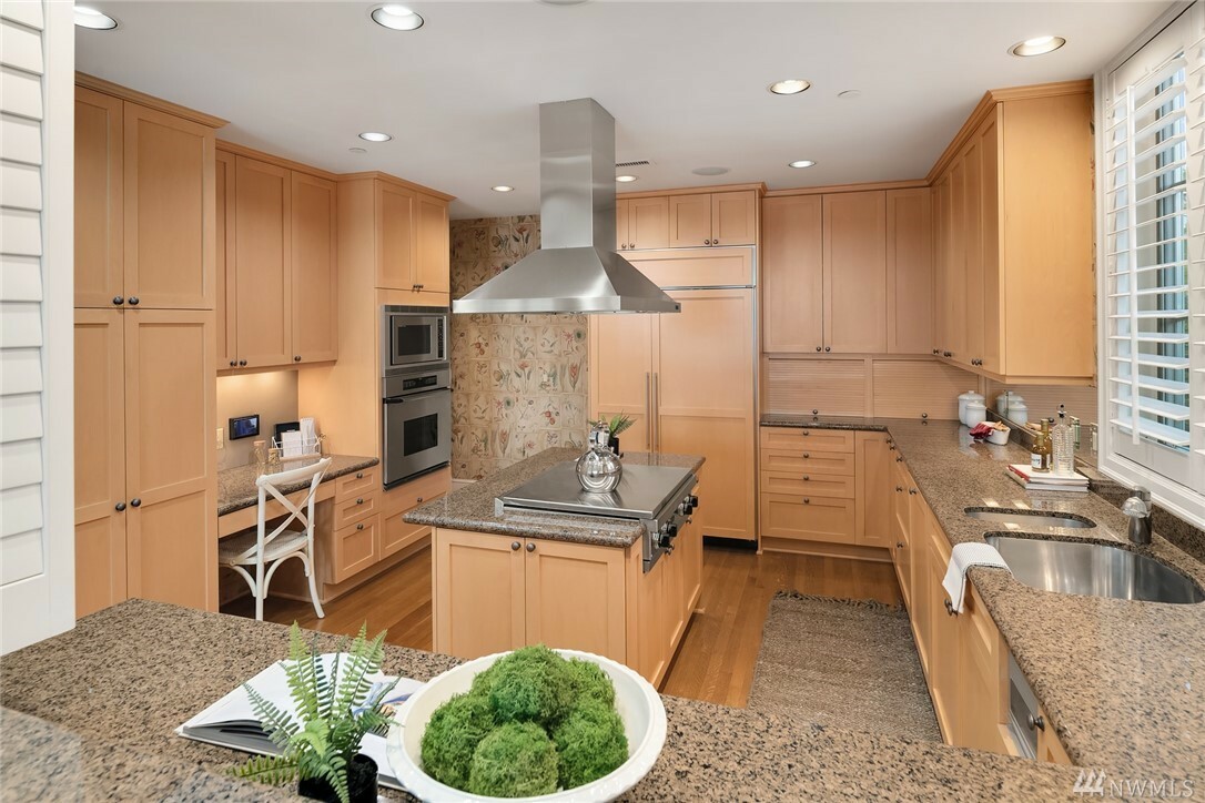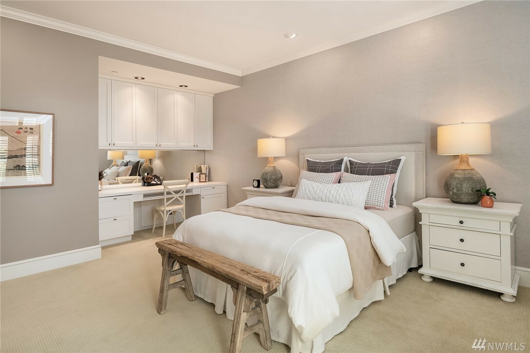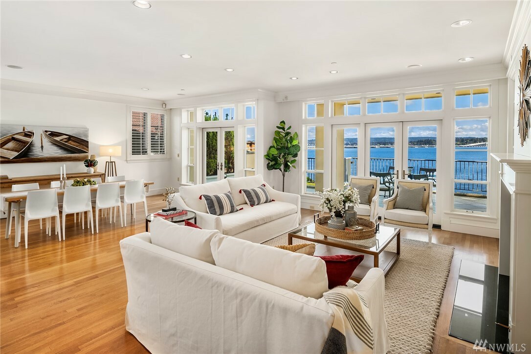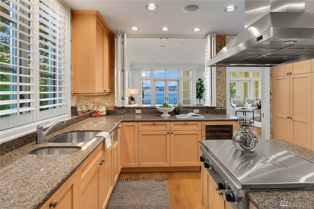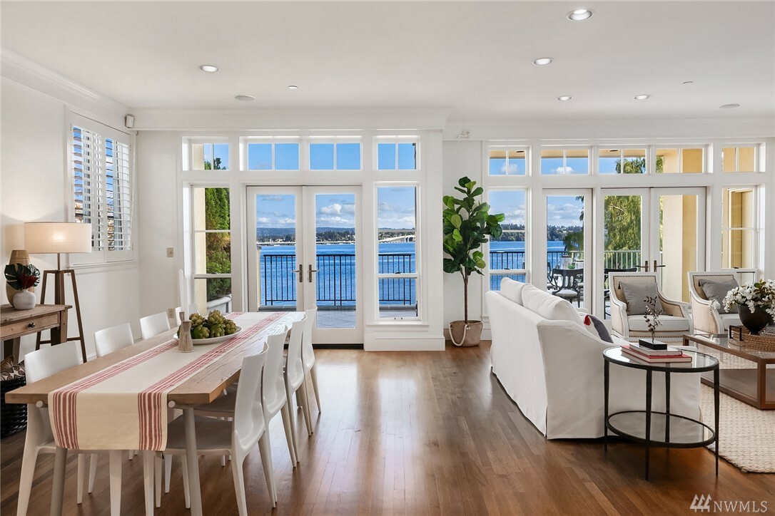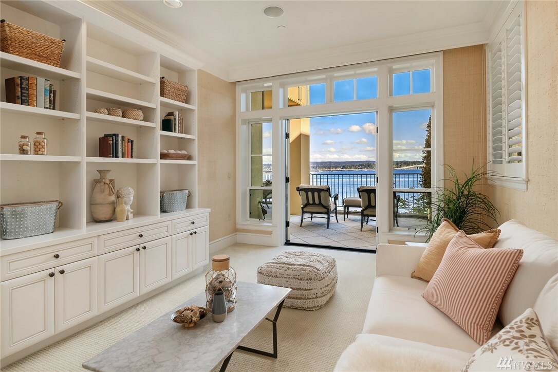 Simple elegance abounds from this beautiful home that spans the entire third floor of the boutique building across the street from Lake Washington in Madison Park. High quality, protected views are breathtaking from the generous deck of this 3 bed + library, 3.5 bath, 3,479 sq ft home. Secure elevator directly to the residence. Get ready to entertain from the well-appointed kitchen and serve guests in the formal dining room, the wide open living spaces or the outdoor deck areas. Look out at the lake and mountains from the primary suite including a cozy library, spacious walk-in closet and sumptuous 5 piece bath. 3 parking spaces plus storage in the secure garage. When ready to snowbird, just lock and leave. Rare and special opportunity!