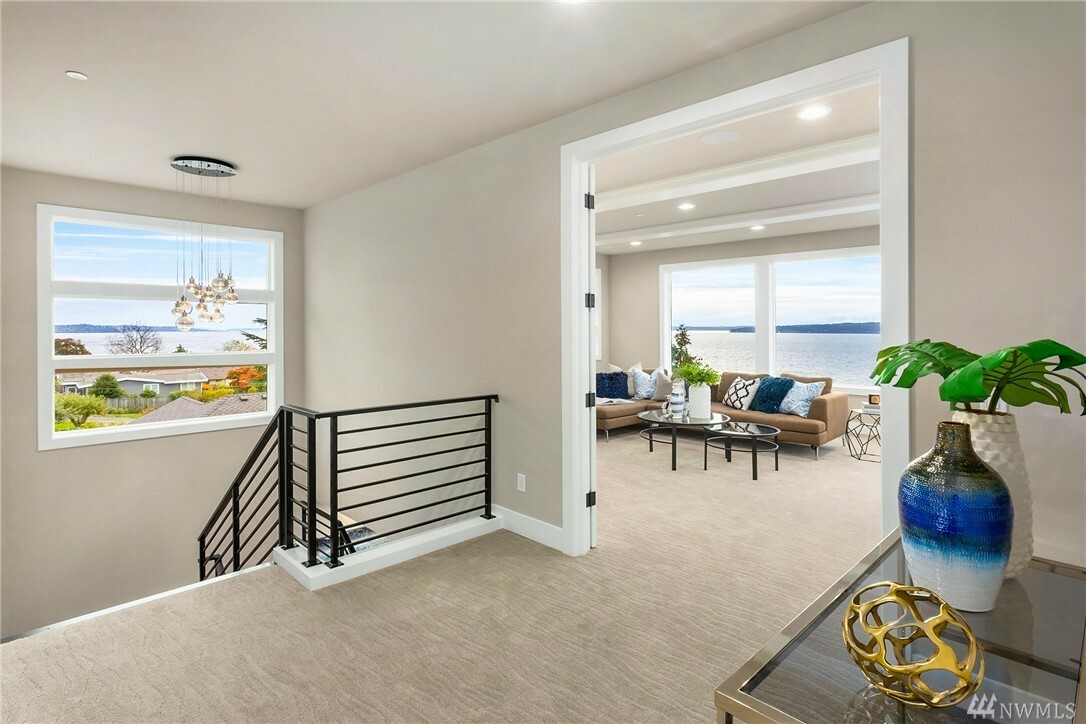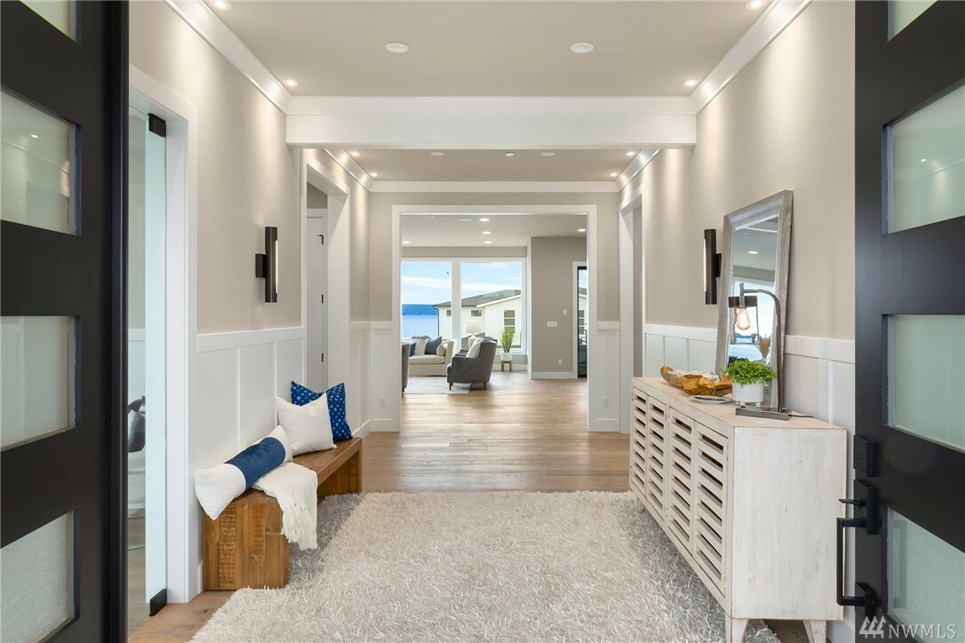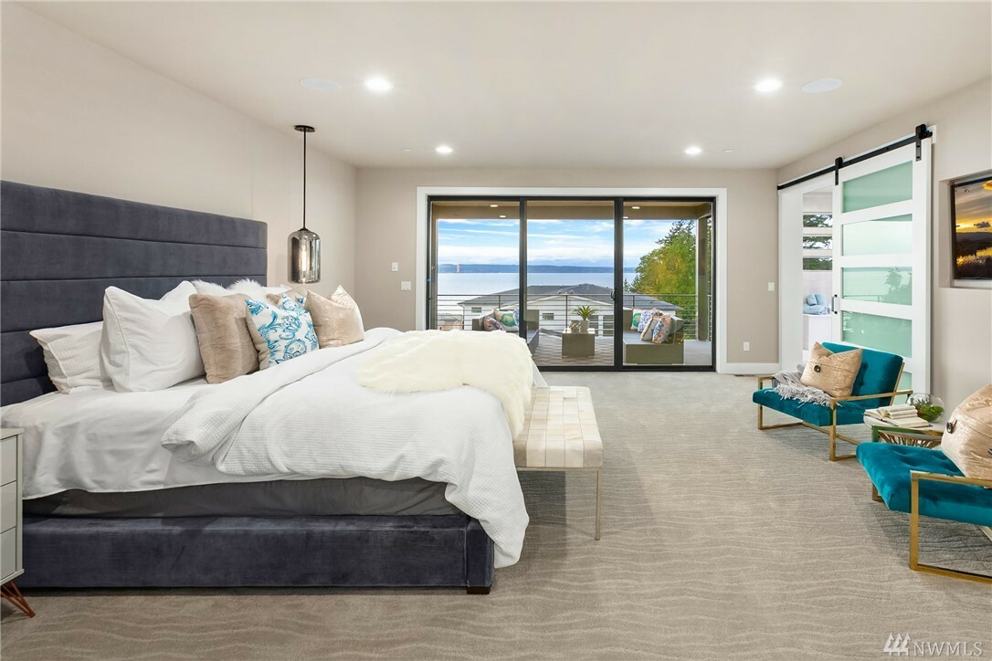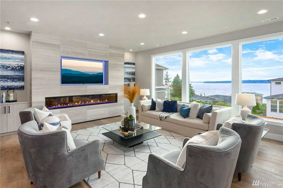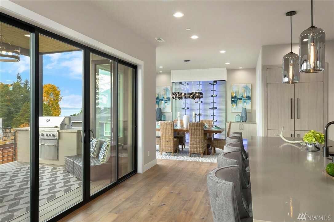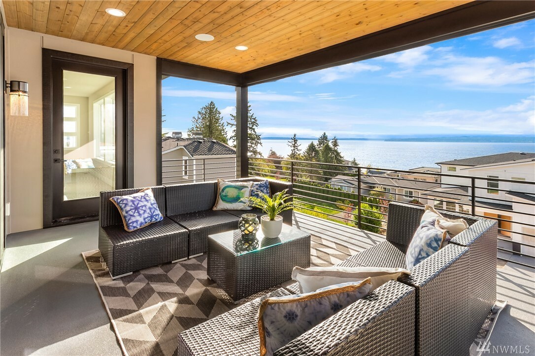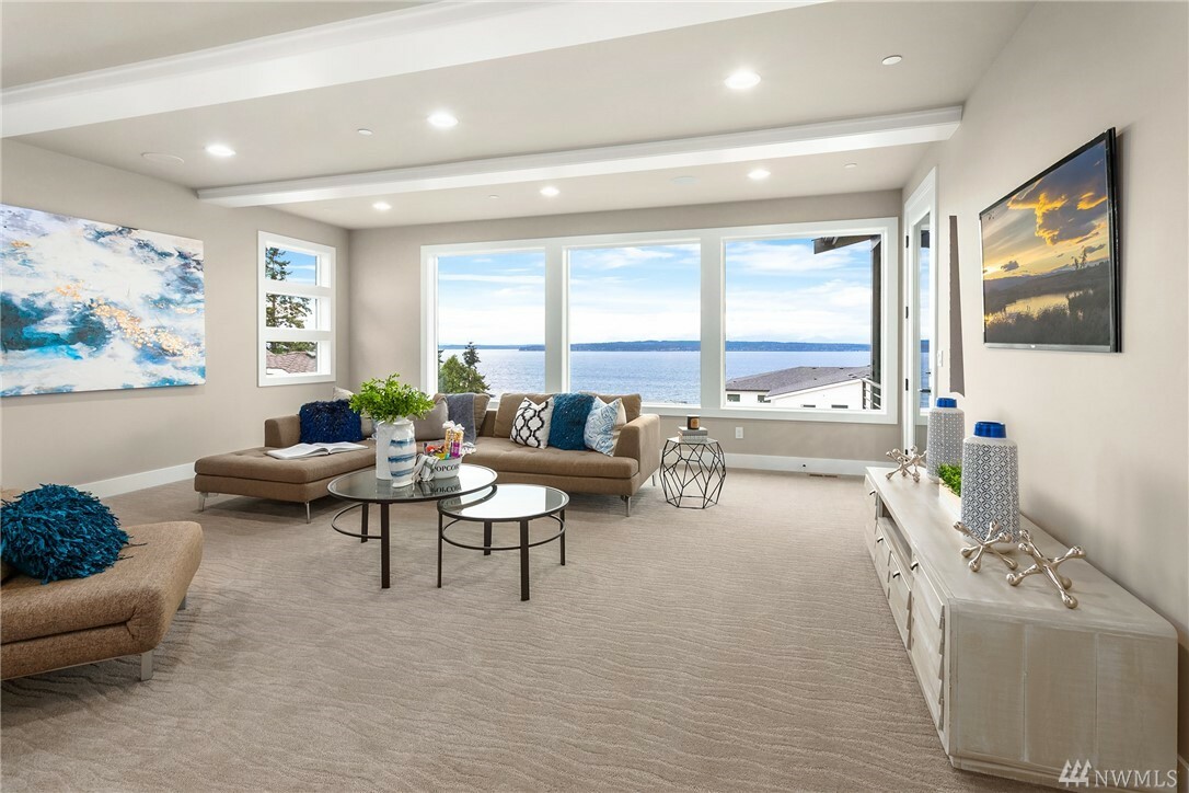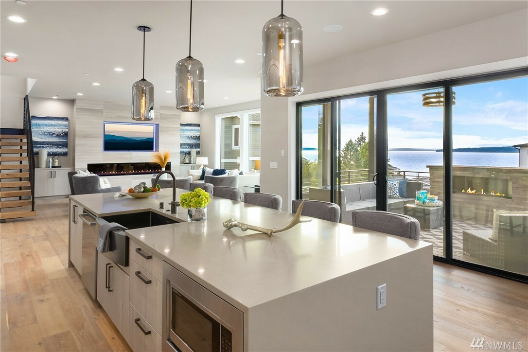 Stunning home Blt by J&S Developement w/Gorgeous Sound & Mtn Views from nearly every room. Level fully fenced yard. This home is warm & modern w/Custom Upgrades including 10’ Ceilings/8’Doors, 100” FP & custom Wine cellar with Accent lighting. Exceptional Flr plan features main Flr guest en-suite. Kitchen w/ massive 12’ Waterfall Island, Full Slab Backsplash, Pantry, Under Counter /Cabinet lighting,Commercial Appl’s w/Blt-in Frig. Covered Deck overlooking views w/Spkrs, Firepl ,Blt-in BBq. 2nd Sundeck off Owners Ste/Bns. Frameless Glass Door opens to Study w/wainscoting & beamed ceiling. 2nd Flr Bns Rm & spacious Owners Bed/Bath. Heated Flrs, Make-up Vanity, Soaking Tub, Customized Closet, 14’ tiled Shwr w/multiple Shwr Heads & Sound Views.