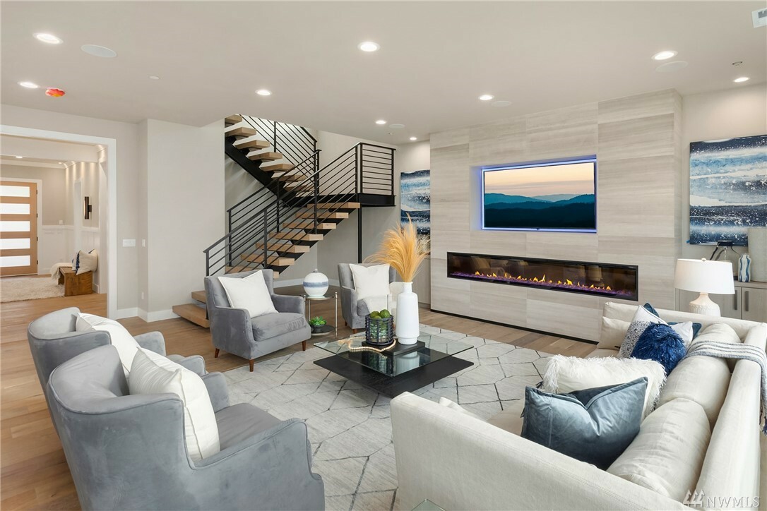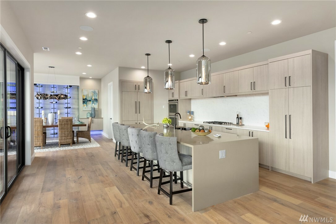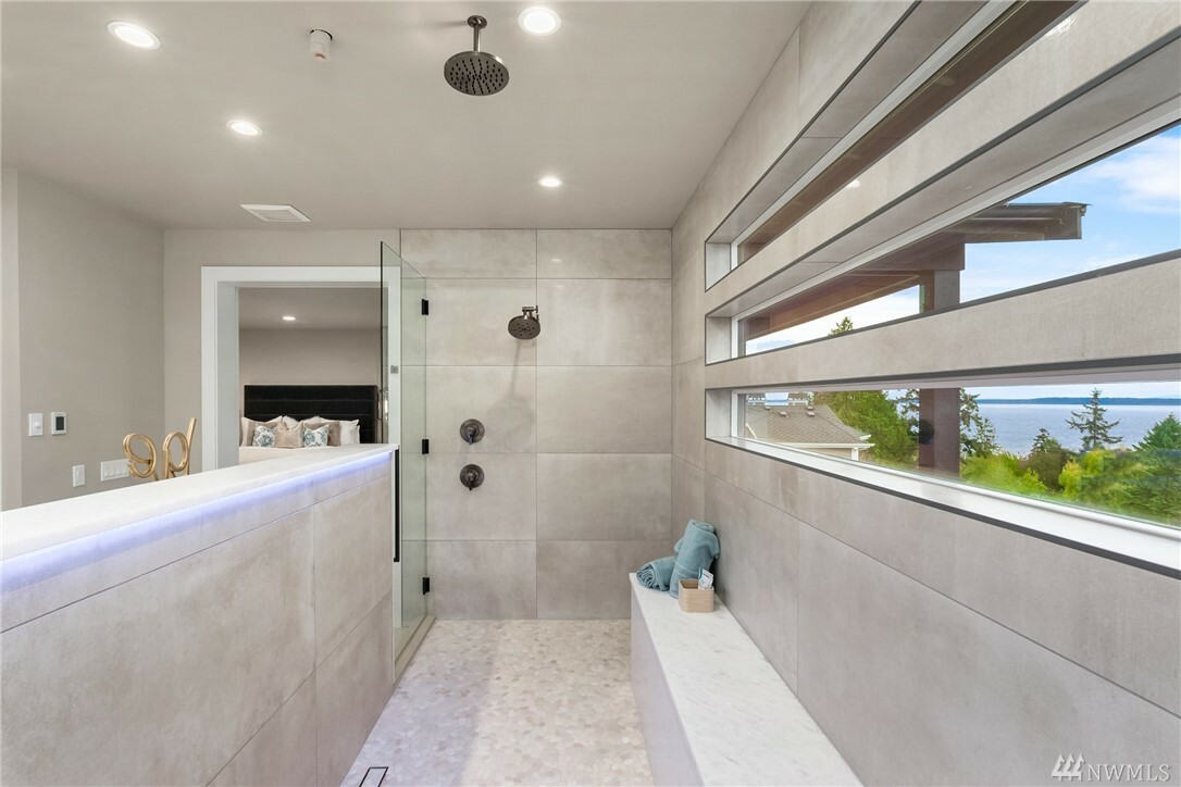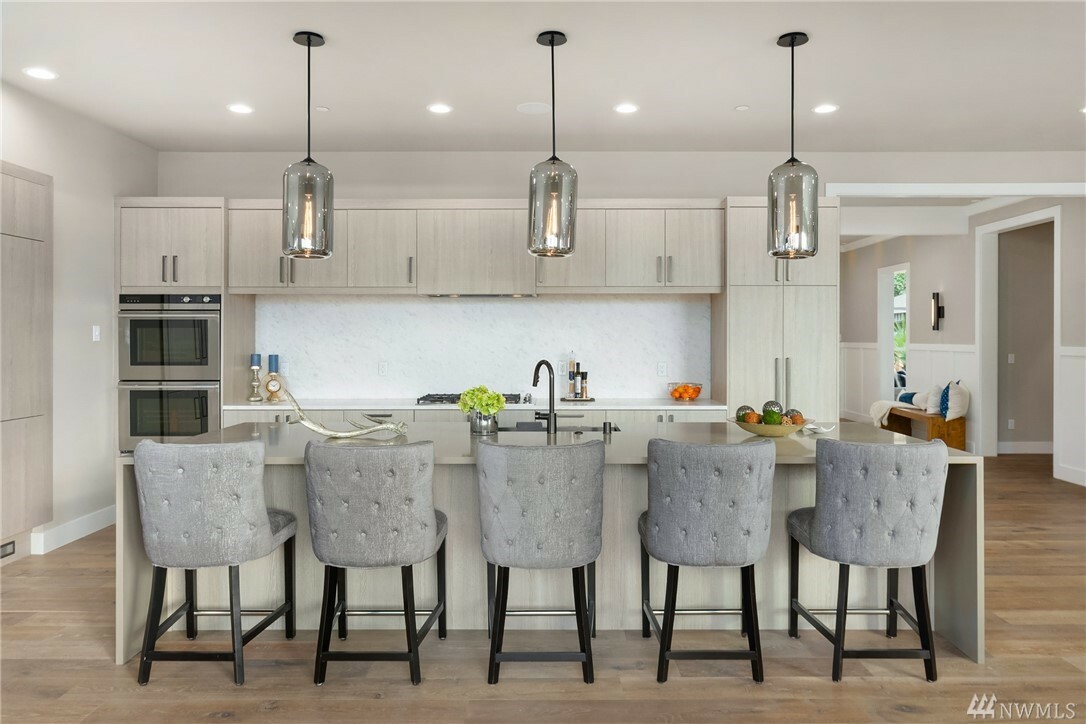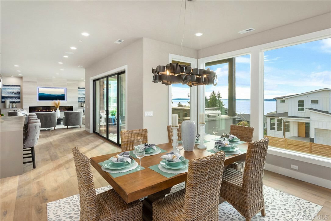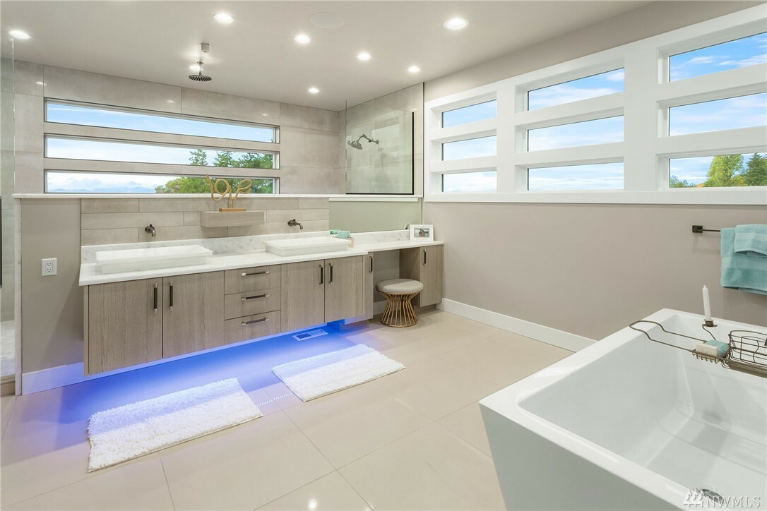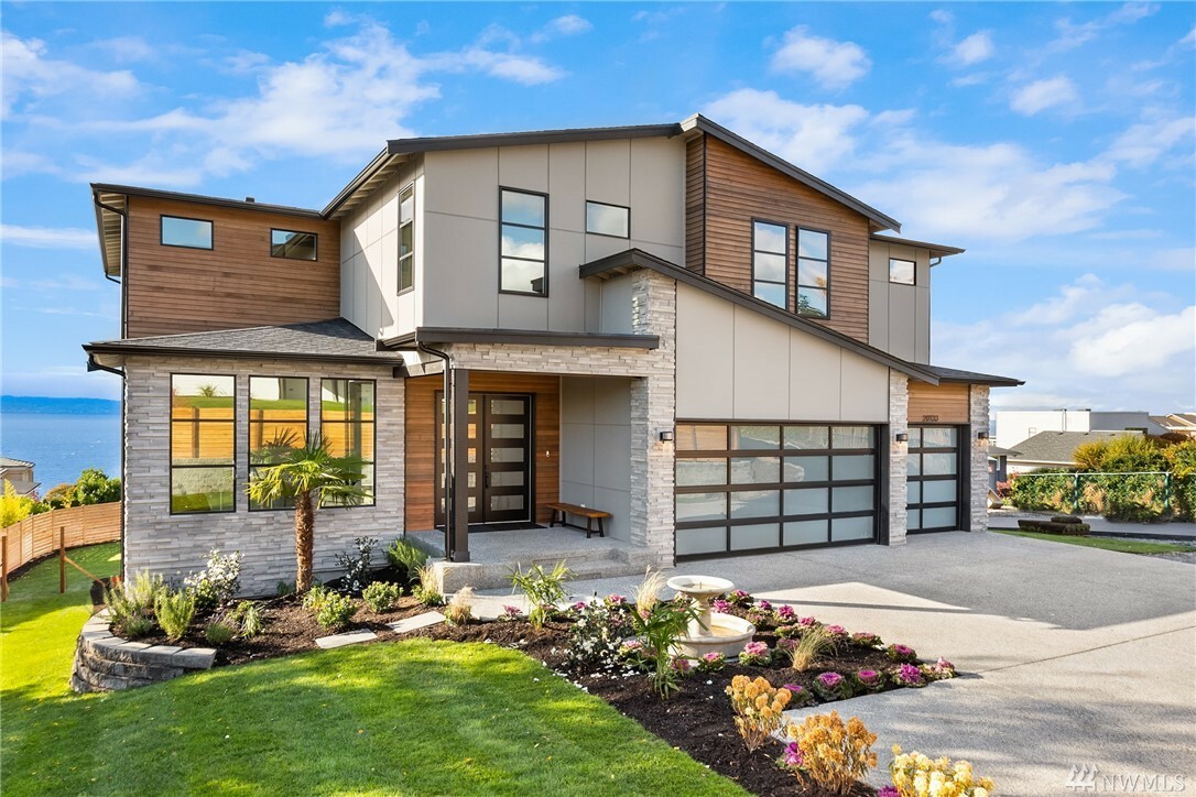 Stunning home Blt by J&S Developement w/Gorgeous Sound & Mtn Views from nearly every room. Level fully fenced yard. This home is warm & modern w/Custom Upgrades including 10’ Ceilings/8’Doors, 100” FP & custom Wine cellar with Accent lighting. Exceptional Flr plan features main Flr guest en-suite. Kitchen w/ massive 12’ Waterfall Island, Full Slab Backsplash, Pantry, Under Counter /Cabinet lighting,Commercial Appl’s w/Blt-in Frig. Covered Deck overlooking views w/Spkrs, Firepl ,Blt-in BBq. 2nd Sundeck off Owners Ste/Bns. Frameless Glass Door opens to Study w/wainscoting & beamed ceiling. 2nd Flr Bns Rm & spacious Owners Bed/Bath. Heated Flrs, Make-up Vanity, Soaking Tub, Customized Closet, 14’ tiled Shwr w/multiple Shwr Heads & Sound Views.