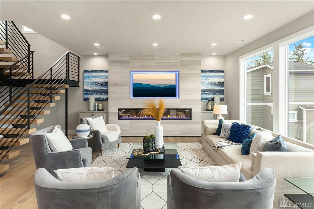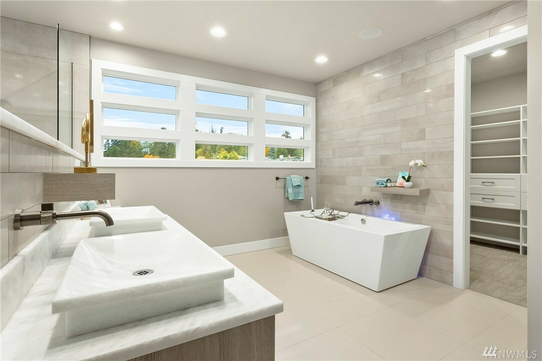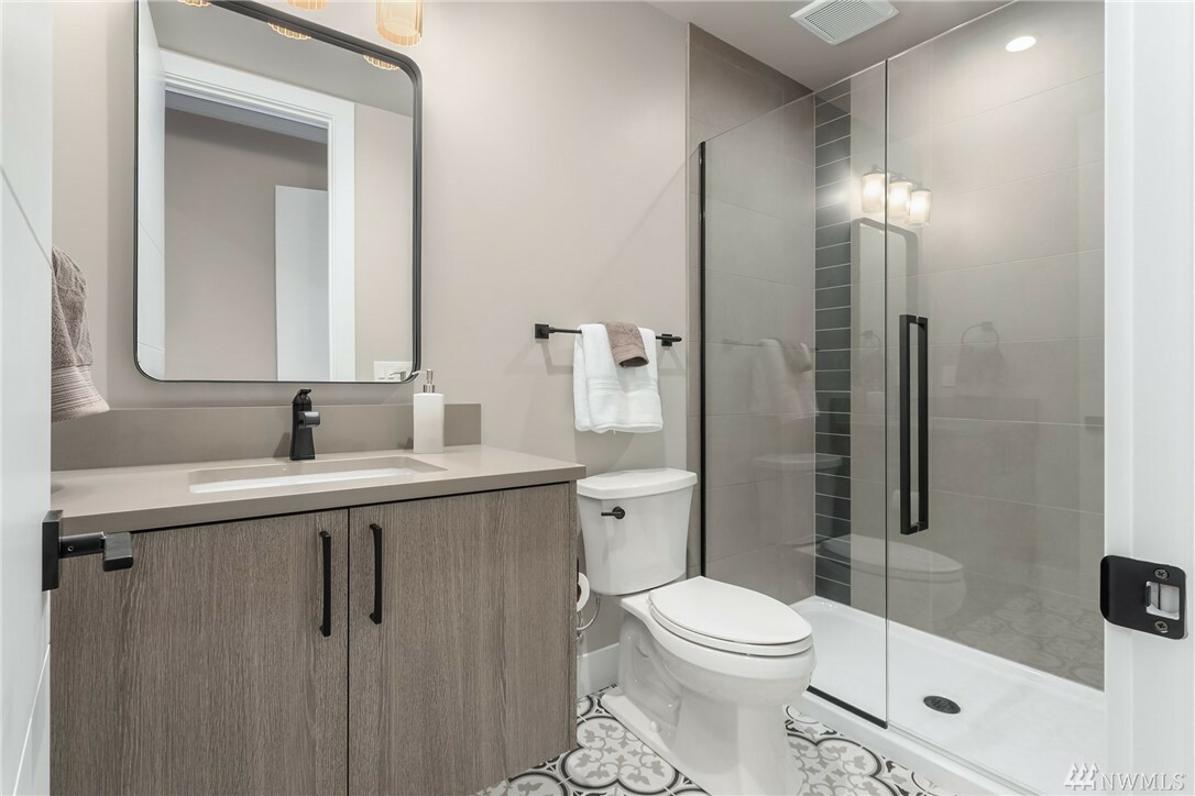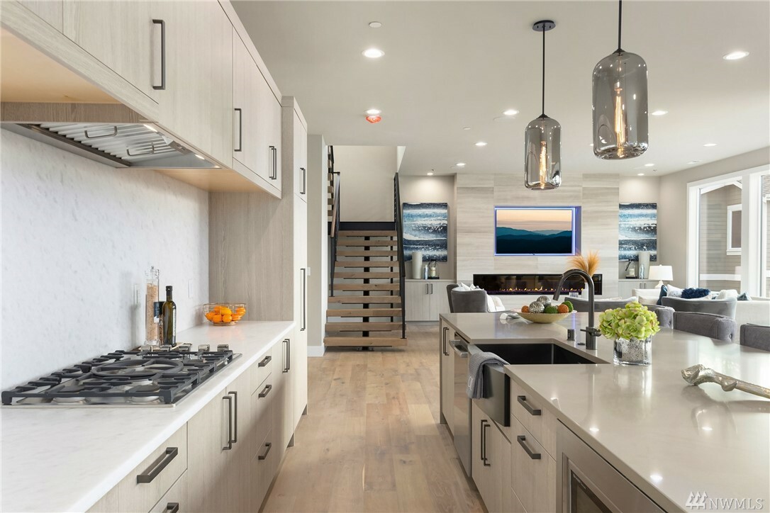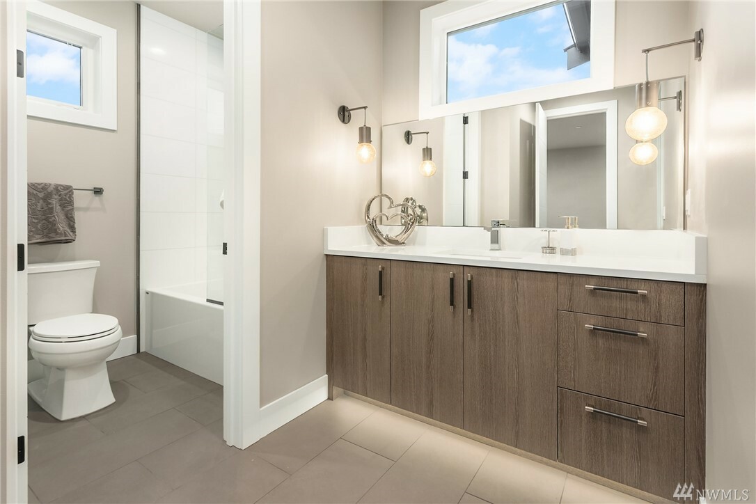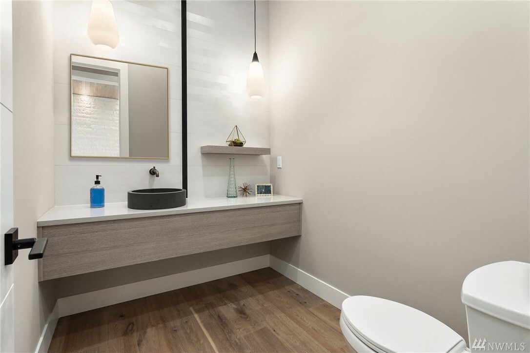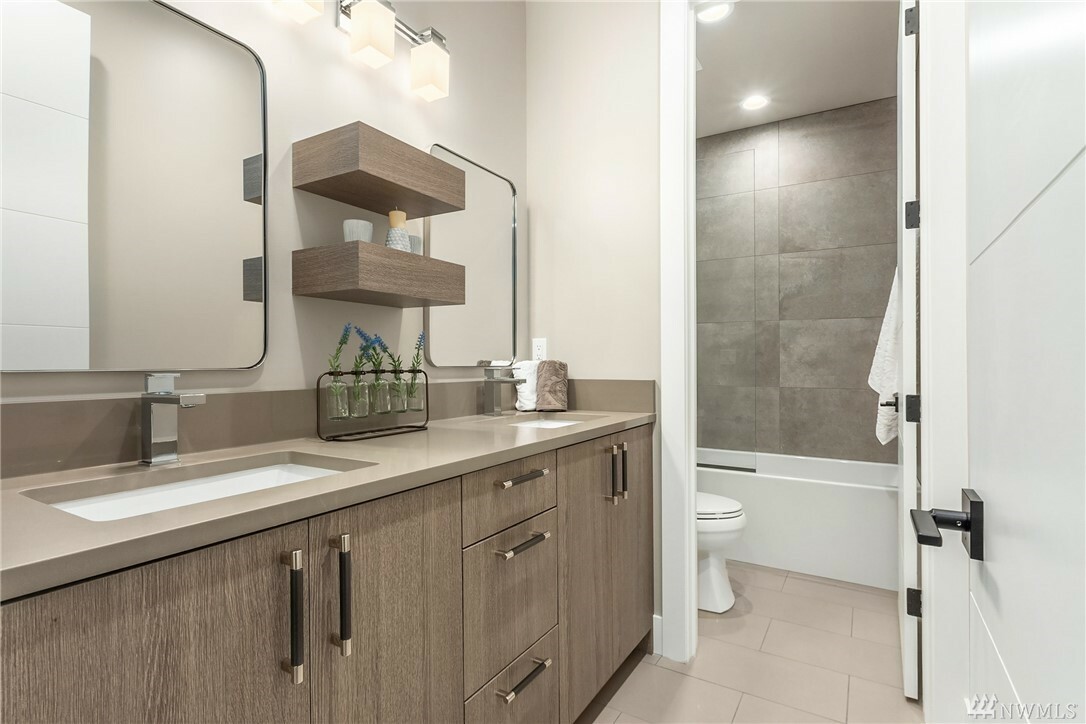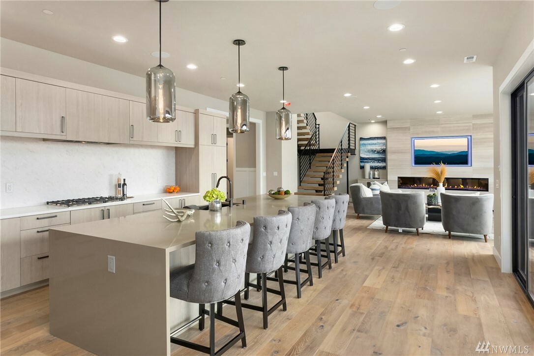 Stunning home Blt by J&S Developement w/Gorgeous Sound & Mtn Views from nearly every room. Level fully fenced yard. This home is warm & modern w/Custom Upgrades including 10’ Ceilings/8’Doors, 100” FP & custom Wine cellar with Accent lighting. Exceptional Flr plan features main Flr guest en-suite. Kitchen w/ massive 12’ Waterfall Island, Full Slab Backsplash, Pantry, Under Counter /Cabinet lighting,Commercial Appl’s w/Blt-in Frig. Covered Deck overlooking views w/Spkrs, Firepl ,Blt-in BBq. 2nd Sundeck off Owners Ste/Bns. Frameless Glass Door opens to Study w/wainscoting & beamed ceiling. 2nd Flr Bns Rm & spacious Owners Bed/Bath. Heated Flrs, Make-up Vanity, Soaking Tub, Customized Closet, 14’ tiled Shwr w/multiple Shwr Heads & Sound Views.