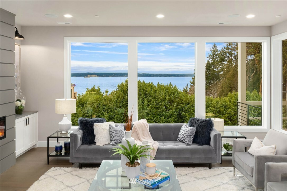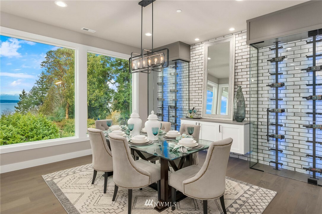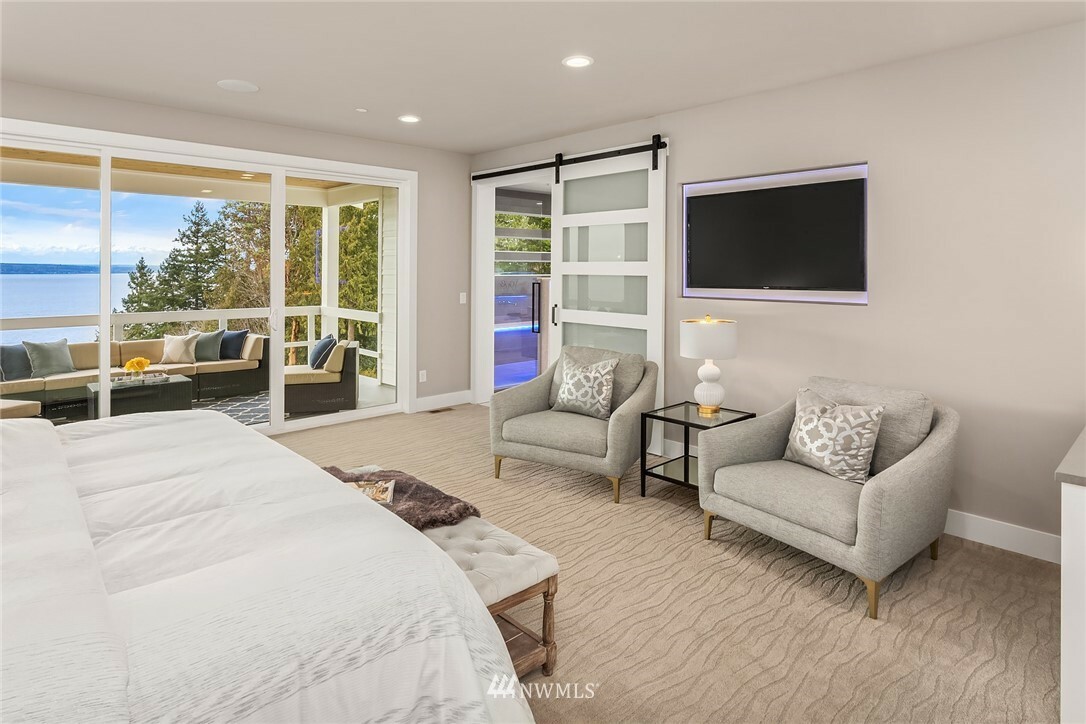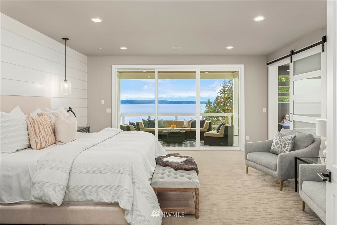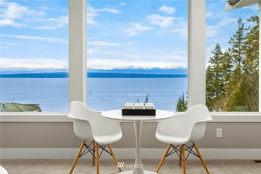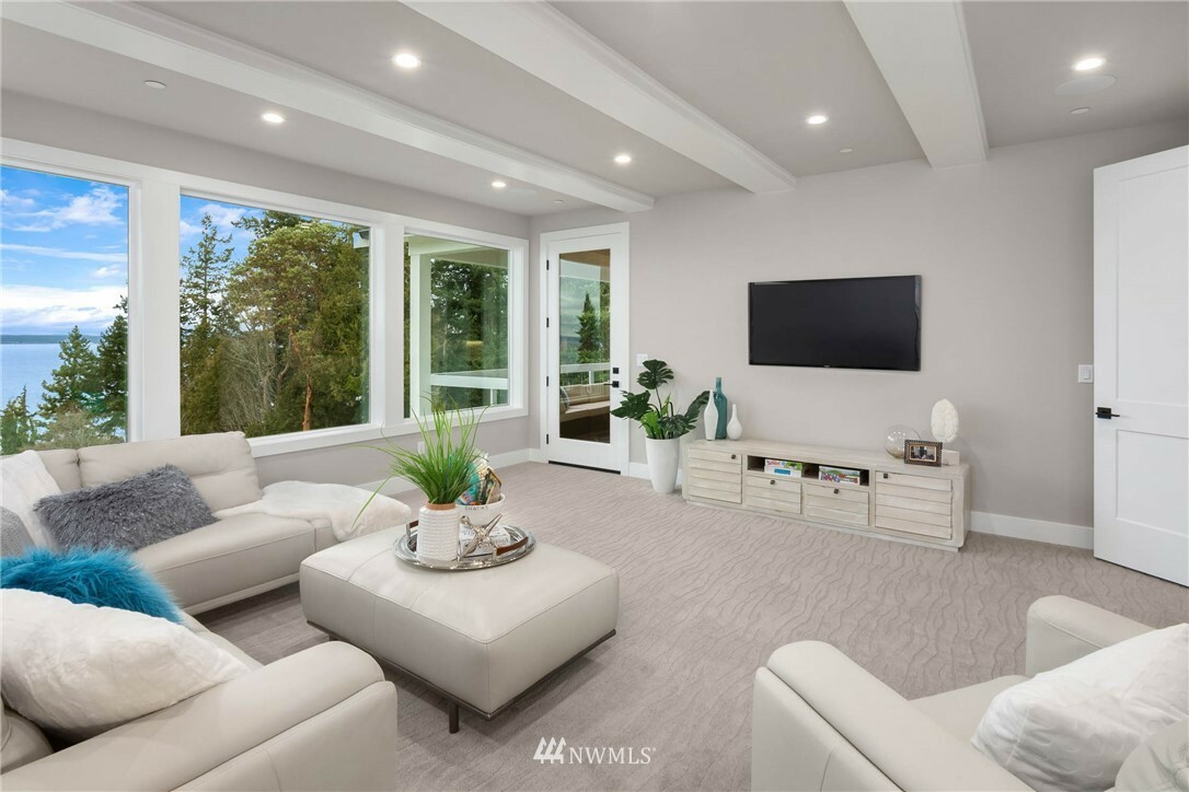 Stunning home Blt by J&S Developement w/Gorgeous Sound & Mtn Views from nearly every room. Level fully fenced yard. This home is warm & modern w/Custom Upgrades including 10’ Ceilings/8’Doors, 100” FP & custom Wine cellar with Accent lighting. Exceptional Flr plan features main Flr guest en-suite. Kitchen w/ massive 12’ Waterfall Island, Full Slab Backsplash, Pantry, Under Counter /Cabinet lighting,Commercial Appl’s w/Blt-in Frig. Covered Deck overlooking views w/Spkrs, Firepl ,Blt-in BBq. 2nd Sundeck off Owners Ste/Bns. Frameless Glass Door opens to Study w/wainscoting & beamed ceiling. 2nd Flr Bns Rm & spacious Owners Bed/Bath. Heated Flrs, Make-up Vanity, Soaking Tub, Customized Closet, 14’ tiled Shwr w/multiple Shwr Heads & Sound Views.