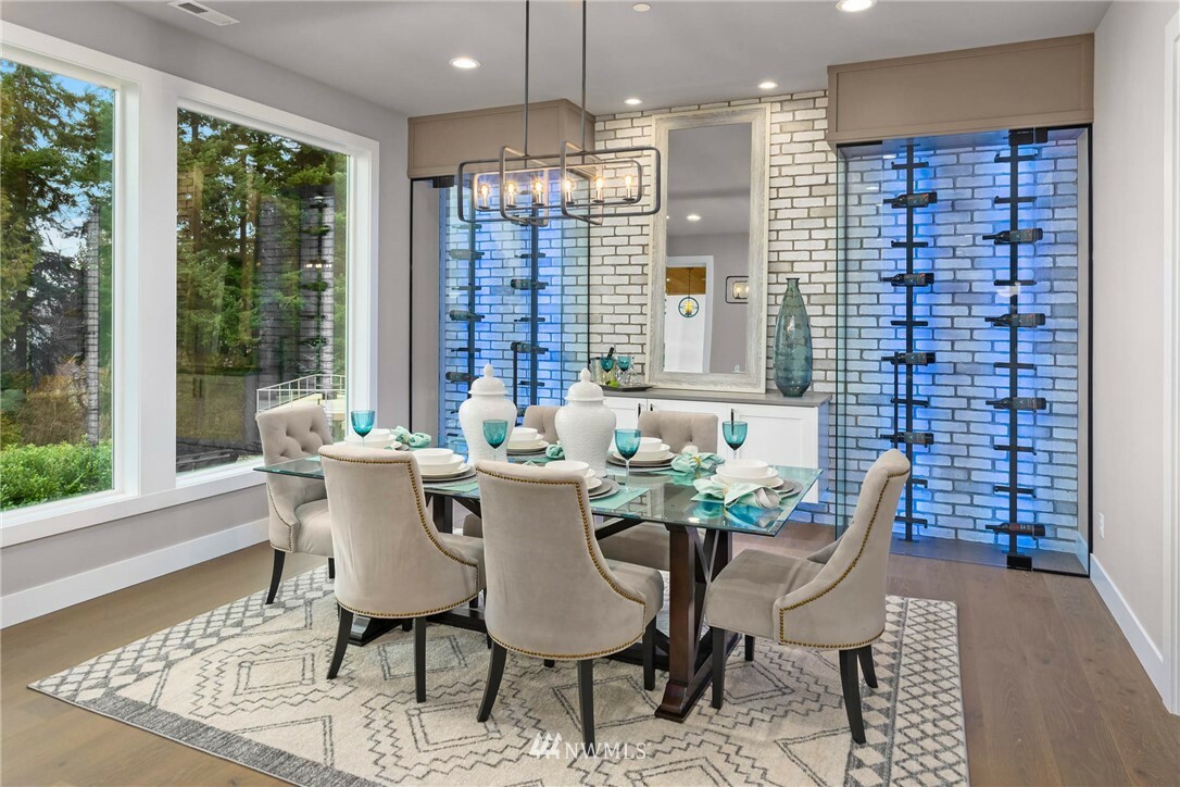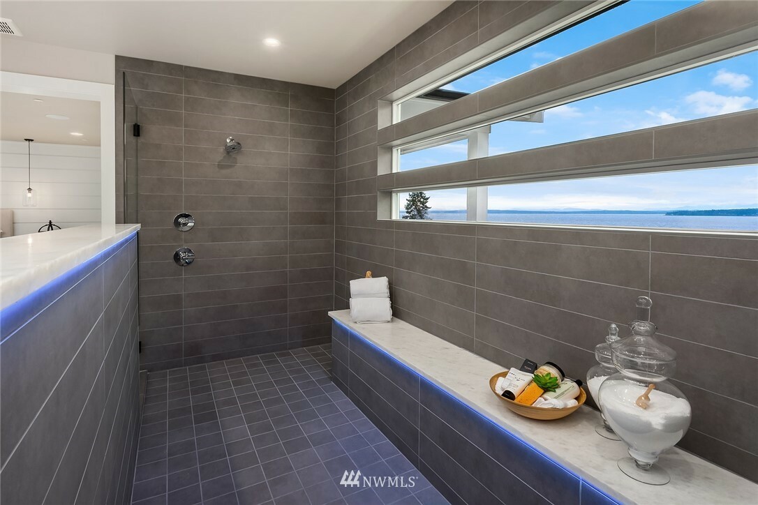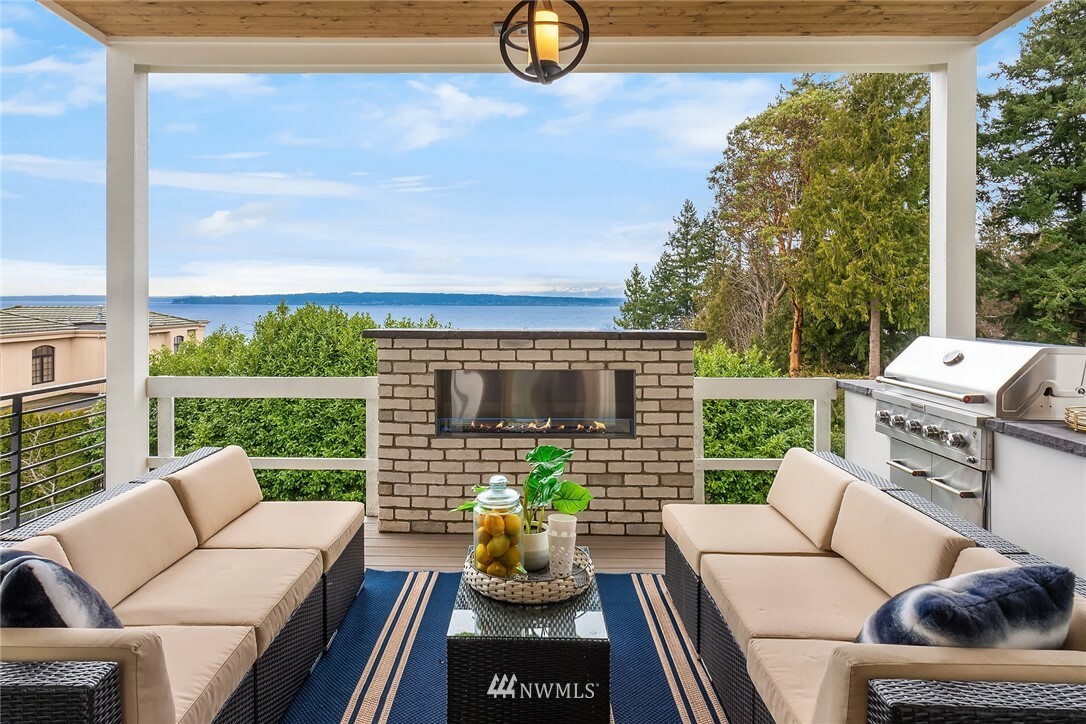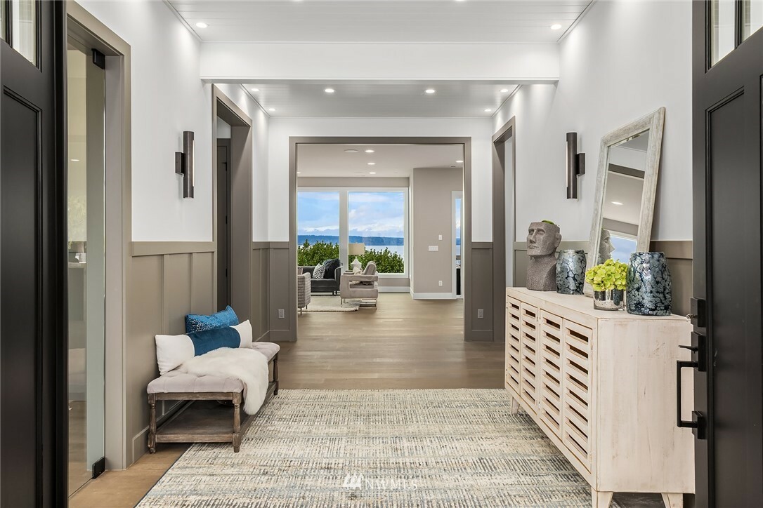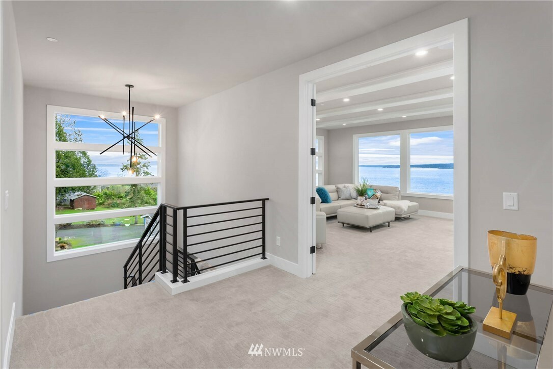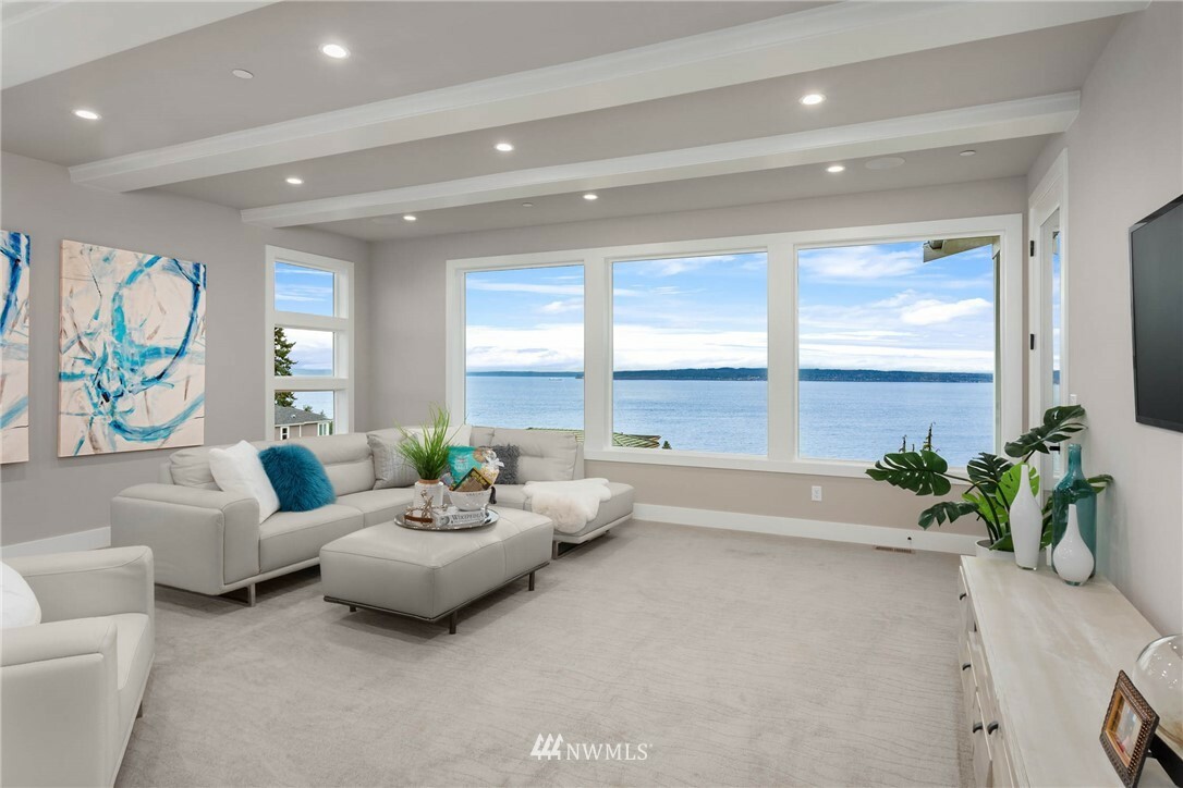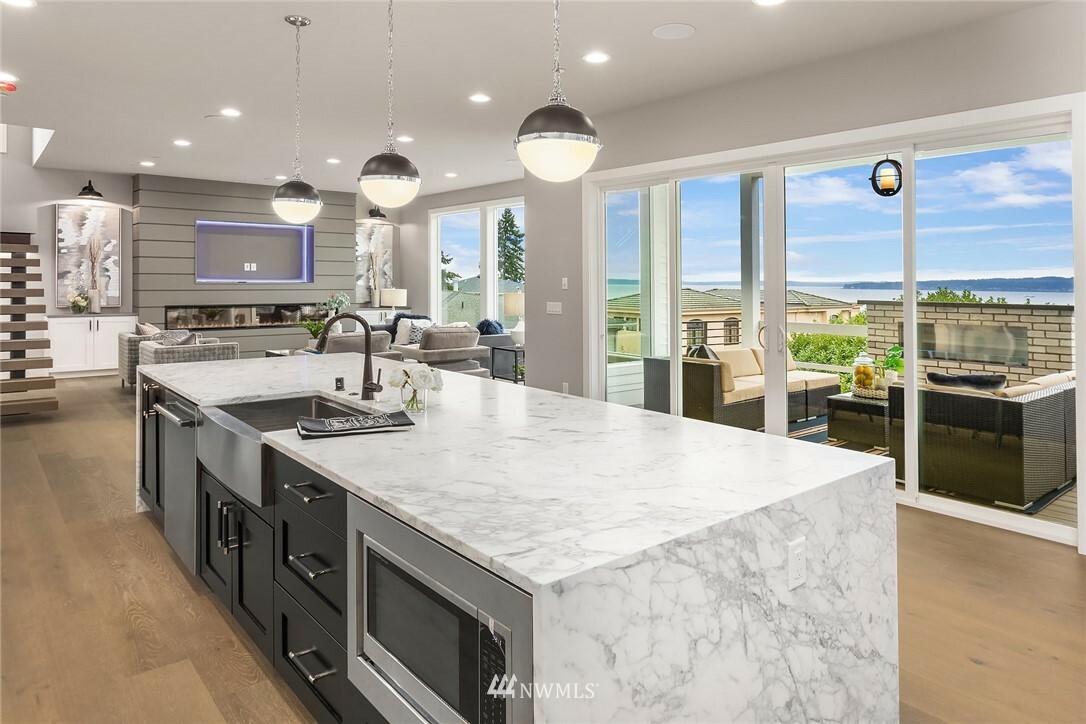 Stunning home Blt by J&S Developement w/Gorgeous Sound & Mtn Views from nearly every room. Level fully fenced yard. This home is warm & modern w/Custom Upgrades including 10’ Ceilings/8’Doors, 100” FP & custom Wine cellar with Accent lighting. Exceptional Flr plan features main Flr guest en-suite. Kitchen w/ massive 12’ Waterfall Island, Full Slab Backsplash, Pantry, Under Counter /Cabinet lighting,Commercial Appl’s w/Blt-in Frig. Covered Deck overlooking views w/Spkrs, Firepl ,Blt-in BBq. 2nd Sundeck off Owners Ste/Bns. Frameless Glass Door opens to Study w/wainscoting & beamed ceiling. 2nd Flr Bns Rm & spacious Owners Bed/Bath. Heated Flrs, Make-up Vanity, Soaking Tub, Customized Closet, 14’ tiled Shwr w/multiple Shwr Heads & Sound Views.