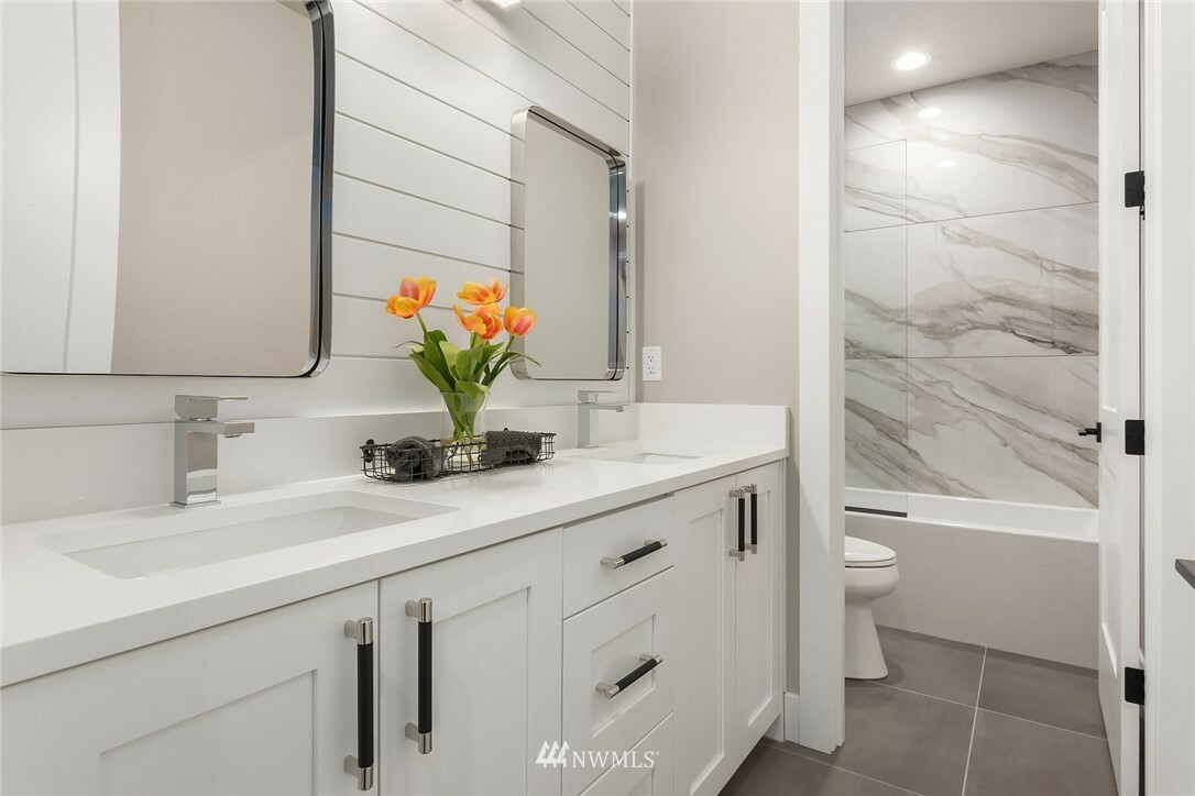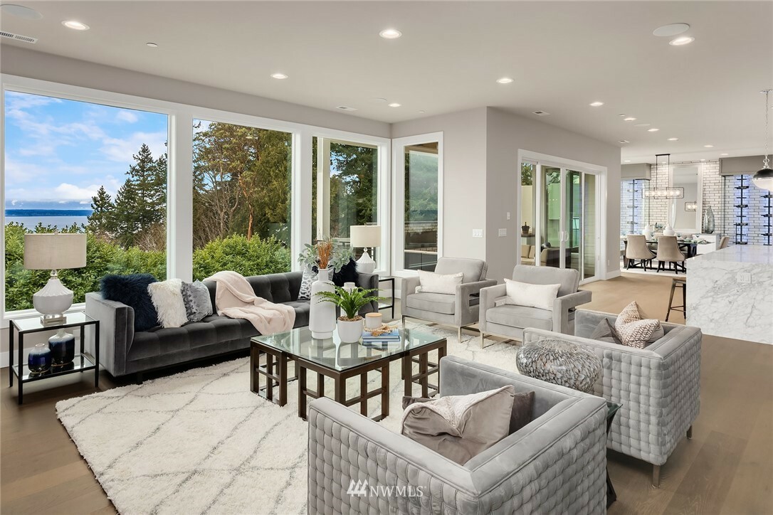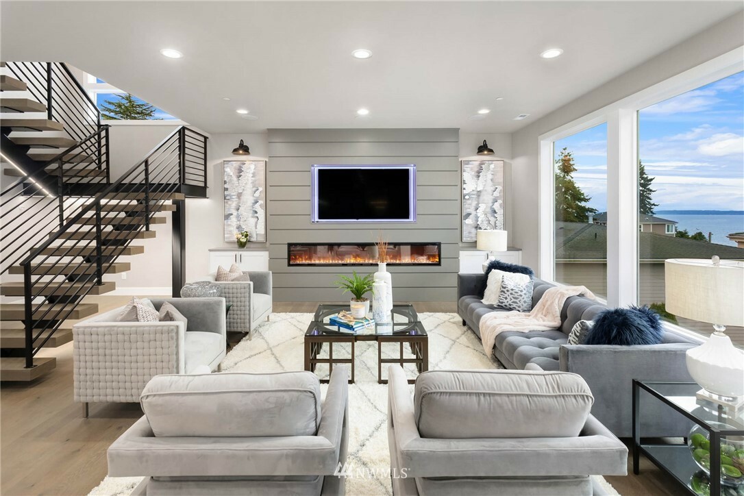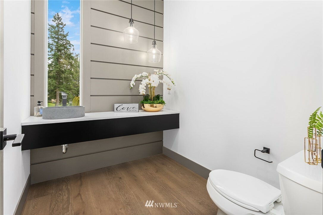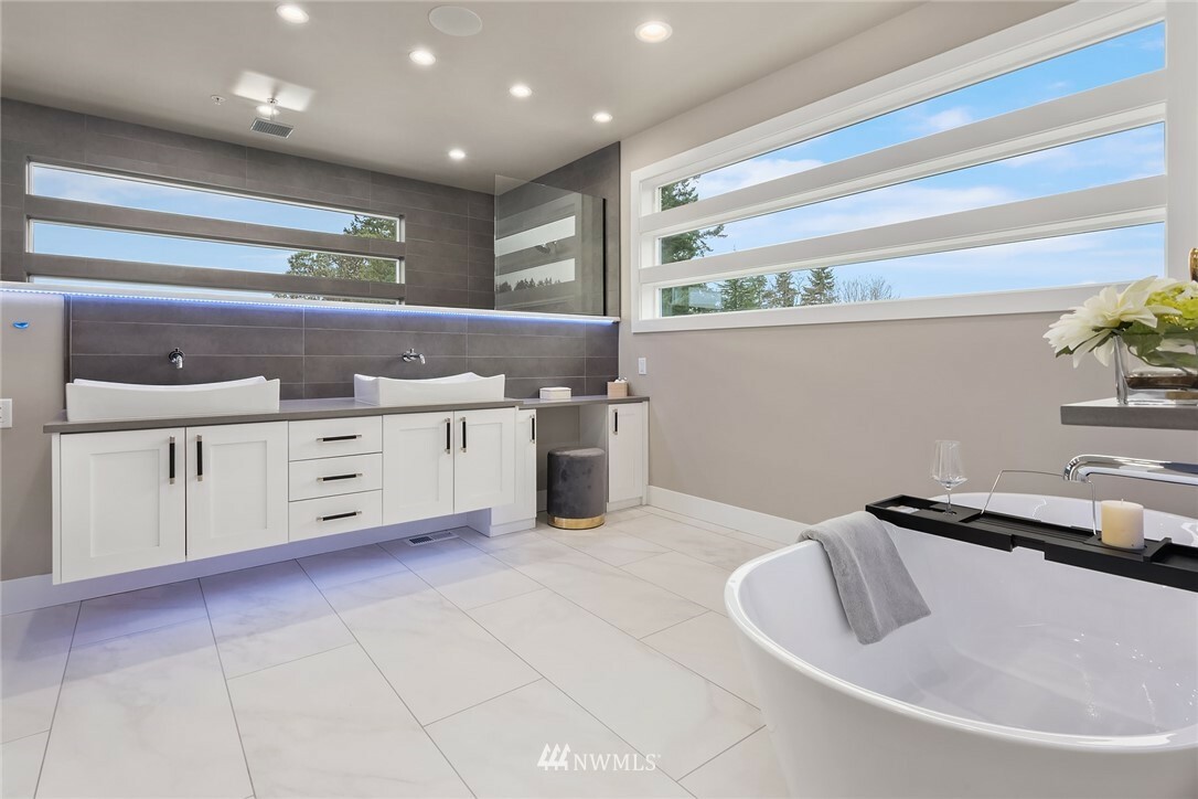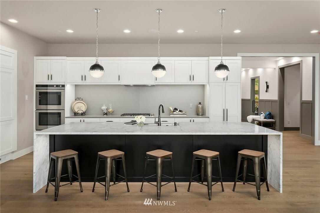 Stunning home Blt by J&S Developement w/Gorgeous Sound & Mtn Views from nearly every room. Level fully fenced yard. This home is warm & modern w/Custom Upgrades including 10’ Ceilings/8’Doors, 100” FP & custom Wine cellar with Accent lighting. Exceptional Flr plan features main Flr guest en-suite. Kitchen w/ massive 12’ Waterfall Island, Full Slab Backsplash, Pantry, Under Counter /Cabinet lighting,Commercial Appl’s w/Blt-in Frig. Covered Deck overlooking views w/Spkrs, Firepl ,Blt-in BBq. 2nd Sundeck off Owners Ste/Bns. Frameless Glass Door opens to Study w/wainscoting & beamed ceiling. 2nd Flr Bns Rm & spacious Owners Bed/Bath. Heated Flrs, Make-up Vanity, Soaking Tub, Customized Closet, 14’ tiled Shwr w/multiple Shwr Heads & Sound Views.