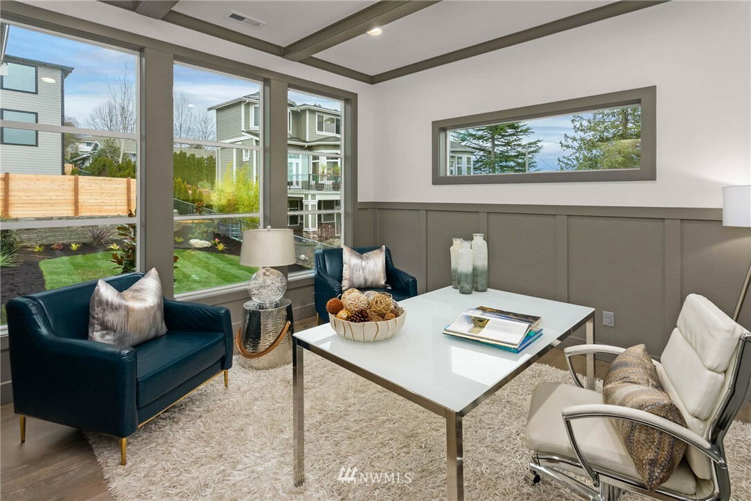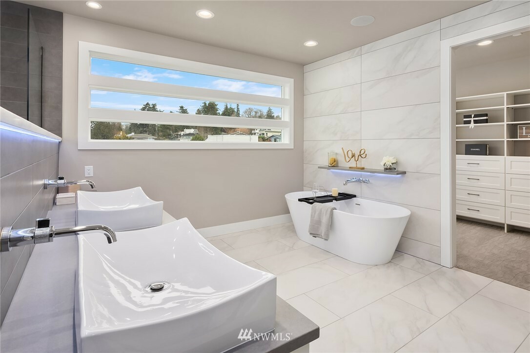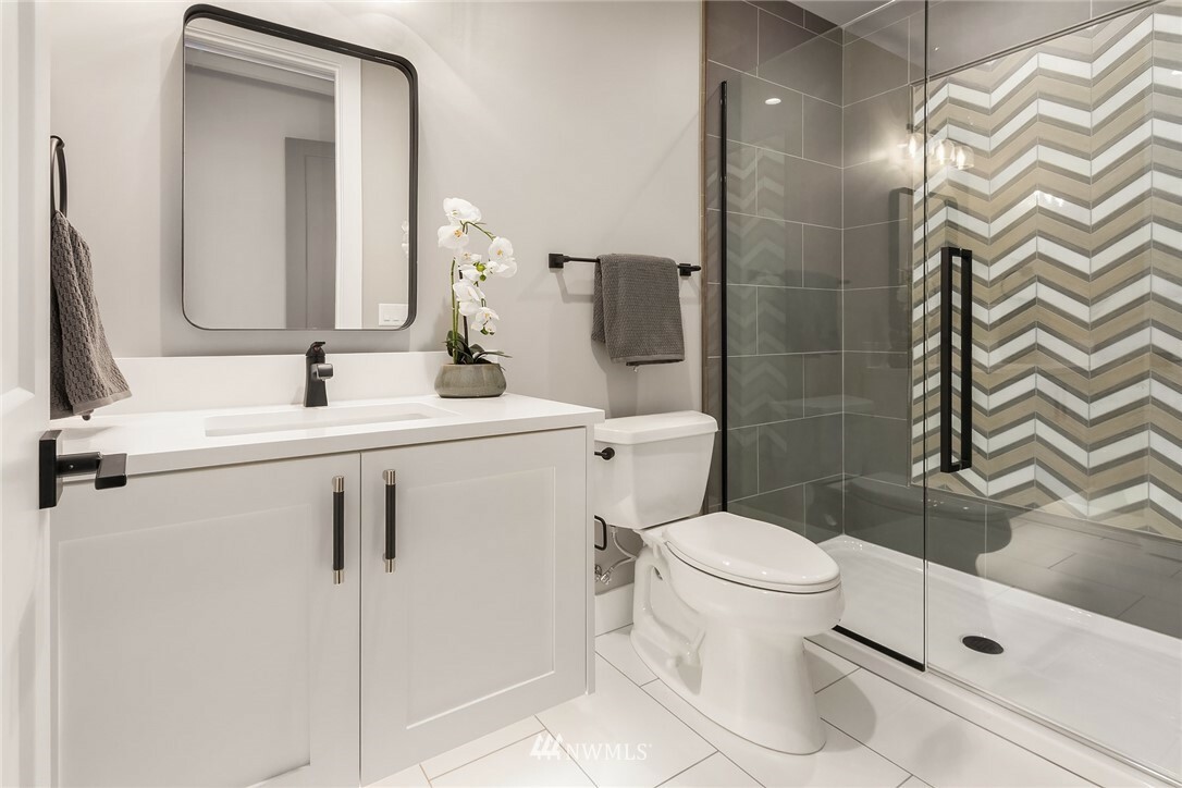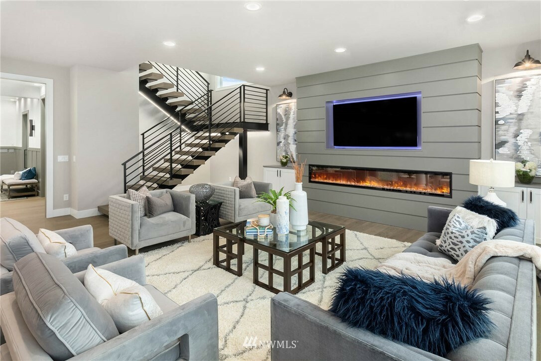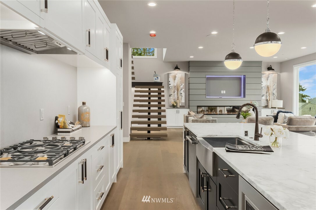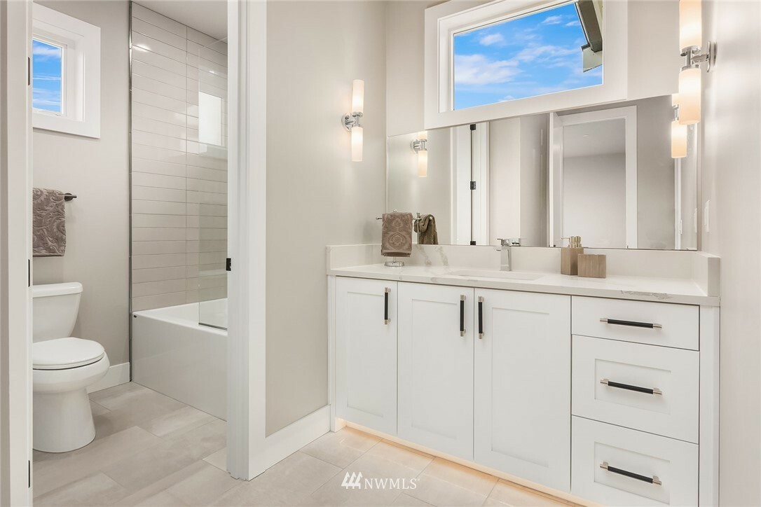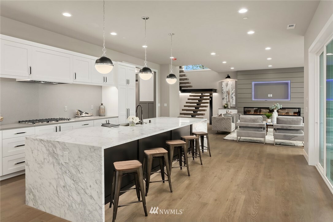 Stunning home Blt by J&S Developement w/Gorgeous Sound & Mtn Views from nearly every room. Level fully fenced yard. This home is warm & modern w/Custom Upgrades including 10’ Ceilings/8’Doors, 100” FP & custom Wine cellar with Accent lighting. Exceptional Flr plan features main Flr guest en-suite. Kitchen w/ massive 12’ Waterfall Island, Full Slab Backsplash, Pantry, Under Counter /Cabinet lighting,Commercial Appl’s w/Blt-in Frig. Covered Deck overlooking views w/Spkrs, Firepl ,Blt-in BBq. 2nd Sundeck off Owners Ste/Bns. Frameless Glass Door opens to Study w/wainscoting & beamed ceiling. 2nd Flr Bns Rm & spacious Owners Bed/Bath. Heated Flrs, Make-up Vanity, Soaking Tub, Customized Closet, 14’ tiled Shwr w/multiple Shwr Heads & Sound Views.