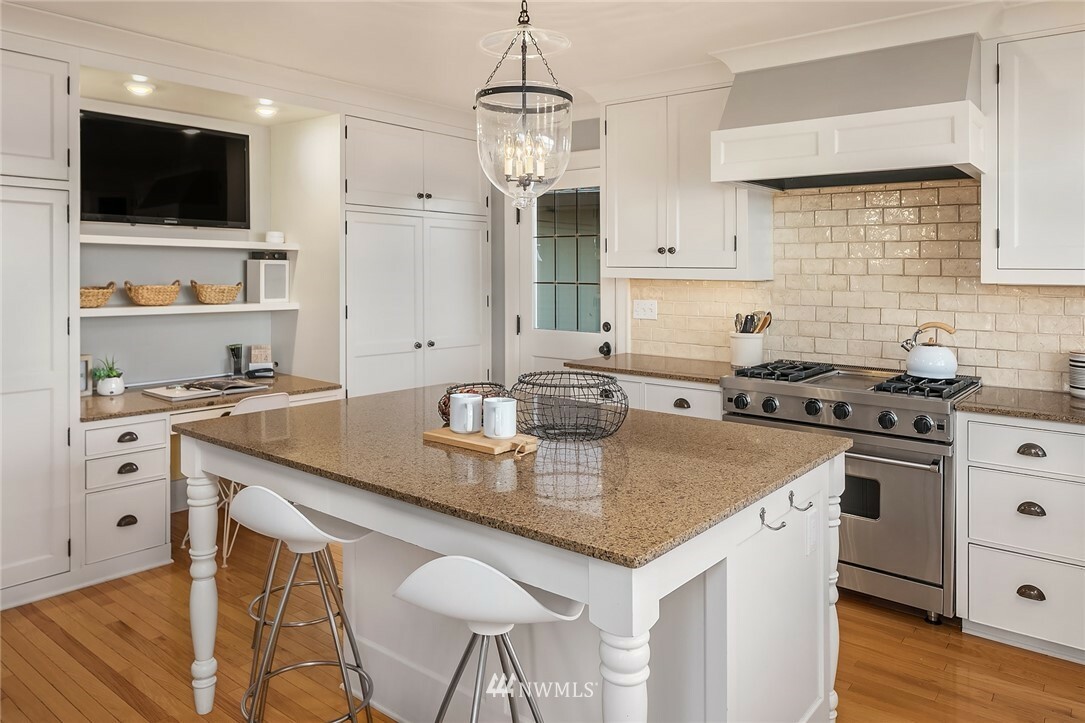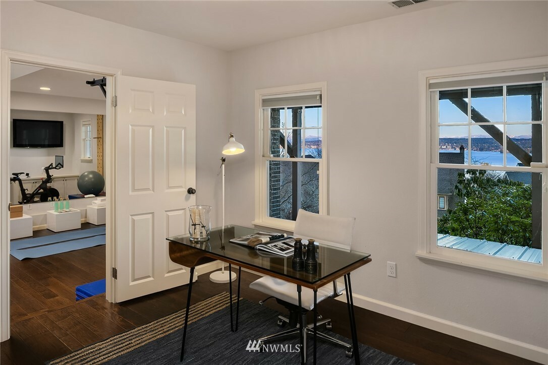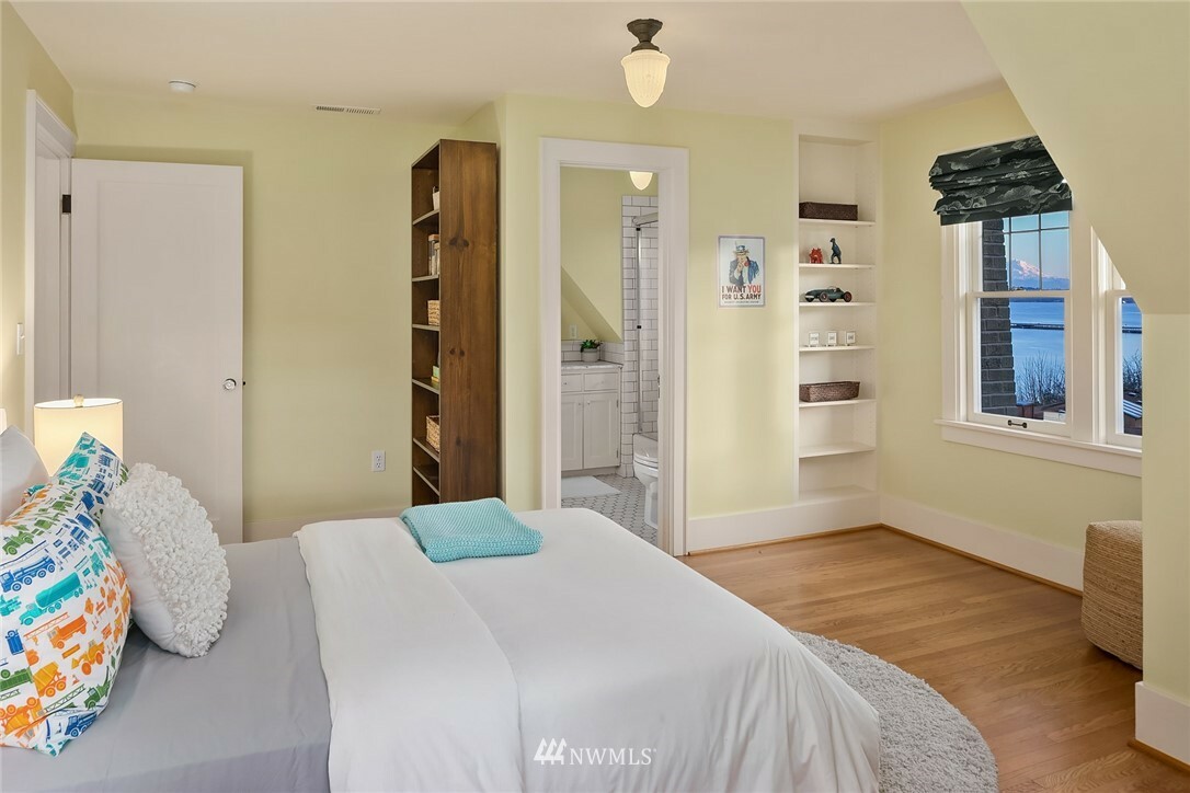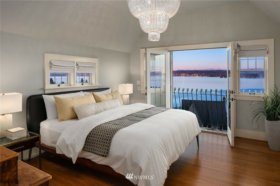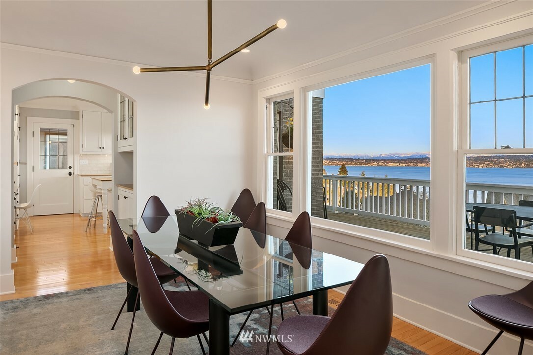 Show-stopping panoramic views of Lake Washington, the Cascades and Mt. Rainier envelop you the moment you step into this majestic home. Wonderfully updated for today's lifestyle while maintaining period details such as coved ceilings, leaded windows and built-ins. The spacious, modern kitchen with granite counters and high-end appliances is the command center of the home. Formal LR and DR lead out to the generous entertainment-sized deck -- the perfect place to enjoy glorious sunrises and peaceful purple sunsets. Primary suite with walk-in closets, vaulted ceiling, Juliet balcony and bathtub with quite a view! Lower level media room, add'l bedroom, office and well-appointed exercise room. Beach Club eligible & VRSTC membership available.