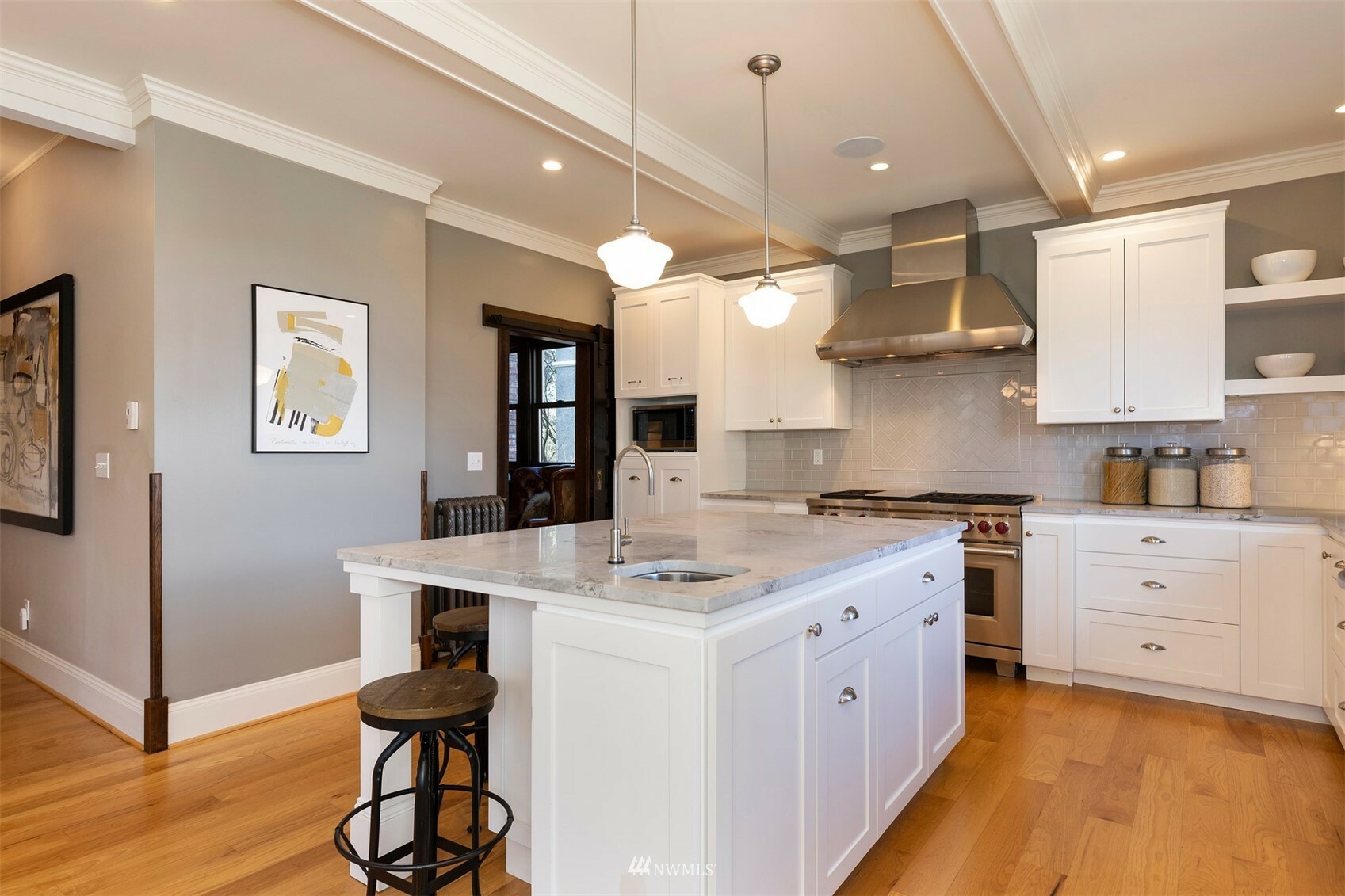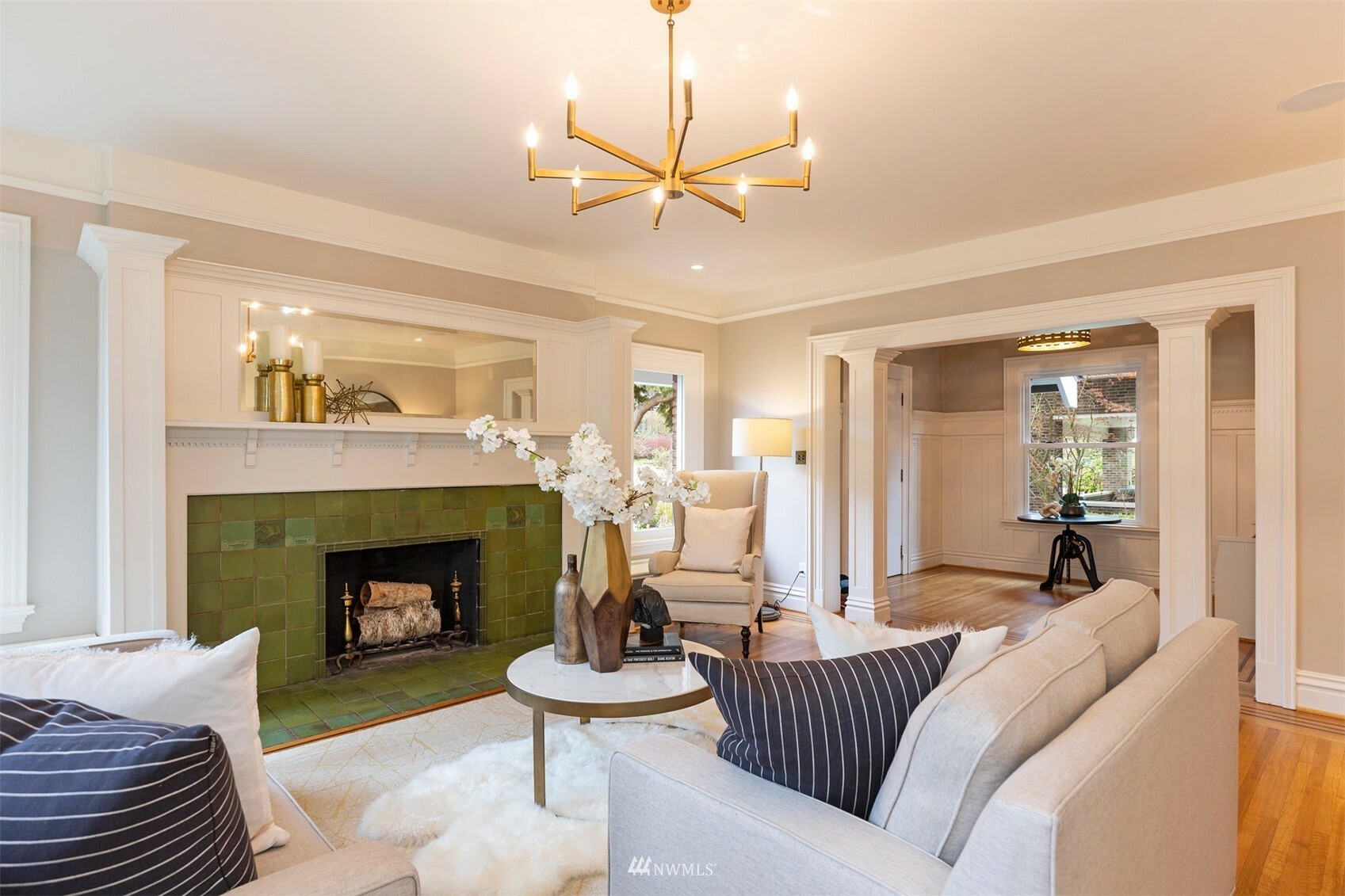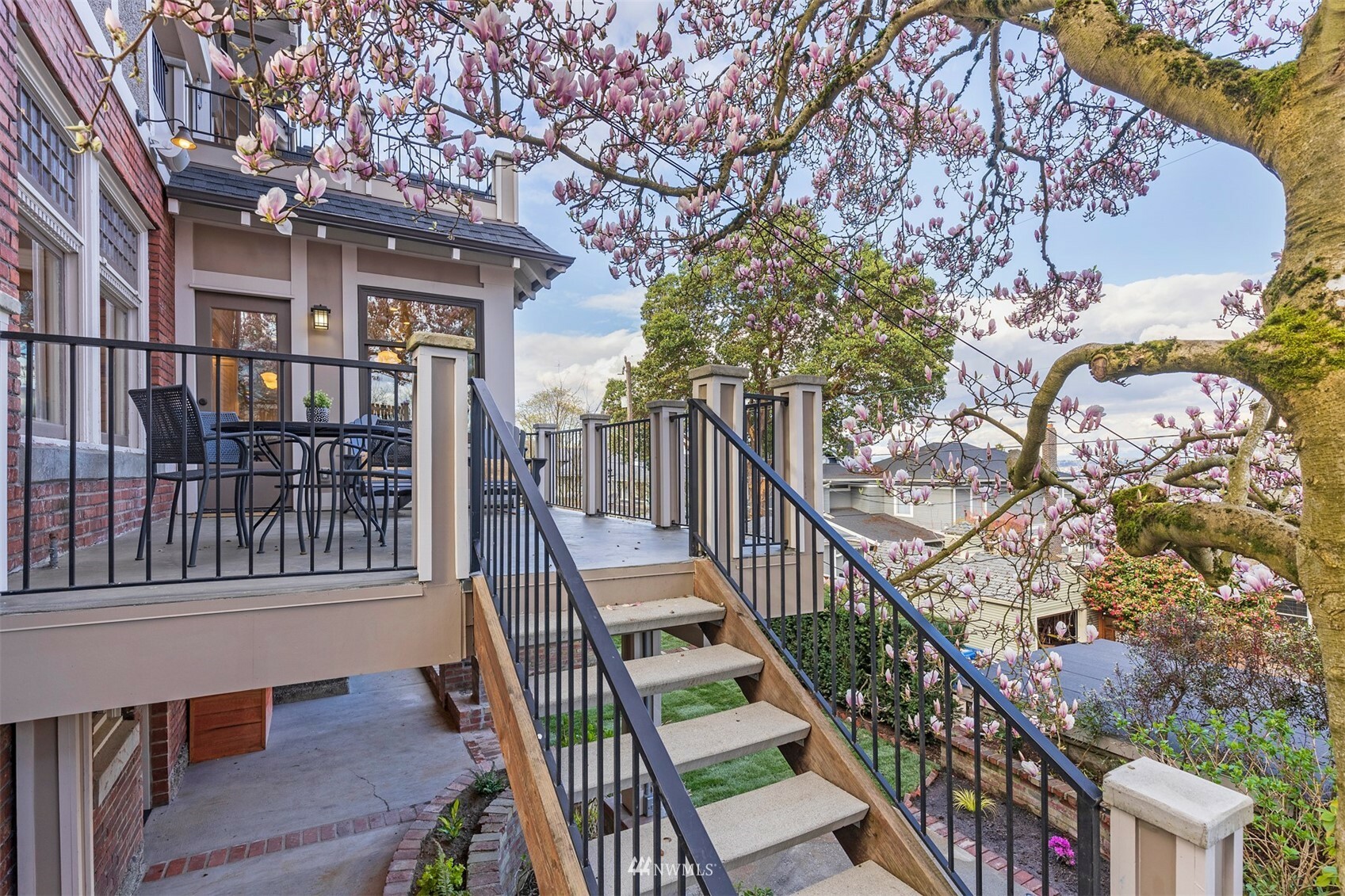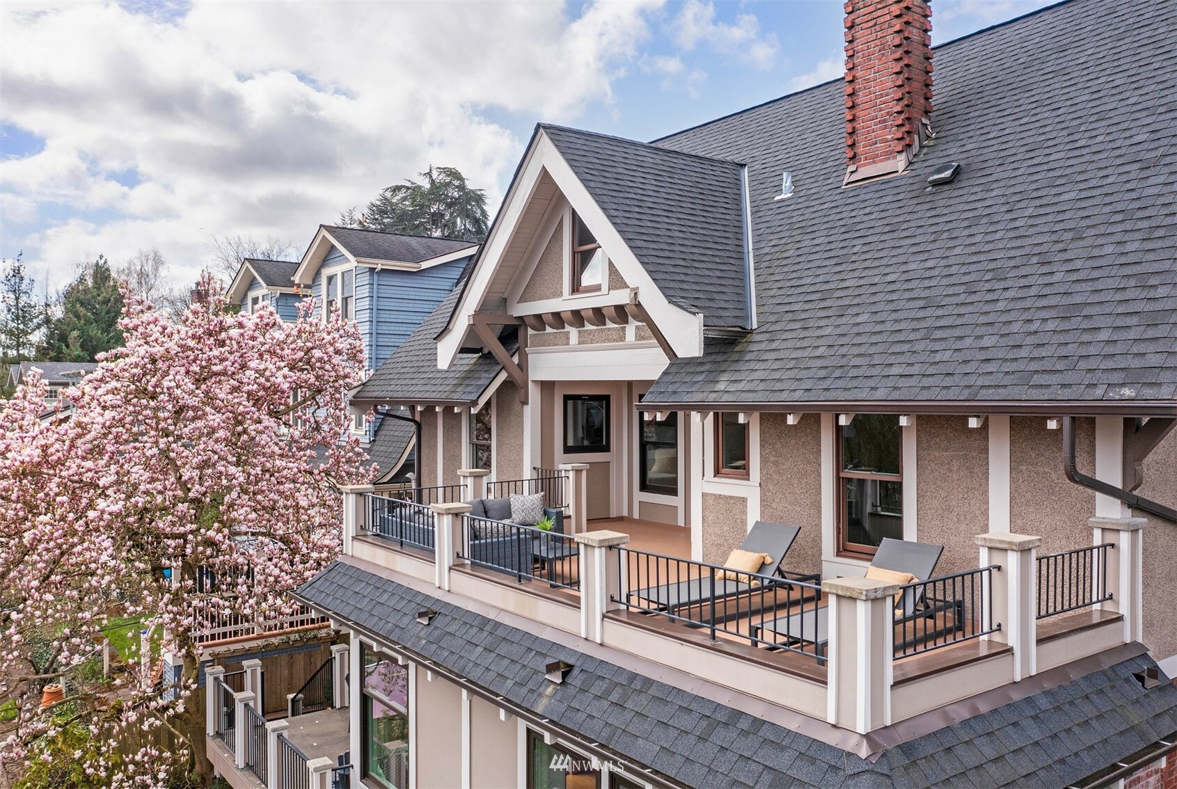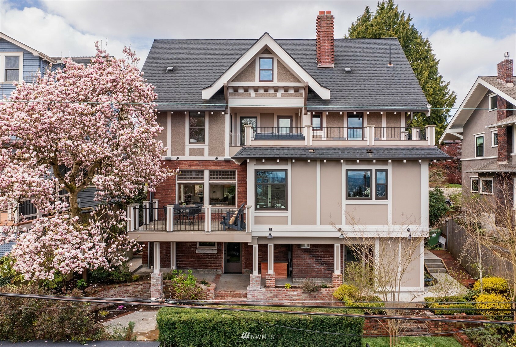 Impressive, sublime grandeur abounds in this stately,4-story Cascade Mountain & Lake Washington view home on the most coveted street in the neighborhood. With a nod to yesteryear, all turn-of the-20th-Century details shine on, while a welcome hello to the 21st Century is present in recent upgrades to all systems. In-laid mahogany ribbon floors grace the main formal areas & connect to an enormous eat-in quartz kitchen, offering an entertainment friendly circular floor plan. The handsome lower level, with high ceilings, its own entry & patio, bedroom suite, kitchenette, 2nd laundry, shop & great room,offers space for fun or an ADU.Front porch, 2 decks, grassy yard,mature gardens, and a 1 car garage on alley complete this majestic home.