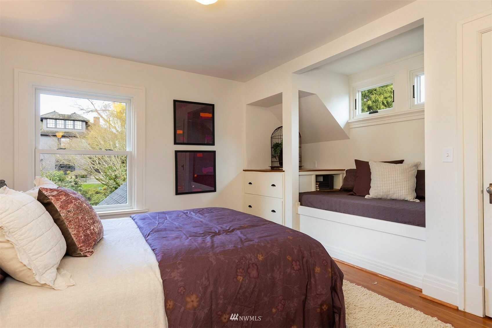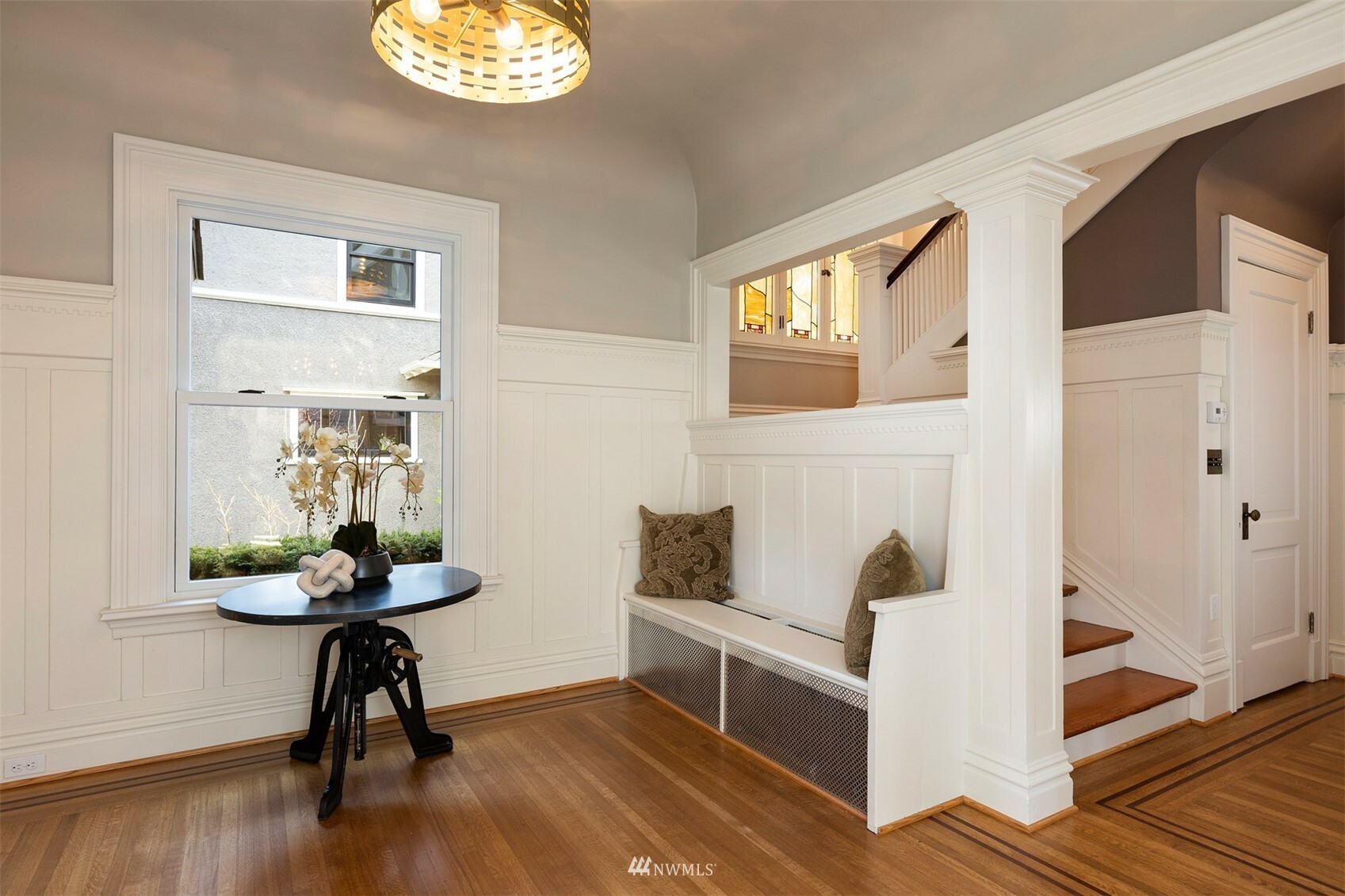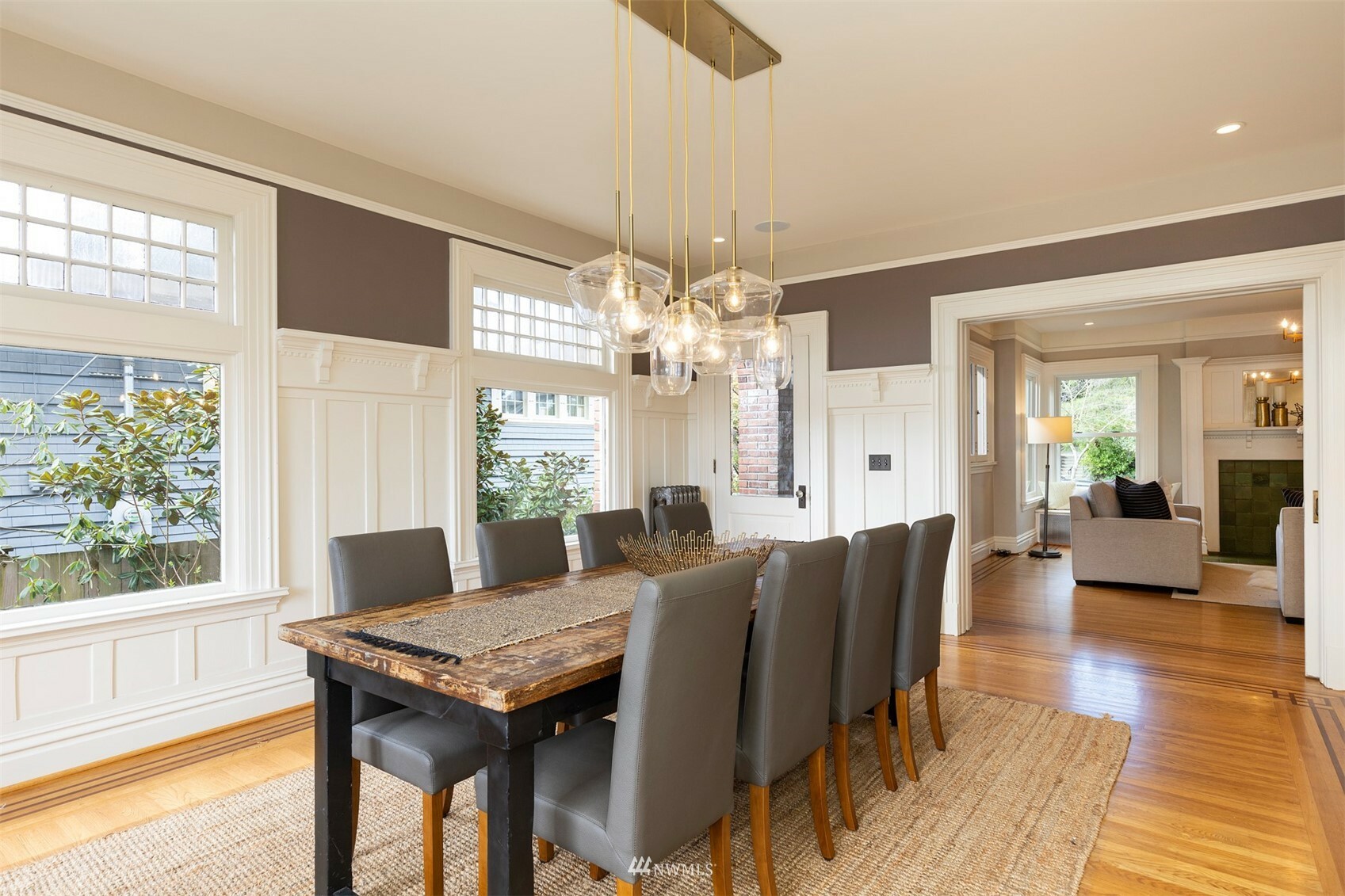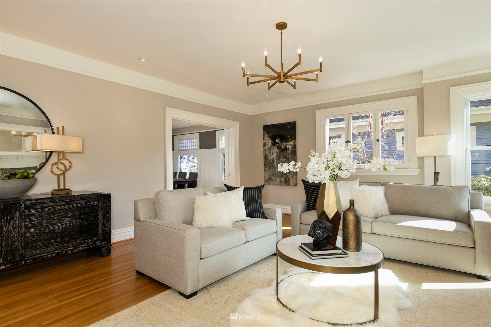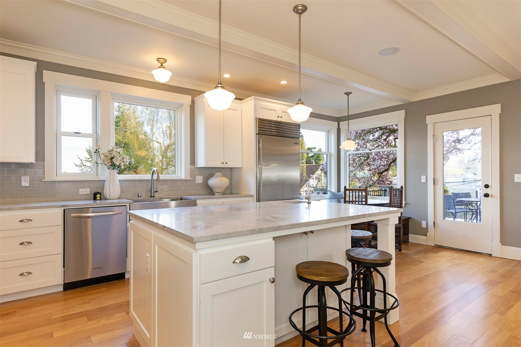 Impressive, sublime grandeur abounds in this stately,4-story Cascade Mountain & Lake Washington view home on the most coveted street in the neighborhood. With a nod to yesteryear, all turn-of the-20th-Century details shine on, while a welcome hello to the 21st Century is present in recent upgrades to all systems. In-laid mahogany ribbon floors grace the main formal areas & connect to an enormous eat-in quartz kitchen, offering an entertainment friendly circular floor plan. The handsome lower level, with high ceilings, its own entry & patio, bedroom suite, kitchenette, 2nd laundry, shop & great room,offers space for fun or an ADU.Front porch, 2 decks, grassy yard,mature gardens, and a 1 car garage on alley complete this majestic home.