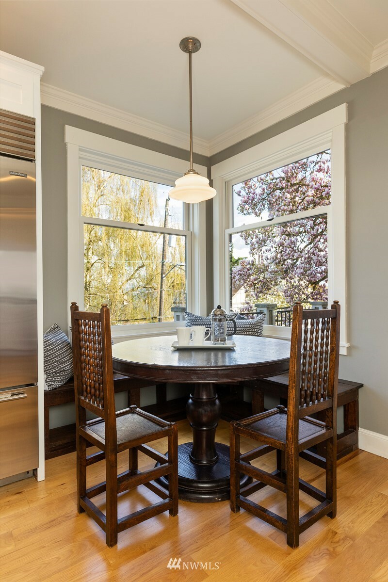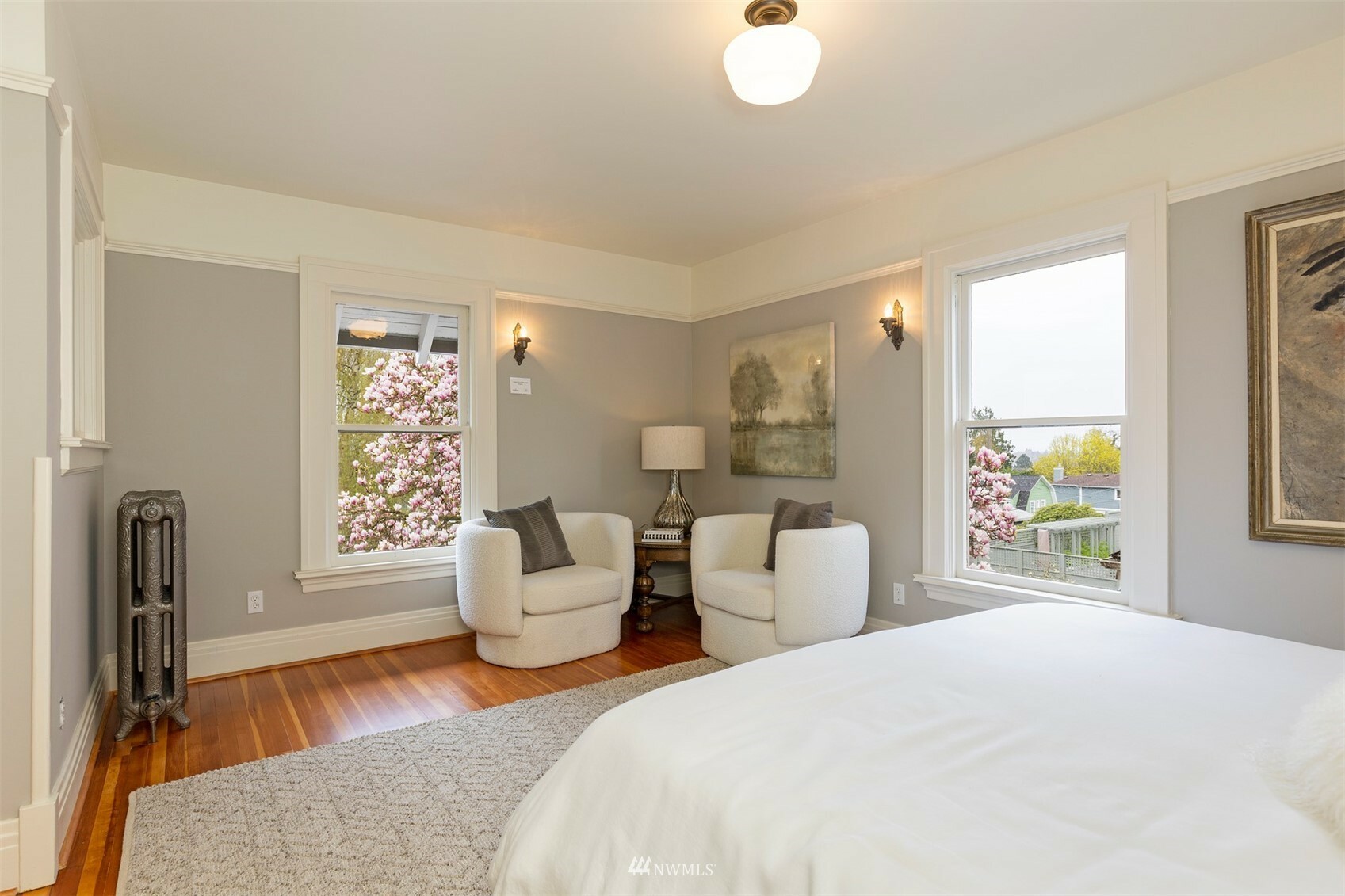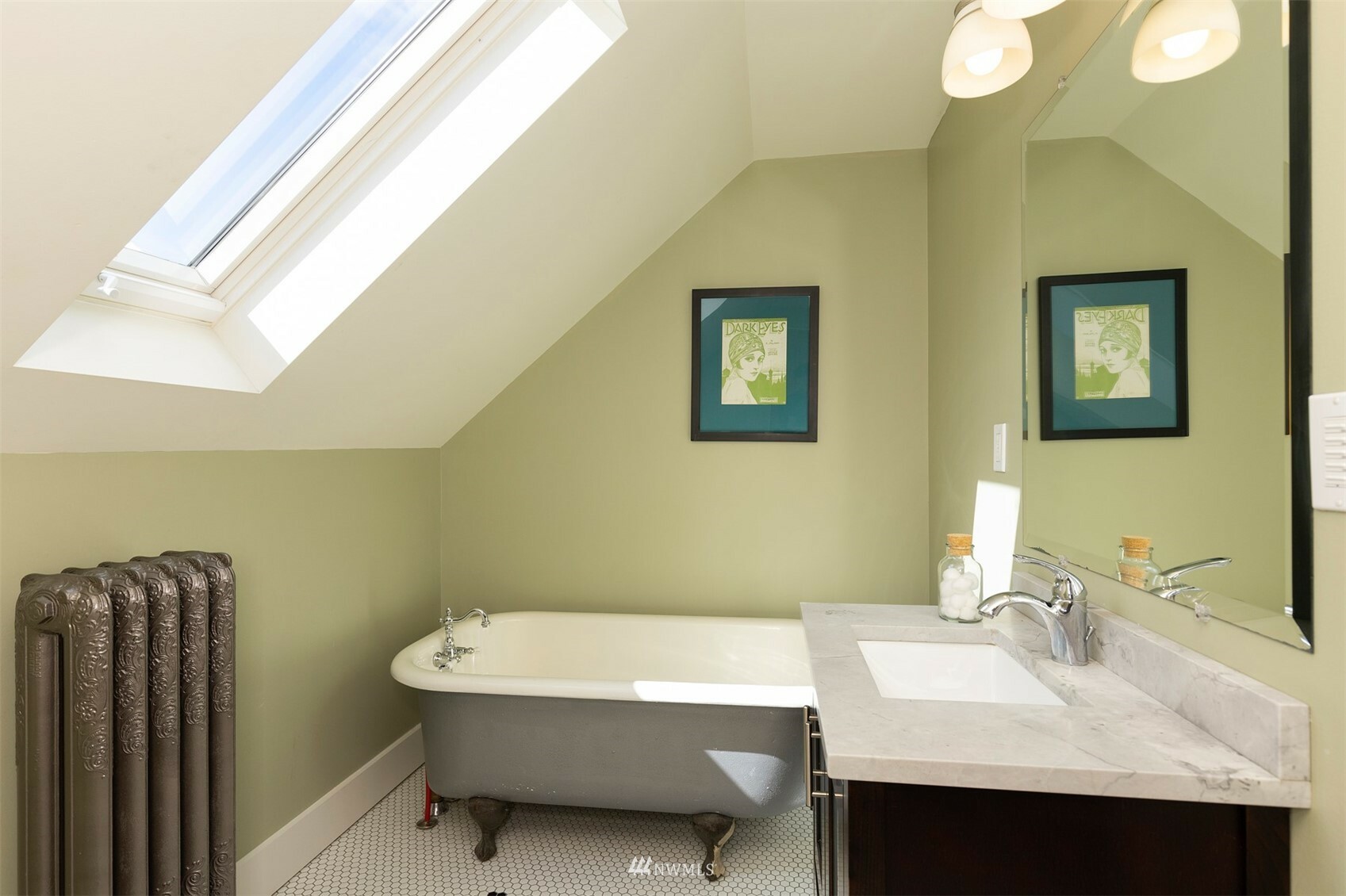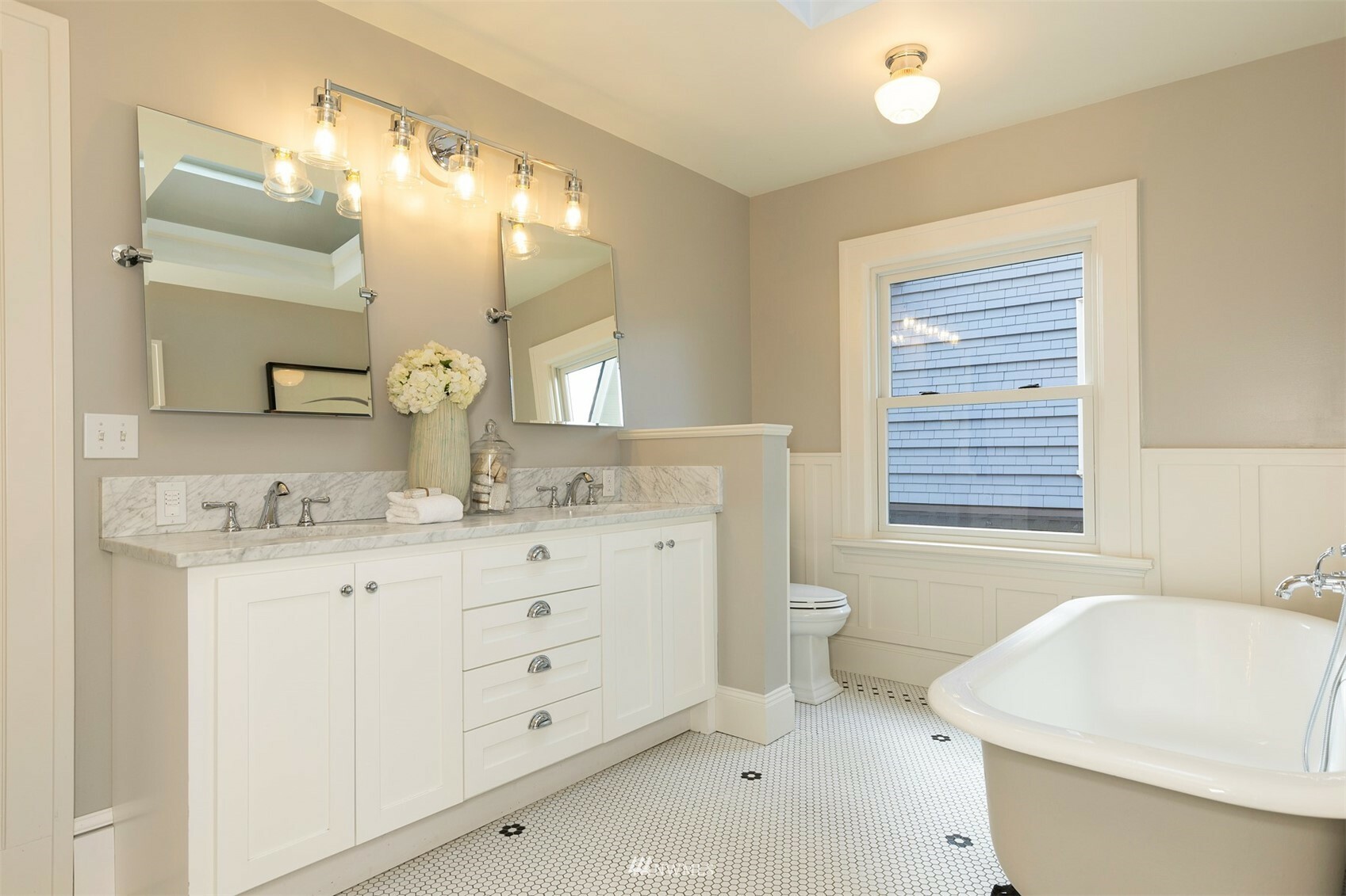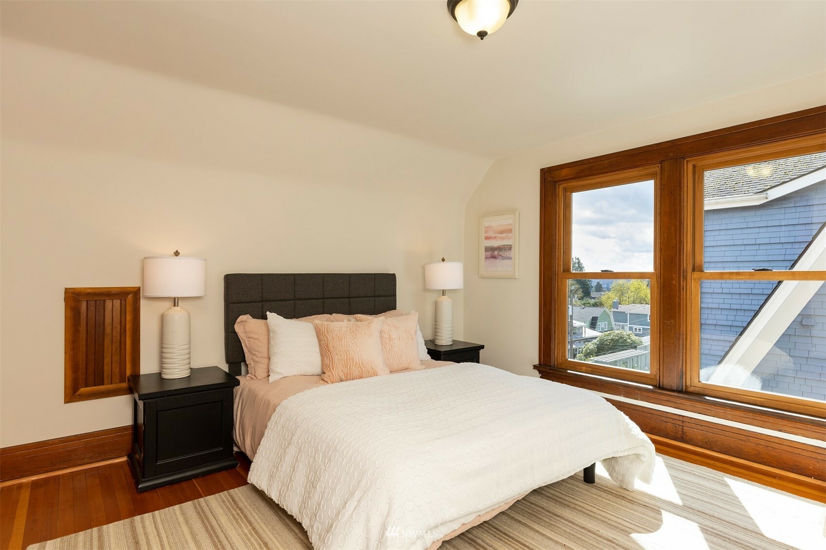 Impressive, sublime grandeur abounds in this stately,4-story Cascade Mountain & Lake Washington view home on the most coveted street in the neighborhood. With a nod to yesteryear, all turn-of the-20th-Century details shine on, while a welcome hello to the 21st Century is present in recent upgrades to all systems. In-laid mahogany ribbon floors grace the main formal areas & connect to an enormous eat-in quartz kitchen, offering an entertainment friendly circular floor plan. The handsome lower level, with high ceilings, its own entry & patio, bedroom suite, kitchenette, 2nd laundry, shop & great room,offers space for fun or an ADU.Front porch, 2 decks, grassy yard,mature gardens, and a 1 car garage on alley complete this majestic home.
