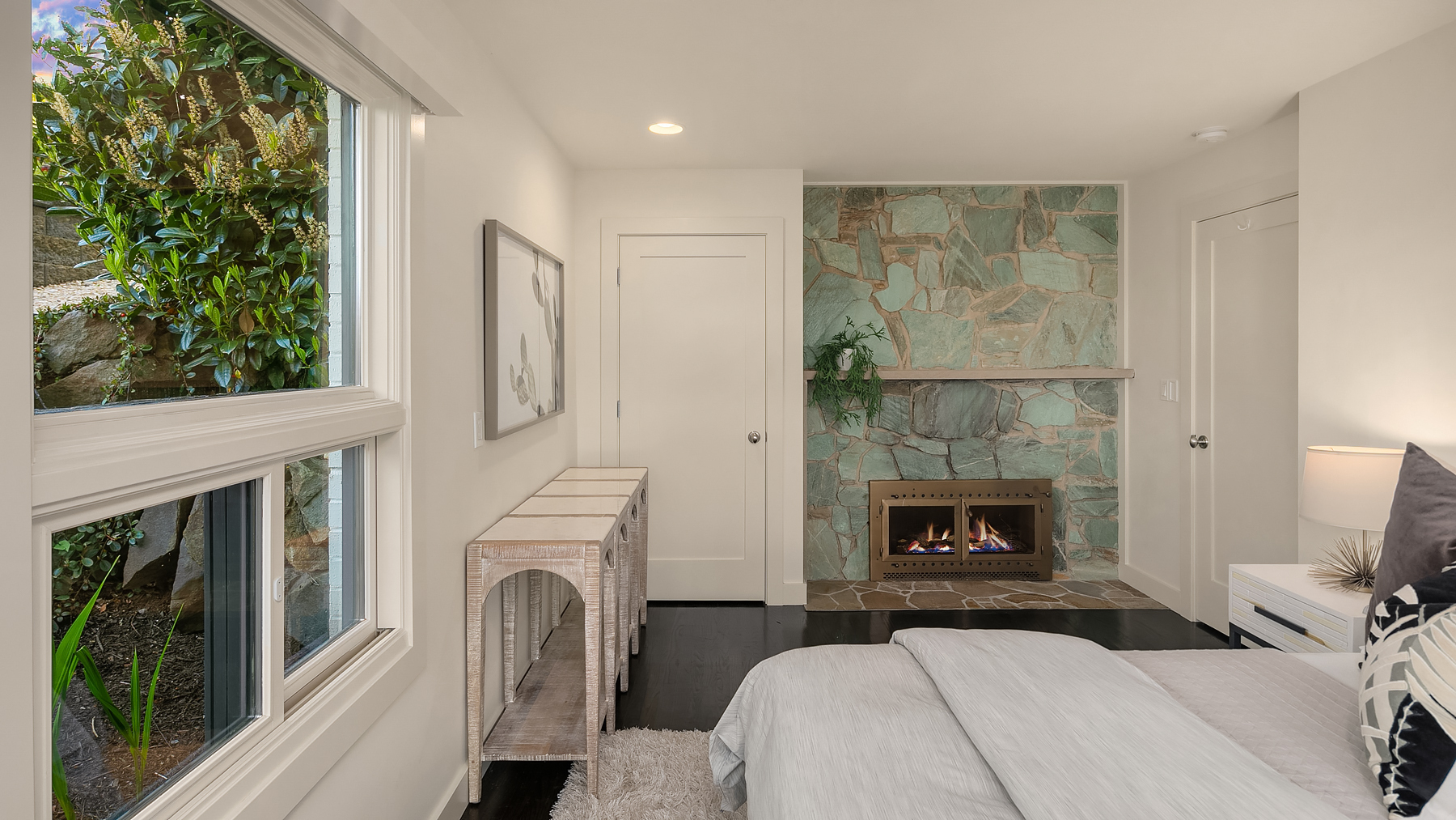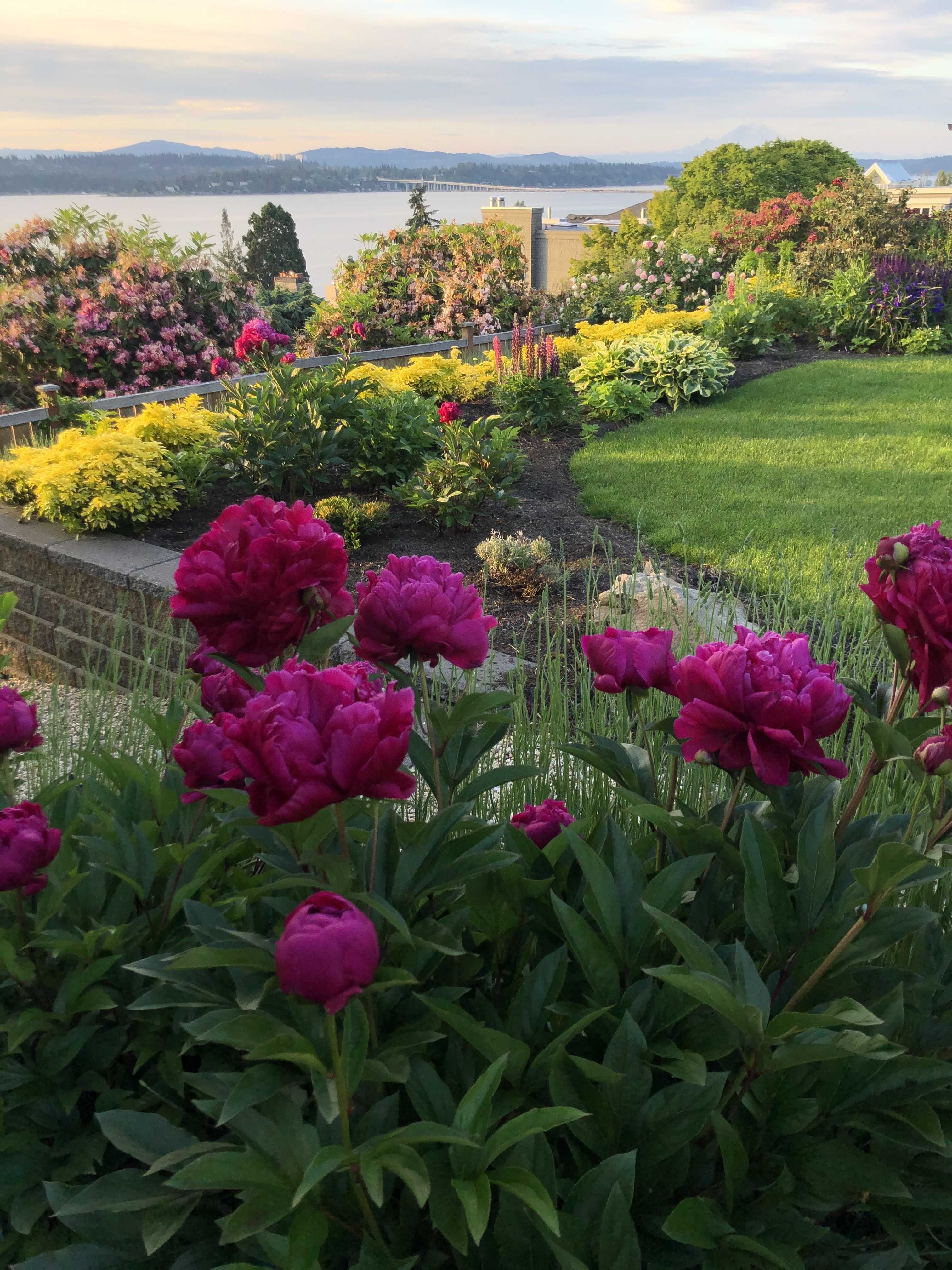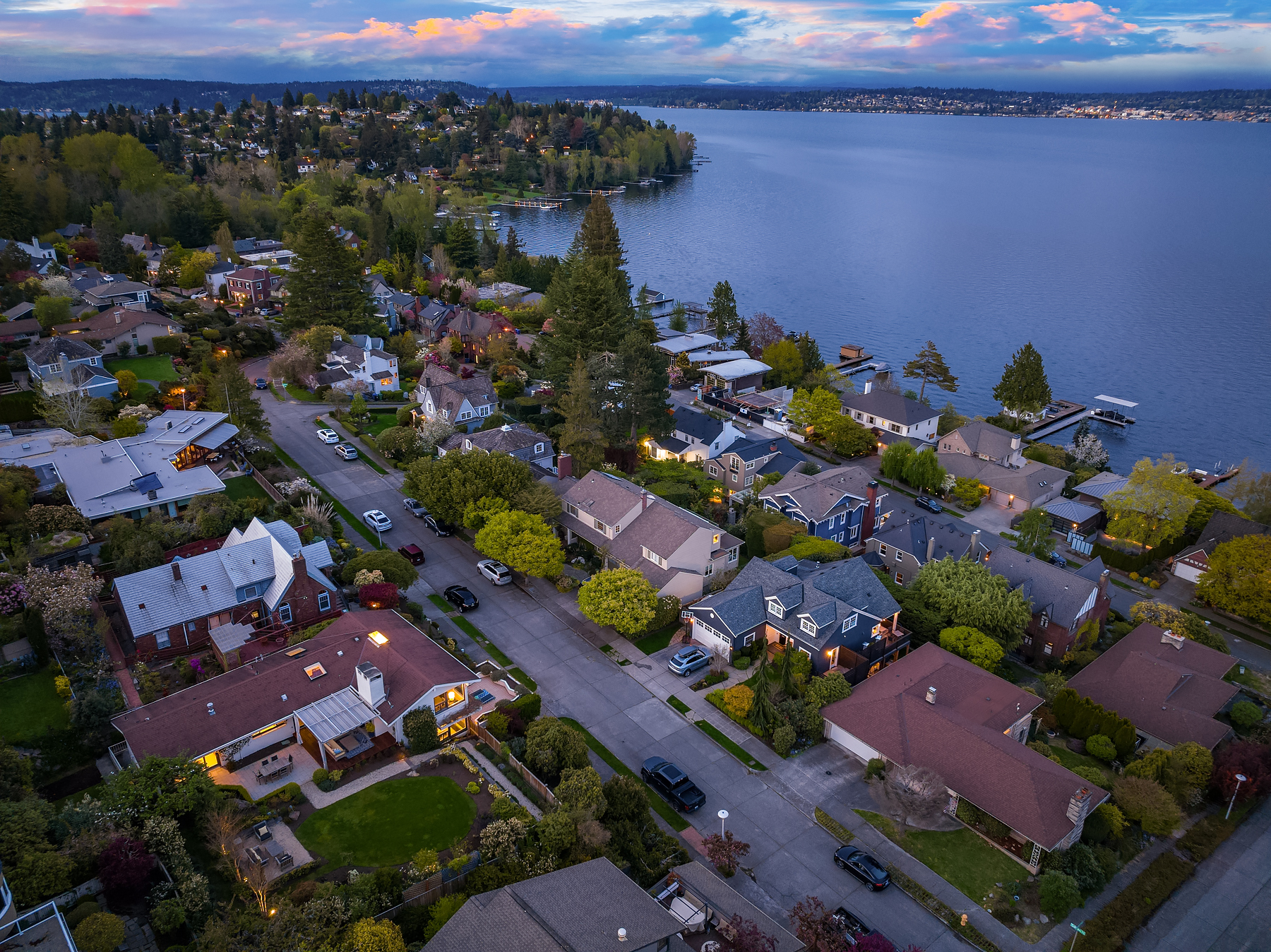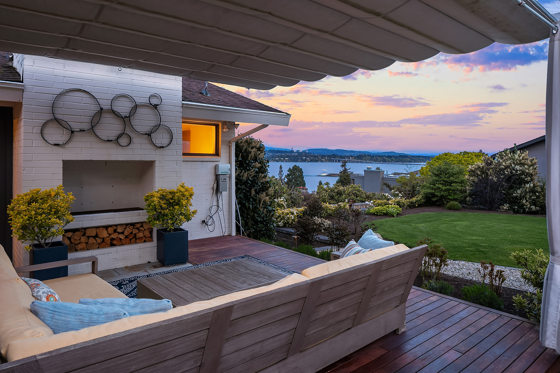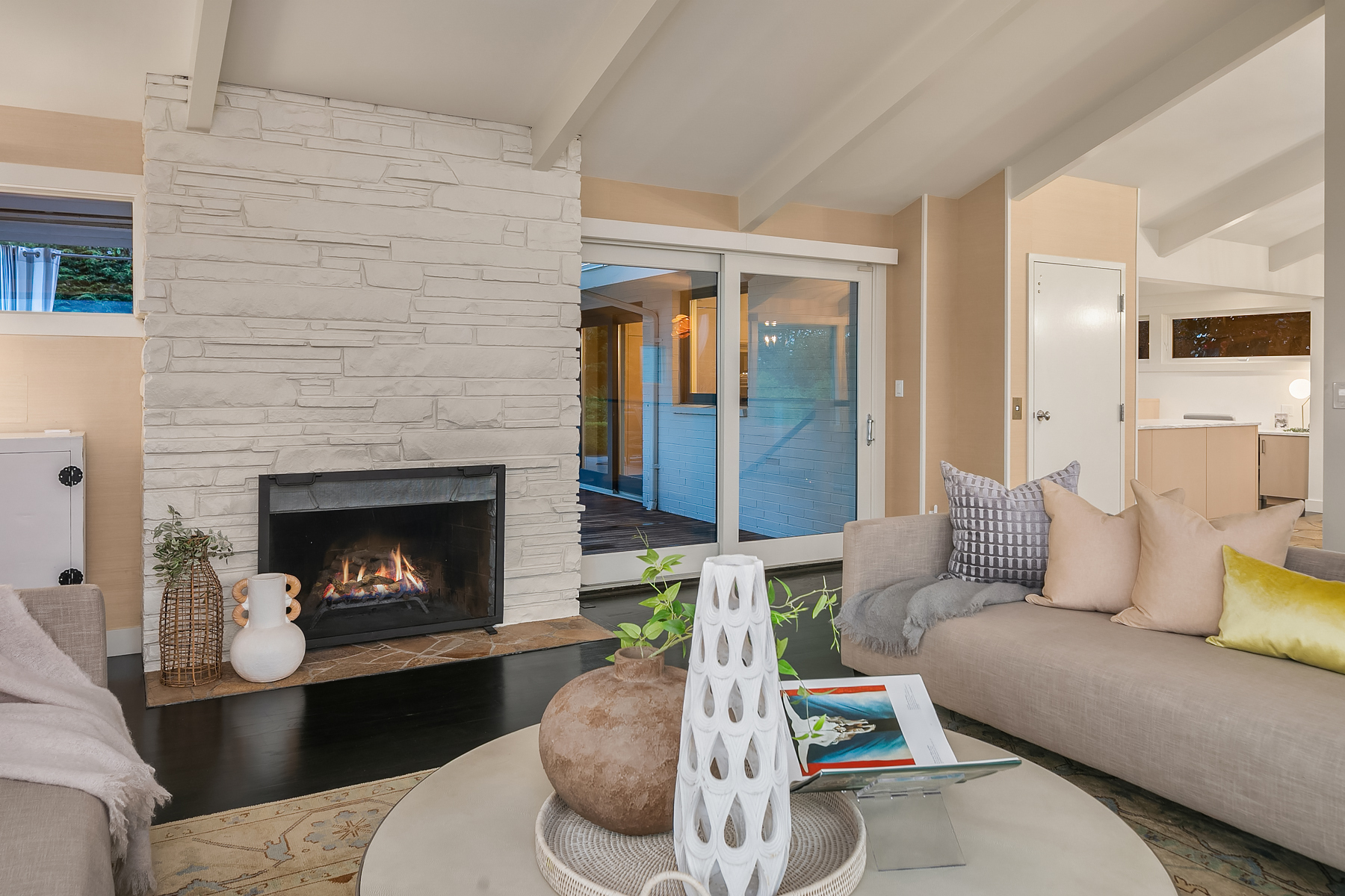 Rare opportunity to own treasured mid-century modern home in Laurelhurst, sited on 9362 sq ft lot with spectacular views of Mount Rainier, Lake Washington and Cascades. Sophisticated remodel features one level living, elevator, vaulted ceiling w/exposed beams, limestone flooring, Ann Sacks tile, stained alder cabinetry and Calacatta marble counter-tops. Owner’s suite offers fireplace, bookshelves, bathroom w/ soaking tub, walk-in closet, laundry, and garden. Enjoy endless entertaining from covered patio w/fireplace, large level lawn; all w/lake views! Professionally designed garden blooms in succession, featuring peonies, curated dahlia collection and lavender. Two additional bedrooms, office, garage, beach club membership and much more!