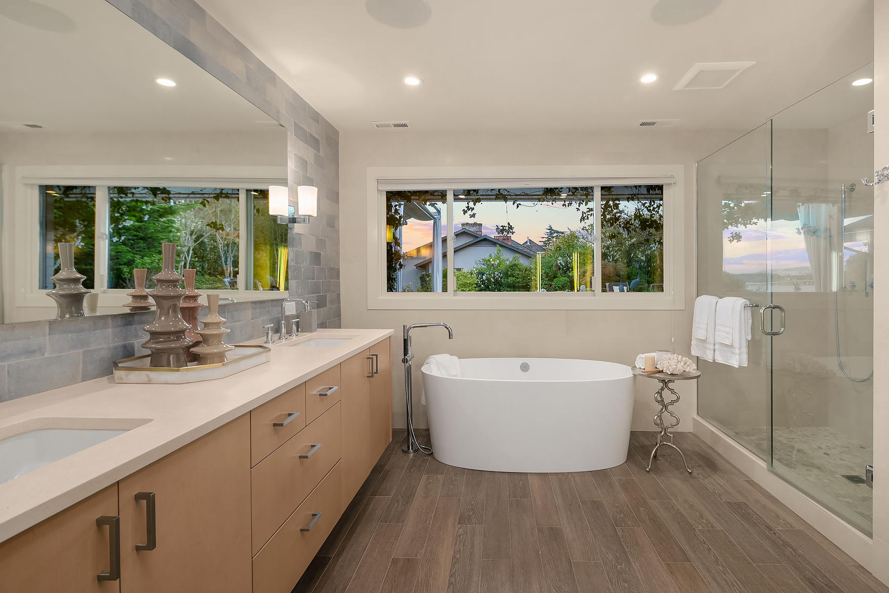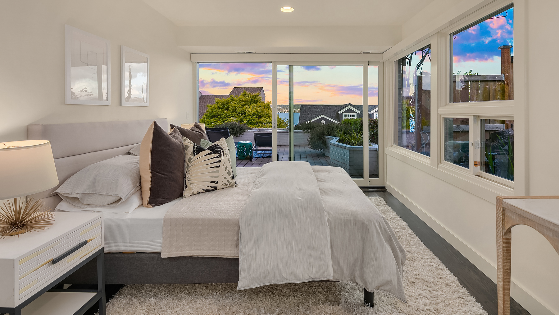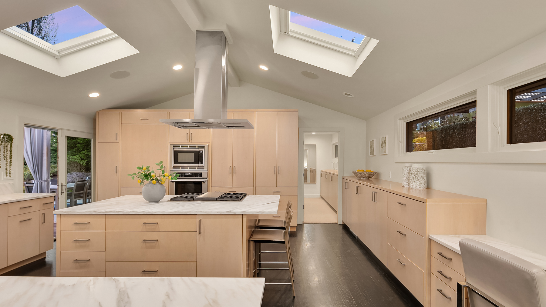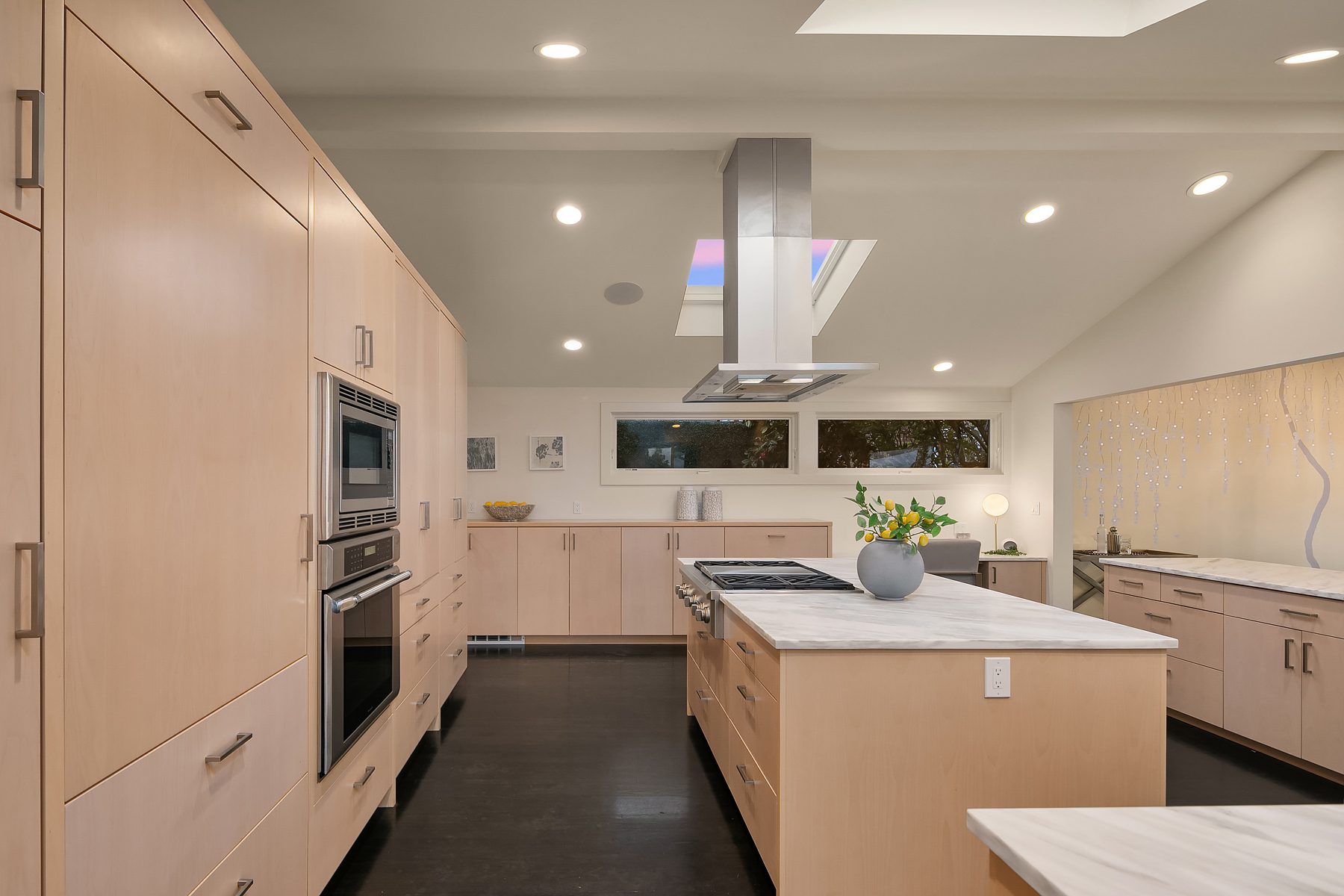 Rare opportunity to own treasured mid-century modern home in Laurelhurst, sited on 9362 sq ft lot with spectacular views of Mount Rainier, Lake Washington and Cascades. Sophisticated remodel features one level living, elevator, vaulted ceiling w/exposed beams, limestone flooring, Ann Sacks tile, stained alder cabinetry and Calacatta marble counter-tops. Owner’s suite offers fireplace, bookshelves, bathroom w/ soaking tub, walk-in closet, laundry, and garden. Enjoy endless entertaining from covered patio w/fireplace, large level lawn; all w/lake views! Professionally designed garden blooms in succession, featuring peonies, curated dahlia collection and lavender. Two additional bedrooms, office, garage, beach club membership and much more!