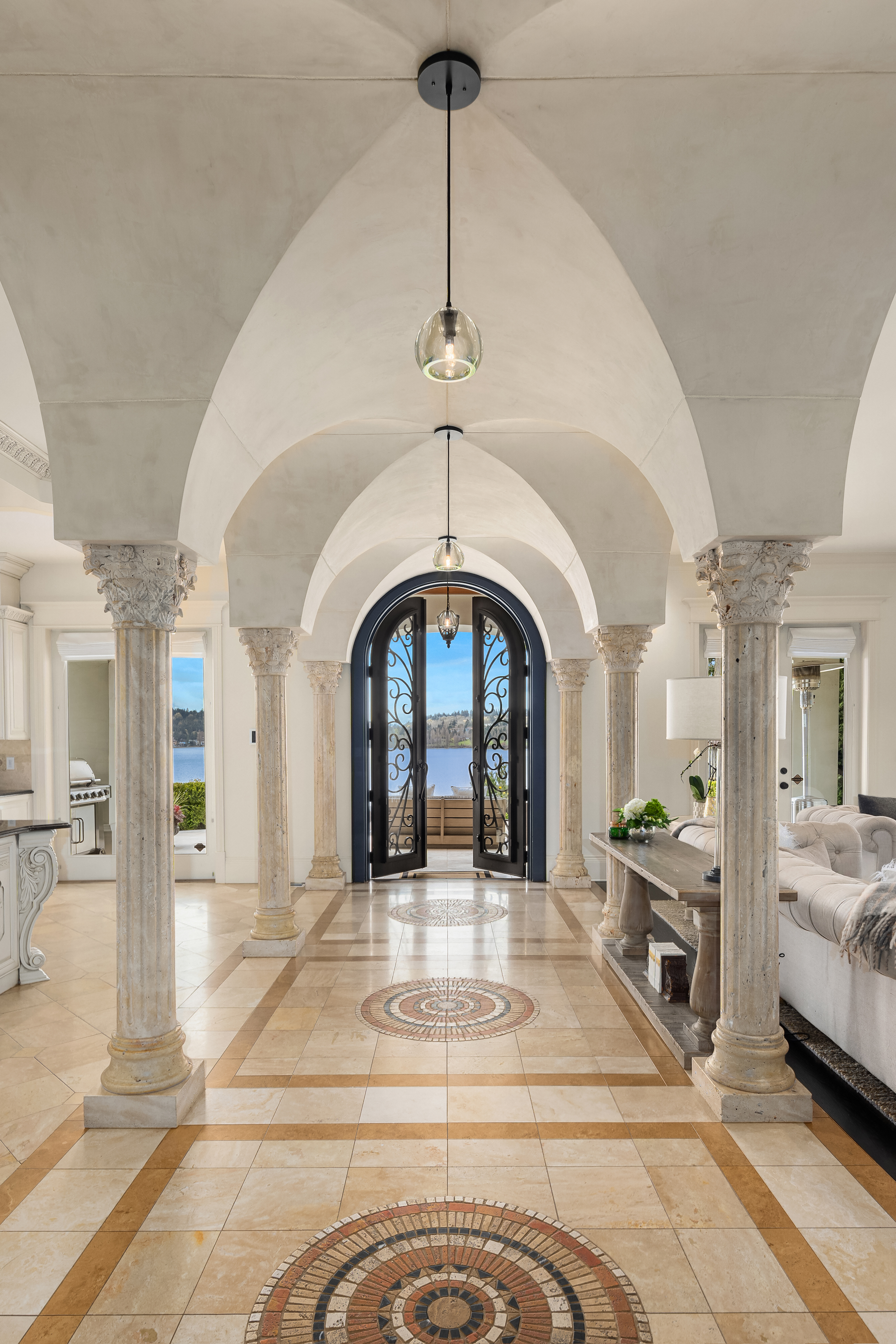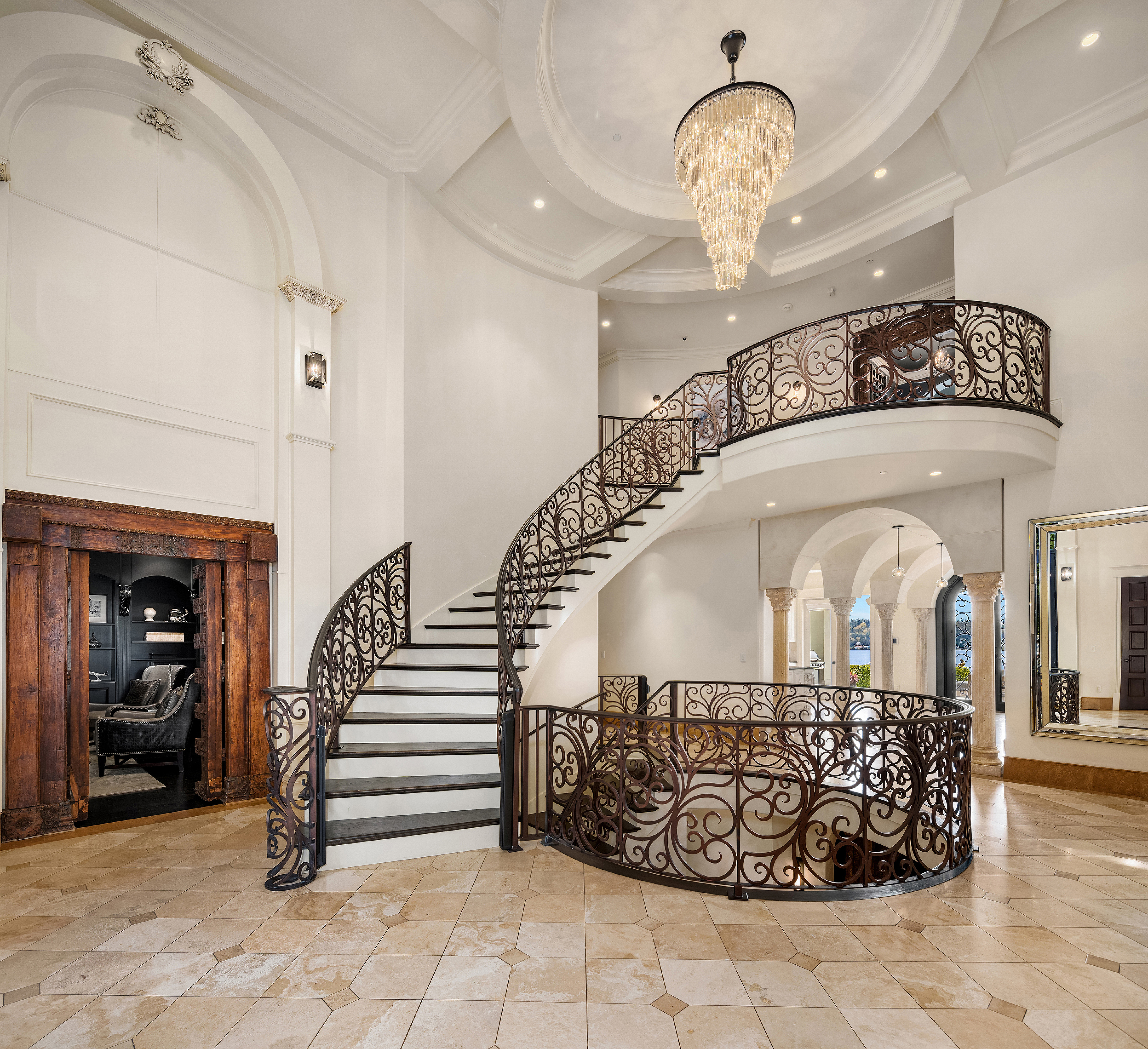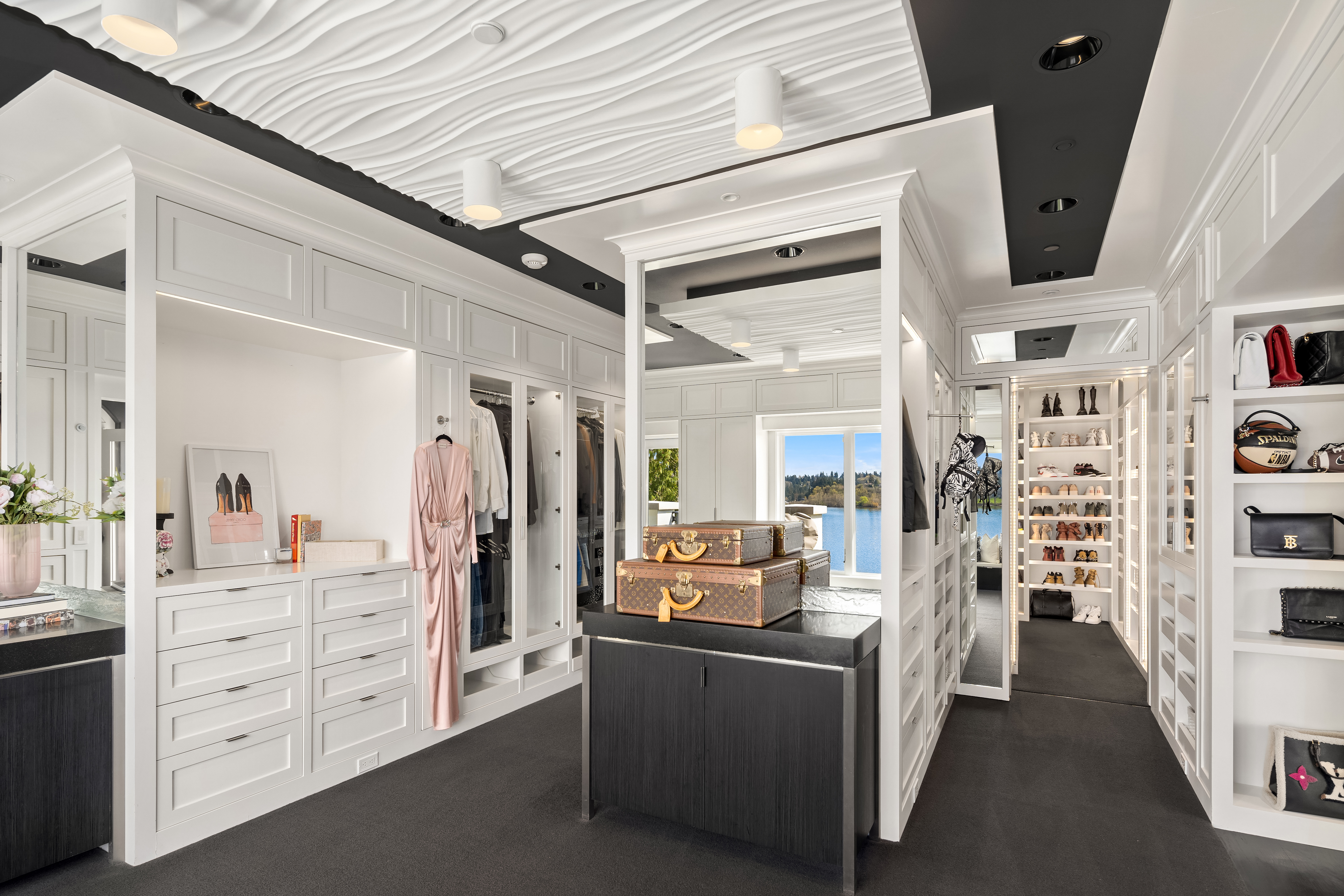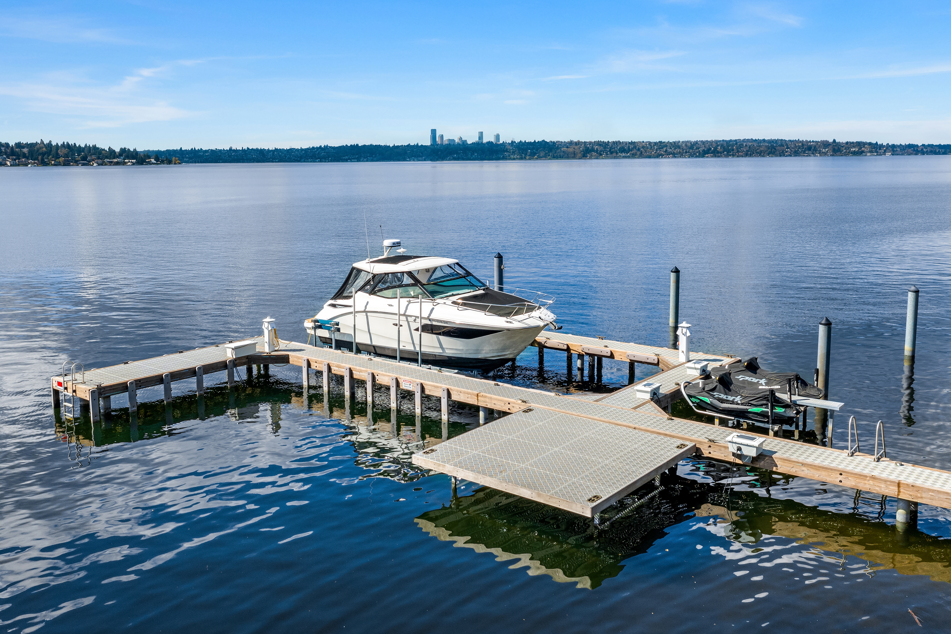 A signature waterfront estate offering elevated living, exquisite design and exceptional views. Bask in bluff-top privacy and beachside fun. Luxury, by the numbers: Main level has flawless 180° views; 20-ft tall entry rotunda; 2 dining spaces; epicurean kitchen with 8-burner stove + 14-ft prep island; pro gym off the 3-bay garage. Upper level has 4 en-suite bedrooms, 2 balconies, 200+ square feet of closet space, 1 Hollywood-worthy glam room. Lower level has 1 bedroom, 1 cinema, 1 dance/yoga studio, a 3-story elevator and 3 large play spaces. The exterior has 3 patios, 12 parking spots, a 2-story treehouse, 3-slip dock, 2 jet ski lifts. Experience 164' of waterfront w/ extraordinary views. It all adds up to a champion’s life.