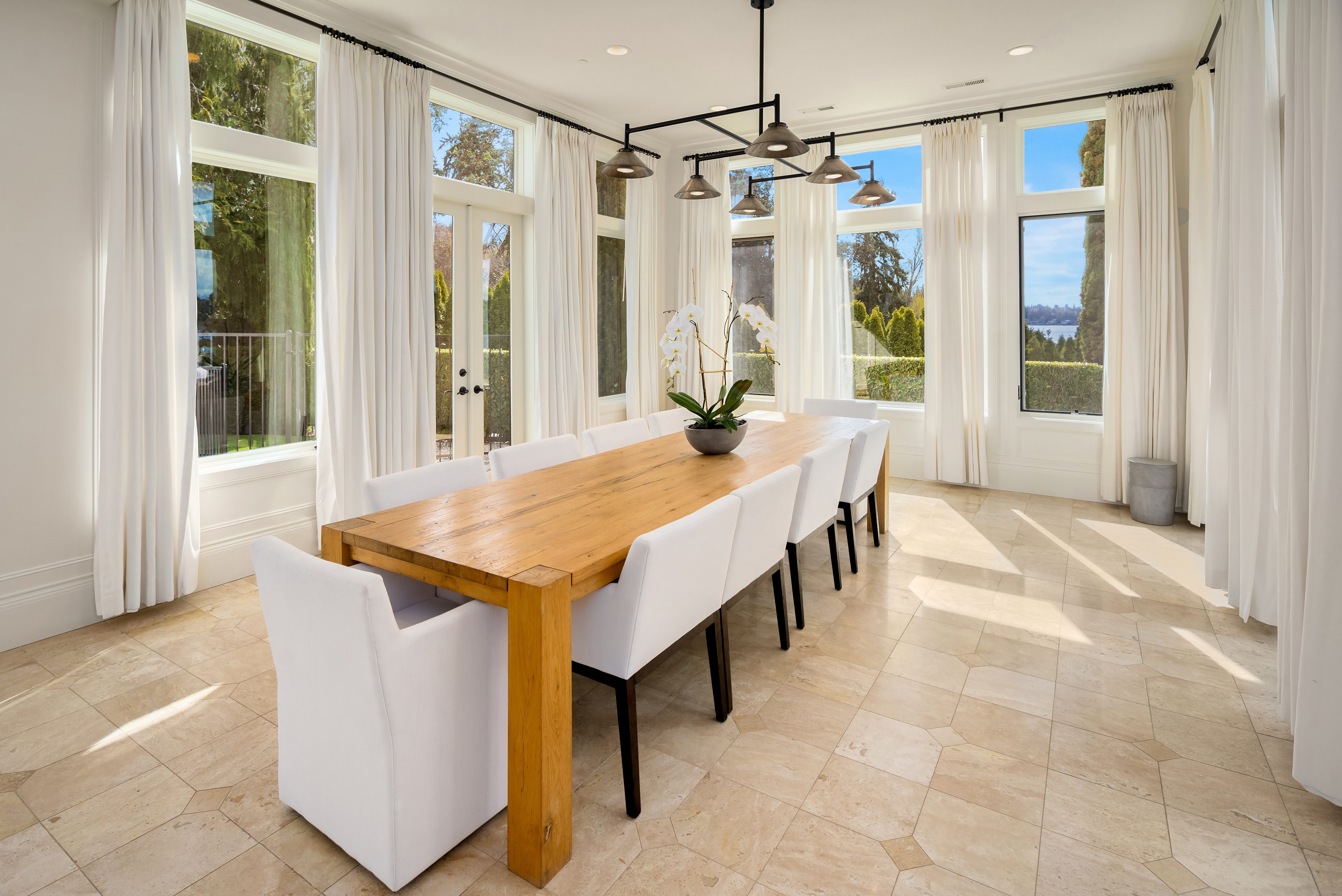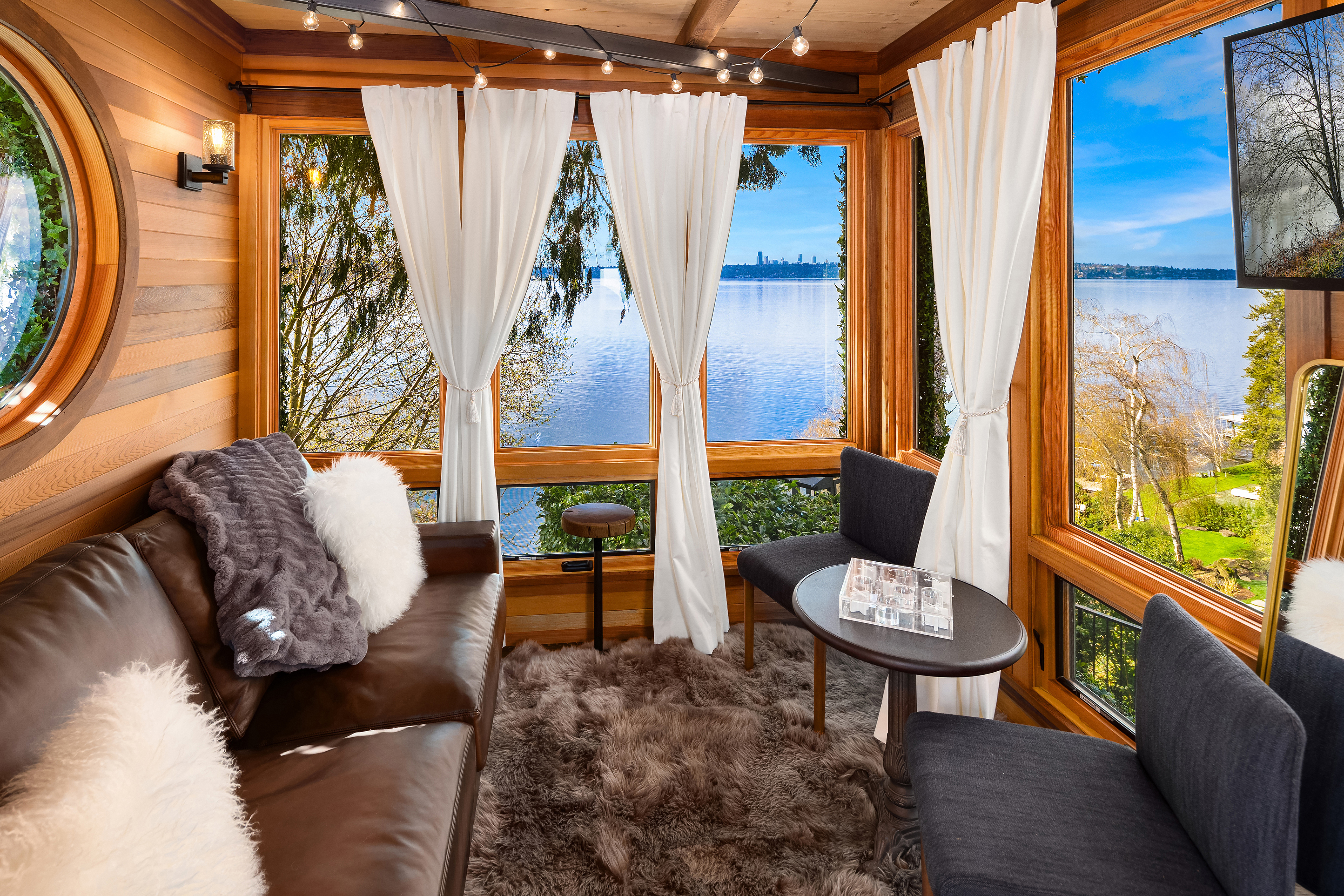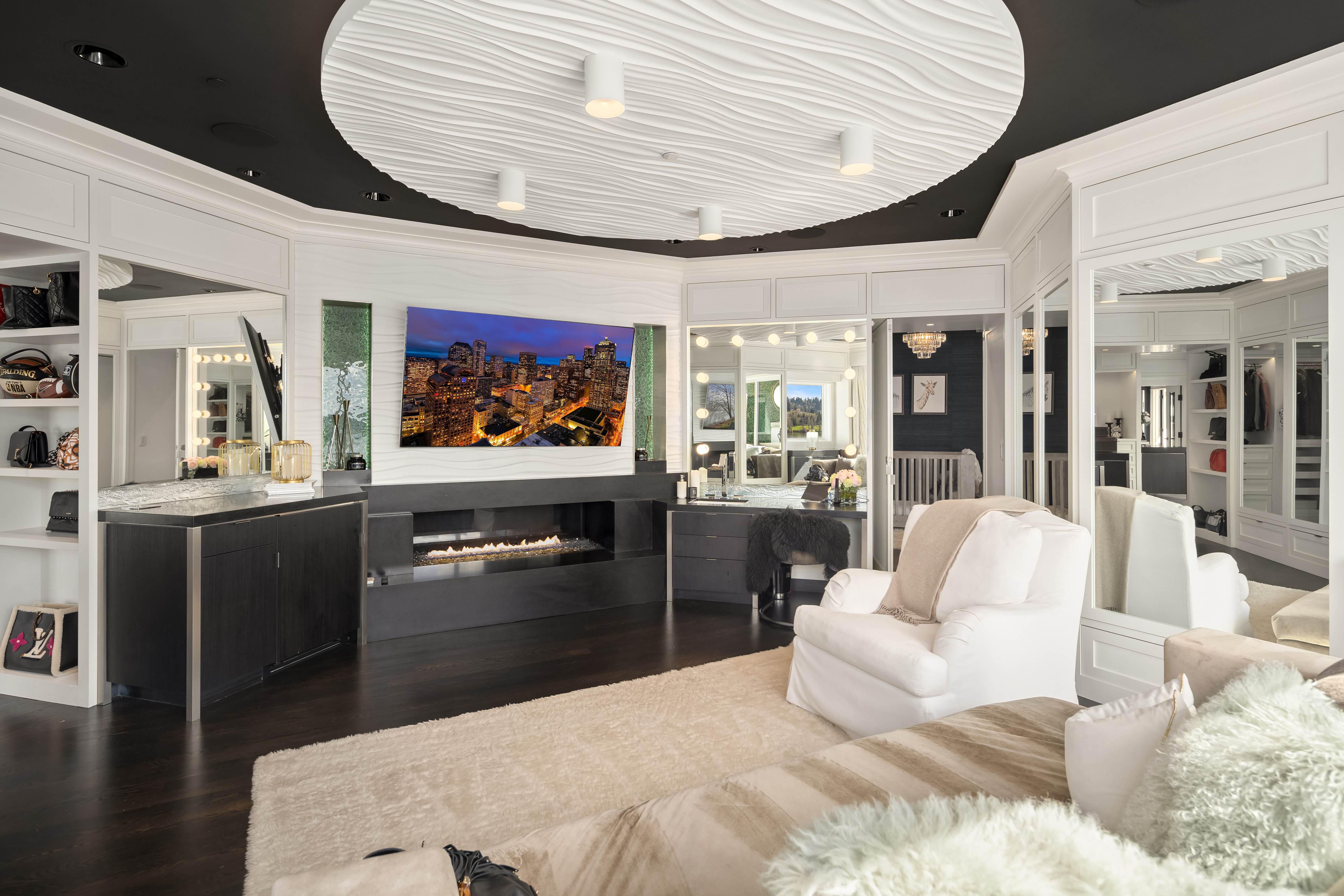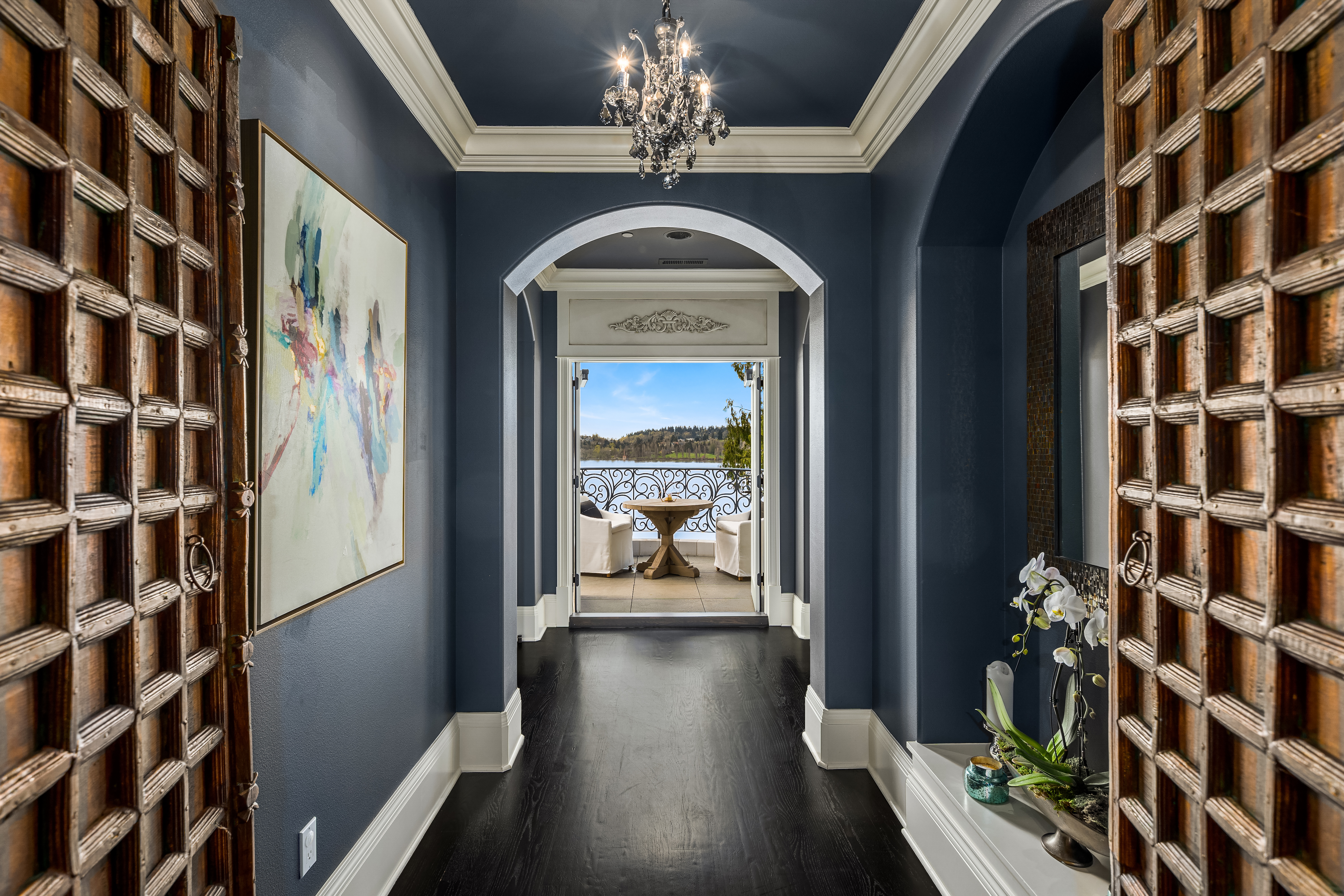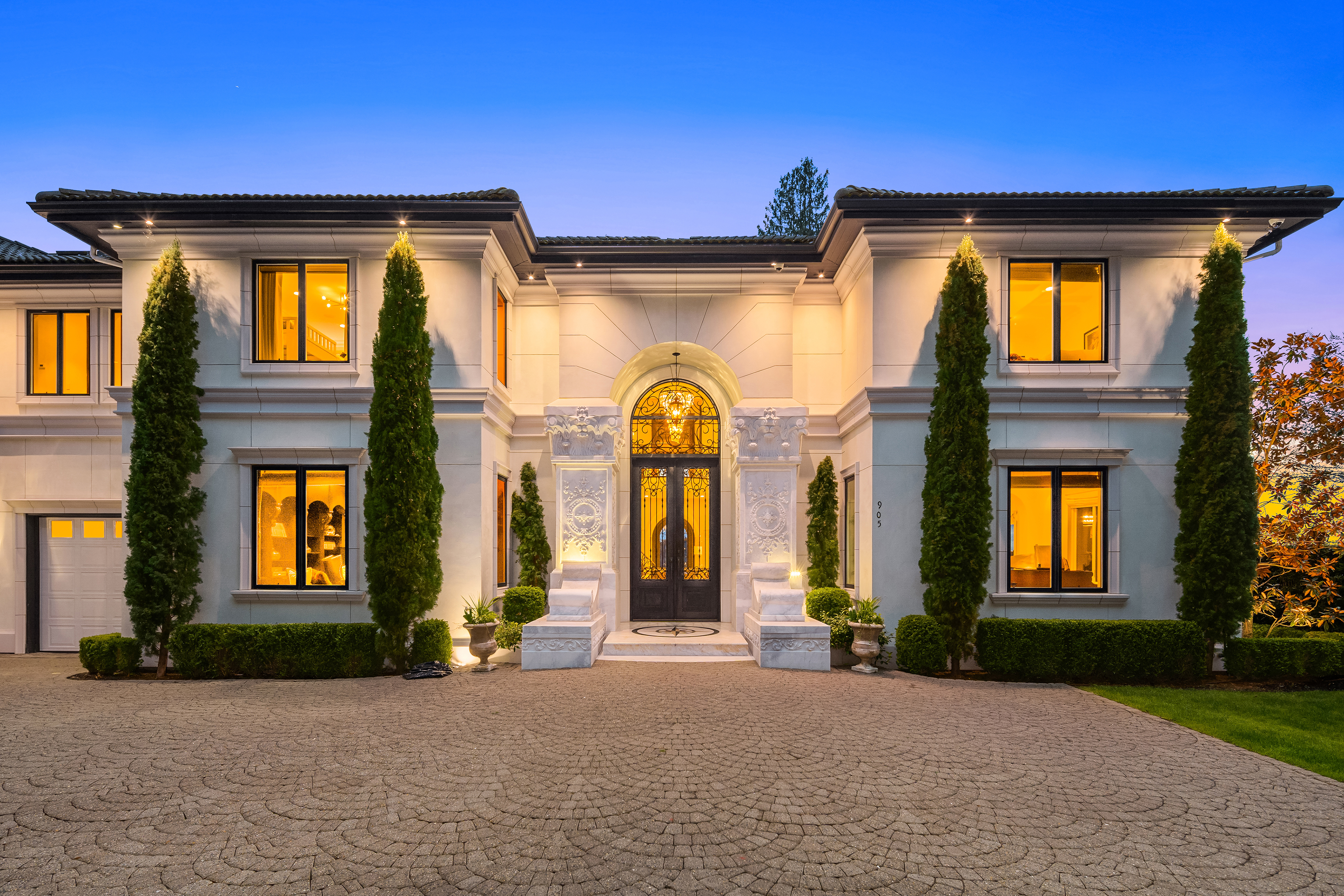 A signature waterfront estate offering elevated living, exquisite design and exceptional views. Bask in bluff-top privacy and beachside fun. Luxury, by the numbers: Main level has flawless 180° views; 20-ft tall entry rotunda; 2 dining spaces; epicurean kitchen with 8-burner stove + 14-ft prep island; pro gym off the 3-bay garage. Upper level has 4 en-suite bedrooms, 2 balconies, 200+ square feet of closet space, 1 Hollywood-worthy glam room. Lower level has 1 bedroom, 1 cinema, 1 dance/yoga studio, a 3-story elevator and 3 large play spaces. The exterior has 3 patios, 12 parking spots, a 2-story treehouse, 3-slip dock, 2 jet ski lifts. Experience 164' of waterfront w/ extraordinary views. It all adds up to a champion’s life.