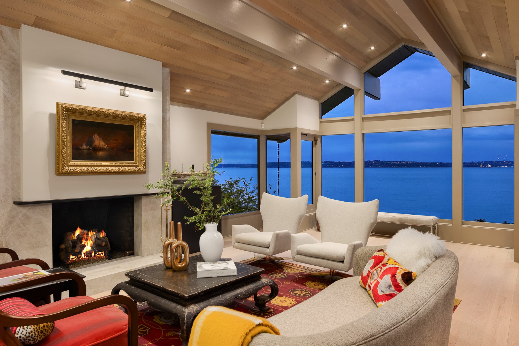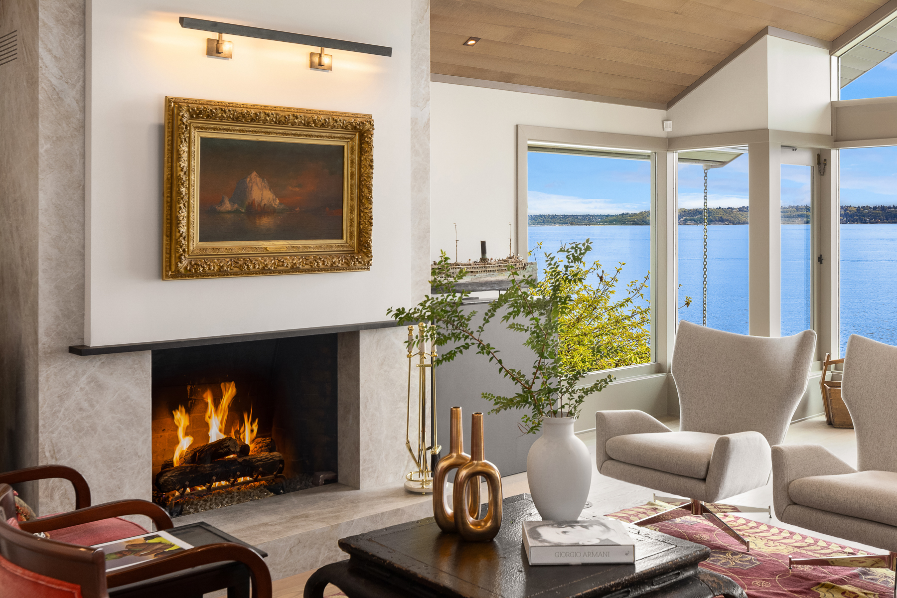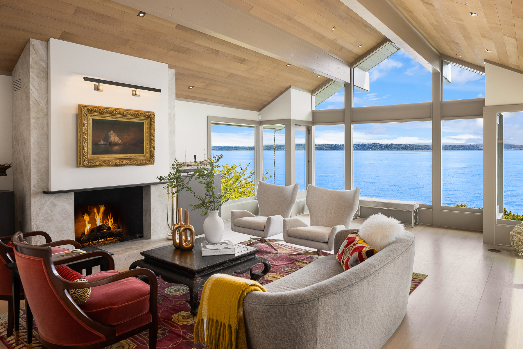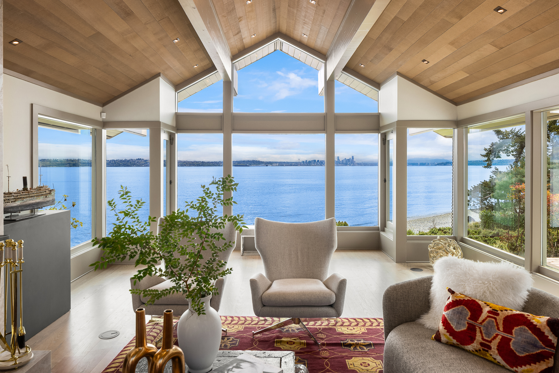 This beautifully designed home celebrates the genius of NW icon Ralph Anderson and his ability to create a perfect marriage between architecture and land. This elegantly appointed low-bank waterfront home captures sweeping views of the Seattle skyline from Mt. Baker to Mt. Rainier in the coveted Wing Point community. The open floor plan offers 3 levels of luxury living that boast water views from almost every room. Enjoy a wrap-around west-facing bluestone courtyard with mature private gardens, as well as the pristine beach for a morning stroll or kayak paddle. Fairbanks Construction has just completed a major remodel and a new garage is being built for electric vehicles. No detail has been missed. This truly is island living at its best!