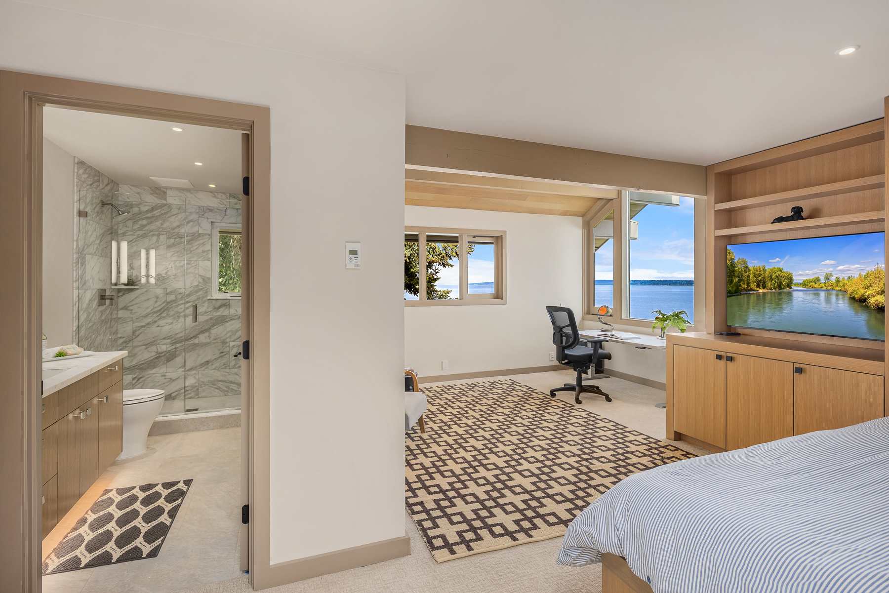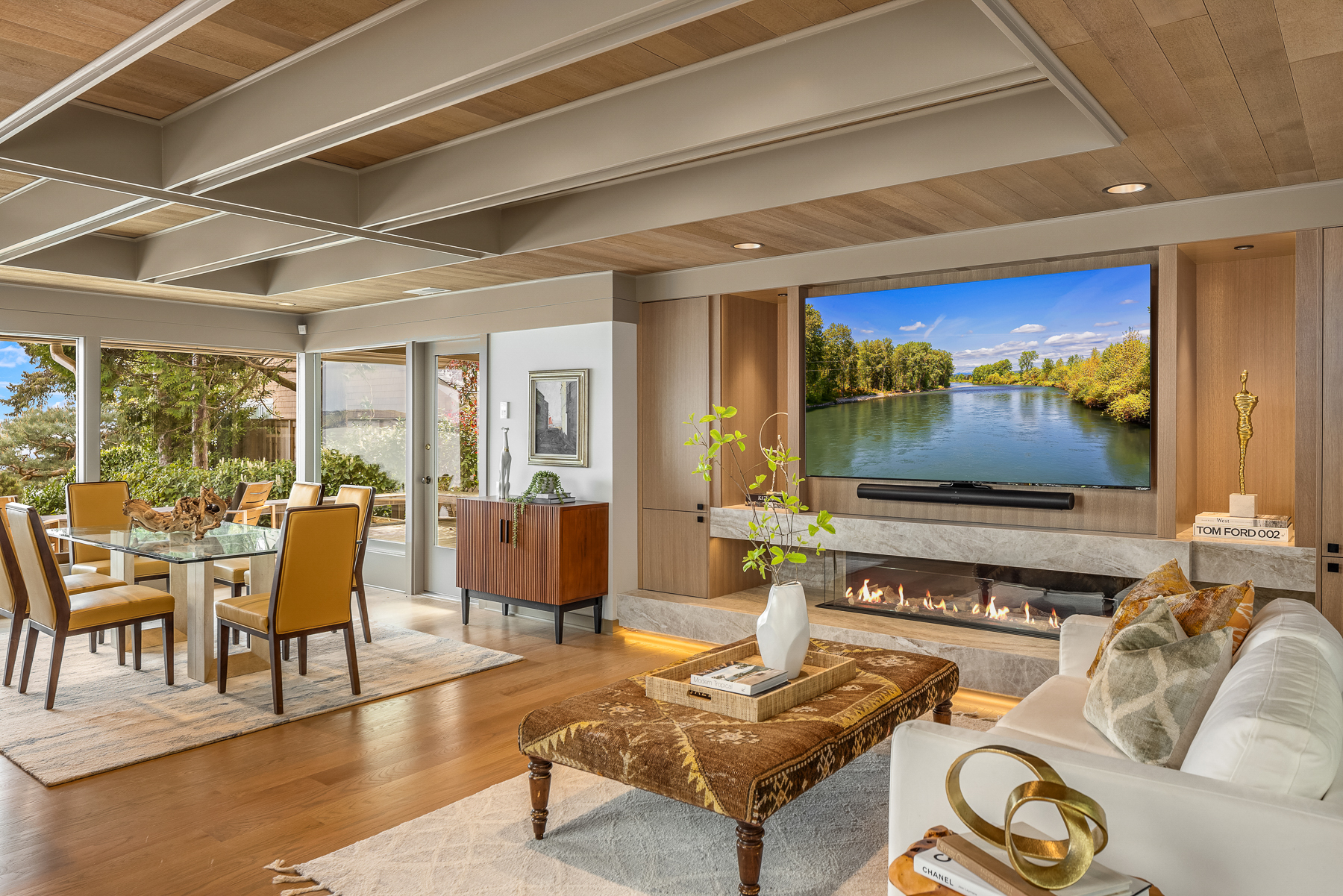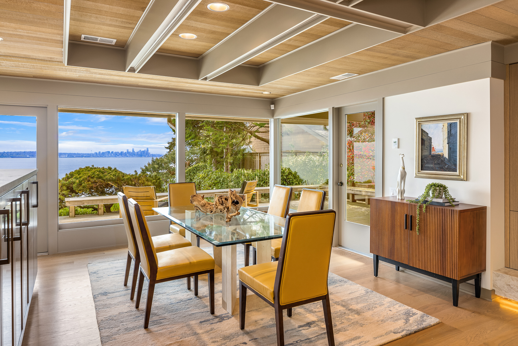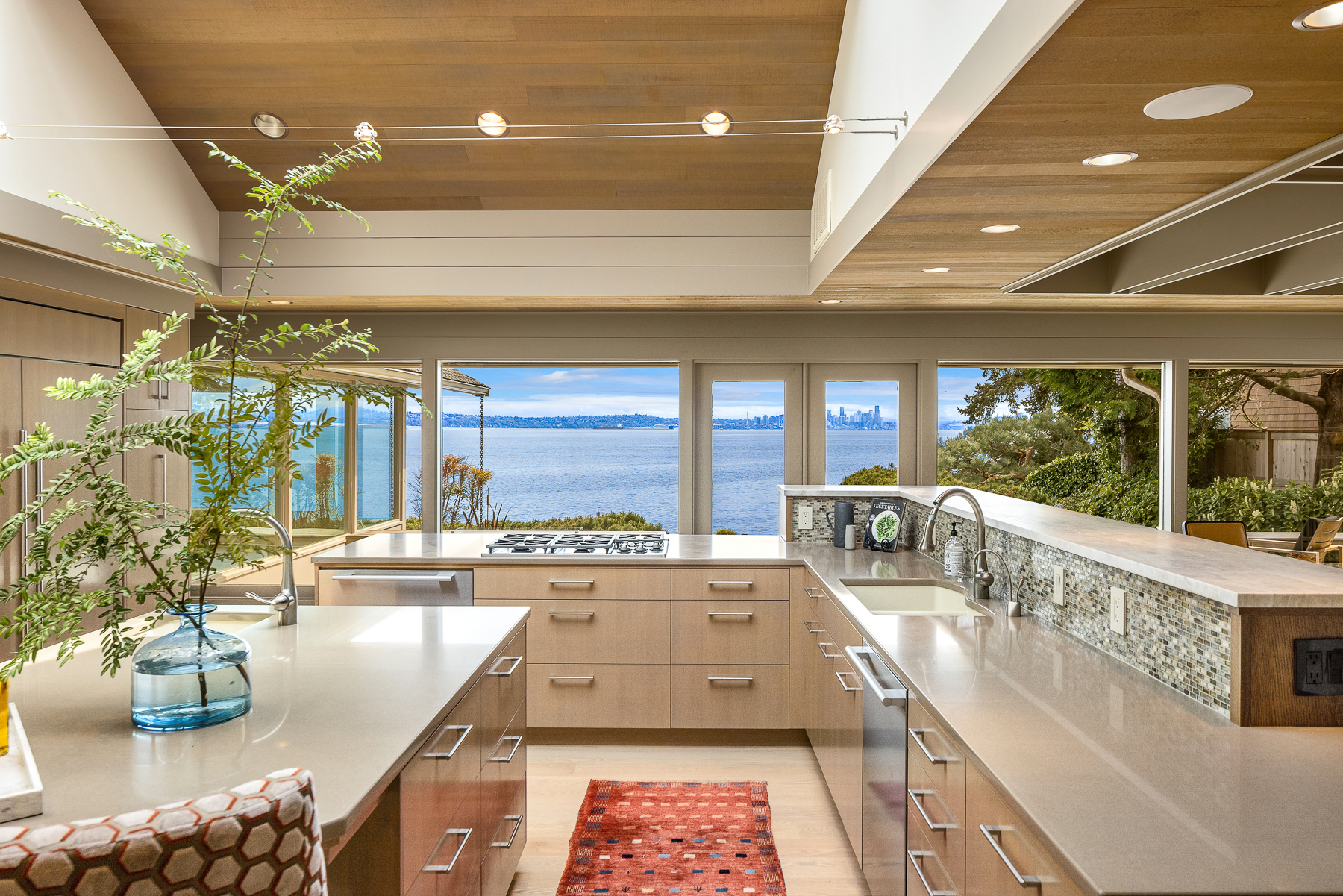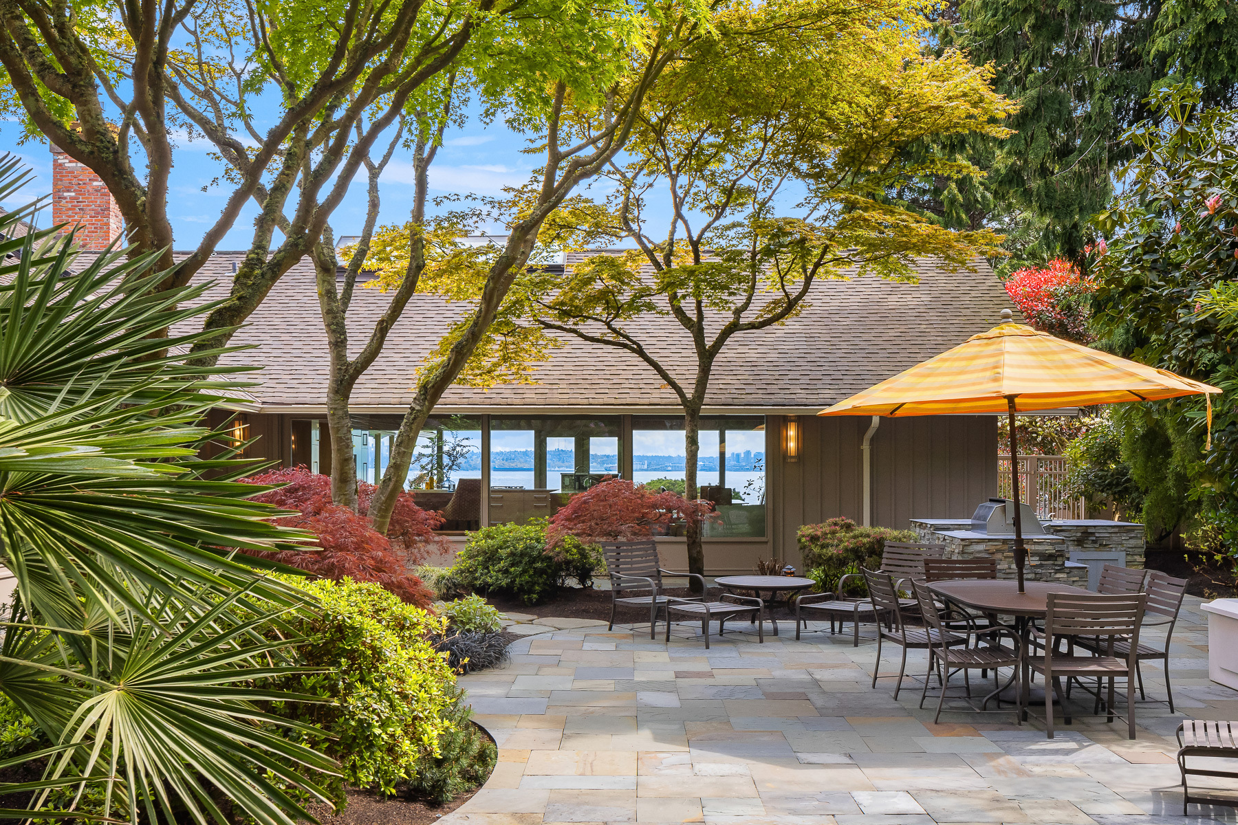 This beautifully designed home celebrates the genius of NW icon Ralph Anderson and his ability to create a perfect marriage between architecture and land. This elegantly appointed low-bank waterfront home captures sweeping views of the Seattle skyline from Mt. Baker to Mt. Rainier in the coveted Wing Point community. The open floor plan offers 3 levels of luxury living that boast water views from almost every room. Enjoy a wrap-around west-facing bluestone courtyard with mature private gardens, as well as the pristine beach for a morning stroll or kayak paddle. Fairbanks Construction has just completed a major remodel and a new garage is being built for electric vehicles. No detail has been missed. This truly is island living at its best!