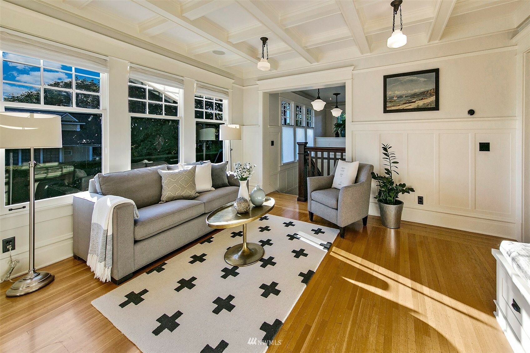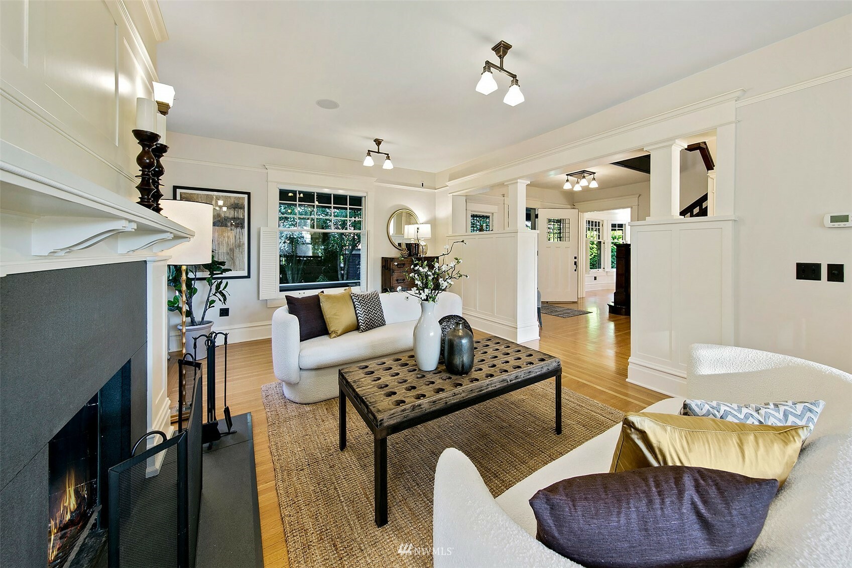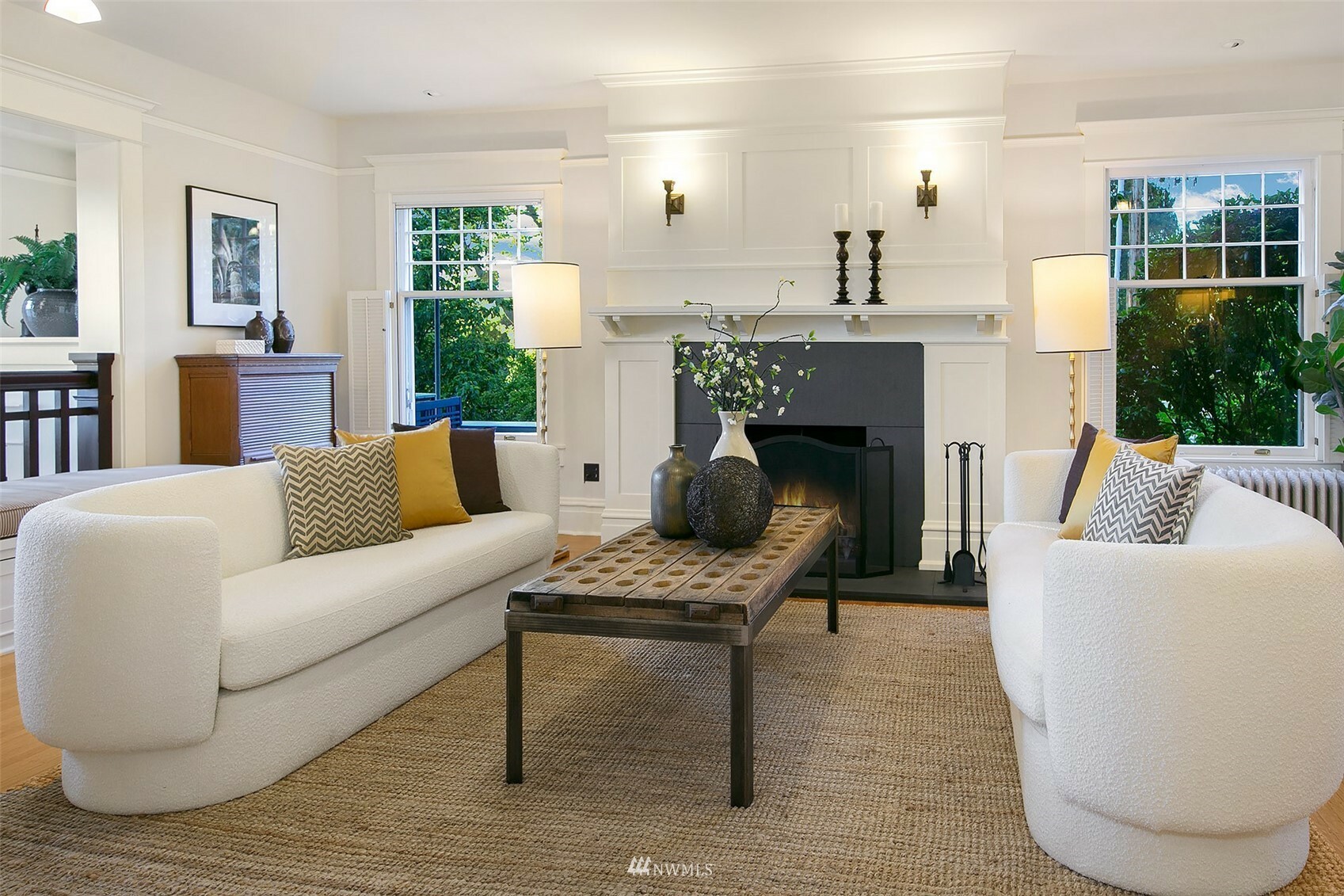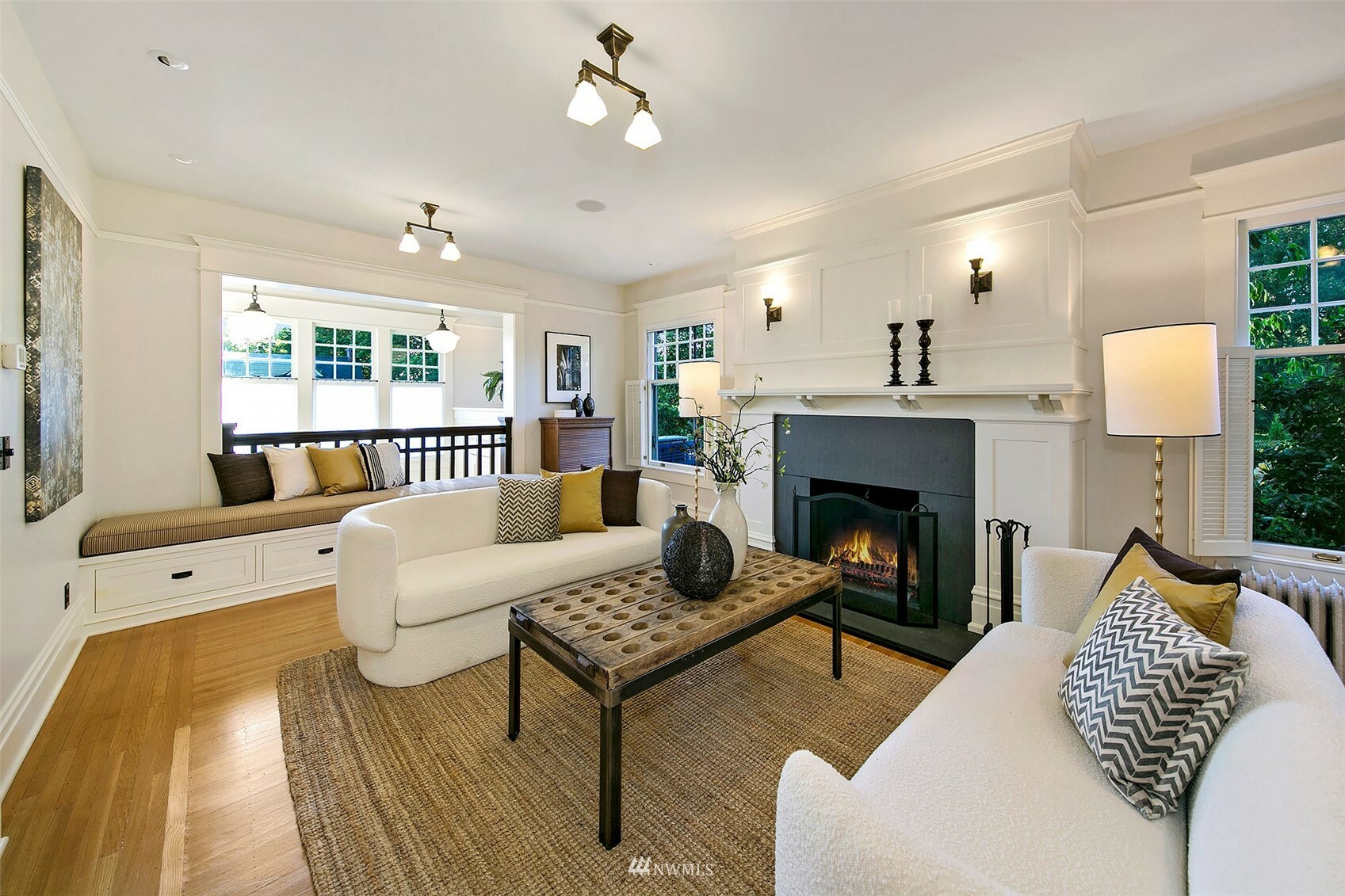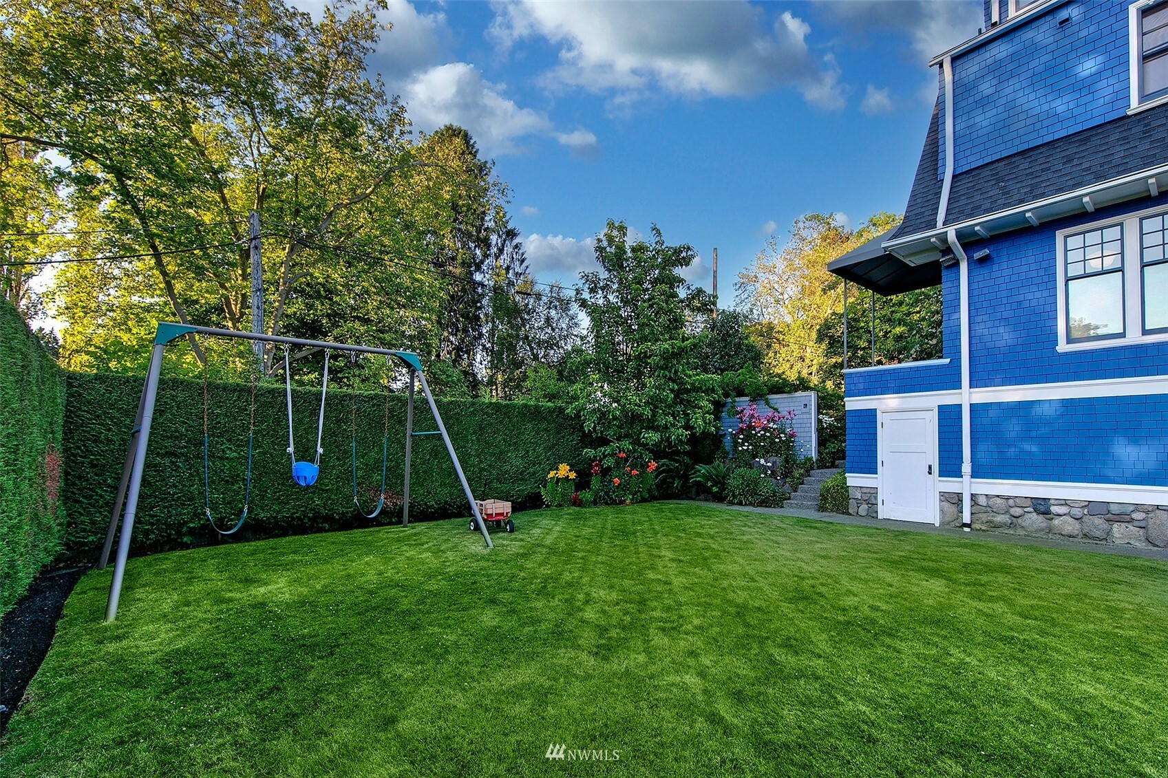 Private, spacious and perfectly positioned in the heart of Seattle. On a stately corner lot nearly ¼ acre in size sits this unique, updated 1906 Dutch colonial. Meticulously maintained original details blend elegantly with modern aesthetic. The sun-drenched award-winning open plan chef’s kitchen is the heart of the home, a natural gathering place with heated wood floors, built-ins, patio, all overlooking the impressive, hedged backyard and gardens. The contemporary downstairs features polished heated concrete floors, shiplap walls, live-edge curly maple counters and full kitchen perfect for indoor/outdoor living. Upper levels host 4 bedrooms, 2 baths, office and massive playroom. 2 separate garages. This turn-key urban oasis beckons!