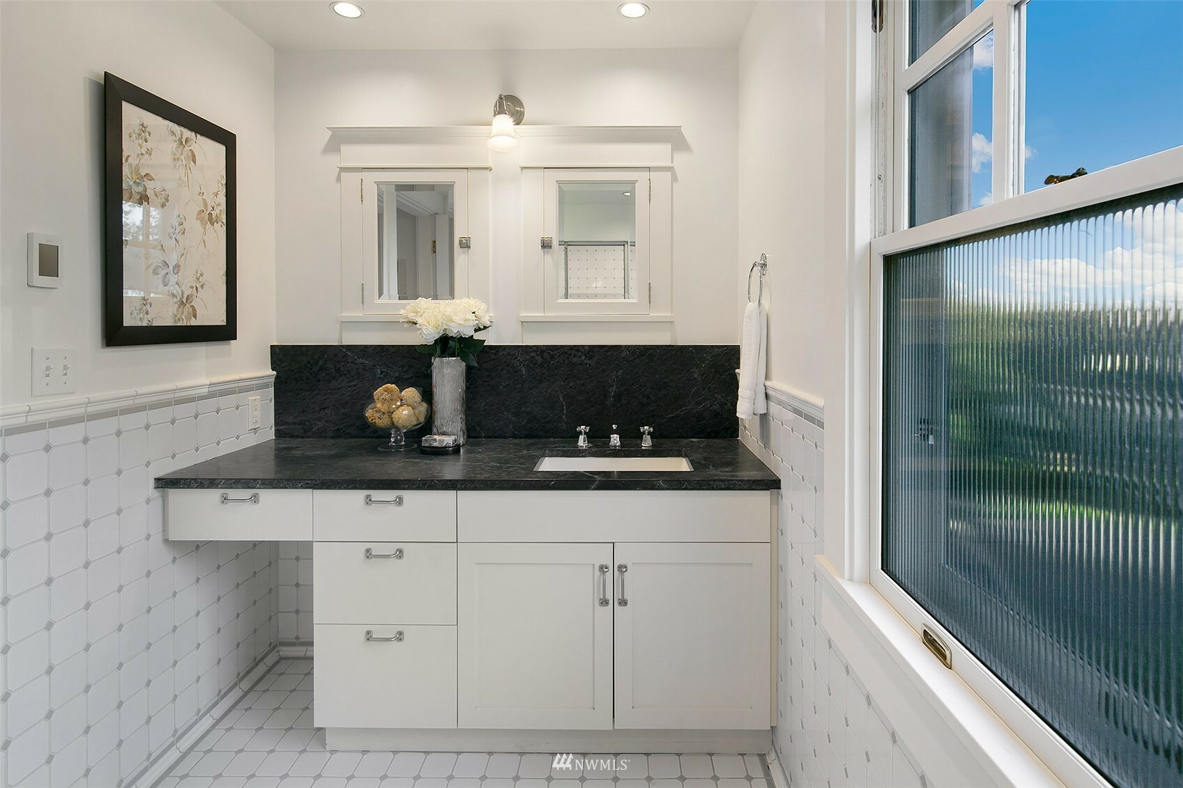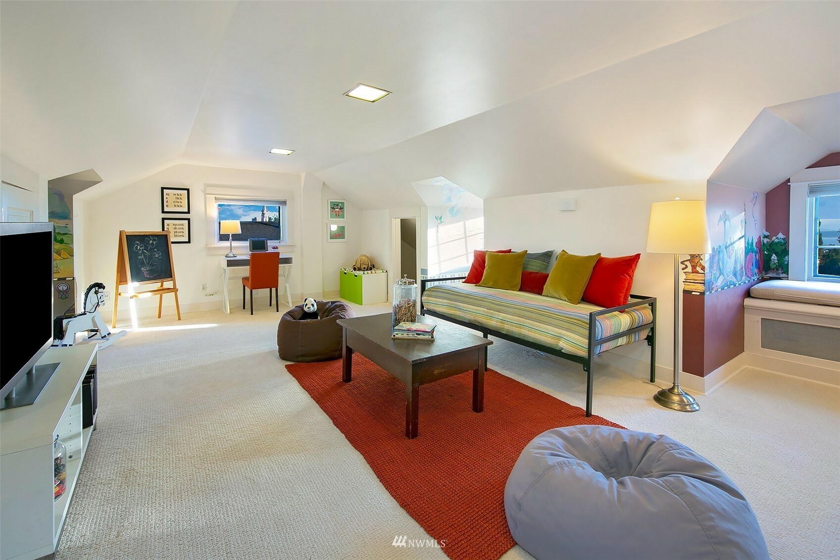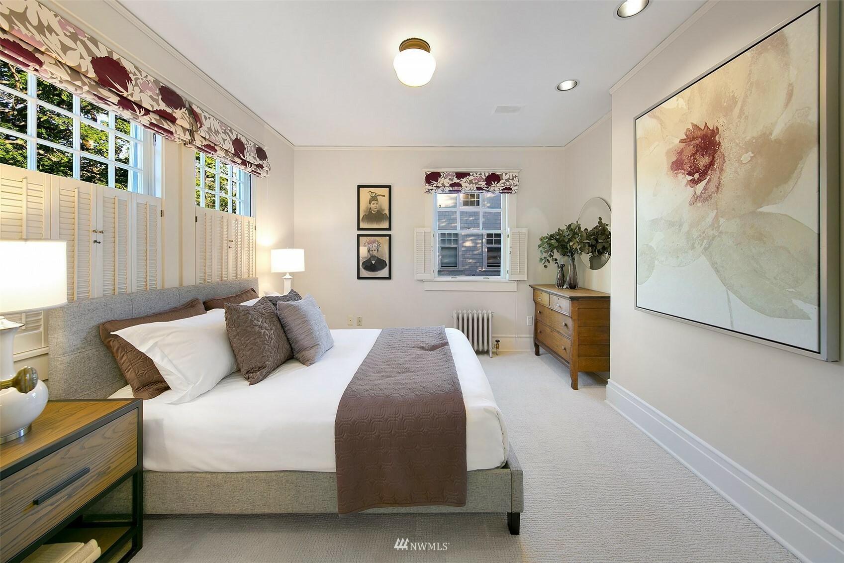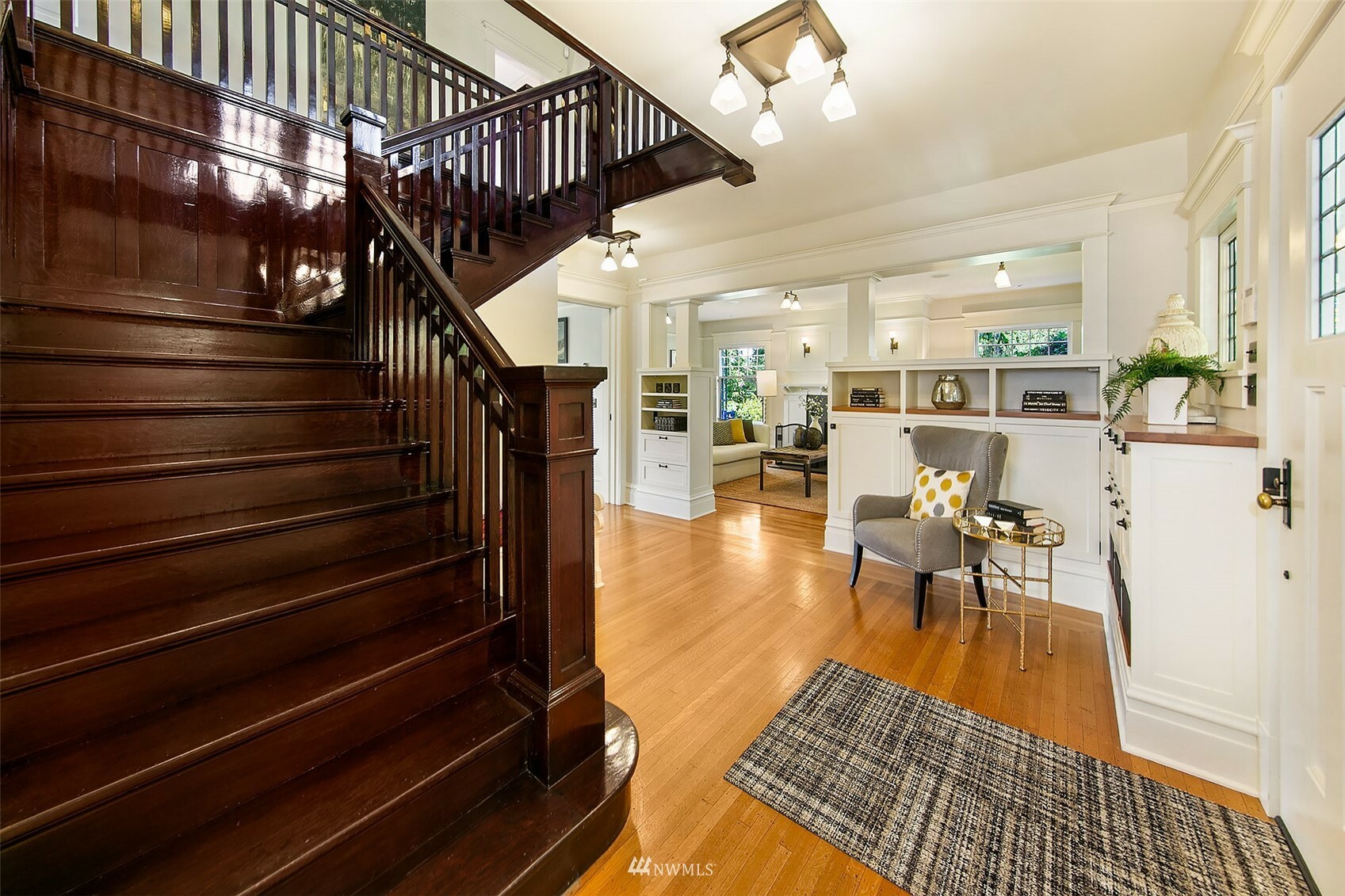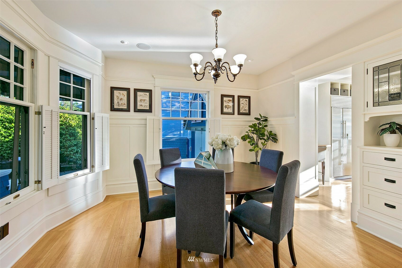 Private, spacious and perfectly positioned in the heart of Seattle. On a stately corner lot nearly ¼ acre in size sits this unique, updated 1906 Dutch colonial. Meticulously maintained original details blend elegantly with modern aesthetic. The sun-drenched award-winning open plan chef’s kitchen is the heart of the home, a natural gathering place with heated wood floors, built-ins, patio, all overlooking the impressive, hedged backyard and gardens. The contemporary downstairs features polished heated concrete floors, shiplap walls, live-edge curly maple counters and full kitchen perfect for indoor/outdoor living. Upper levels host 4 bedrooms, 2 baths, office and massive playroom. 2 separate garages. This turn-key urban oasis beckons!