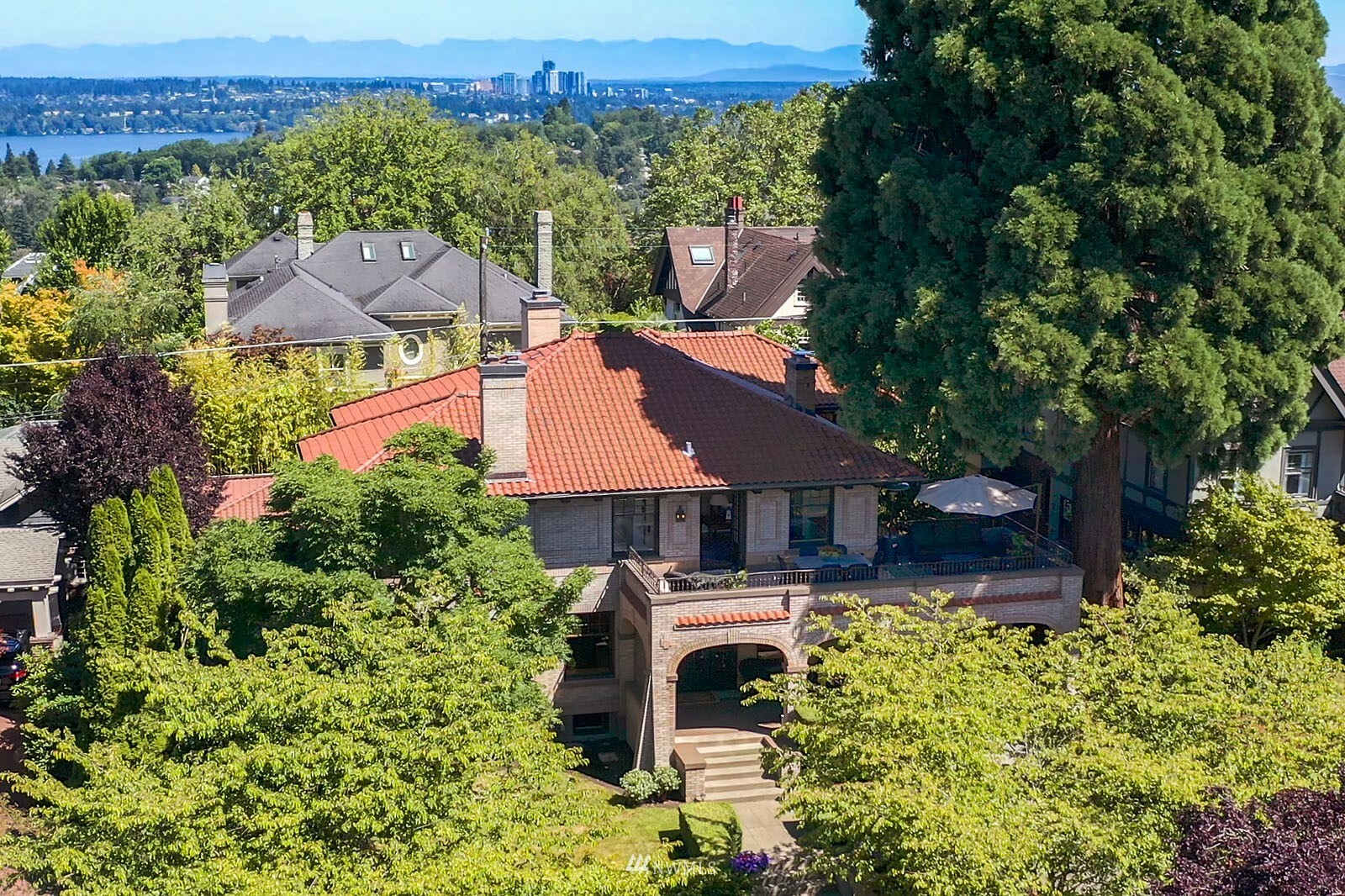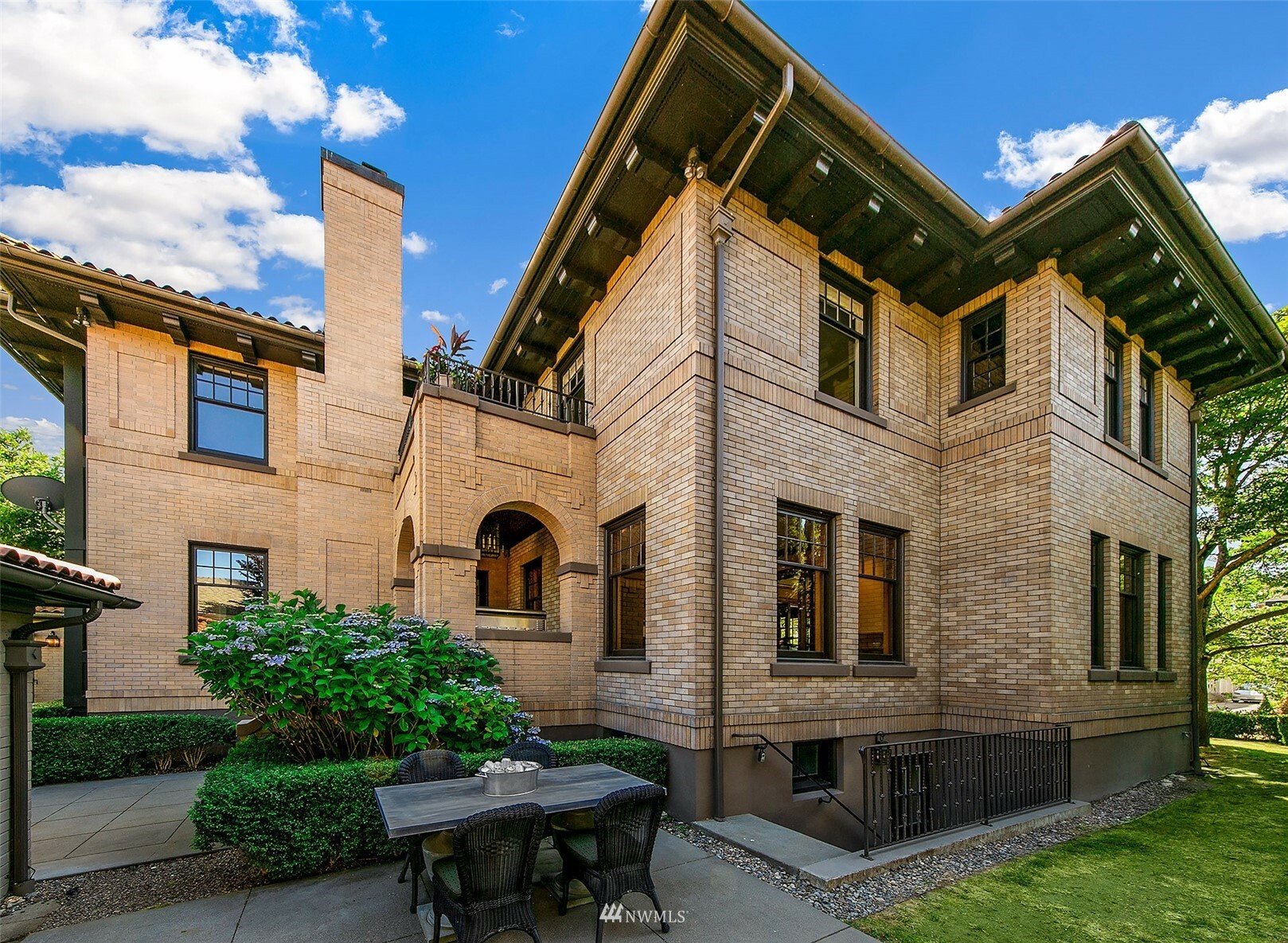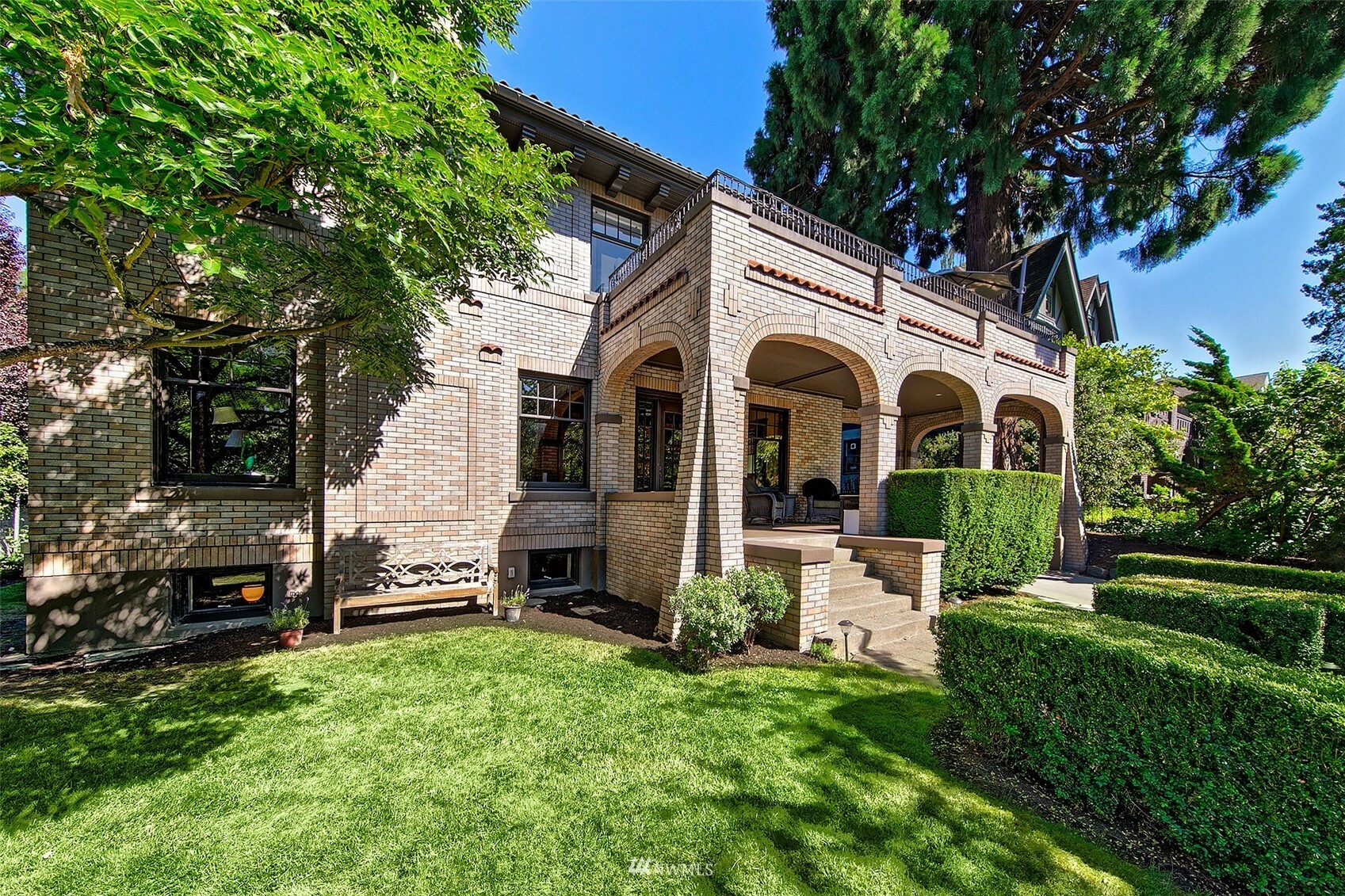 Warmth, dignity, impeccable detail, this stately 1920 Mediterranean offers comfort and elegance in a prime neighborhood. The original design and superior craftsmanship, enhanced by a Stuart Silk 2-story addition delivers ample space to gather or escape – offering both an open great room with beautifully appointed kitchen and impressive primary suite with balcony. Restored African Gum Wood mouldings enhance beautifully scaled spaces. The 2nd floor offers 3 large bedrooms, primary suite, 3 bathrooms and spacious deck. In the impeccably finished lower level, enjoy a game of pool, watch the ball game and select a bottle from the custom wine cellar. Guest quarters, landscaped gardens, abundant outdoor living spaces. Home, in a supreme location!