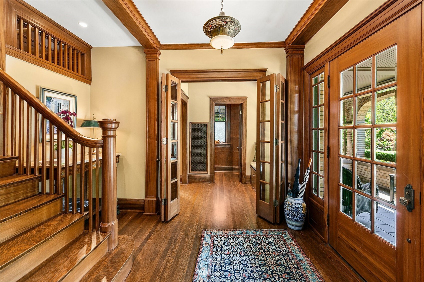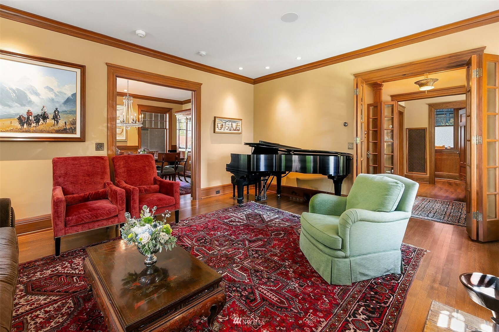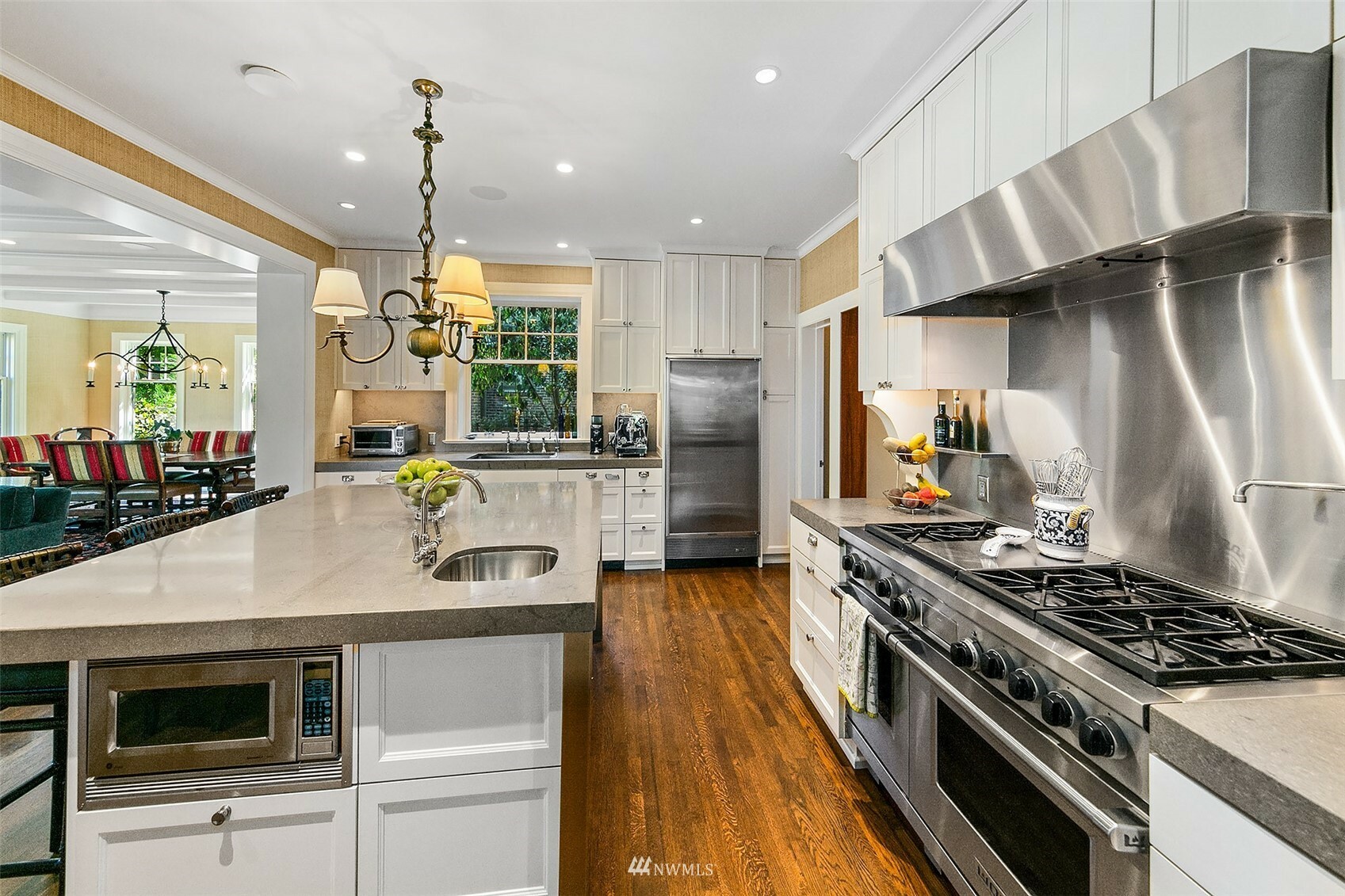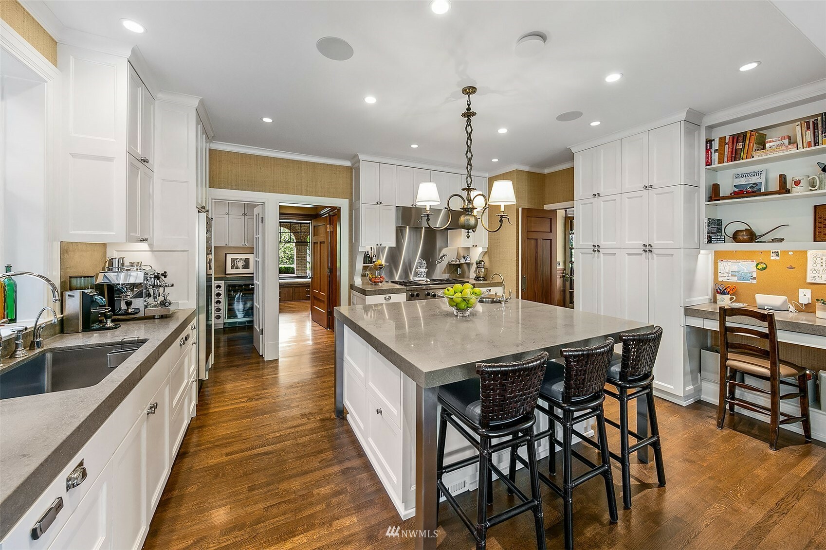Warmth, dignity, impeccable detail, this stately 1920 Mediterranean offers comfort and elegance in a prime neighborhood. The original design and superior craftsmanship, enhanced by a Stuart Silk 2-story addition delivers ample space to gather or escape – offering both an open great room with beautifully appointed kitchen and impressive primary suite with balcony. Restored African Gum Wood mouldings enhance beautifully scaled spaces. The 2nd floor offers 3 large bedrooms, primary suite, 3 bathrooms and spacious deck. In the impeccably finished lower level, enjoy a game of pool, watch the ball game and select a bottle from the custom wine cellar. Guest quarters, landscaped gardens, abundant outdoor living spaces. Home, in a supreme location!