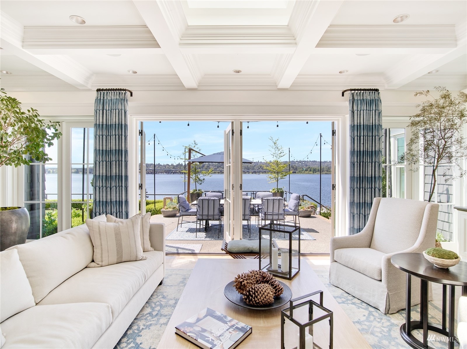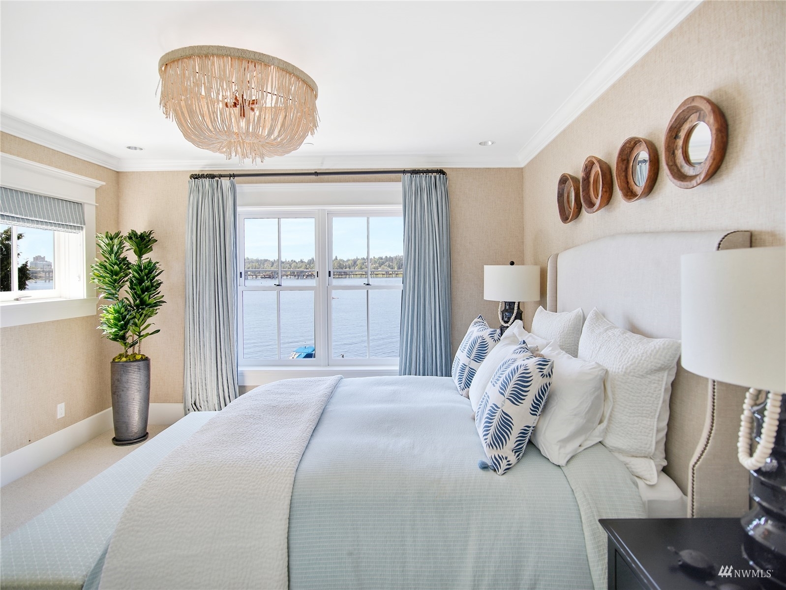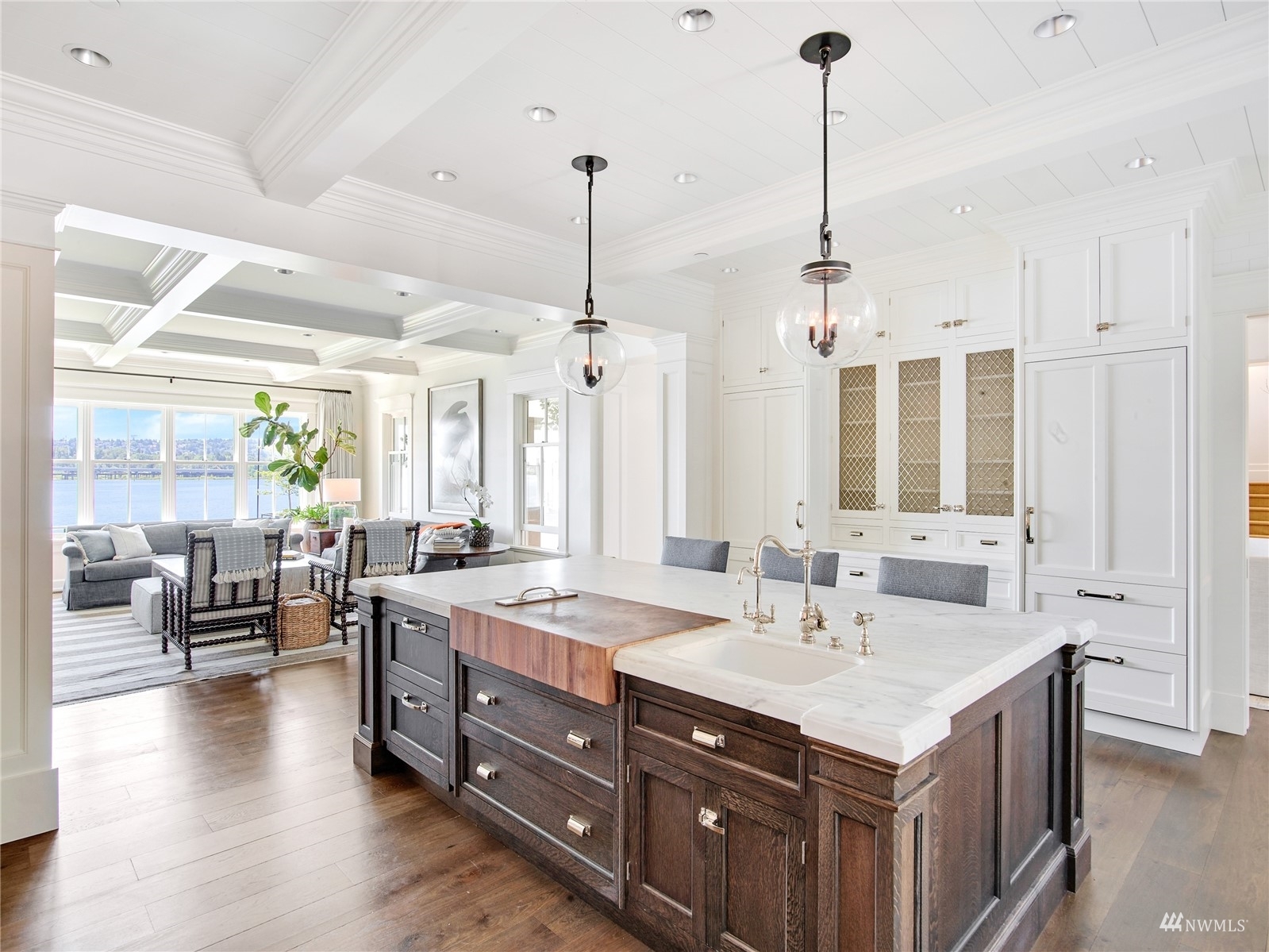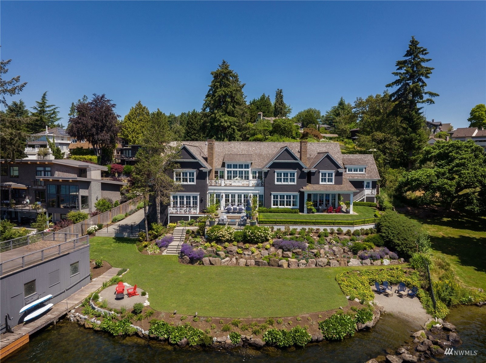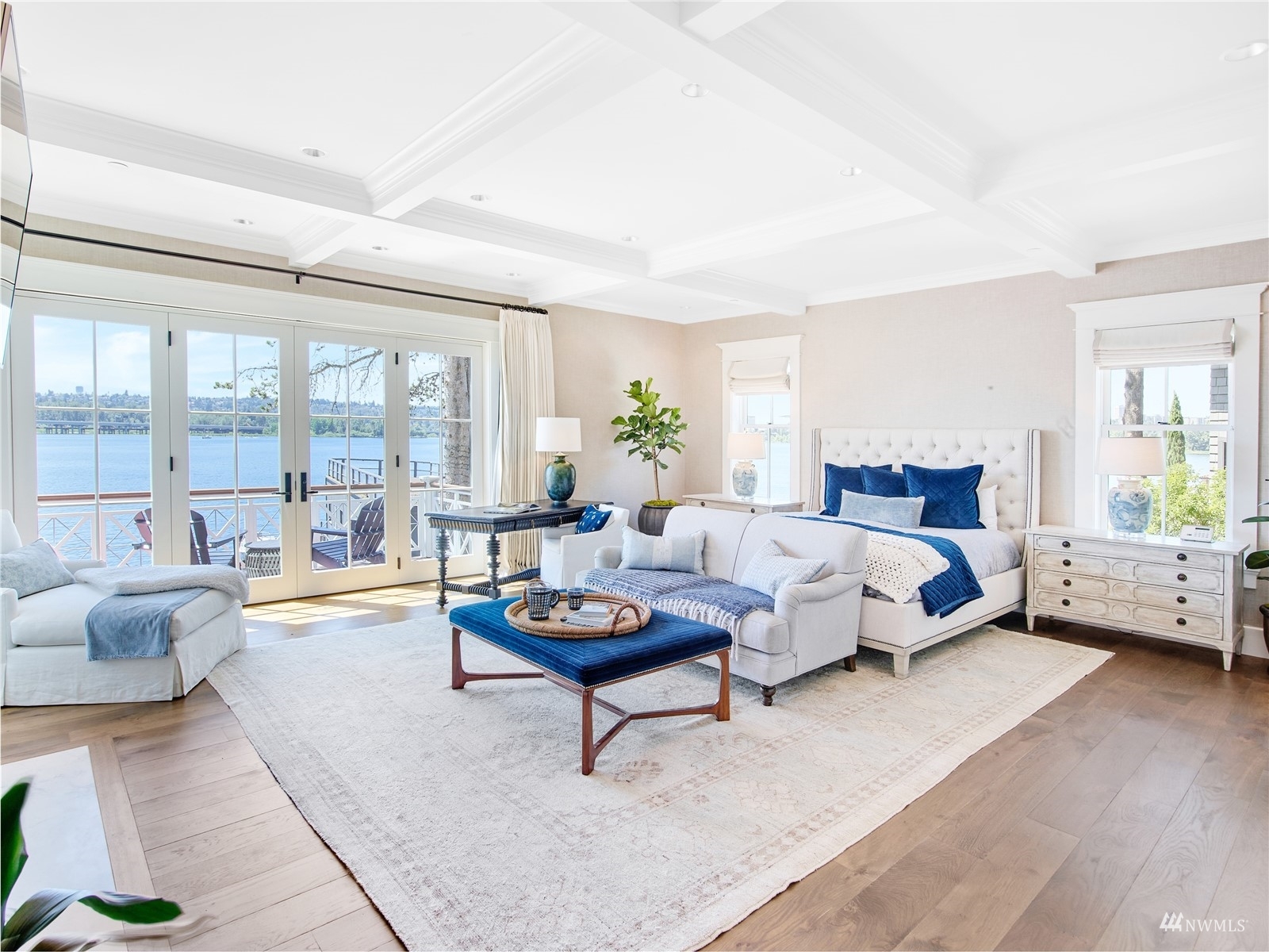 Reminiscent of summers in Nantucket, this one-of-a-kind waterfront oasis radiates refined beauty on 140’ of prized Lake Washington lakefront with dock and boathouse. Discover a brilliant collaboration between Adam Leland Homes and Stuart Silk Architects yielding a true masterwork in coastal architecture infused with Kelly Nutt’s brand of Newport Beach style interiors. White painted paneled walls and wide plank floors are effortlessly layered with sun-washed hues, natural textures and dreamy blue backdrops. Enjoy magnificent views of sun-kissed water, glorious sunsets and stadium lights. Decadent Christopher Peacock kitchen and central sunroom opening to a private patio, cascading lawn and private sandy beach. A Laurelhurst landmark.