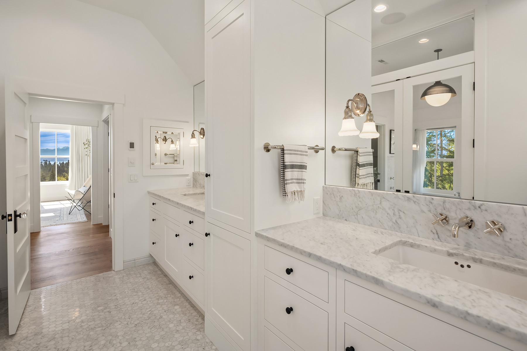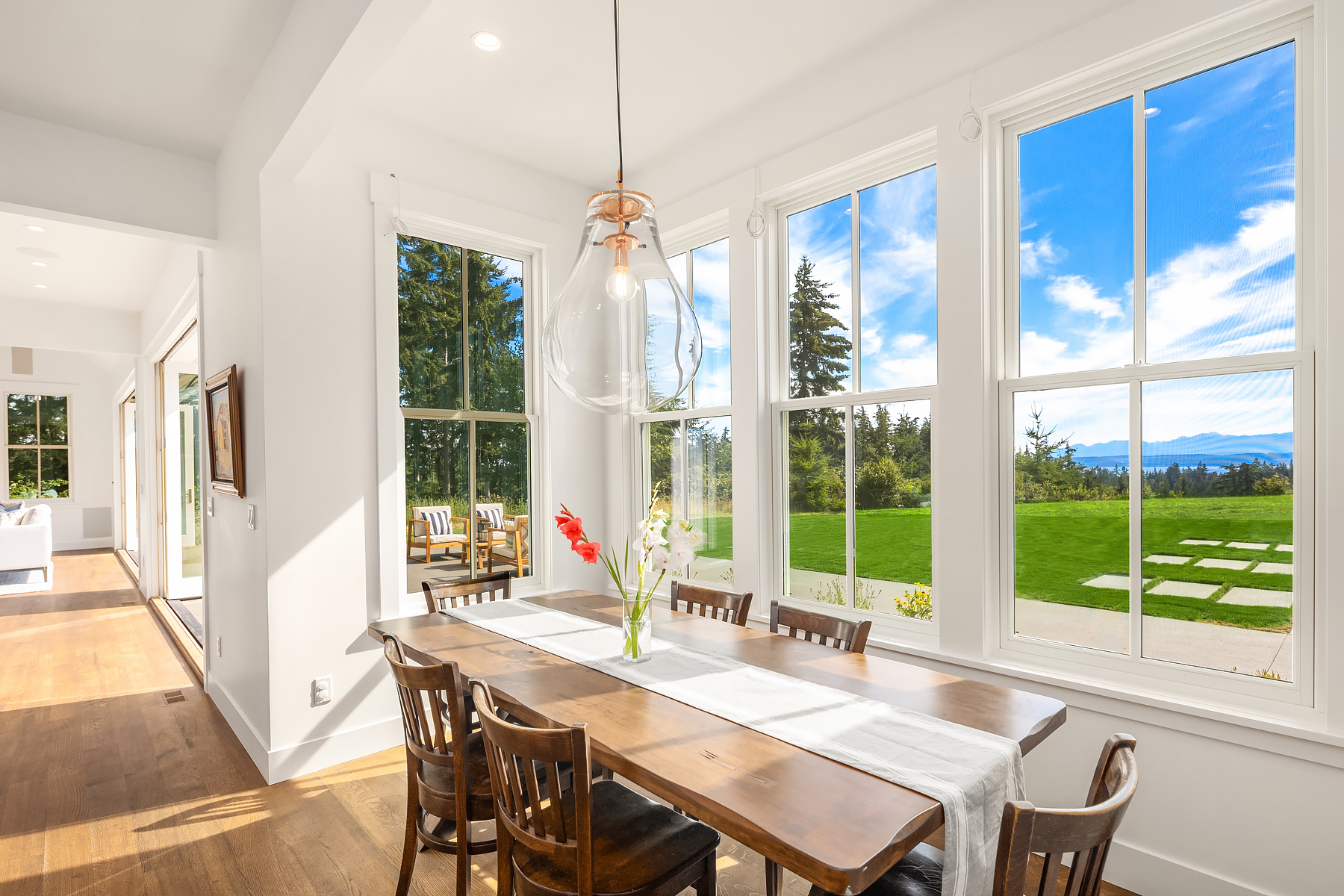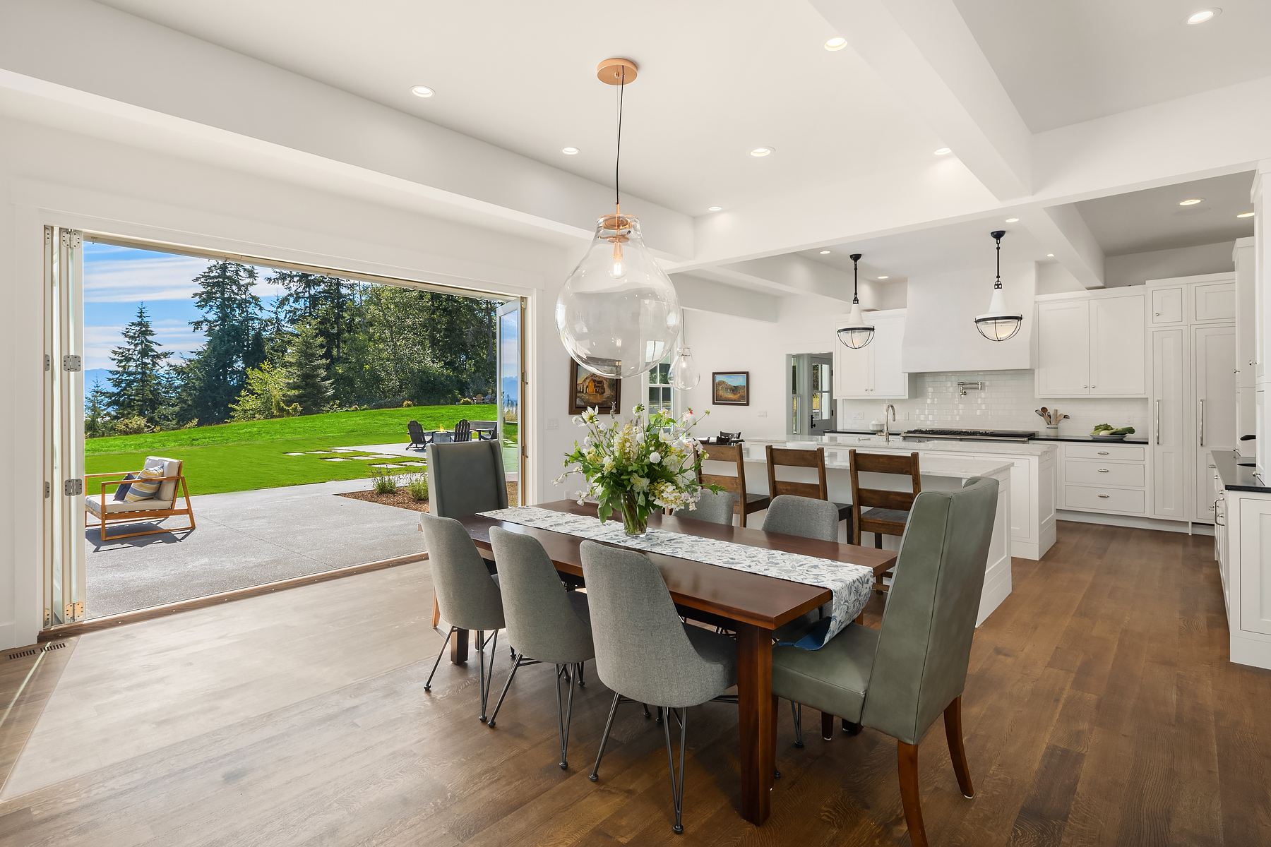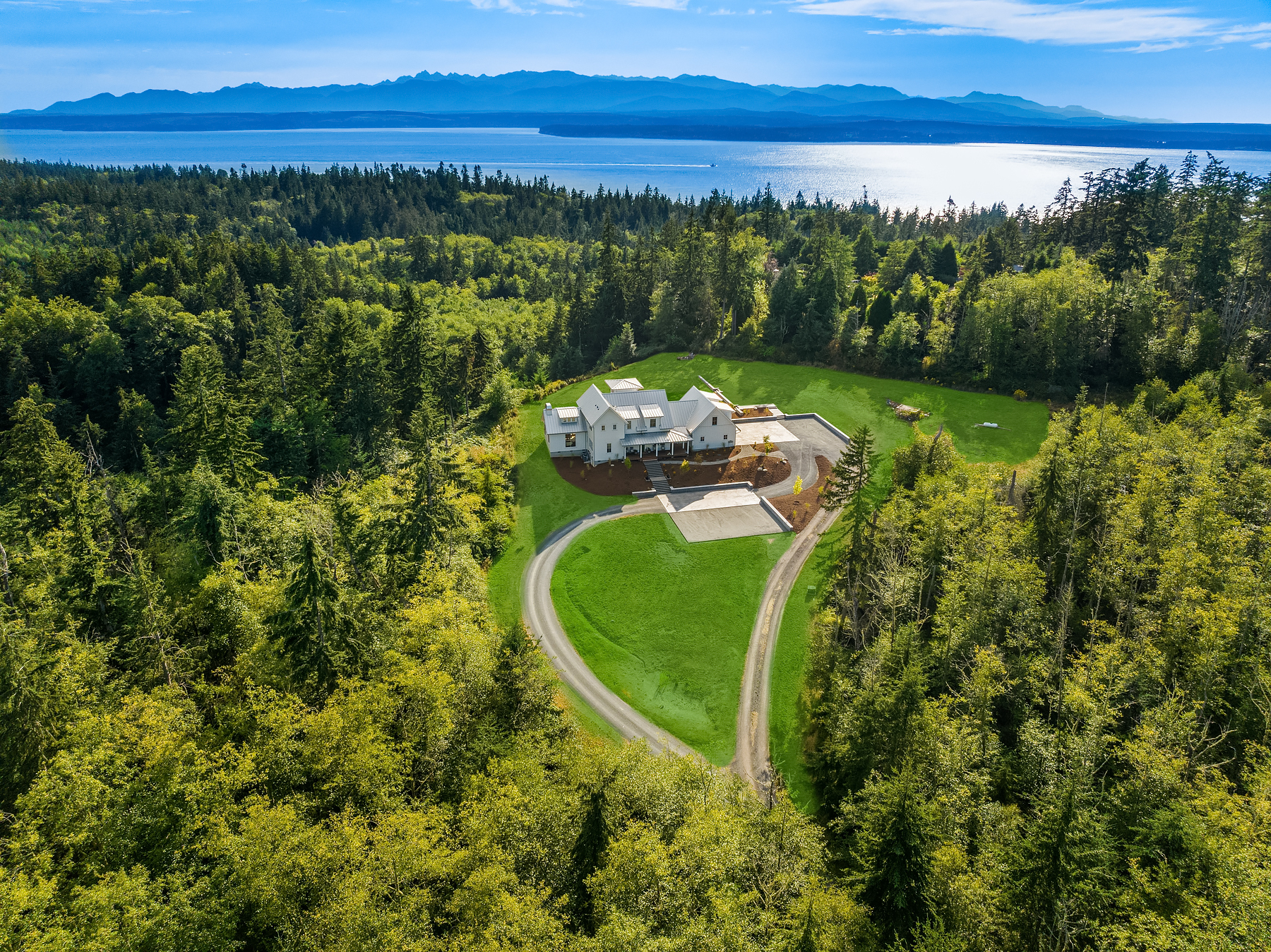 Imagine unparalleled privacy on an expansive 20-acre estate, with stunning views of the Olympics, the sound, and your own forest preserve. This architectural masterpiece offers impeccable craftsmanship and attention to detail, showcased by exquisite materials and finishes. Enjoy a light, bright, and airy living experience, with views from every room. The Epicurean kitchen is a culinary enthusiast's dream, featuring two marble islands, a French Lacanche range, custom butler's pantry, and beverage bar. The primary bedroom is an oasis of tranquility, with a luxurious ensuite marble bath, featuring an enclosed soaking tub and double rain shower, providing a spa-like experience to rejuvenate. Live the life you've always envisioned.